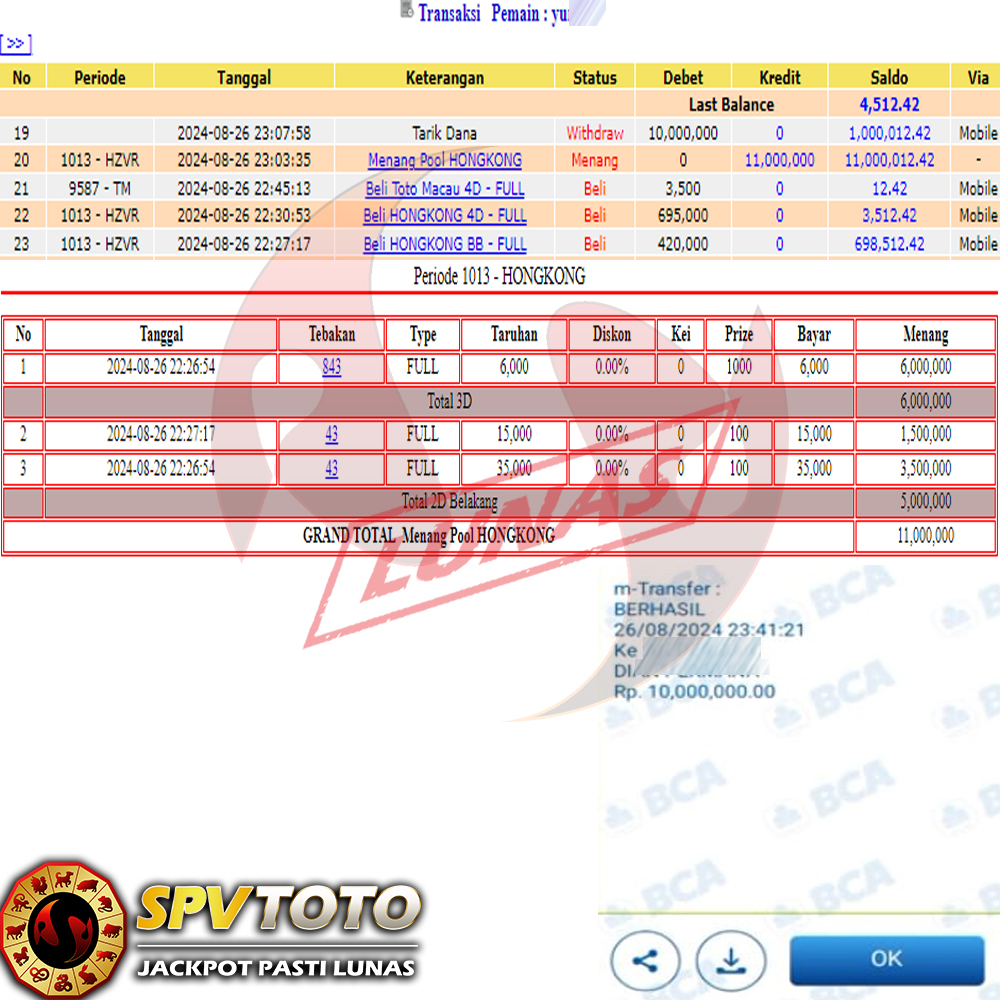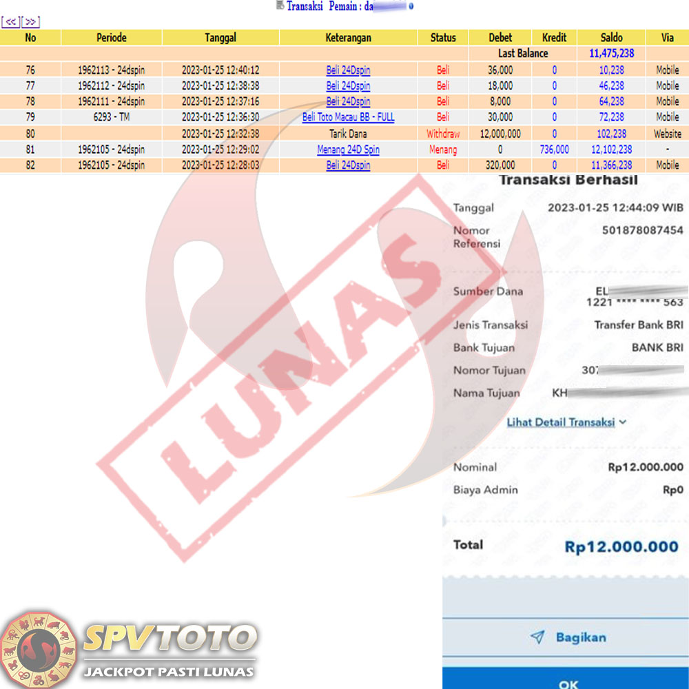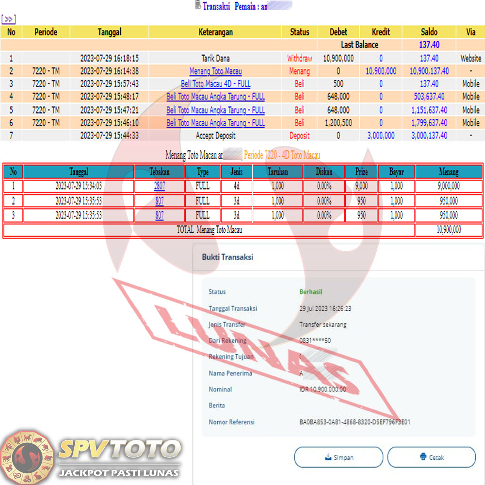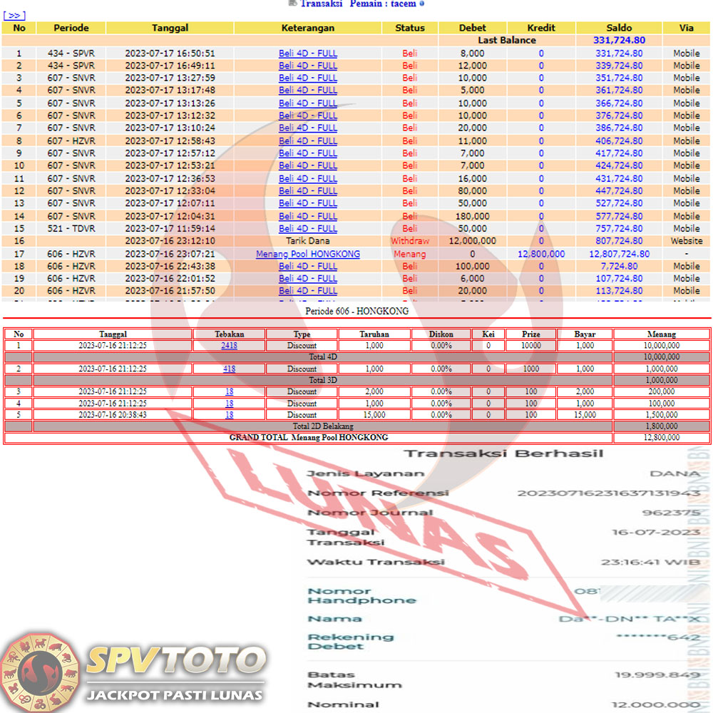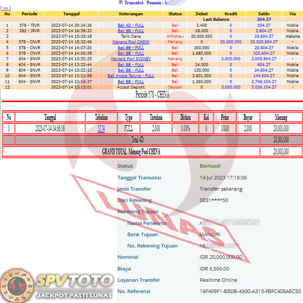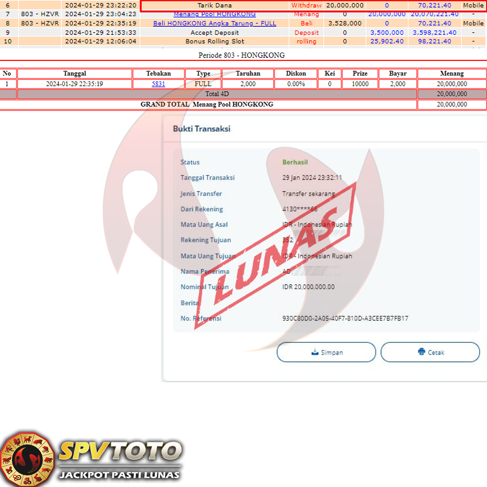 SELAMAT KEPADA MEMBER YANG MENDAPATKAN JACKPOT DI SPVTOTO