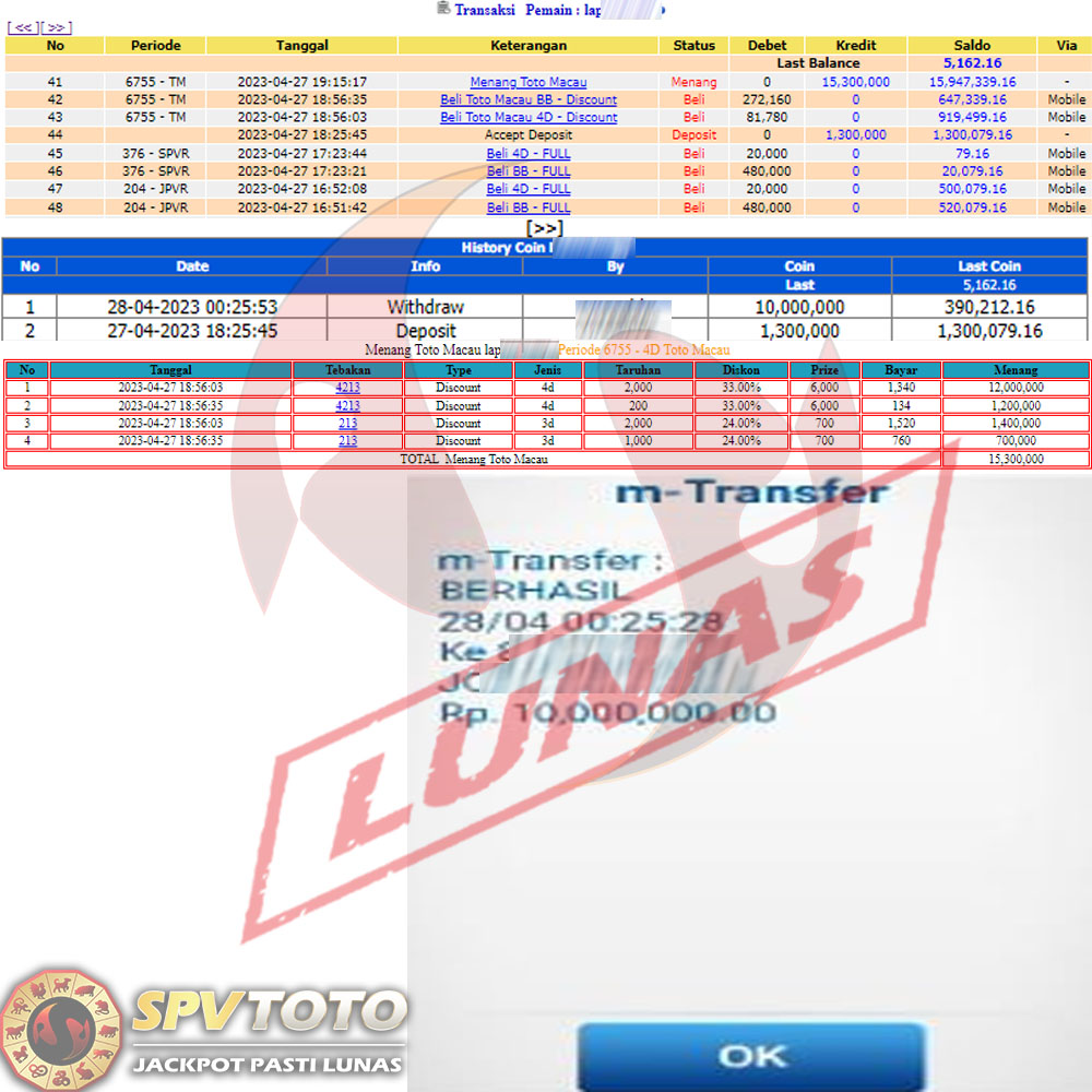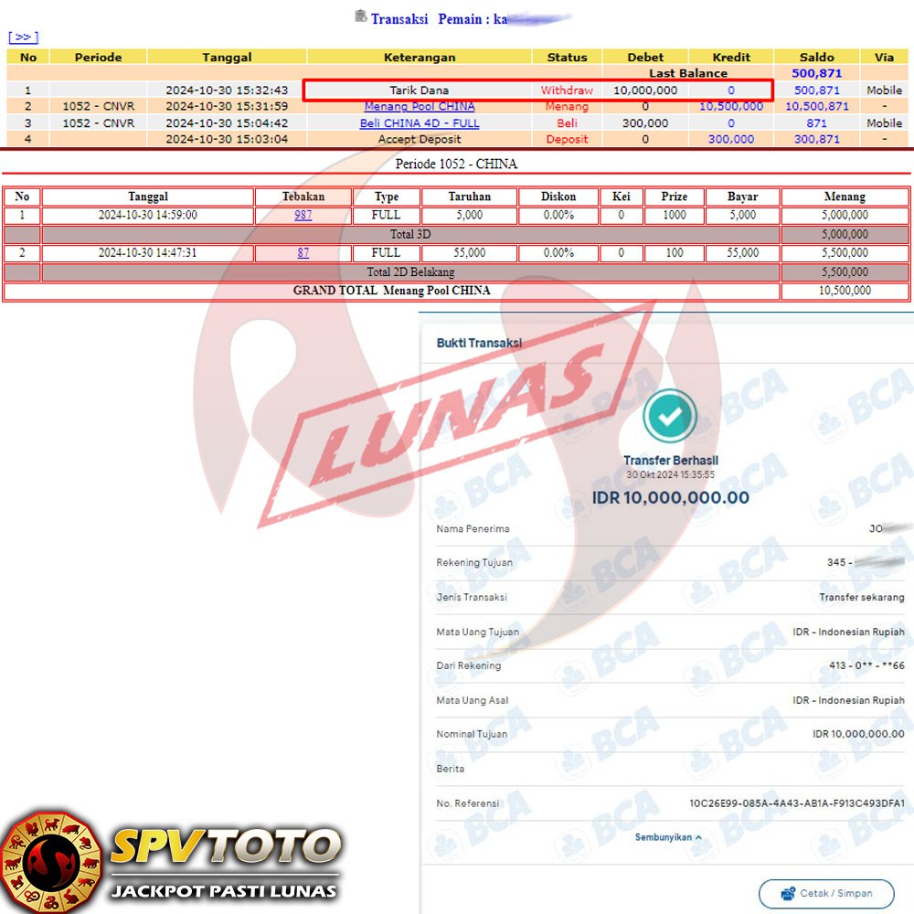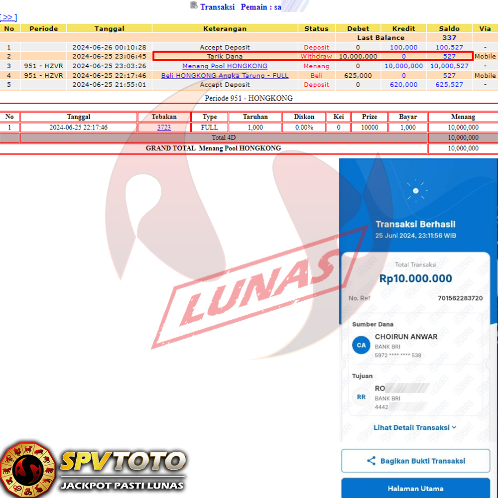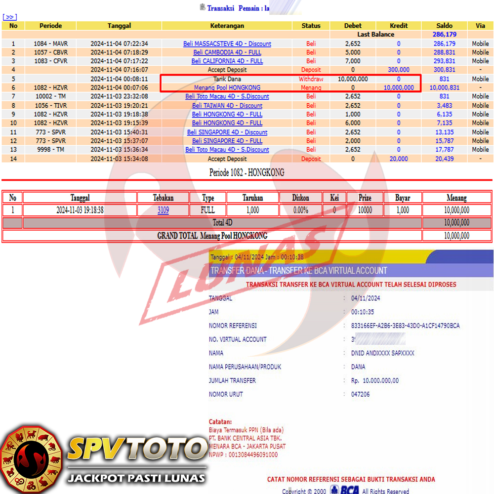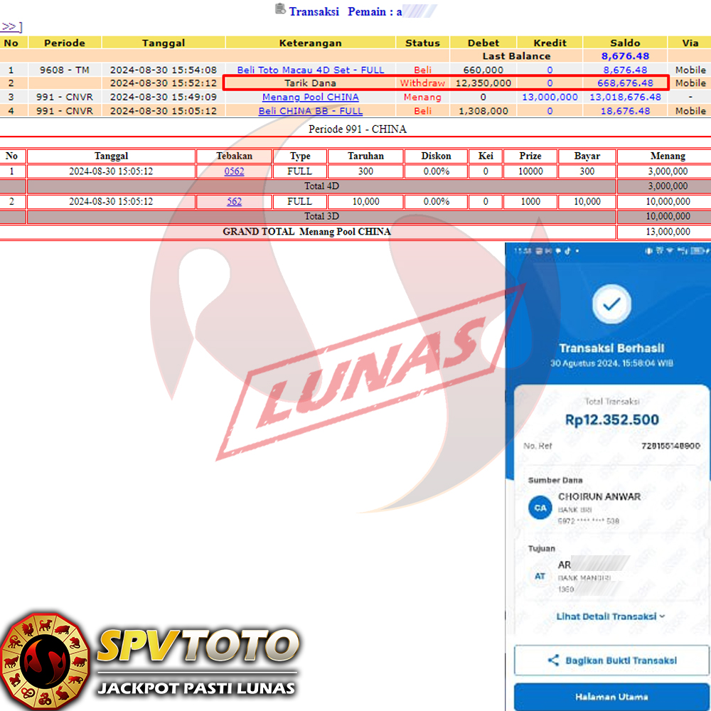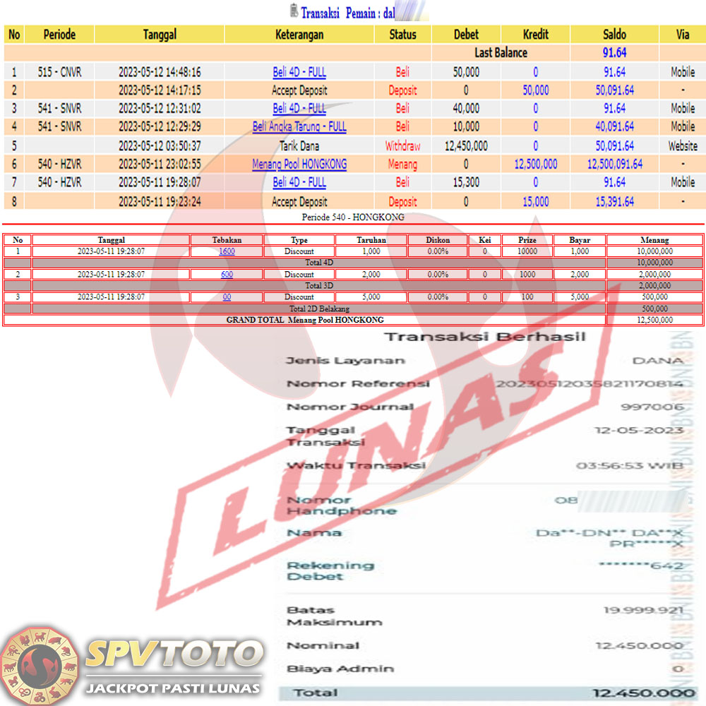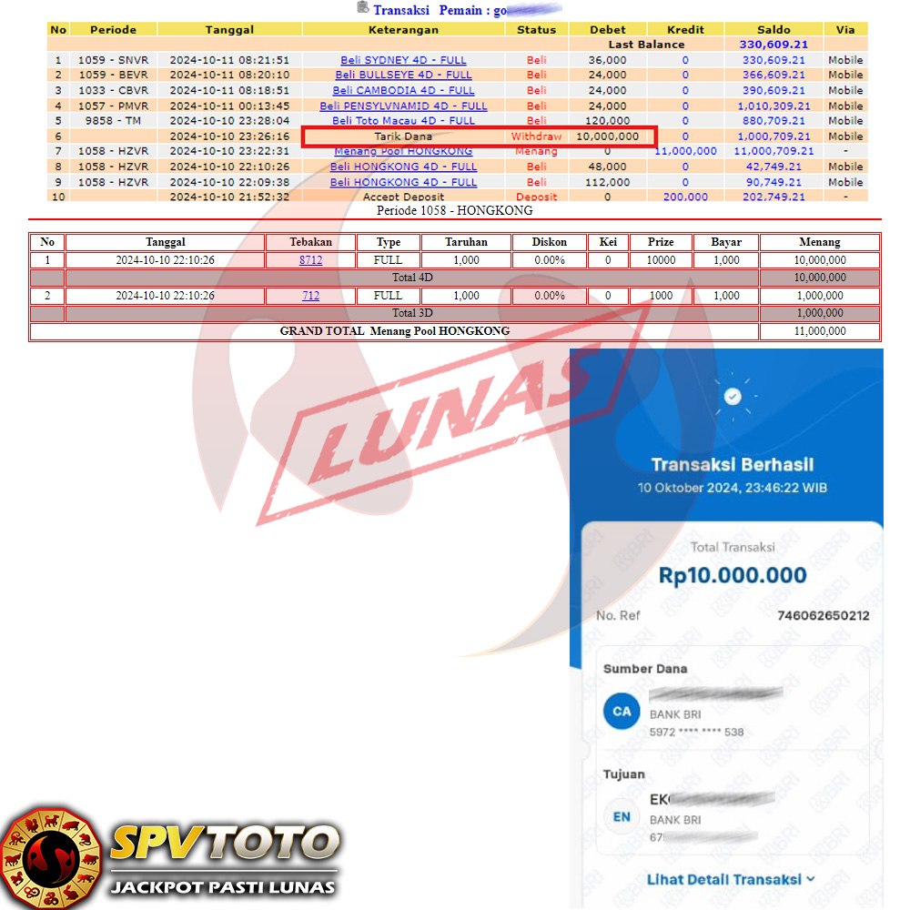 SELAMAT KEPADA MEMBER YANG MENDAPATKAN JACKPOT DI SPVTOTO
