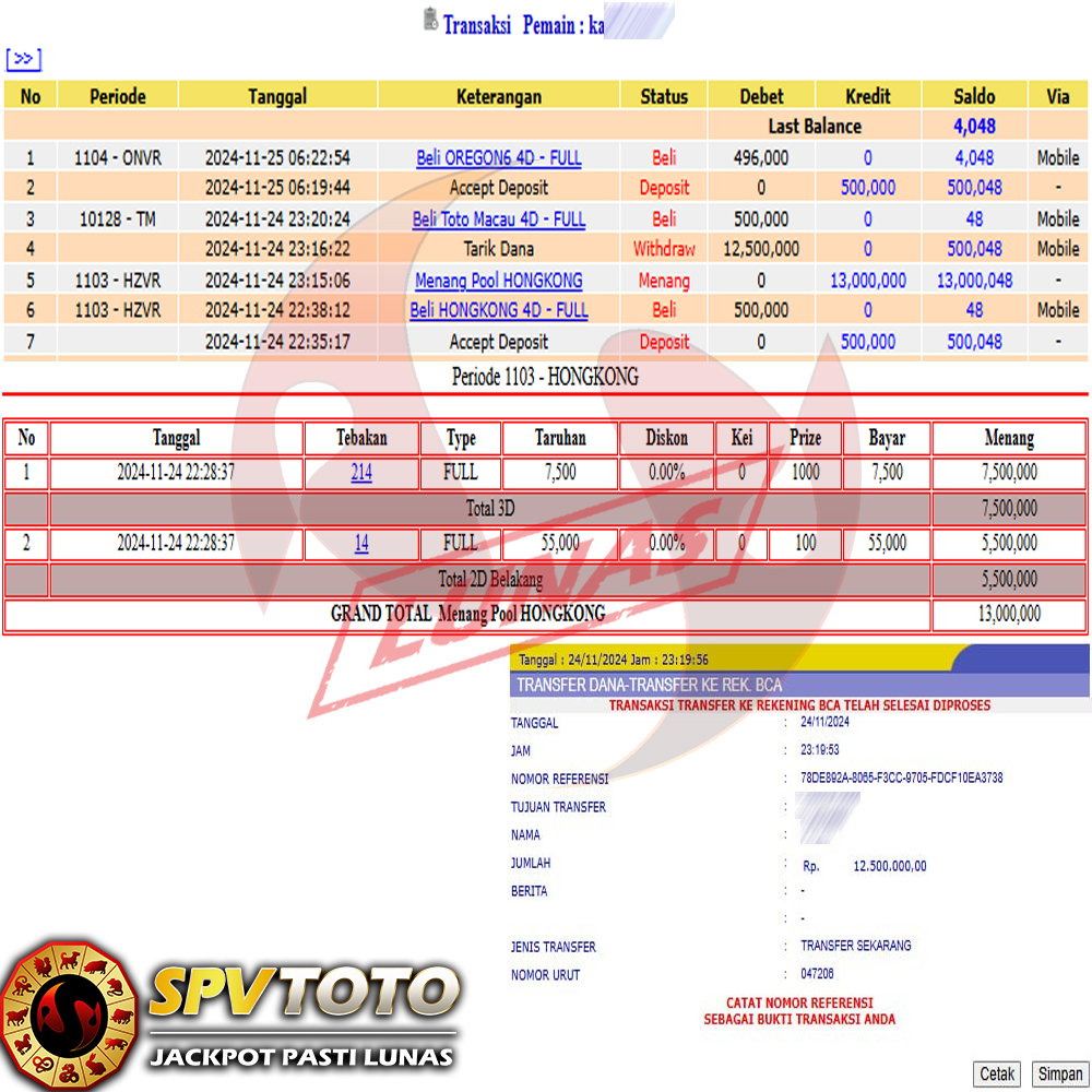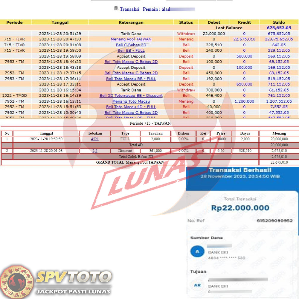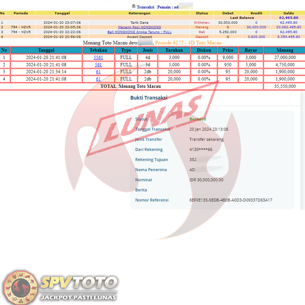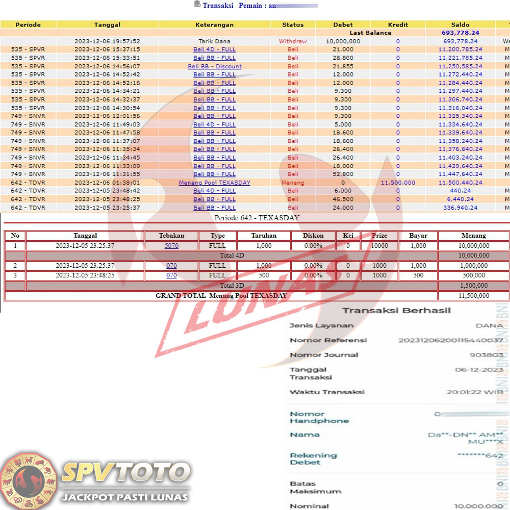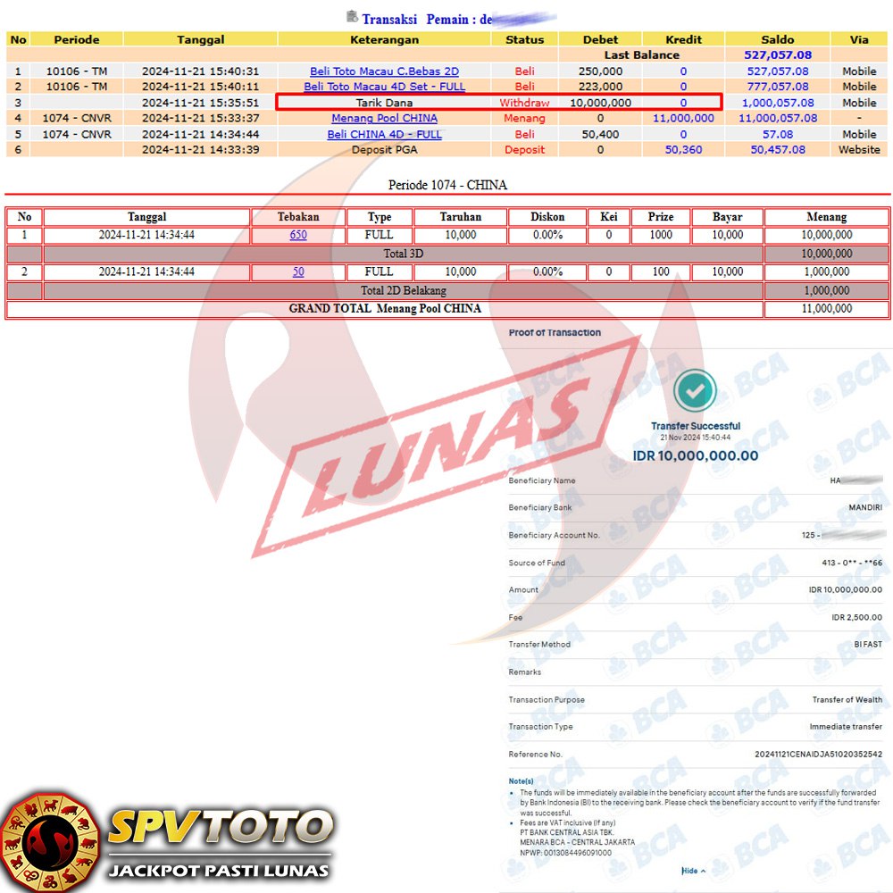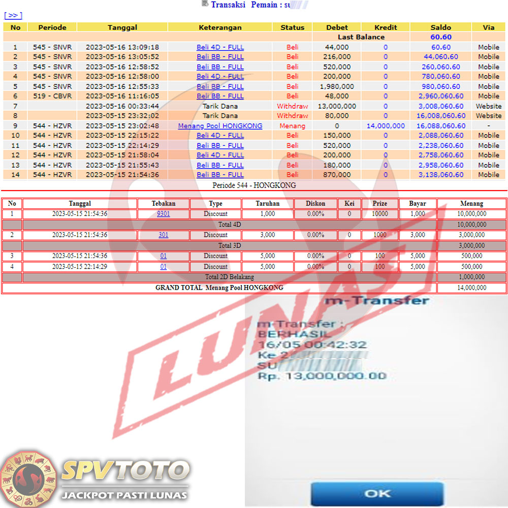 SELAMAT KEPADA MEMBER YANG MENDAPATKAN JACKPOT DI SPVTOTO