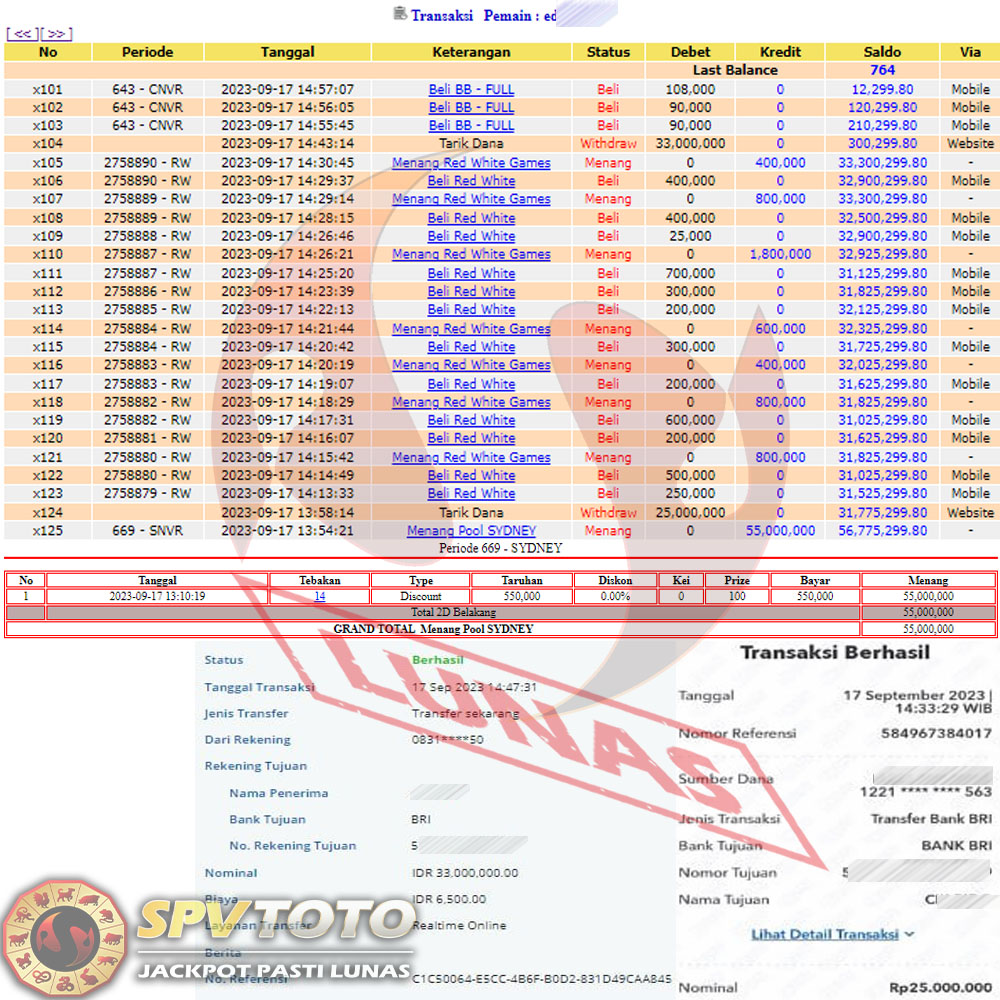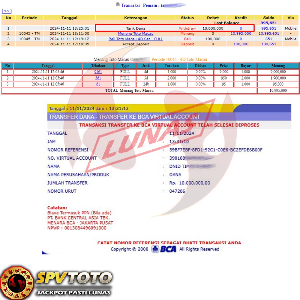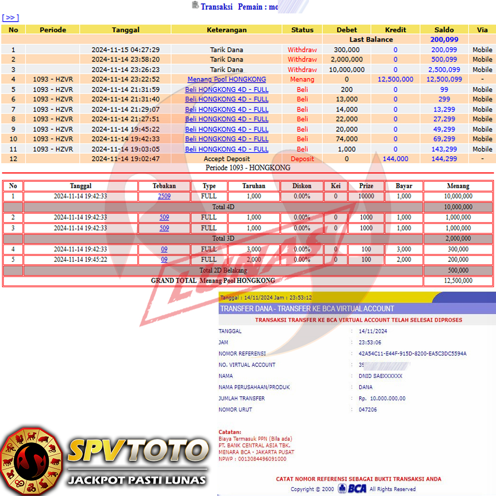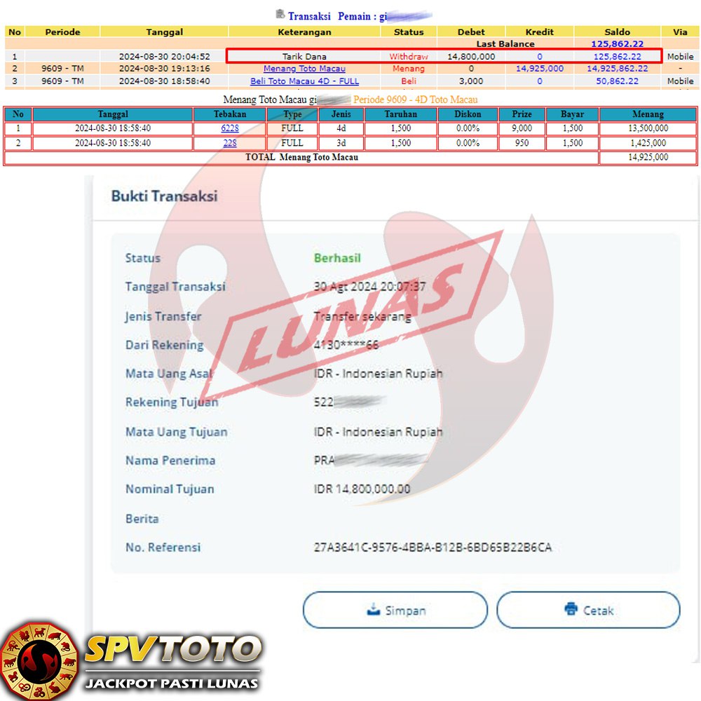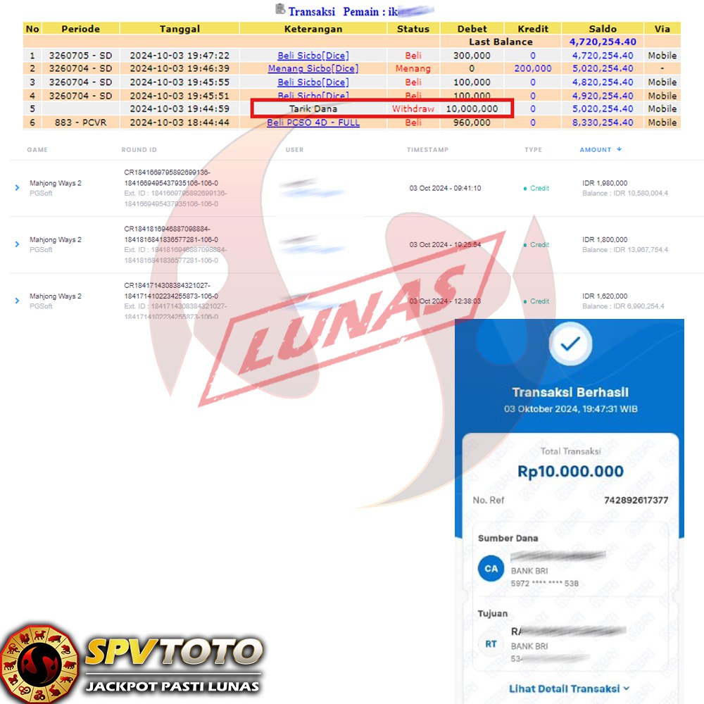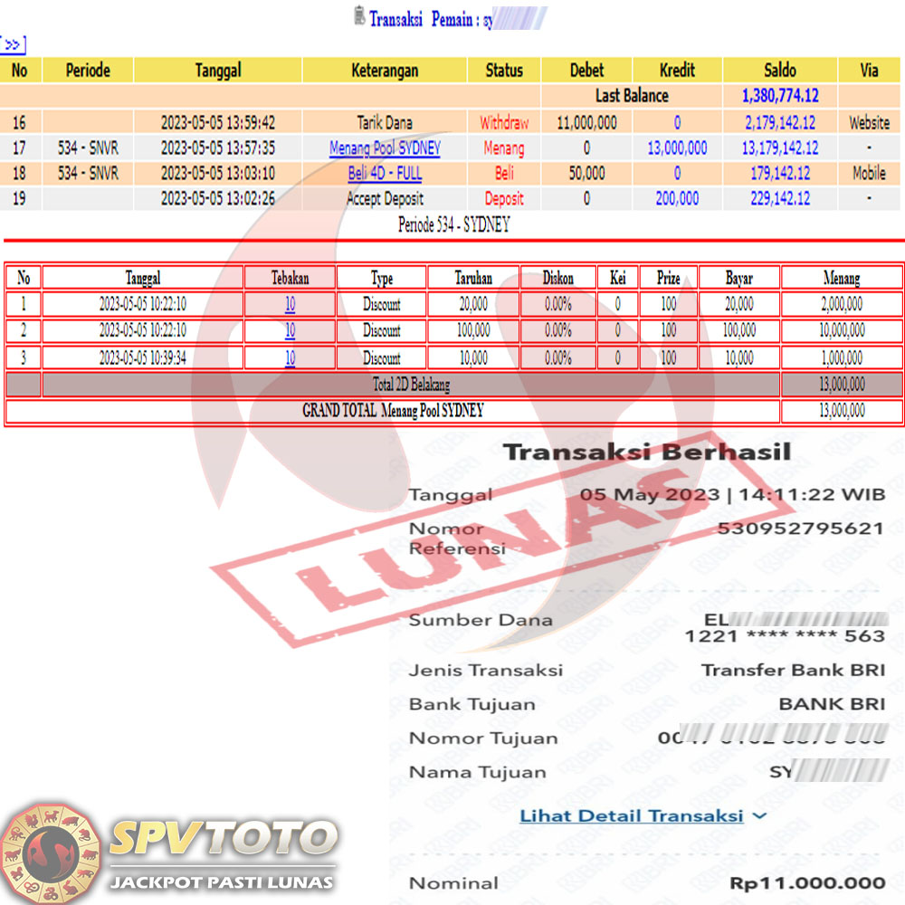 SELAMAT KEPADA MEMBER YANG MENDAPATKAN JACKPOT DI SPVTOTO