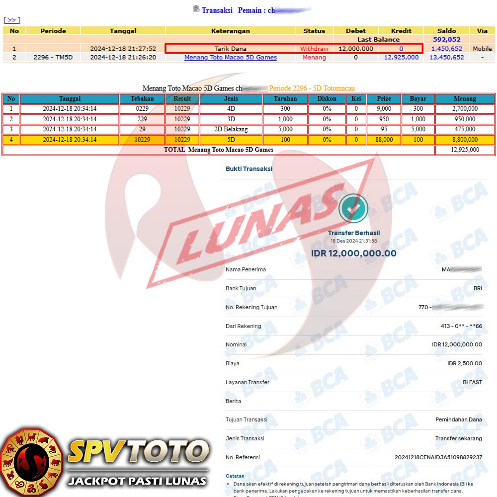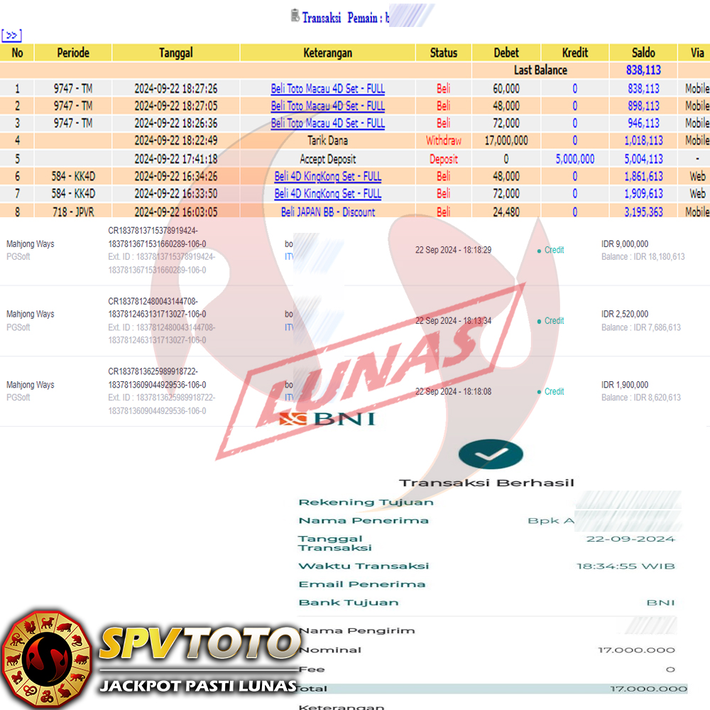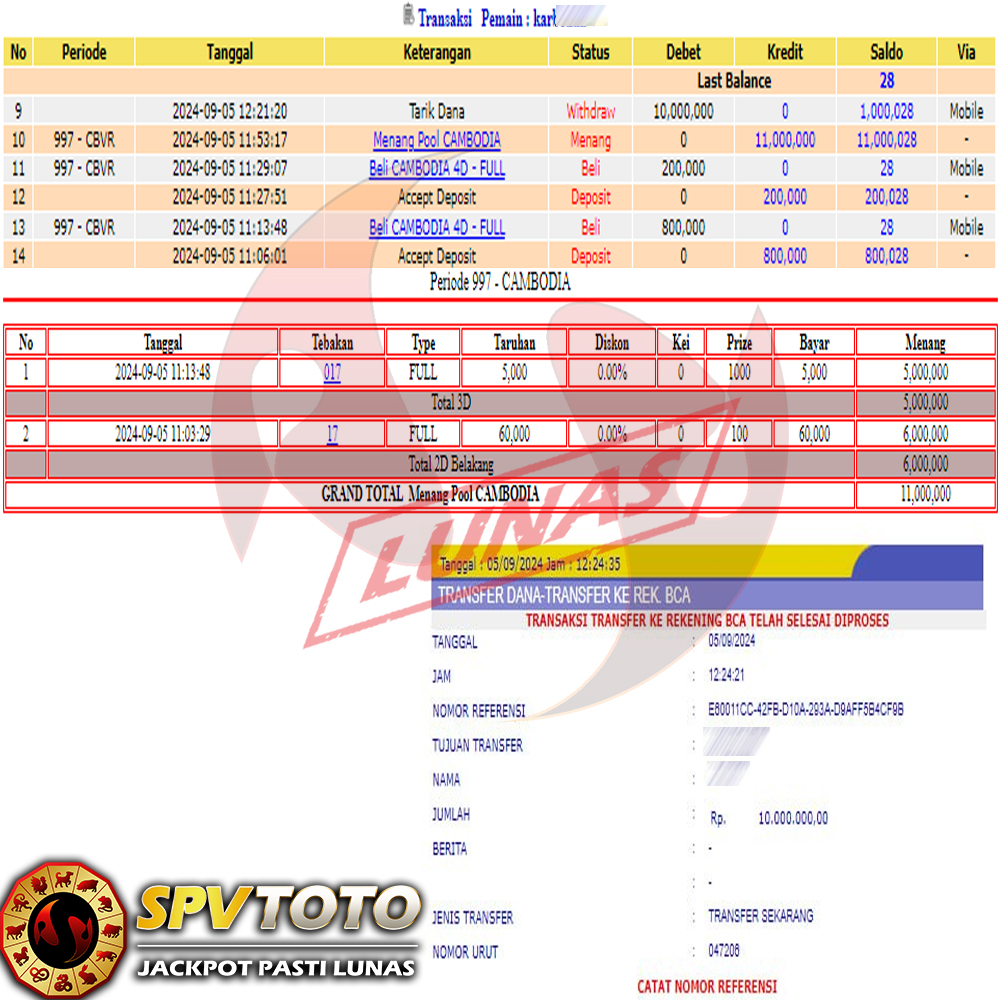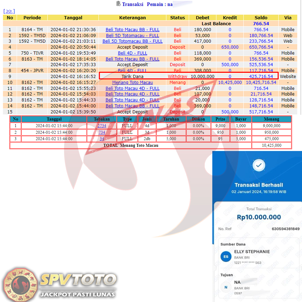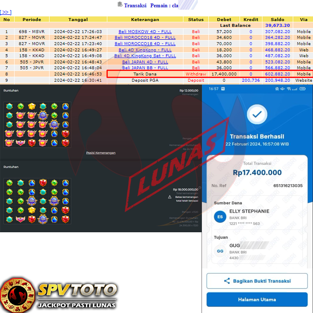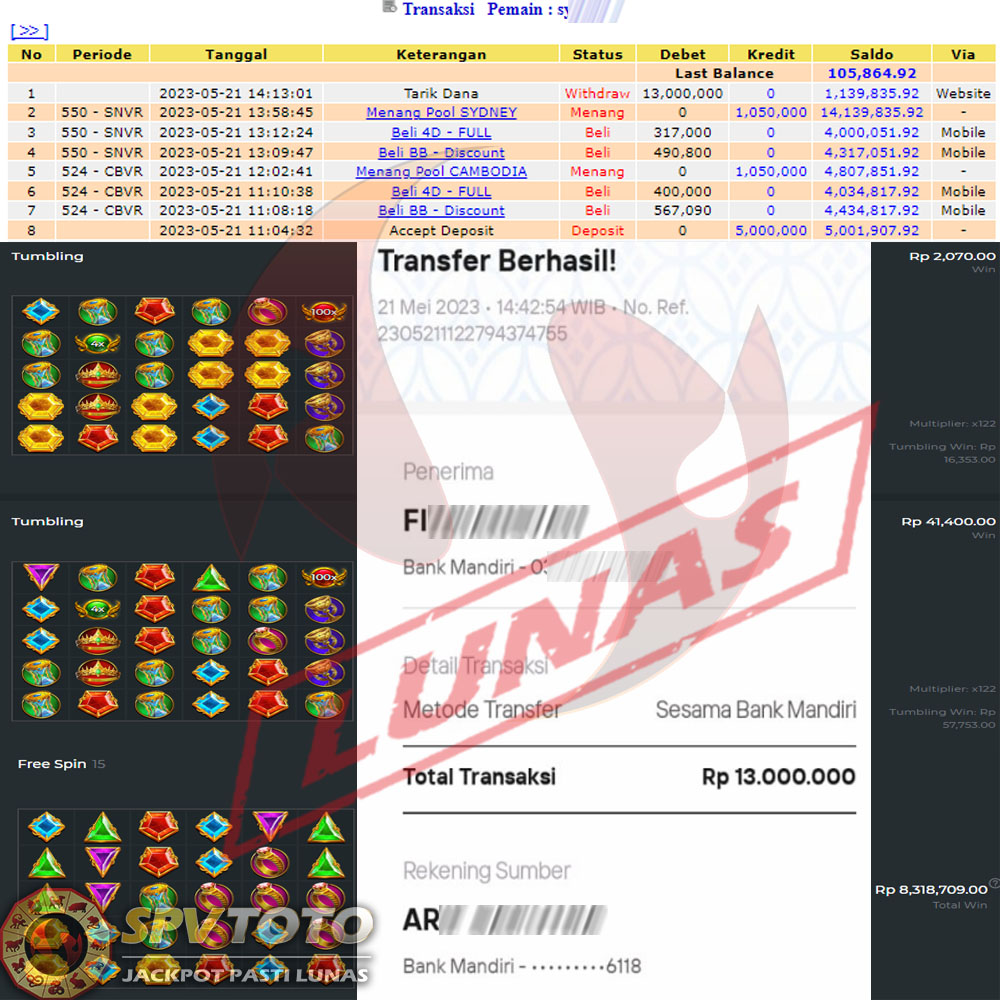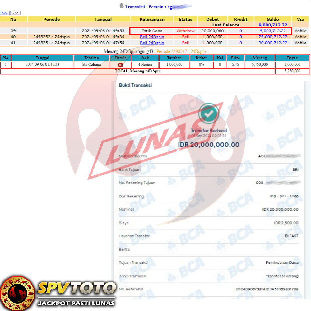 SELAMAT KEPADA MEMBER YANG MENDAPATKAN JACKPOT DI SPVTOTO