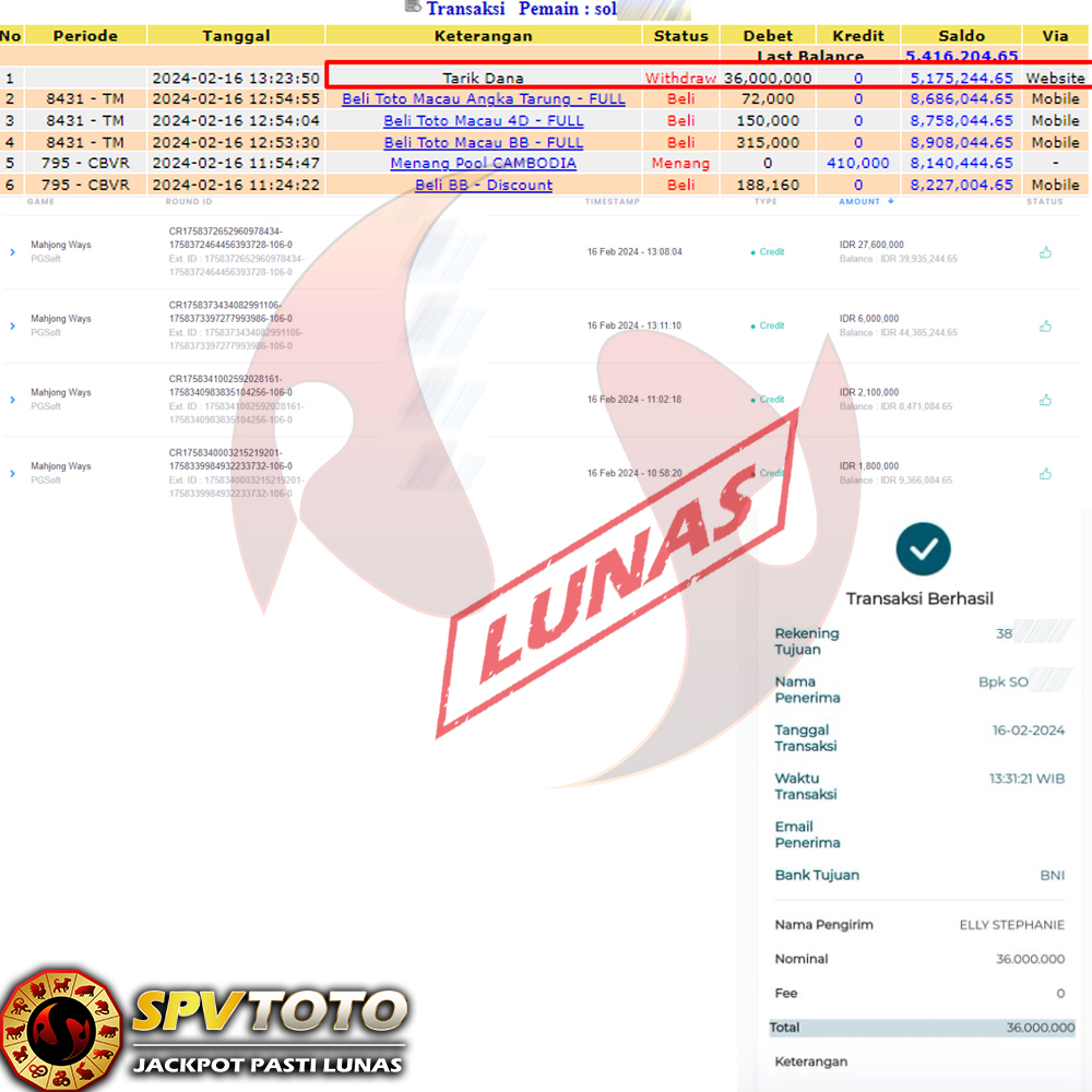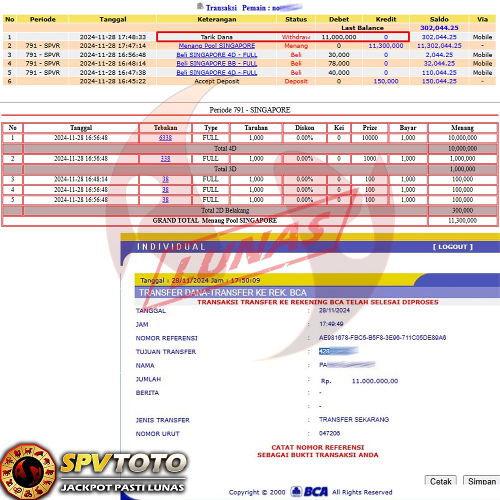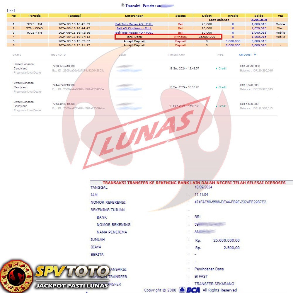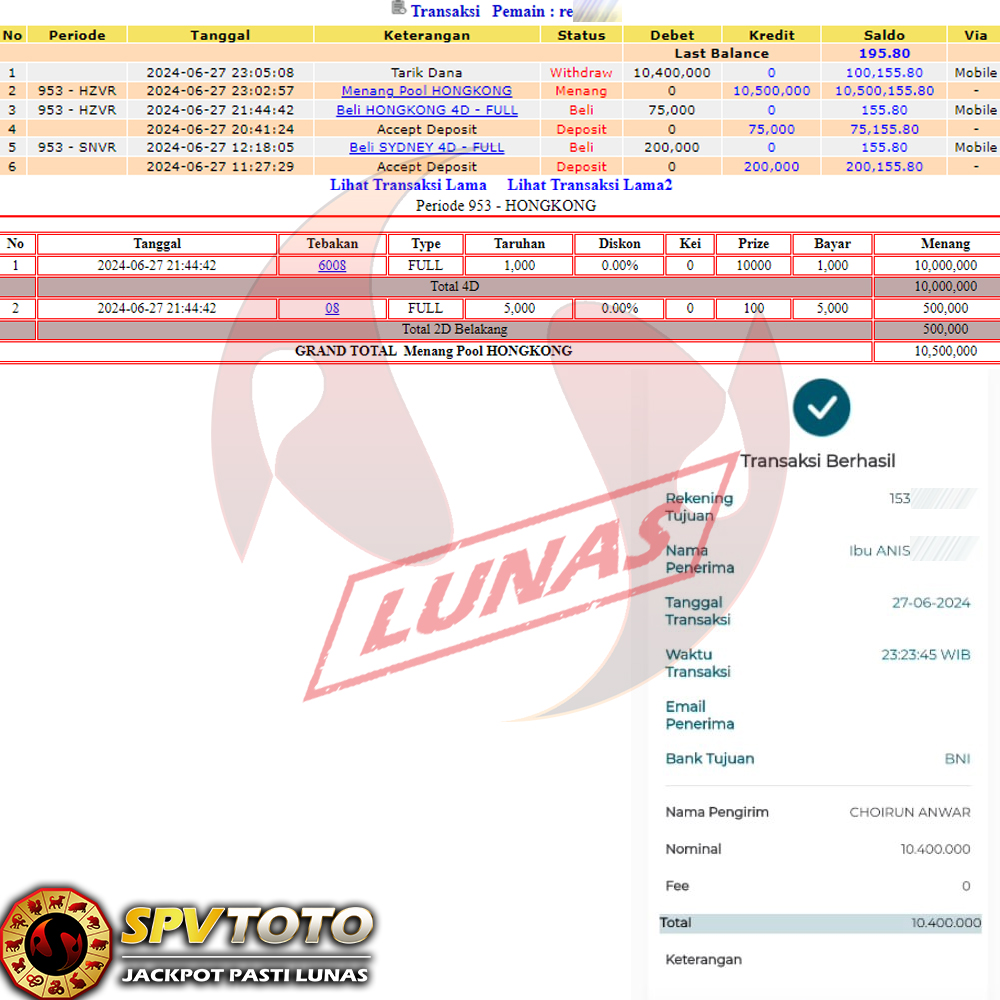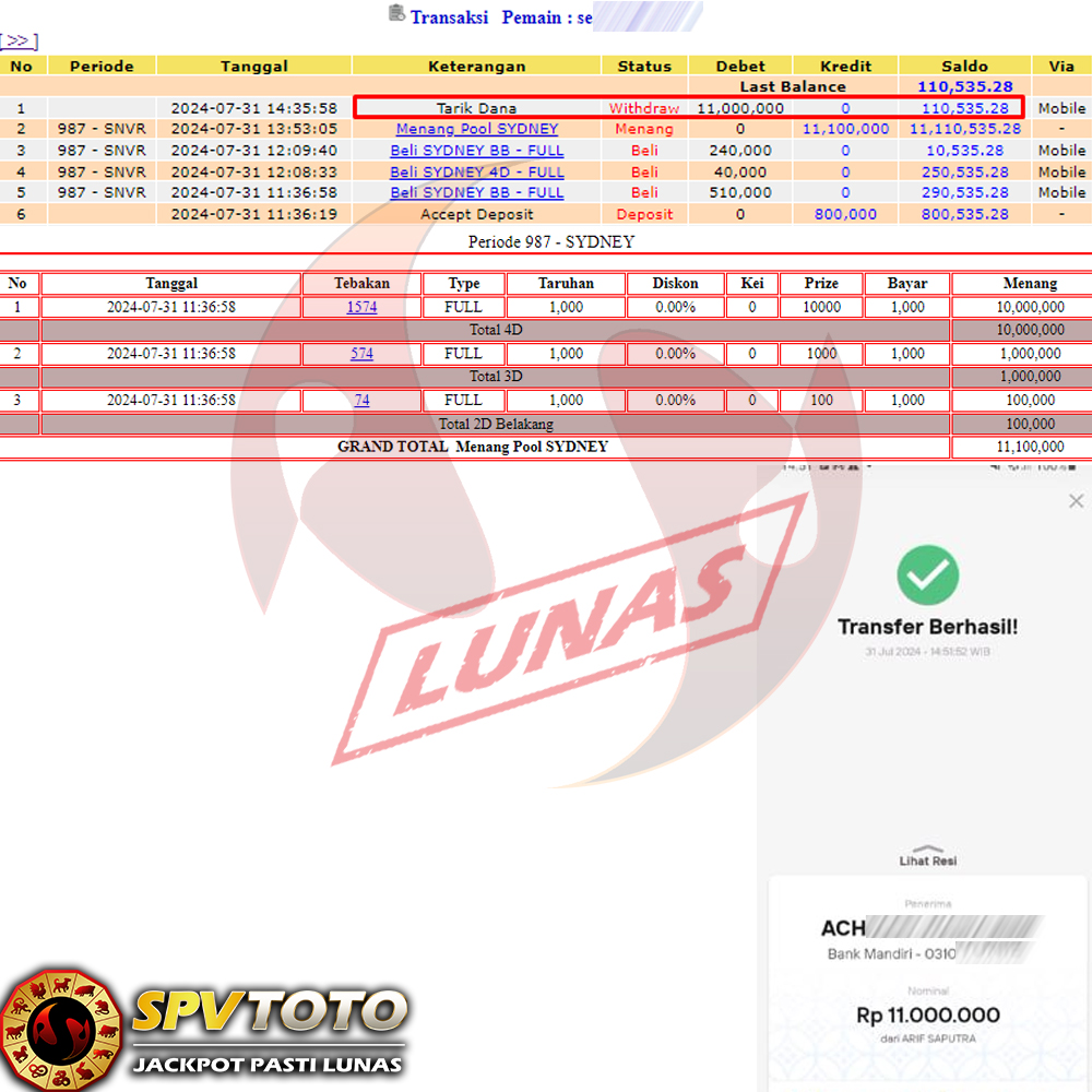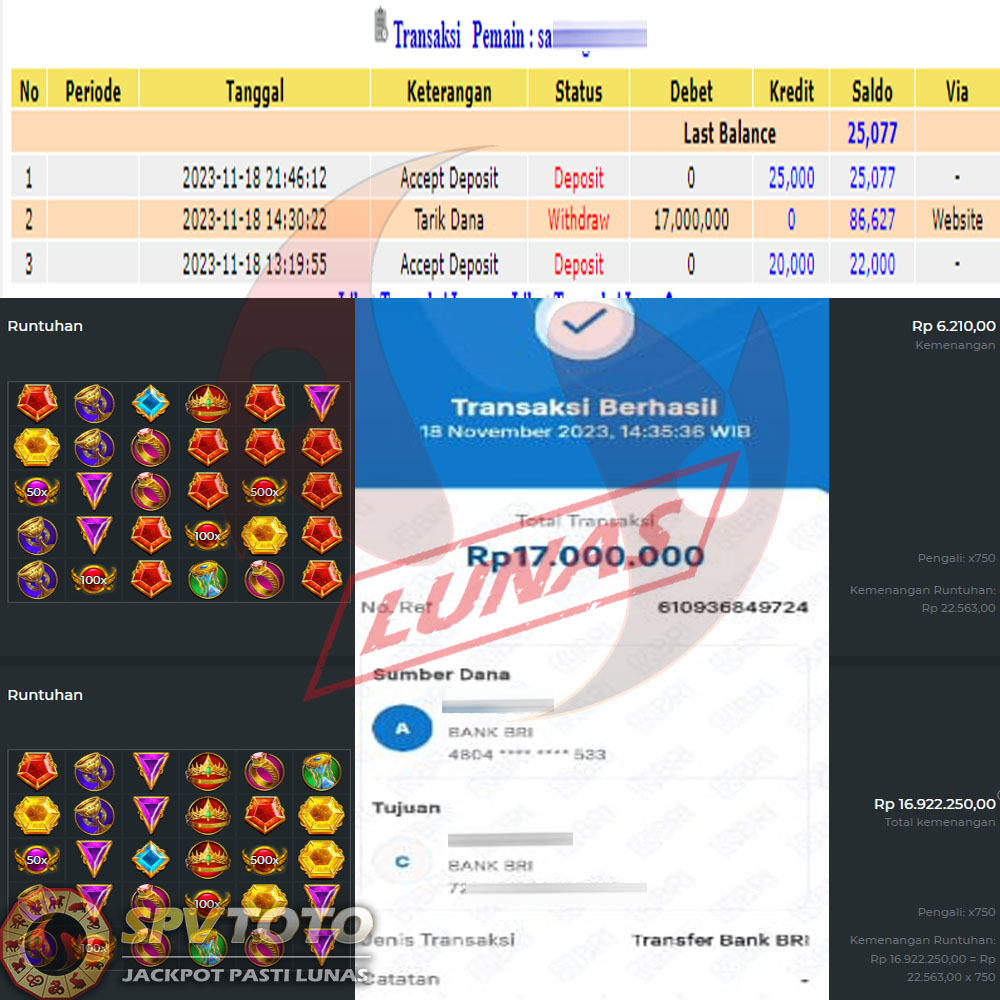 SELAMAT KEPADA MEMBER YANG MENDAPATKAN JACKPOT DI SPVTOTO