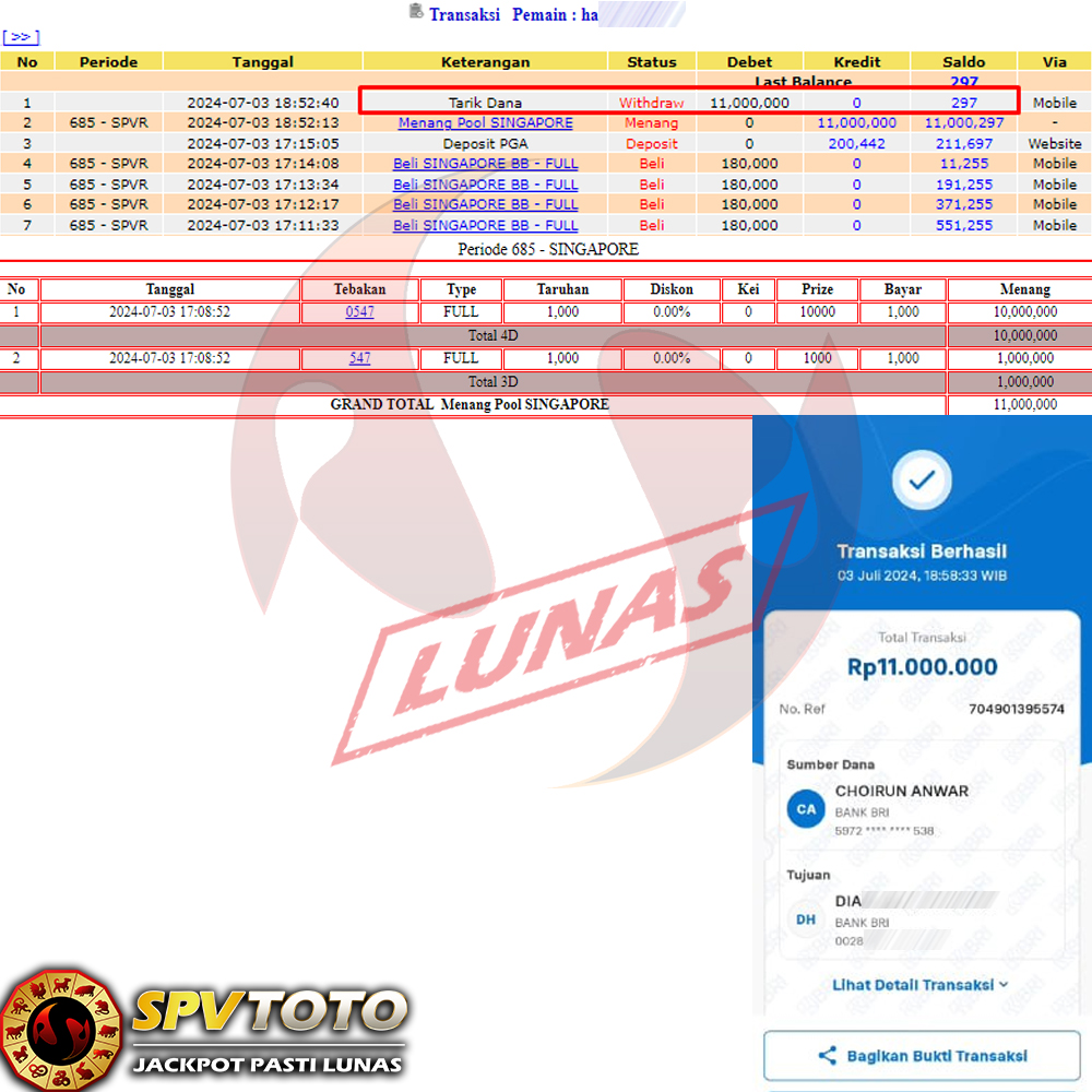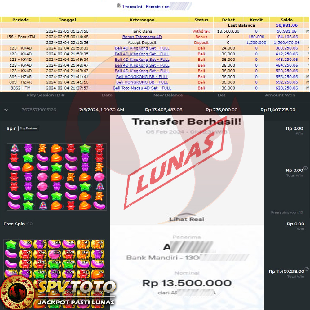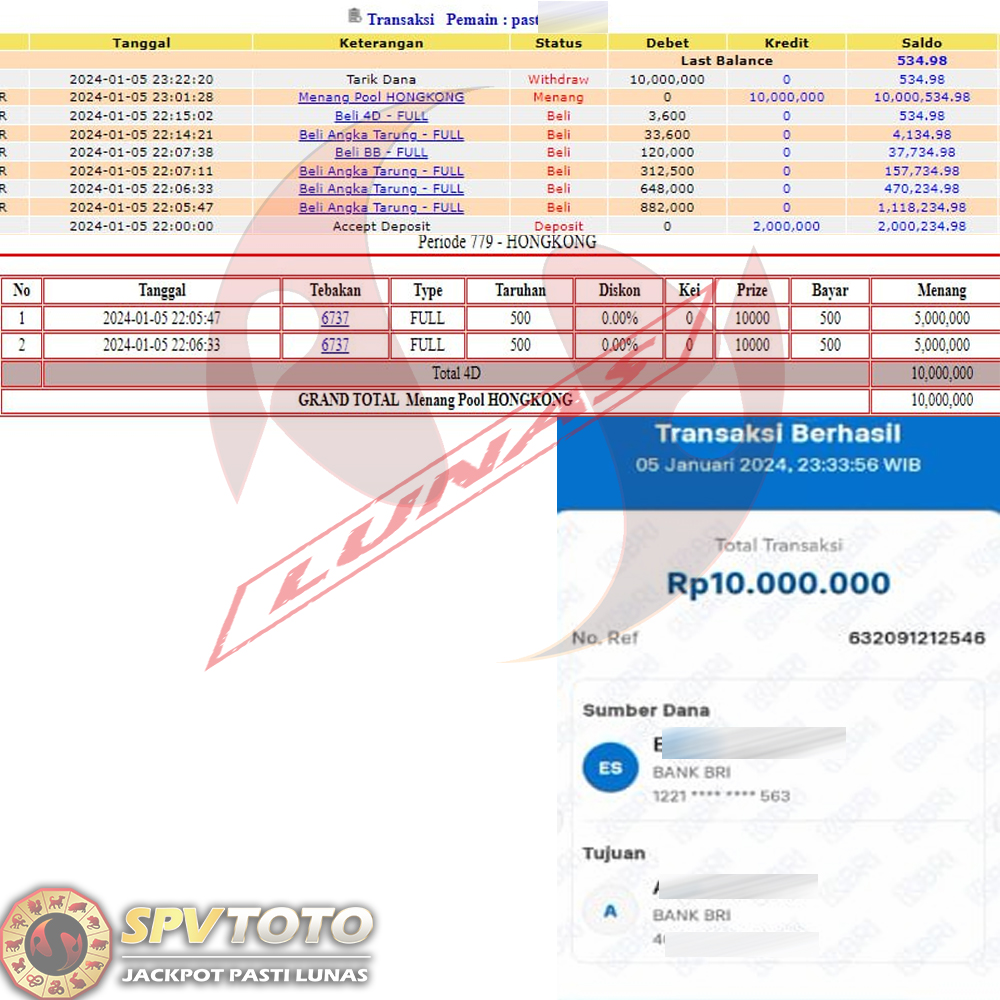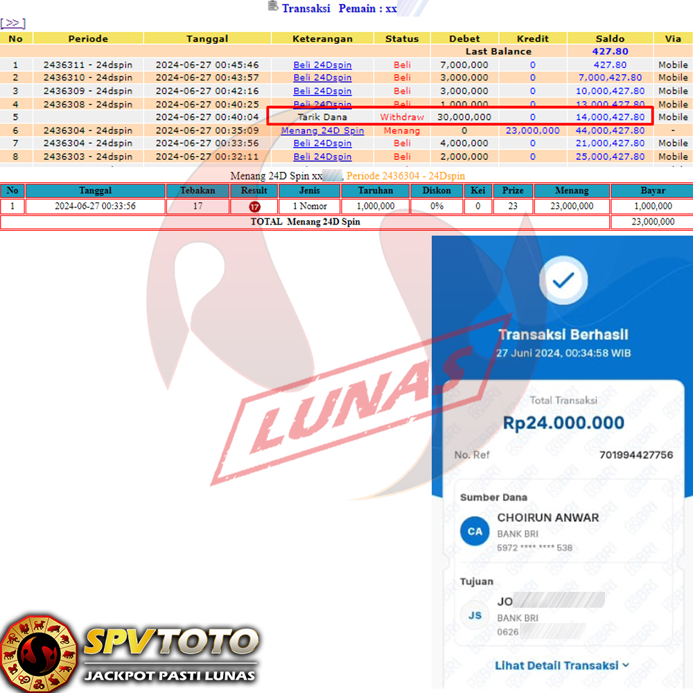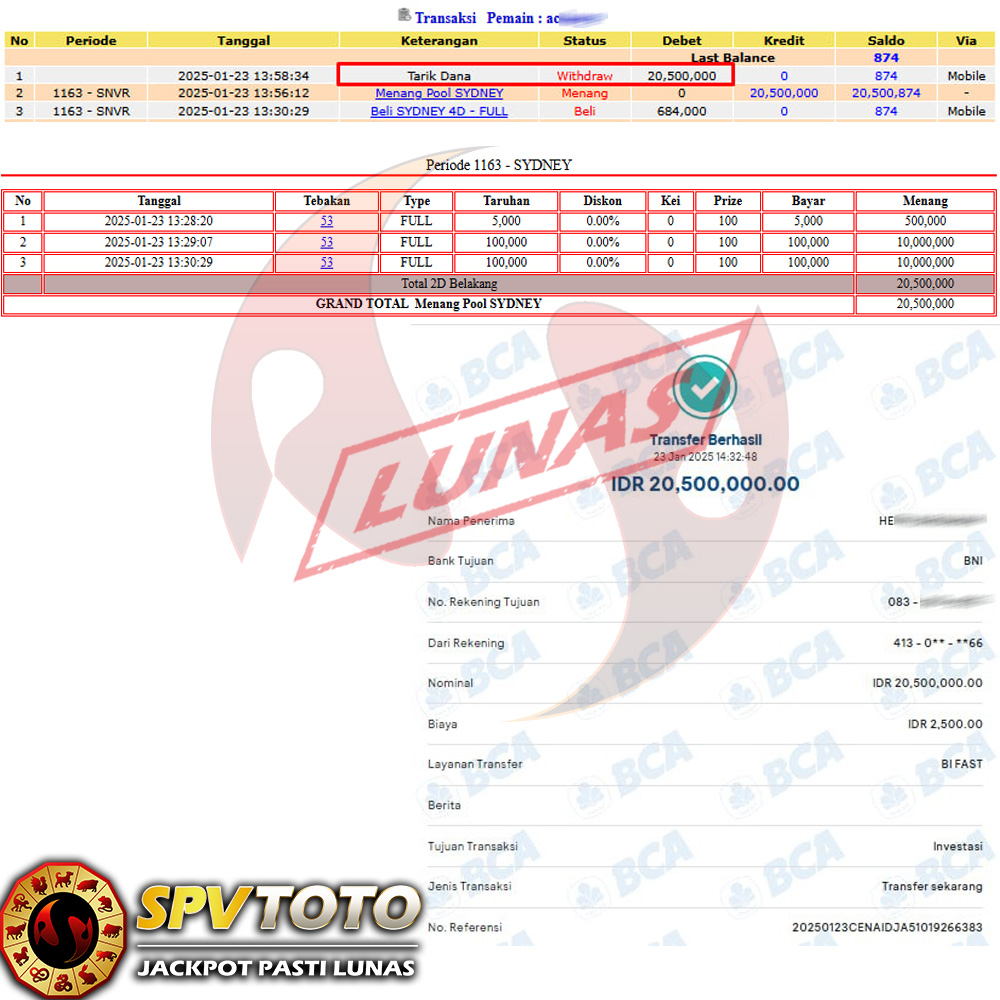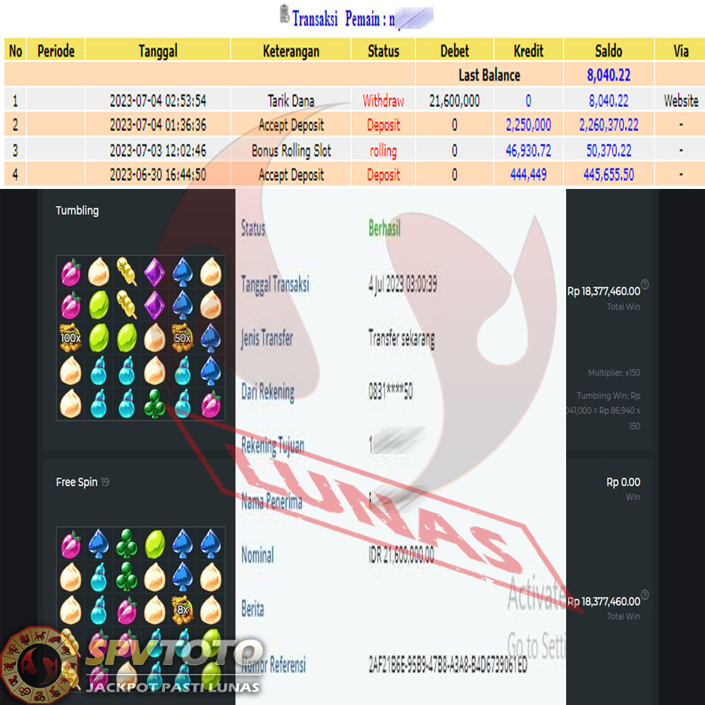 SELAMAT KEPADA MEMBER YANG MENDAPATKAN JACKPOT DI SPVTOTO