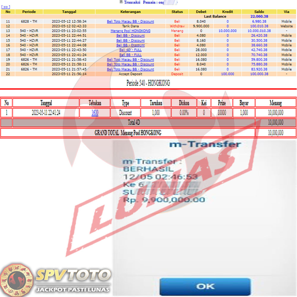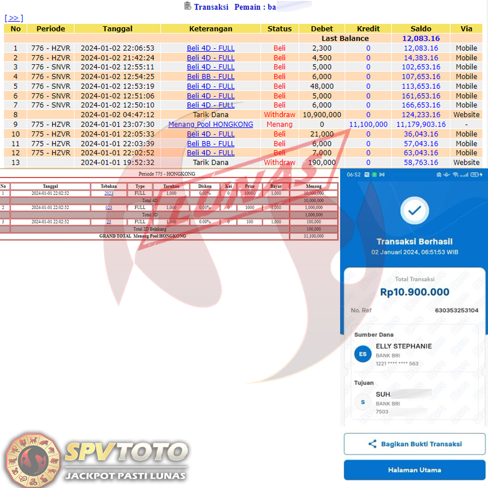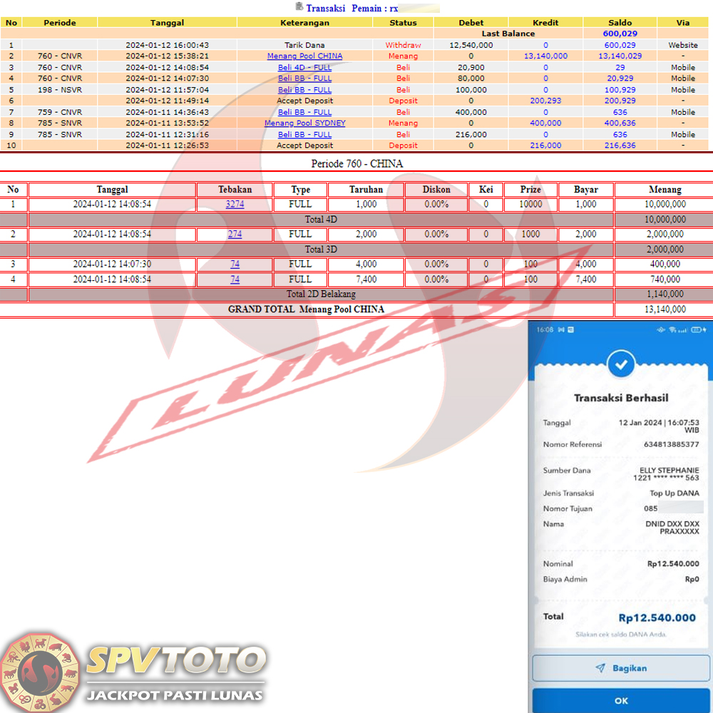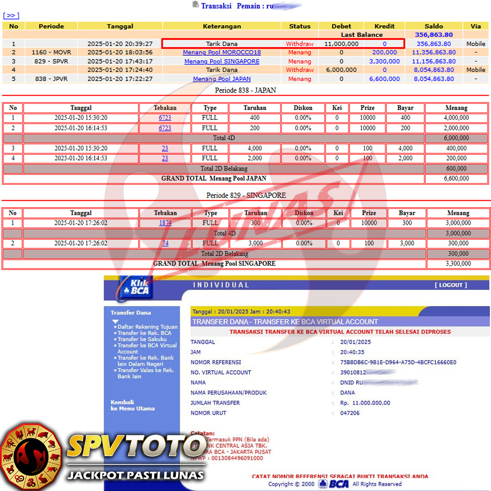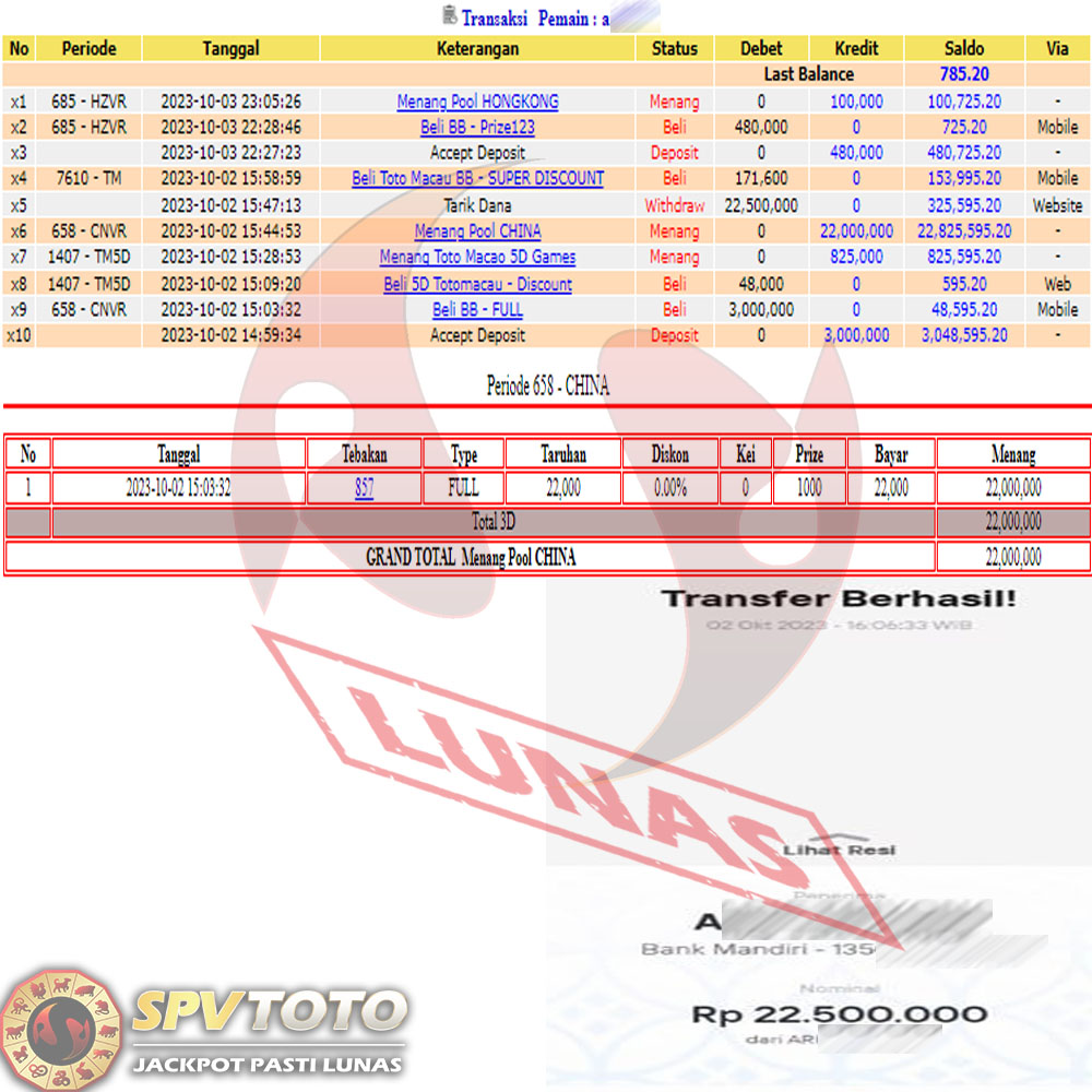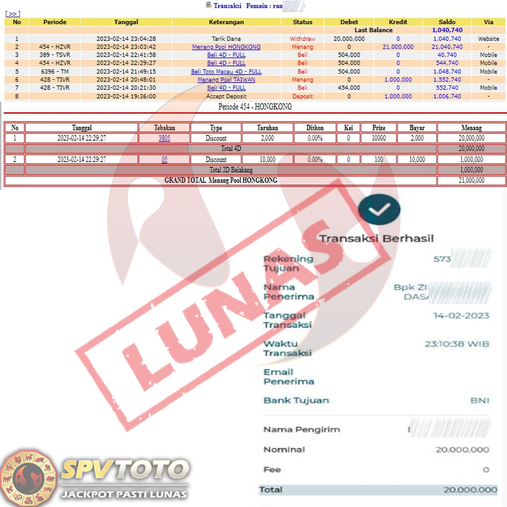 SELAMAT KEPADA MEMBER YANG MENDAPATKAN JACKPOT DI SPVTOTO