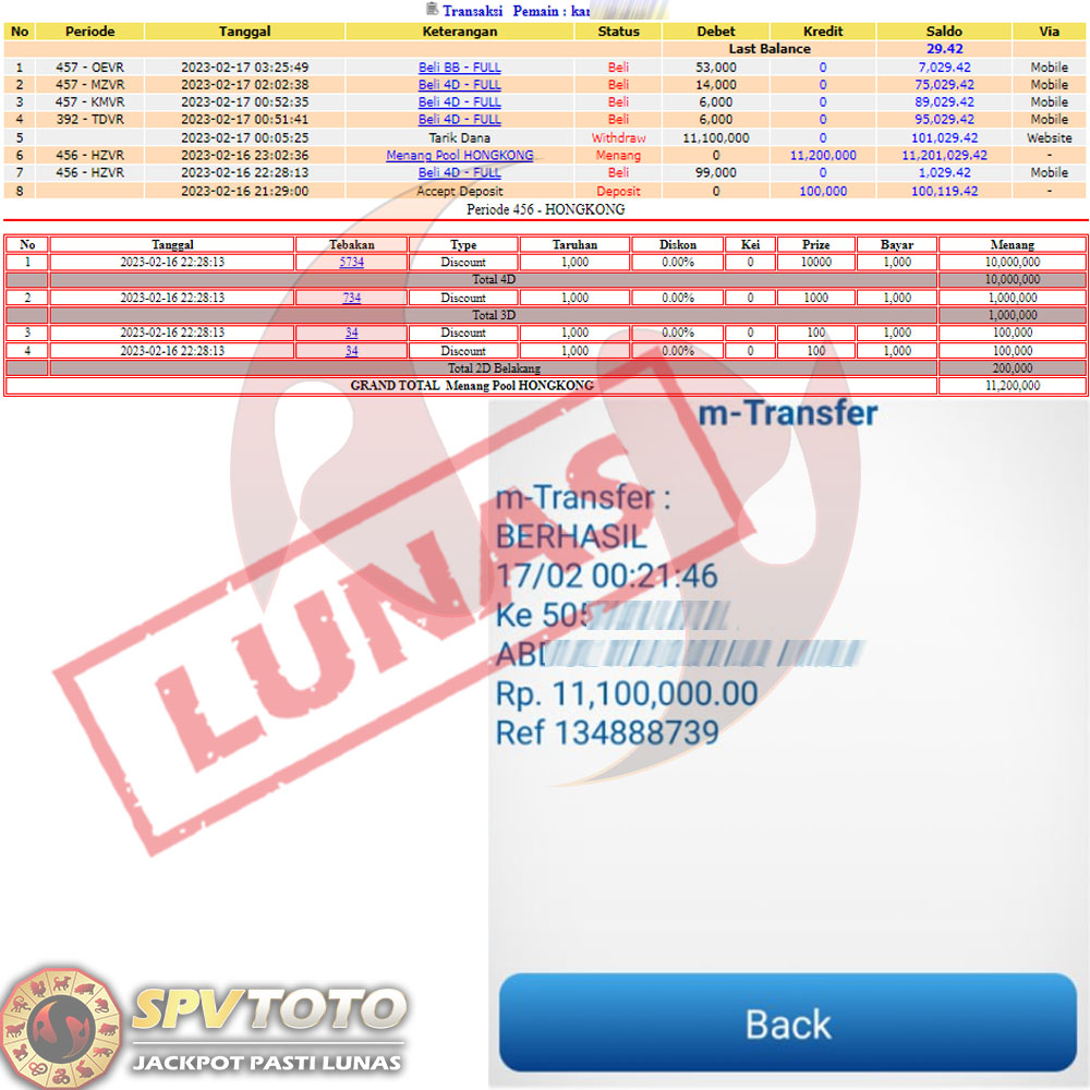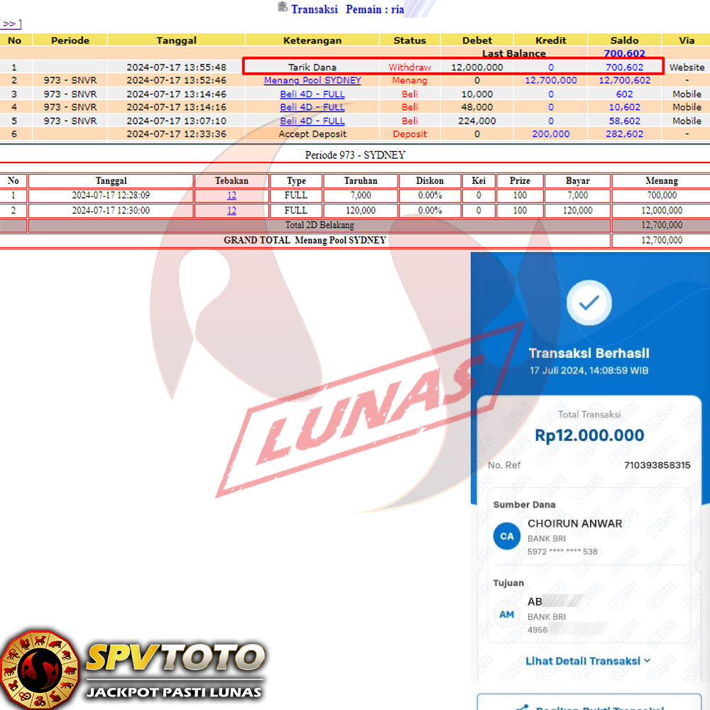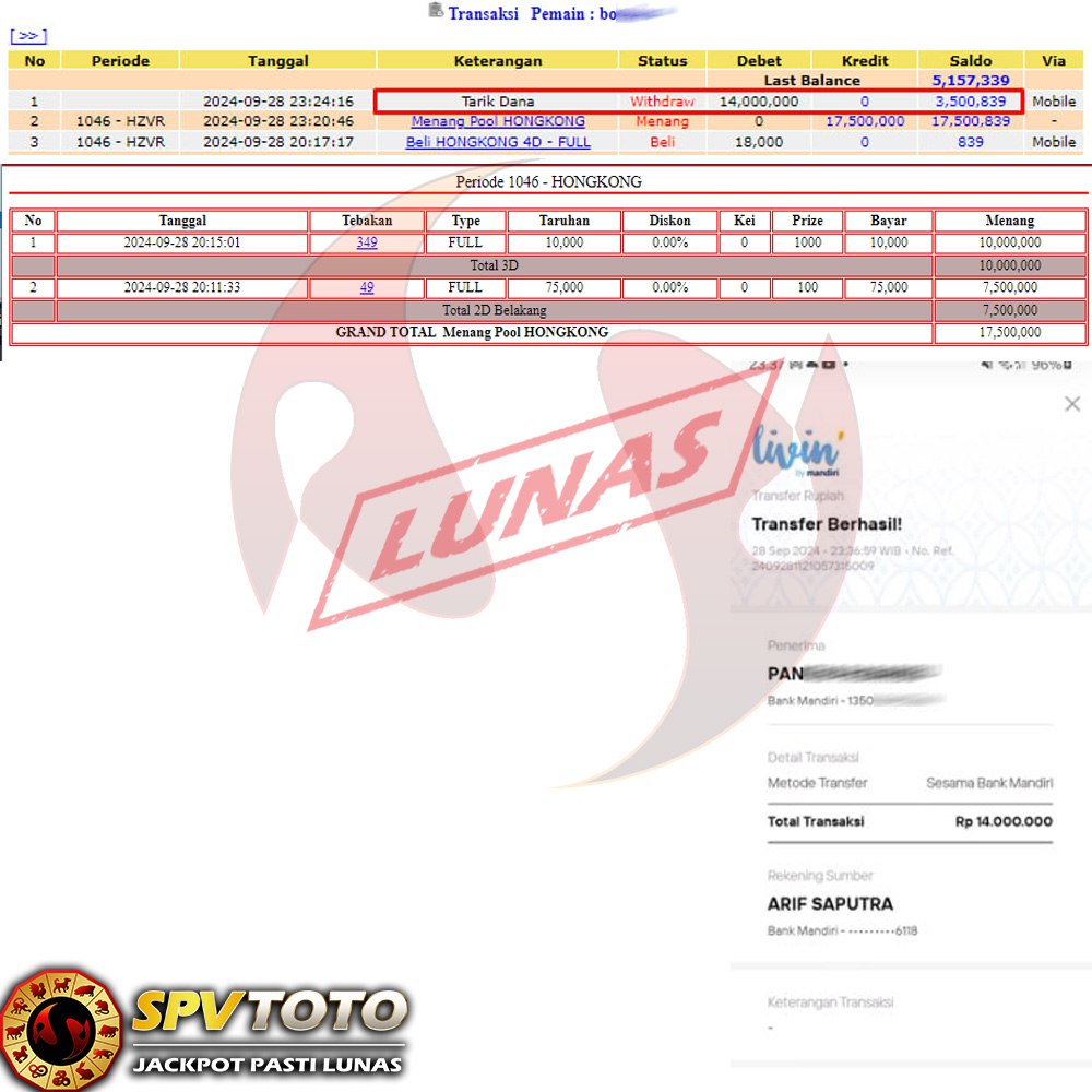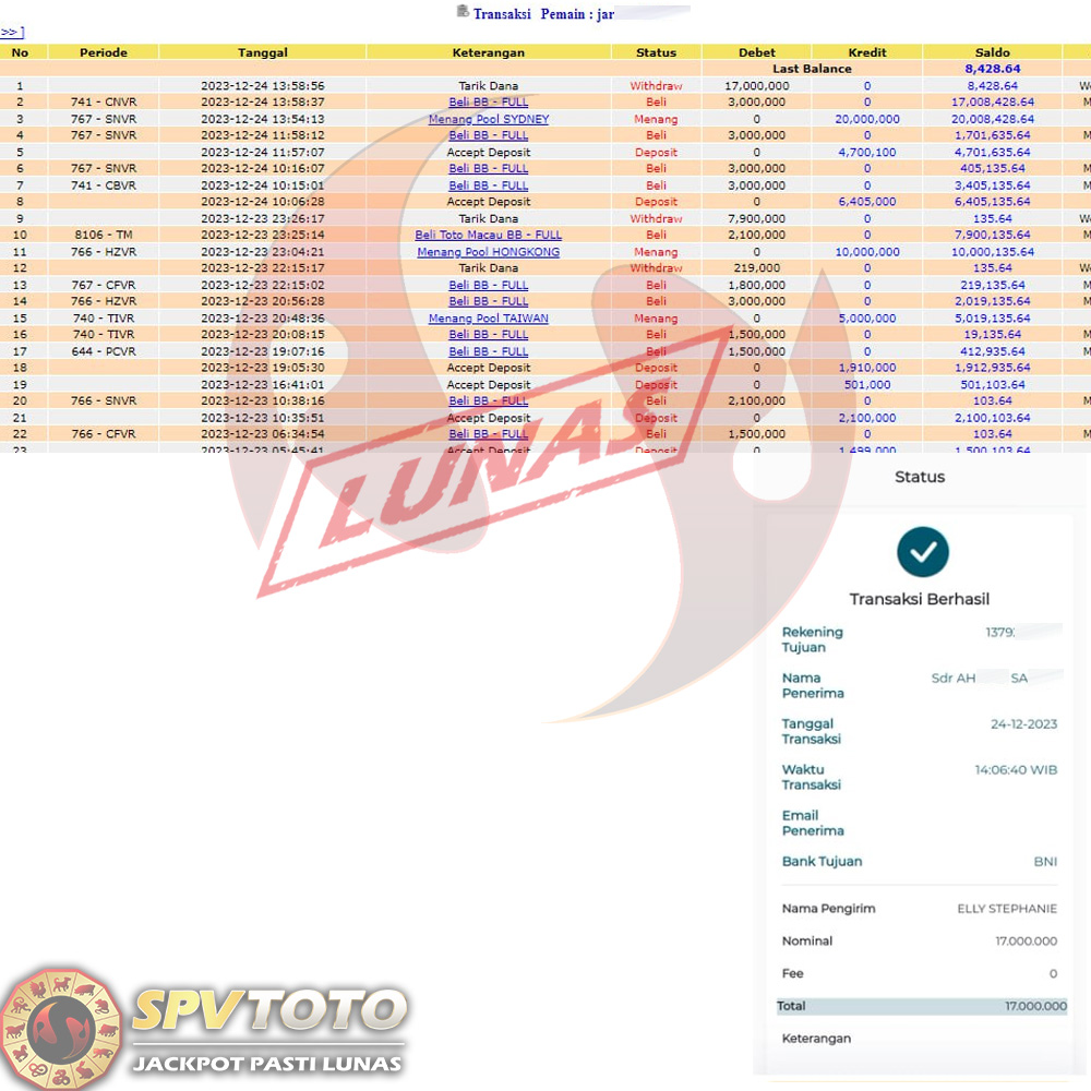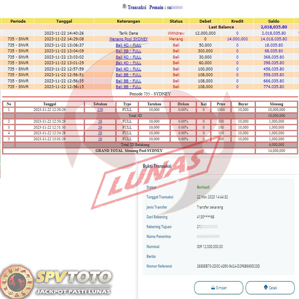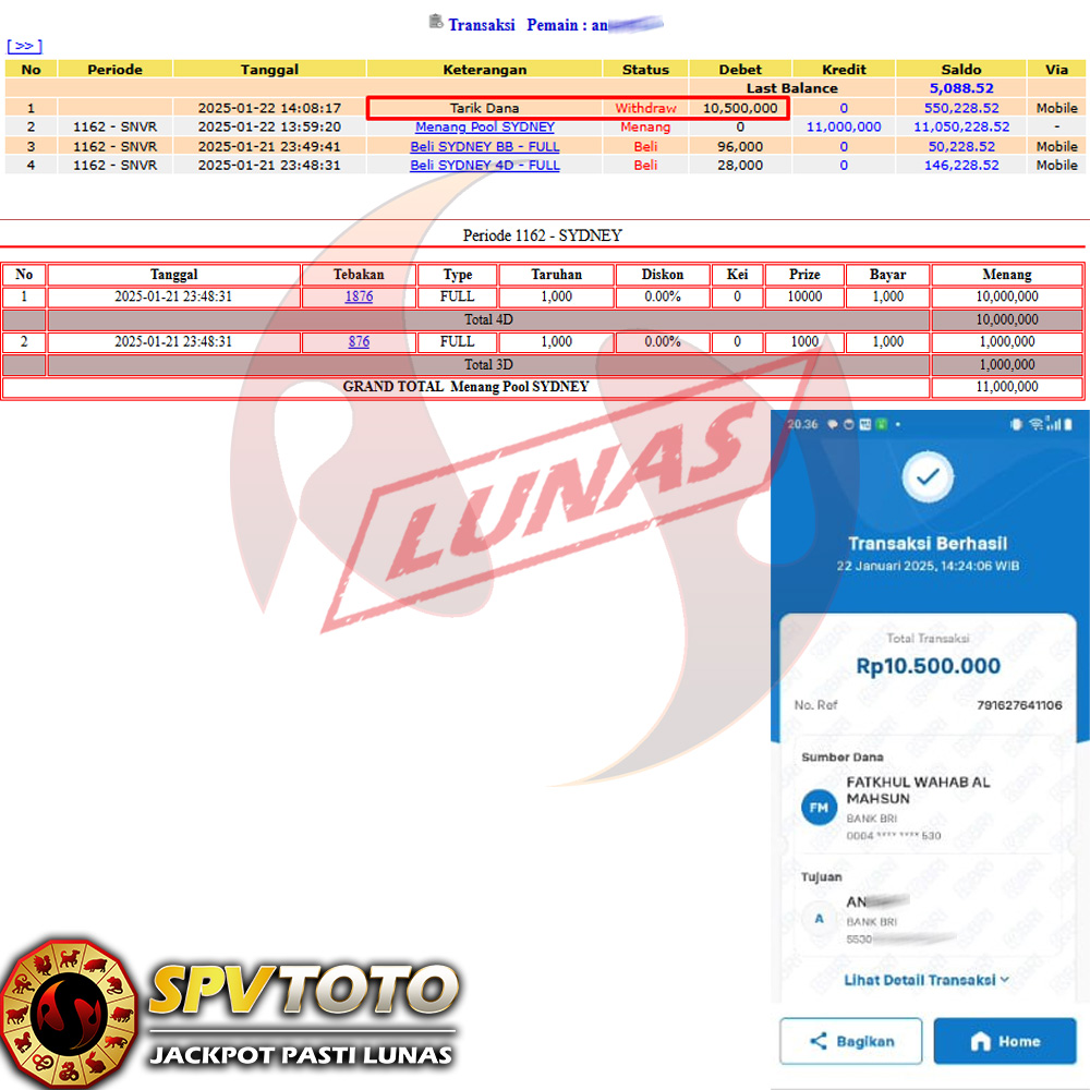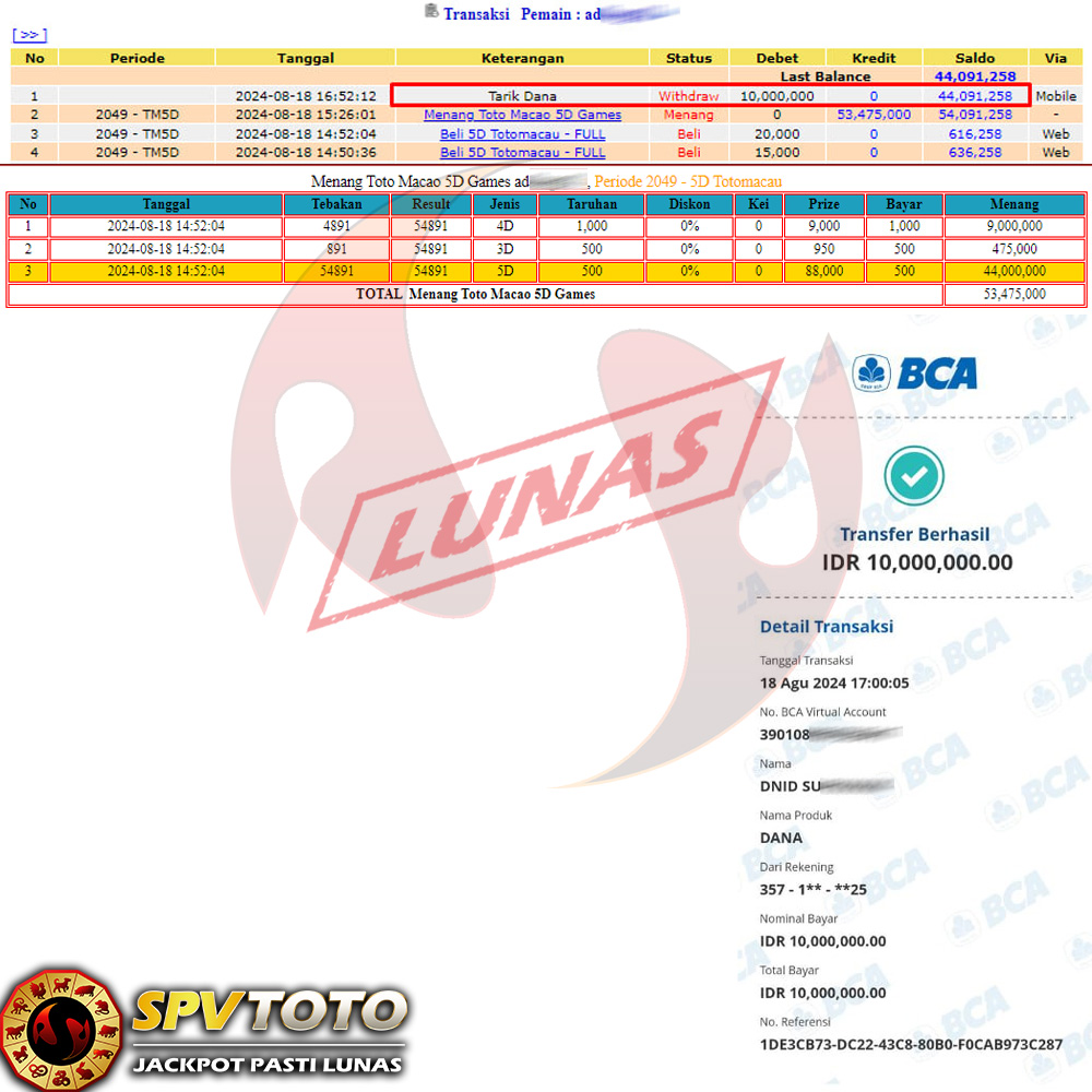 SELAMAT KEPADA MEMBER YANG MENDAPATKAN JACKPOT DI SPVTOTO