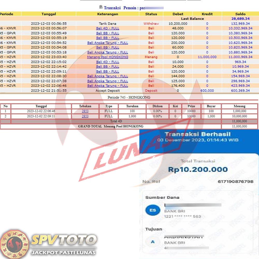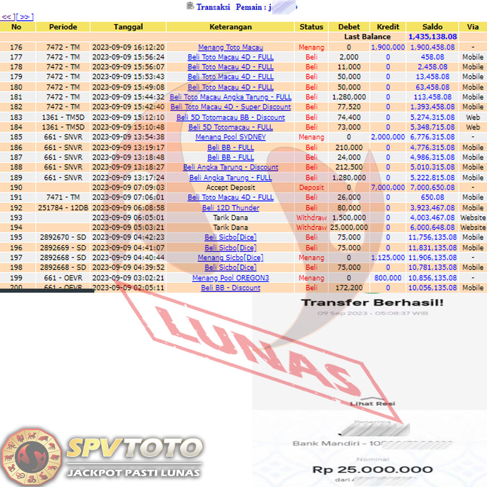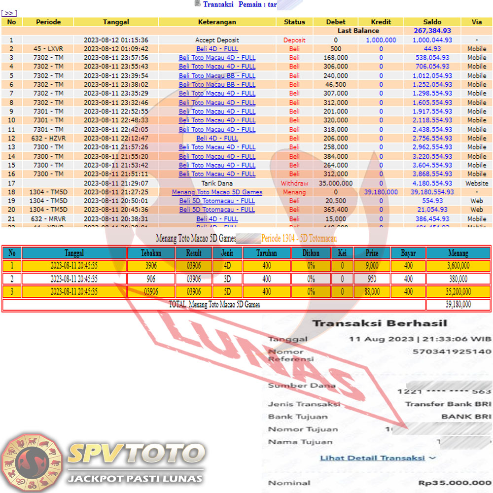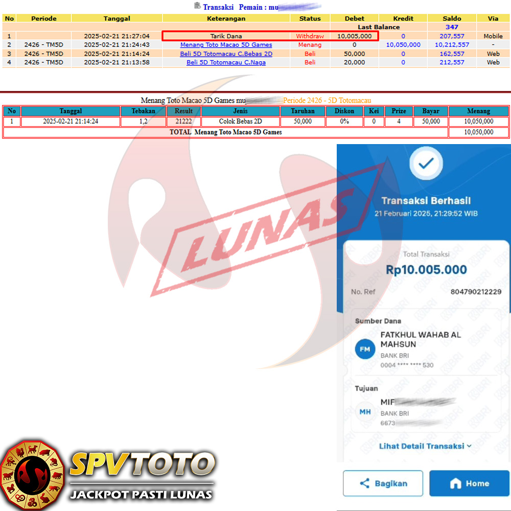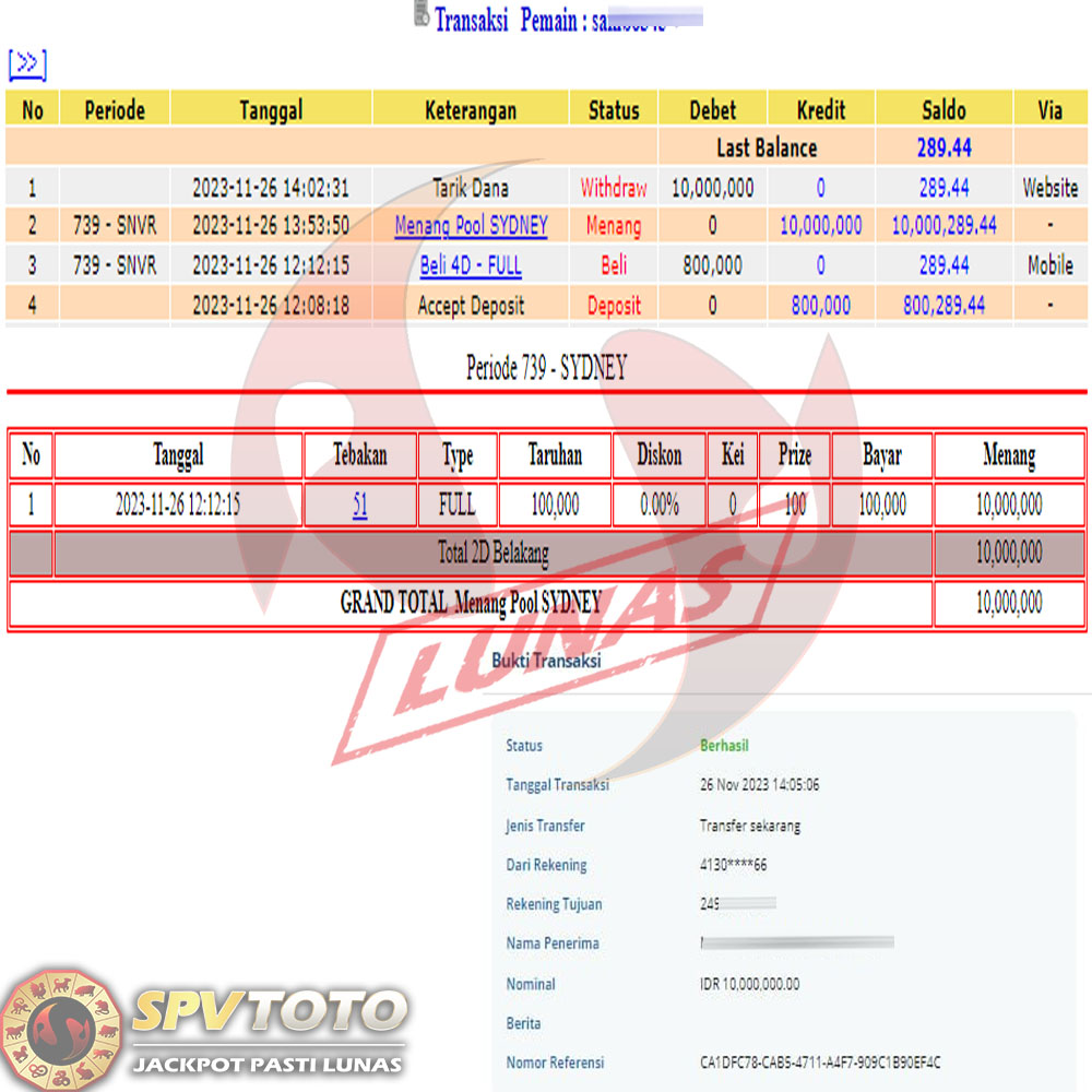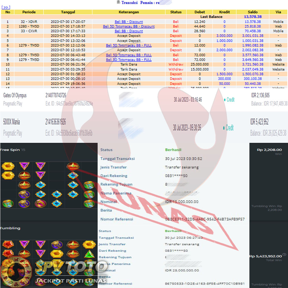 SELAMAT KEPADA MEMBER YANG MENDAPATKAN JACKPOT DI SPVTOTO