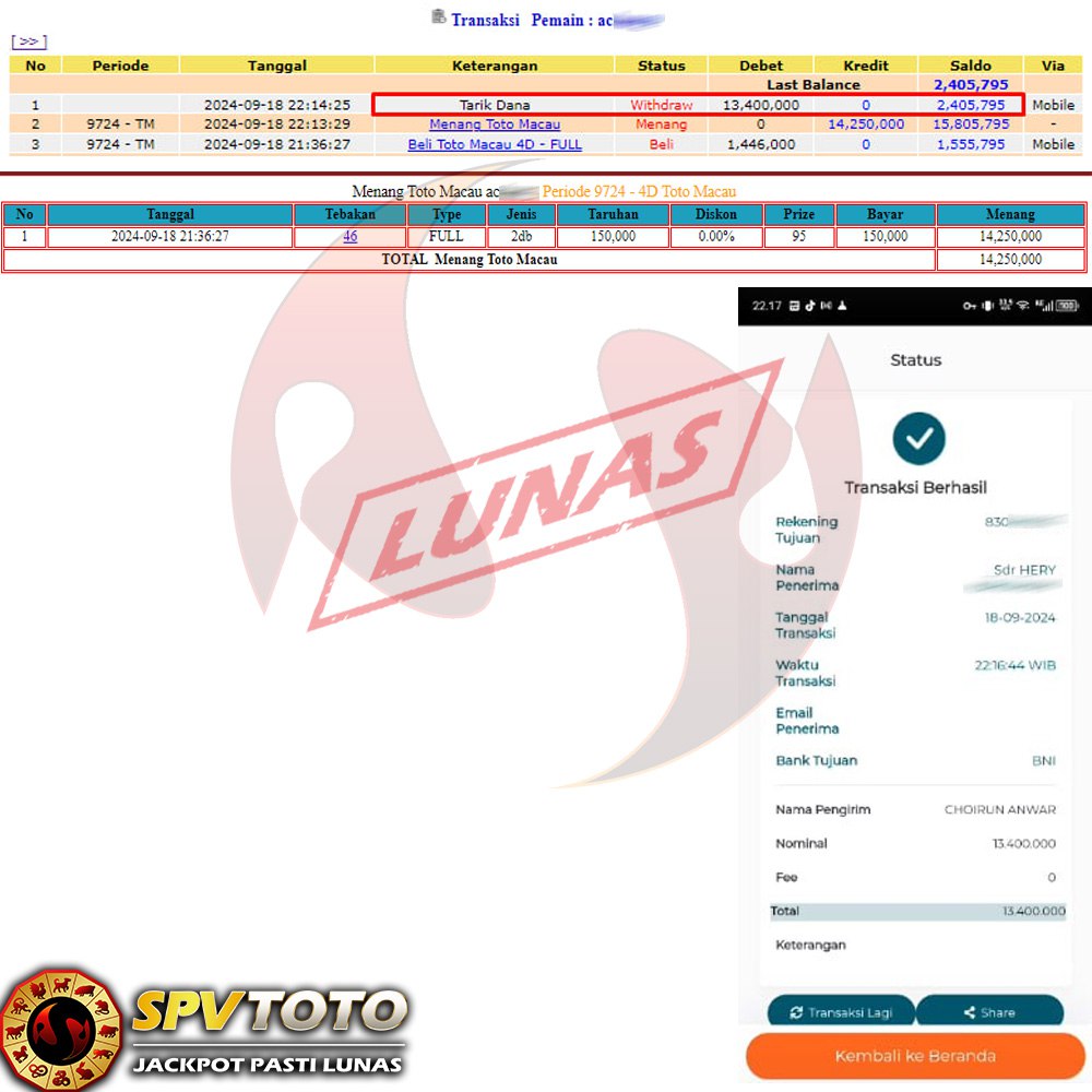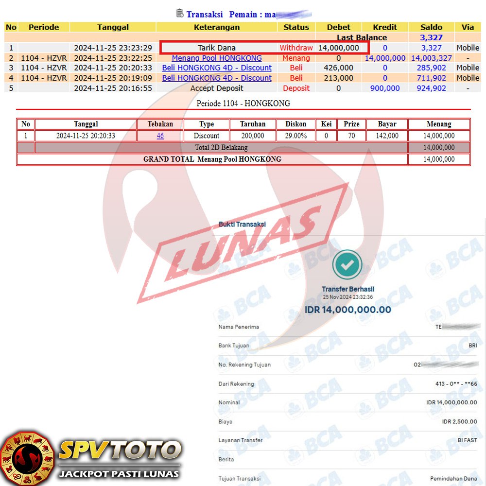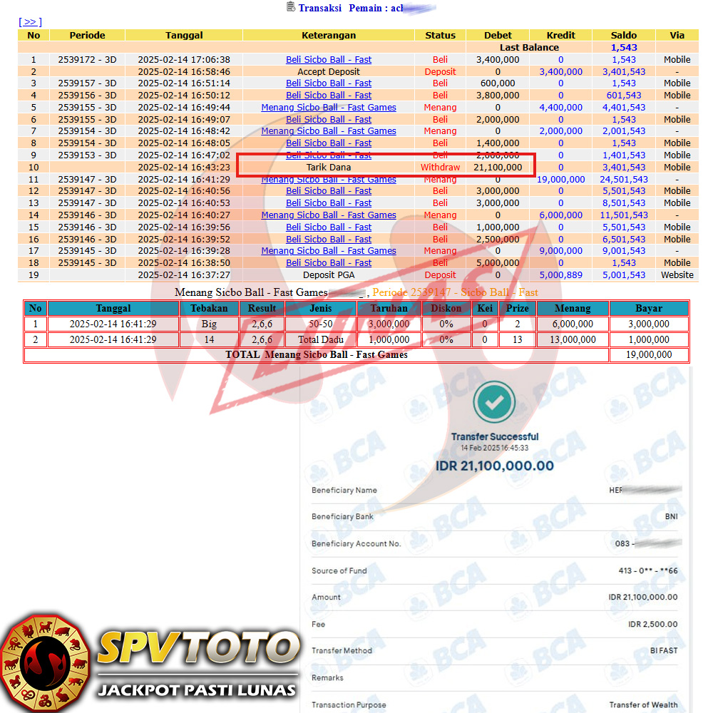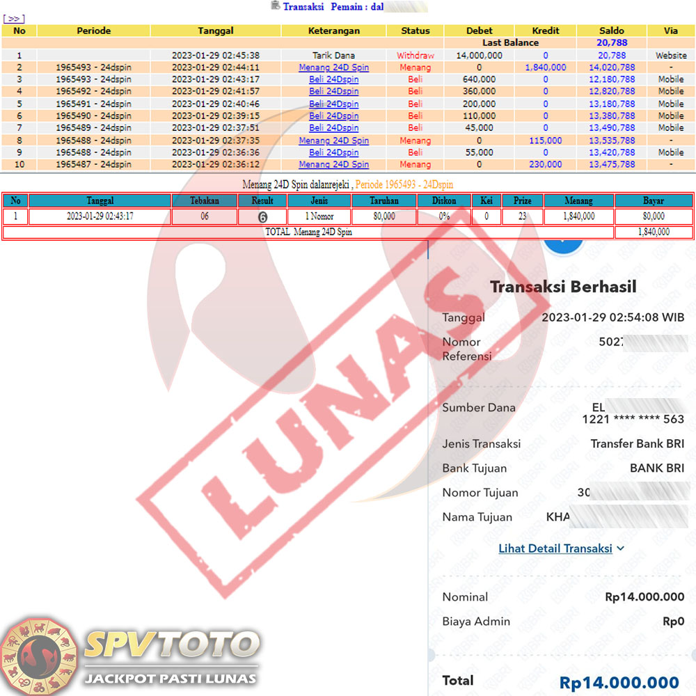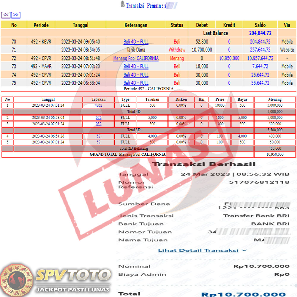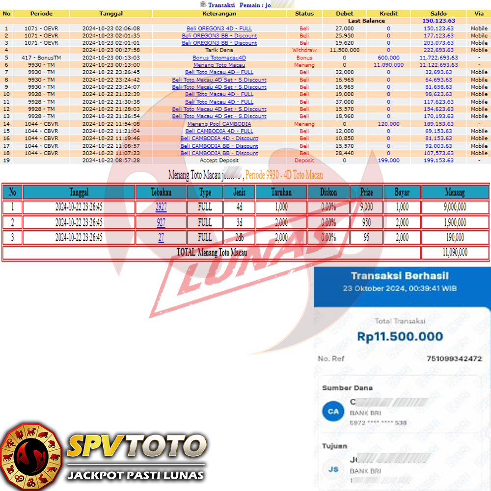 SELAMAT KEPADA MEMBER YANG MENDAPATKAN JACKPOT DI SPVTOTO