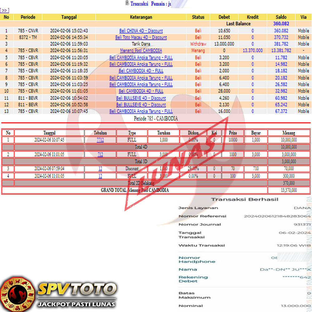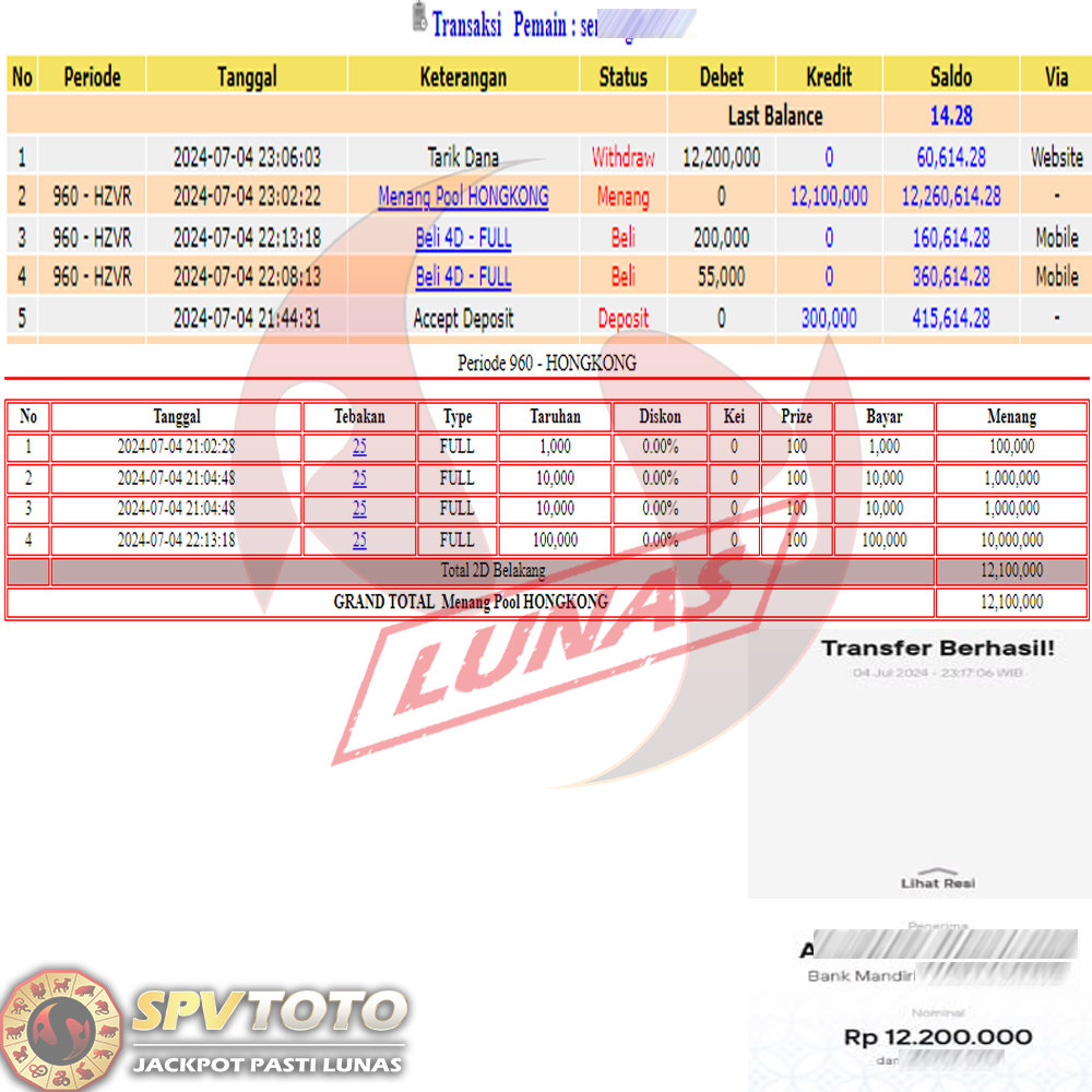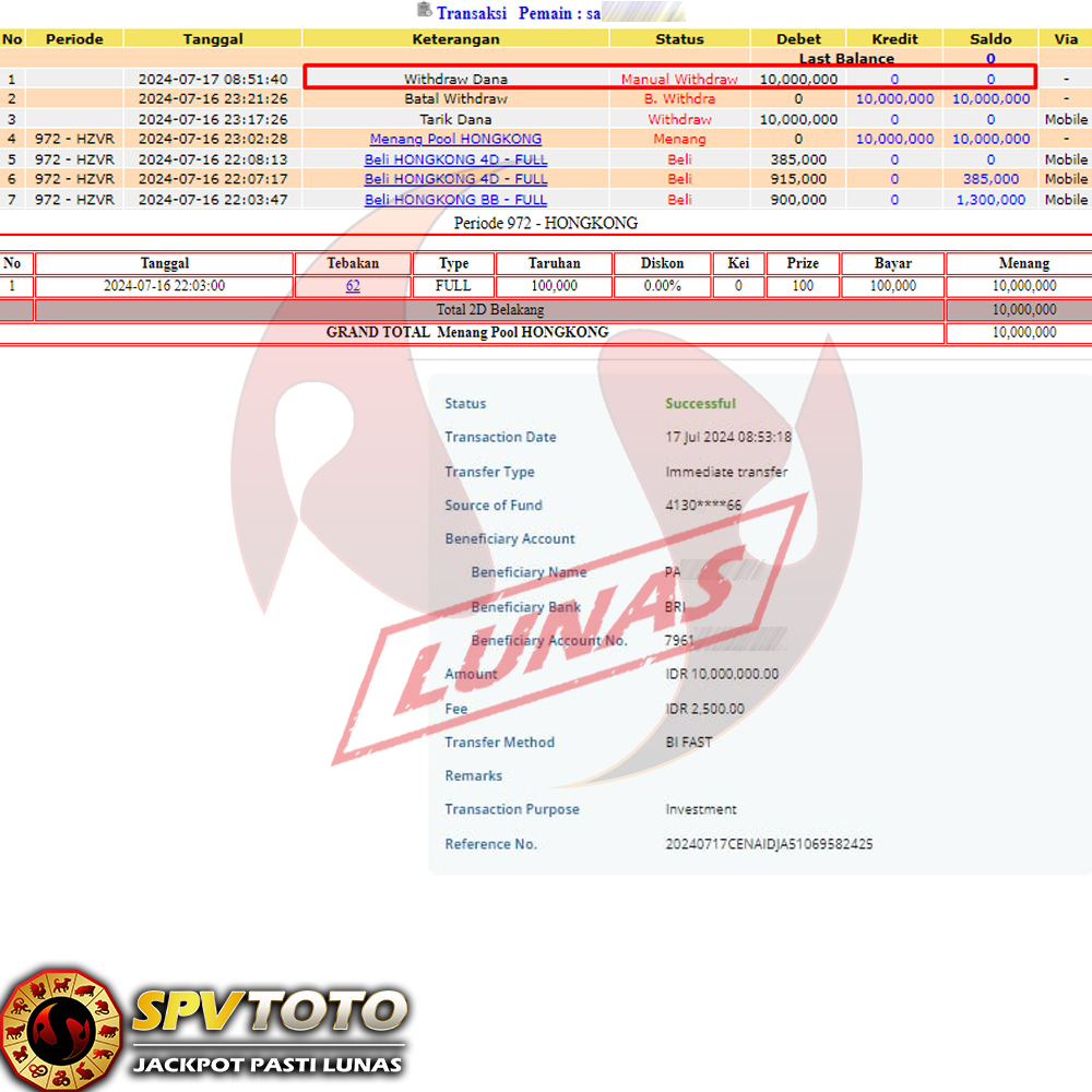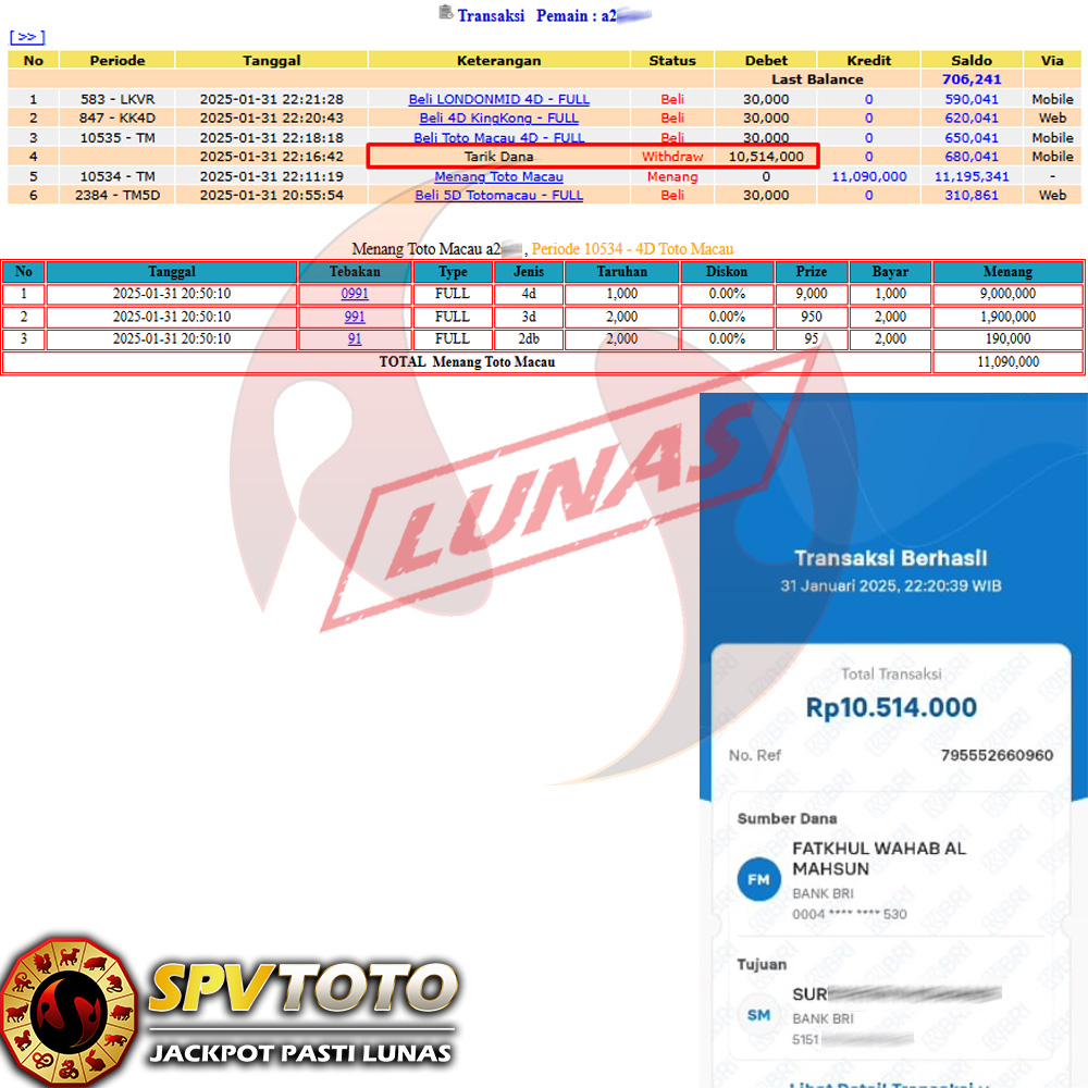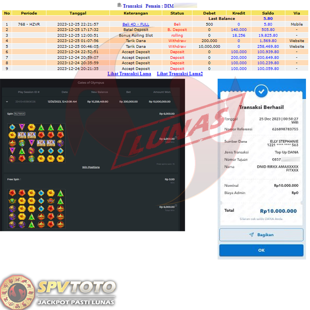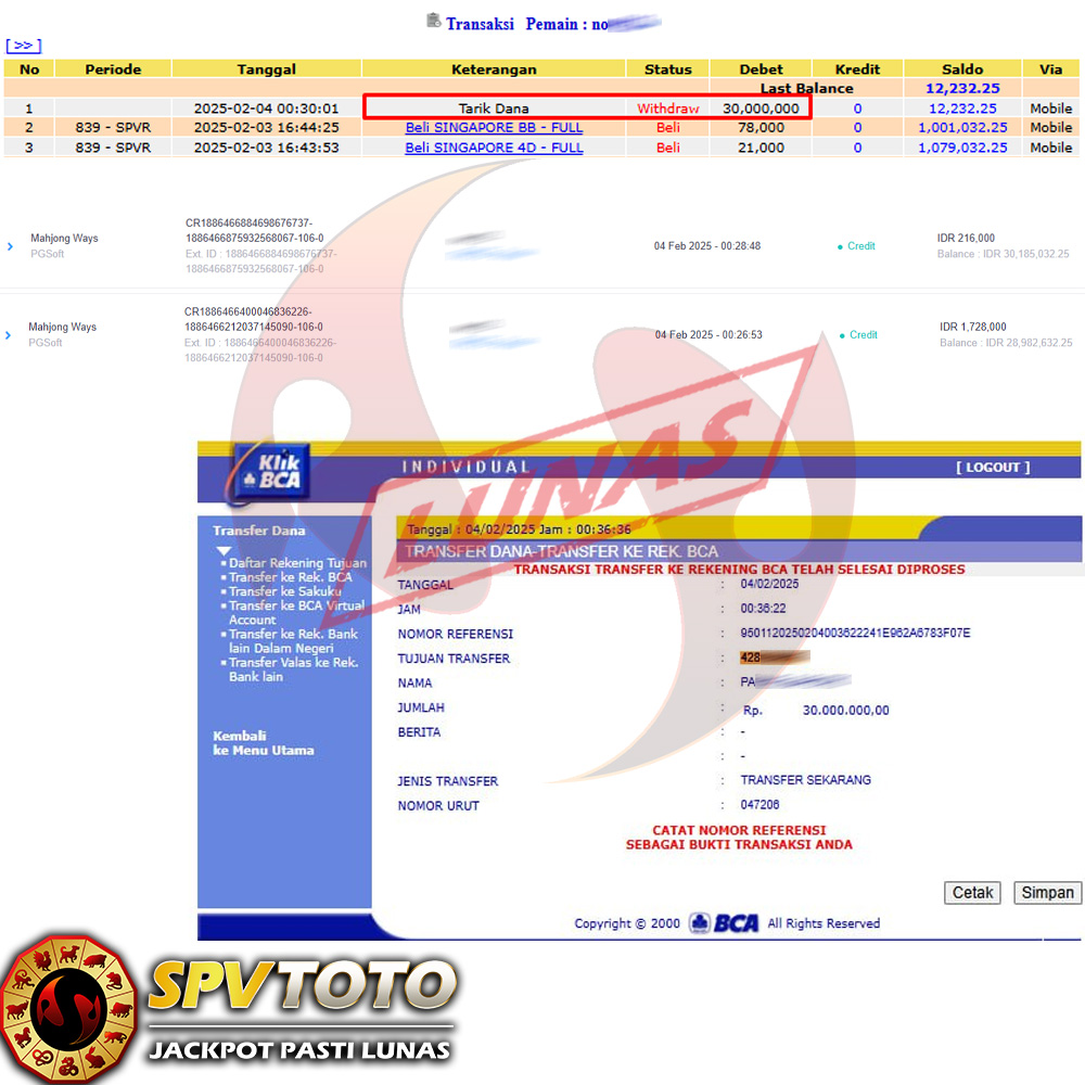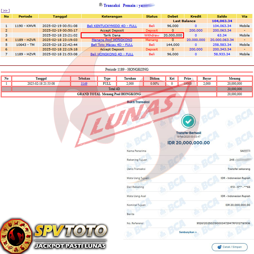 SELAMAT KEPADA MEMBER YANG MENDAPATKAN JACKPOT DI SPVTOTO