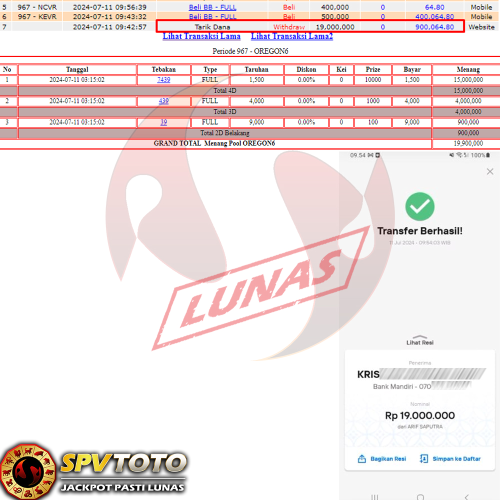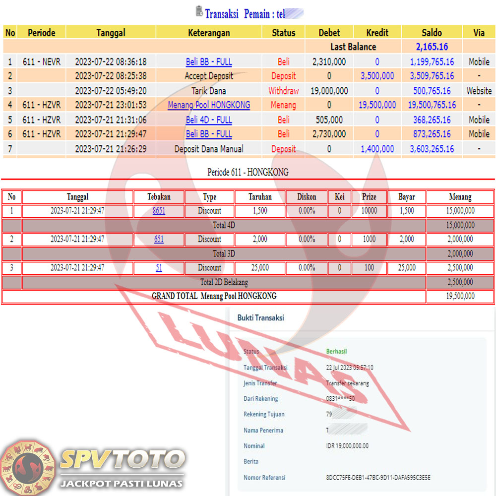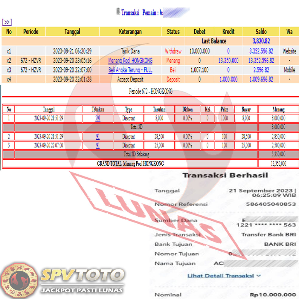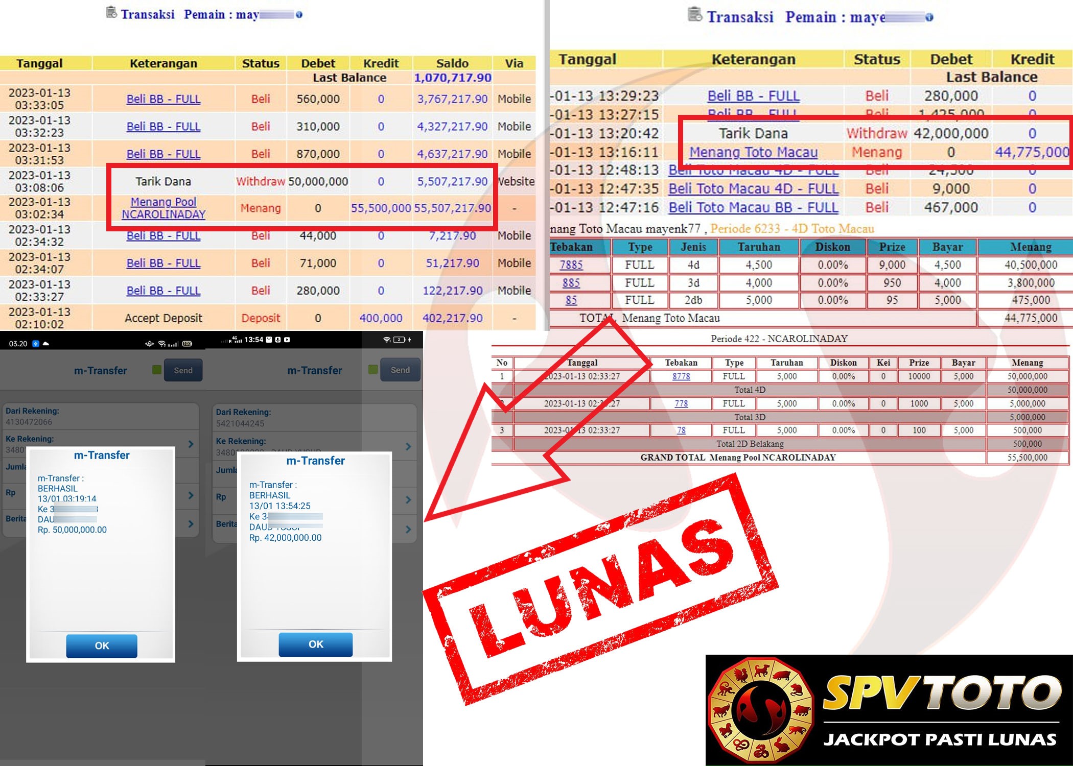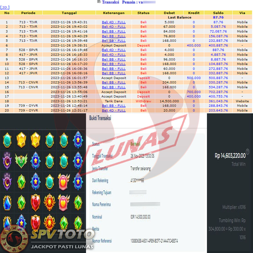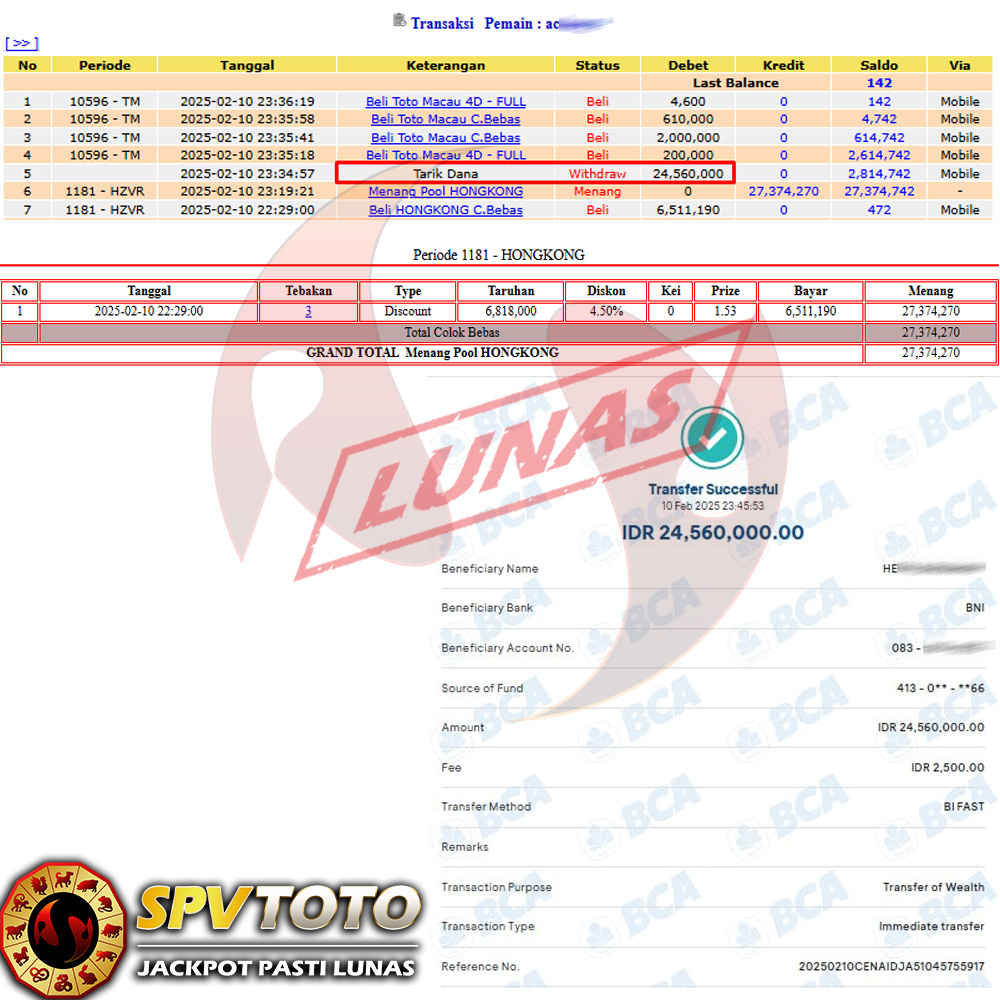 SELAMAT KEPADA MEMBER YANG MENDAPATKAN JACKPOT DI SPVTOTO