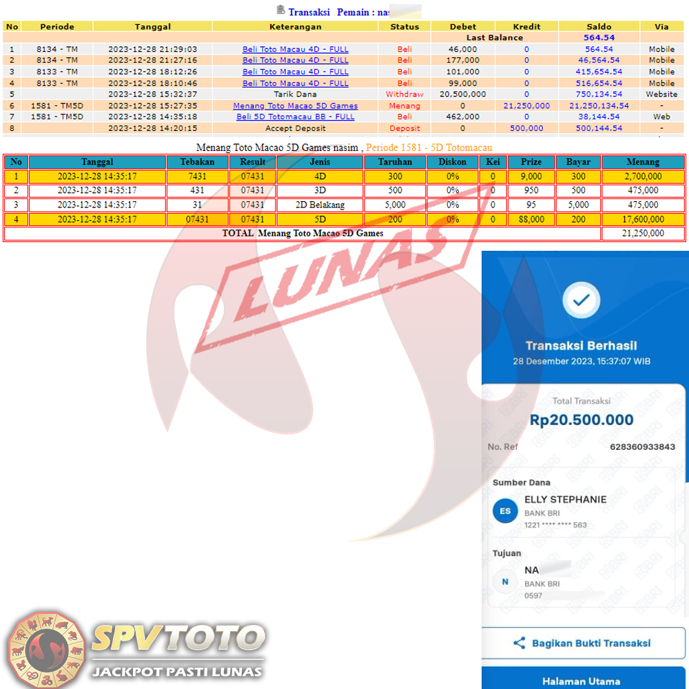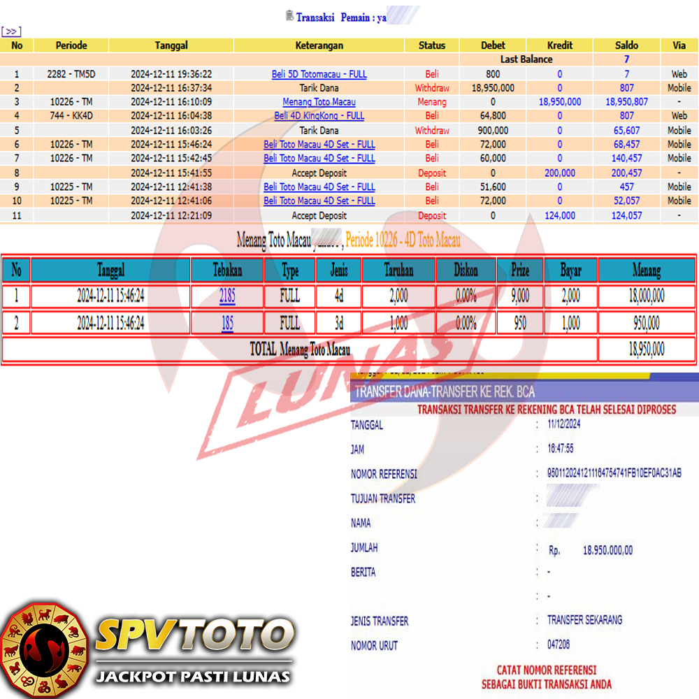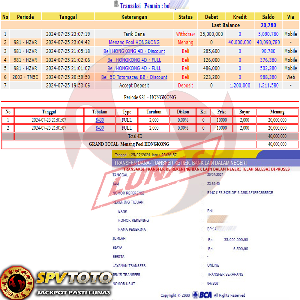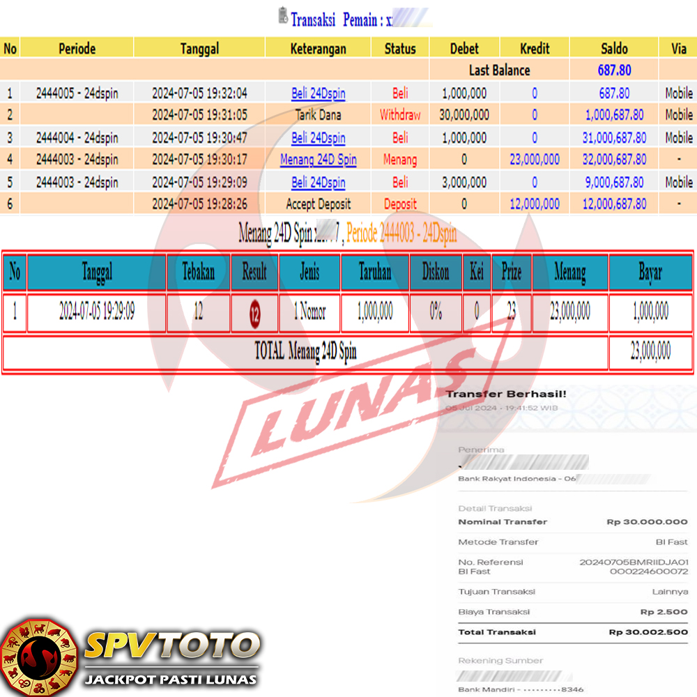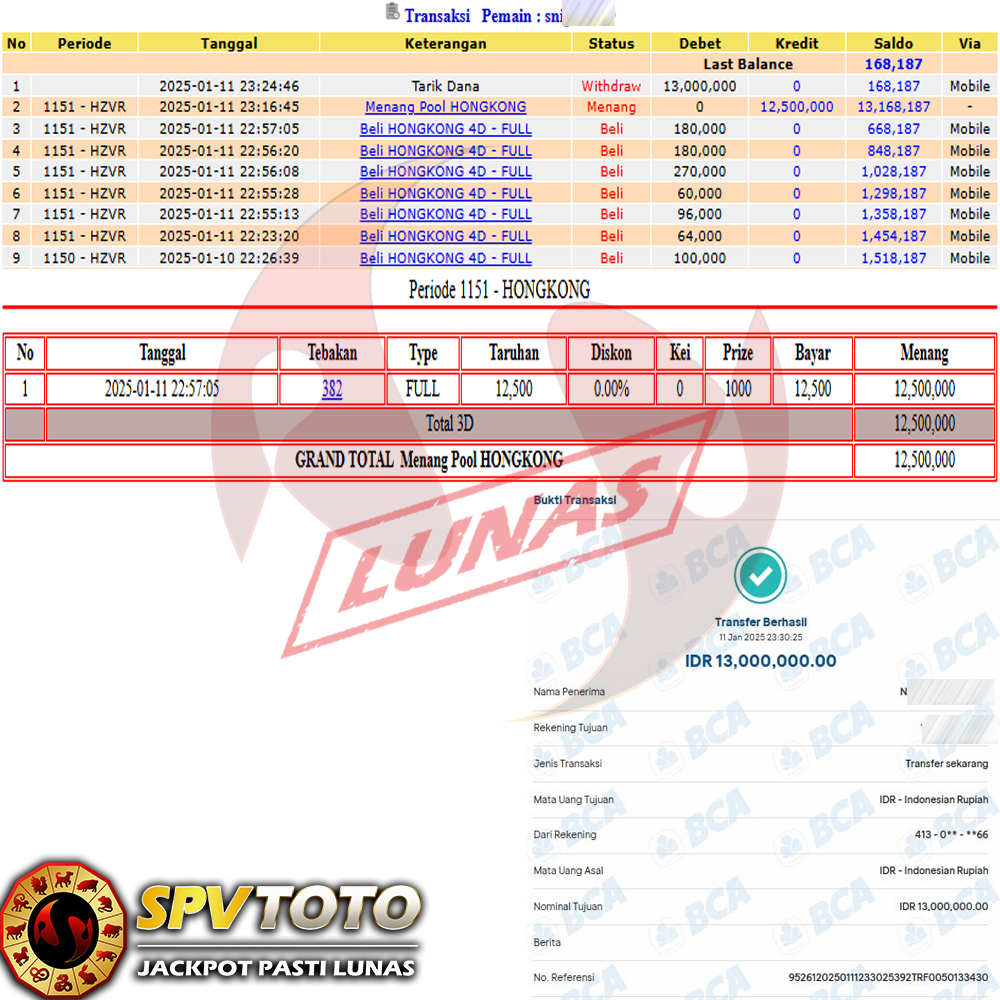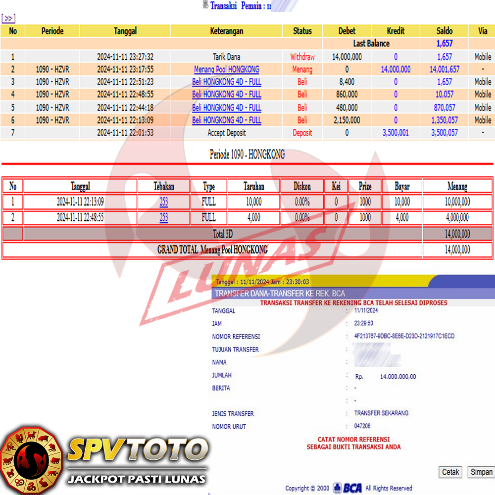 SELAMAT KEPADA MEMBER YANG MENDAPATKAN JACKPOT DI SPVTOTO