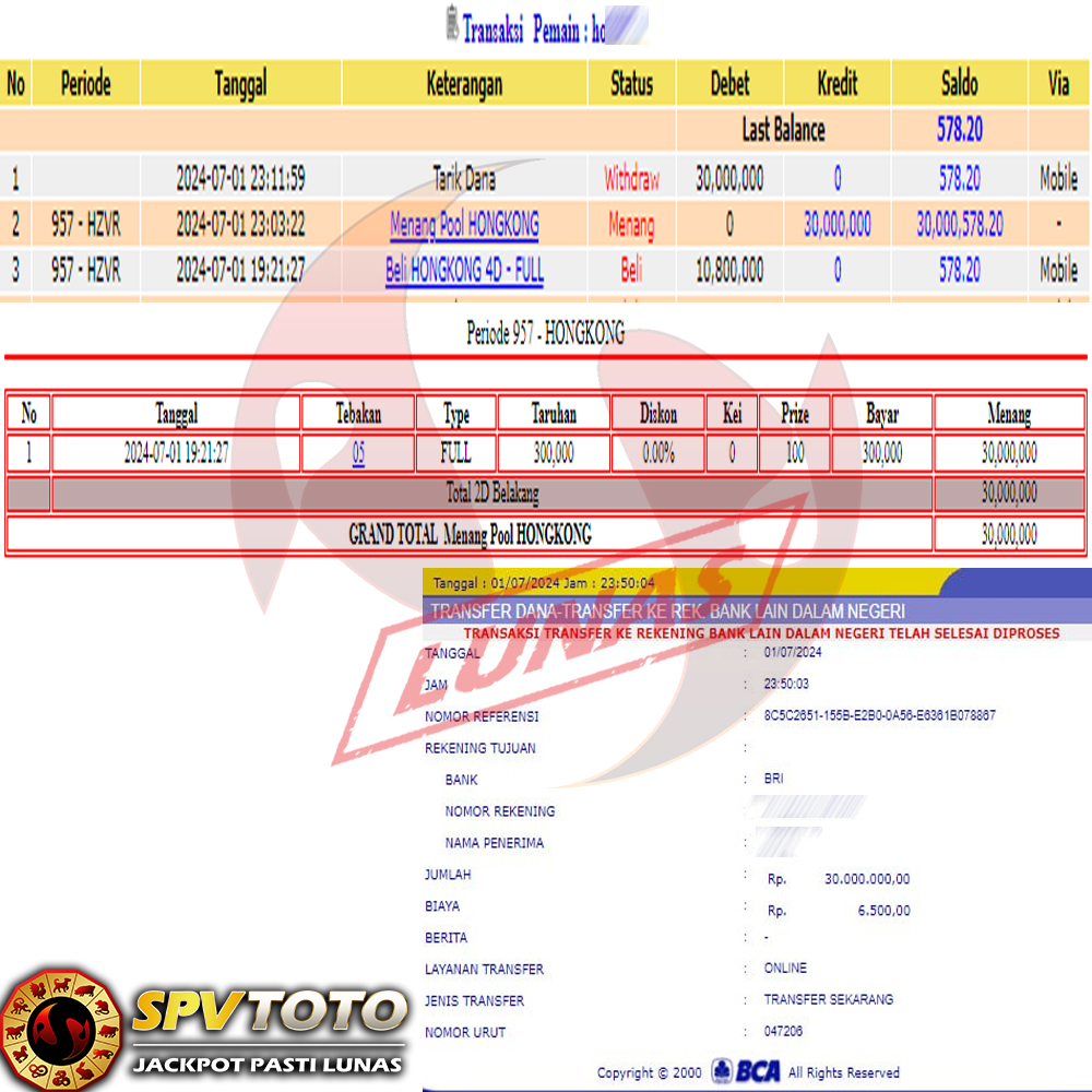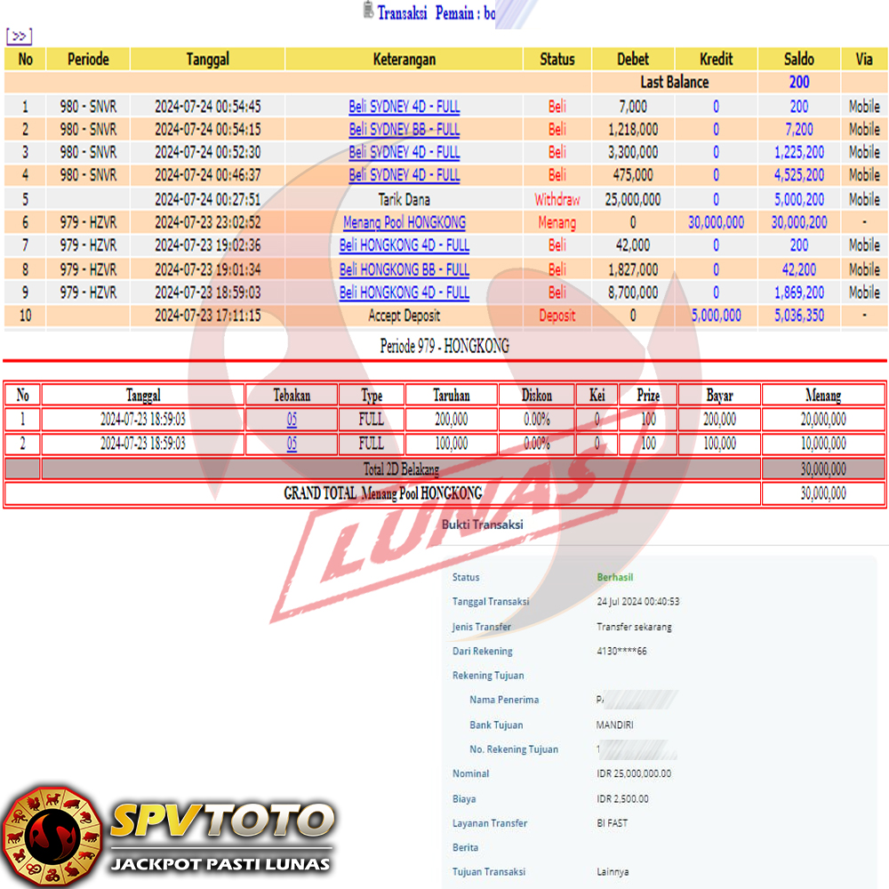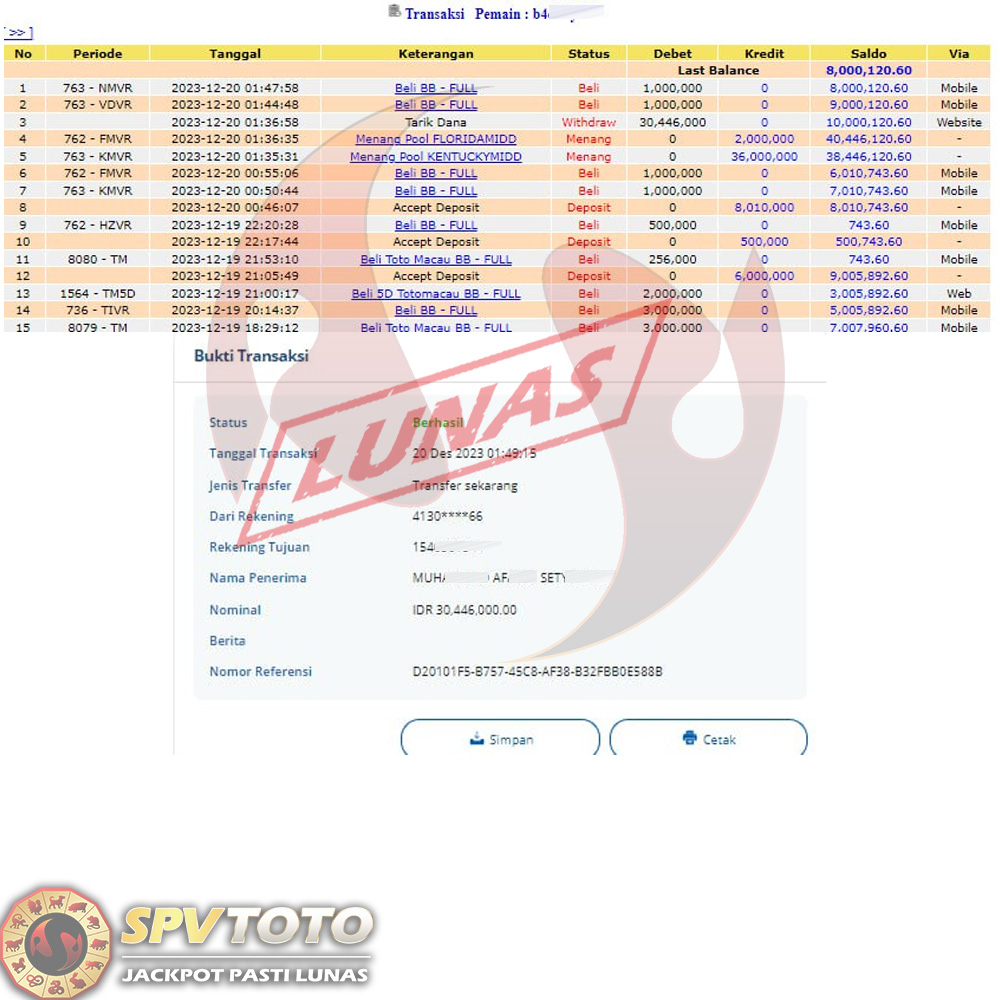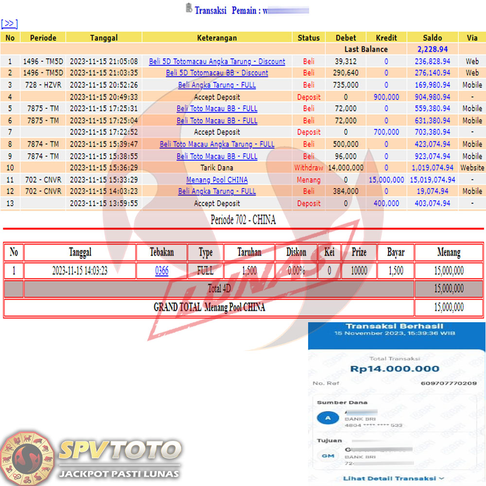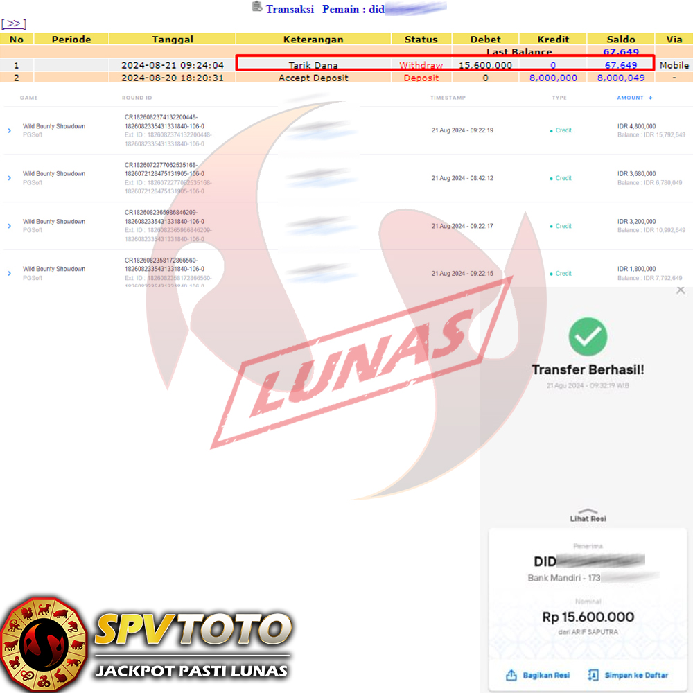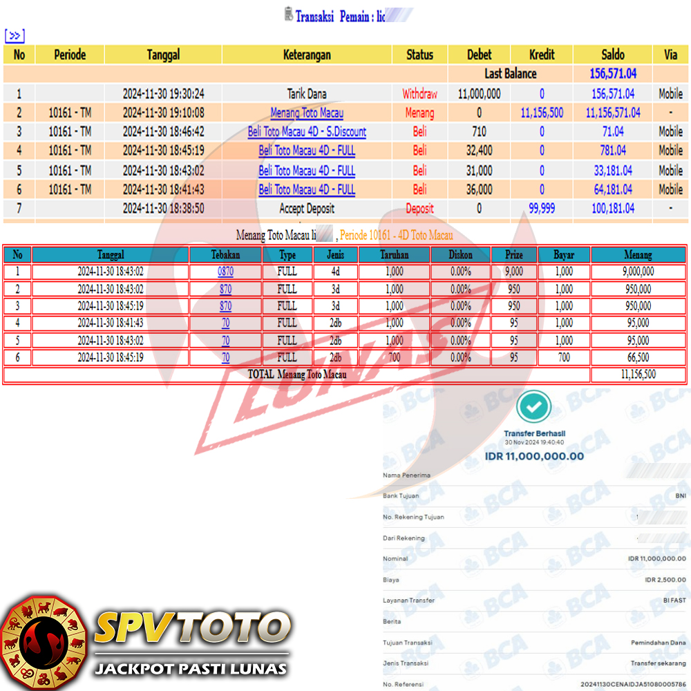 SELAMAT KEPADA MEMBER YANG MENDAPATKAN JACKPOT DI SPVTOTO
