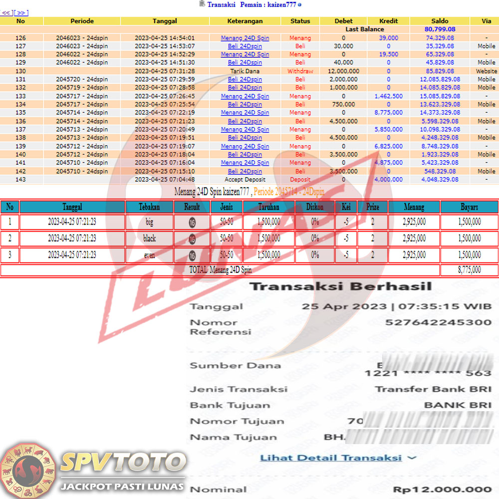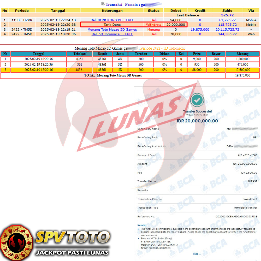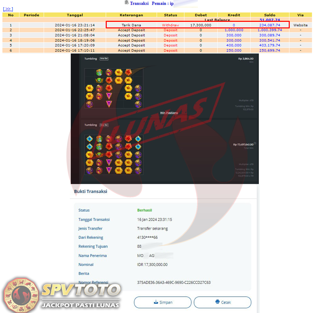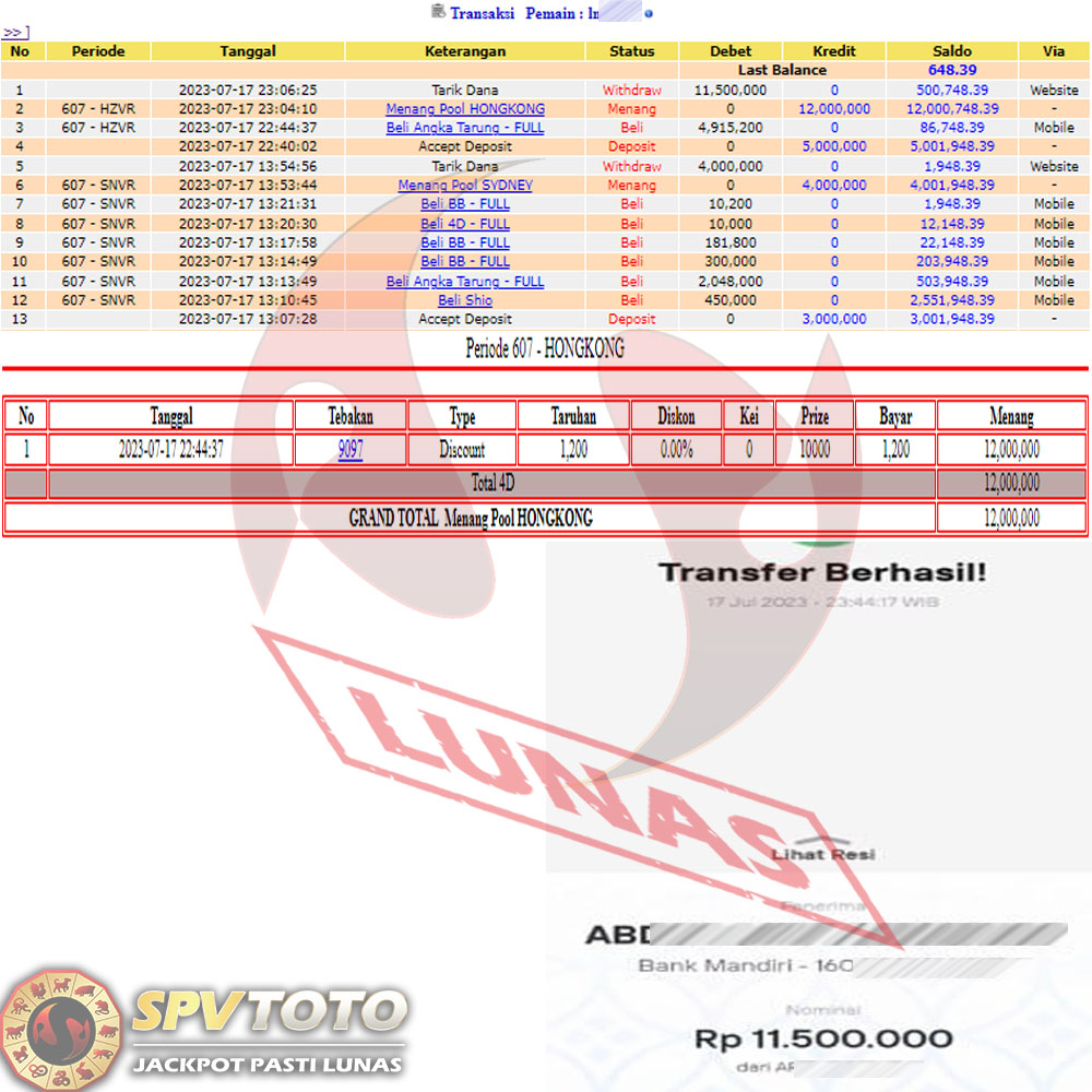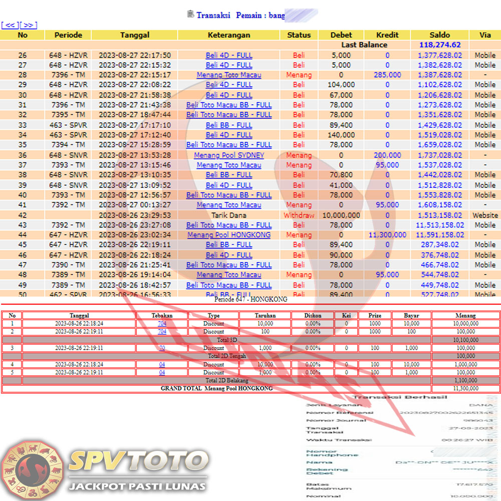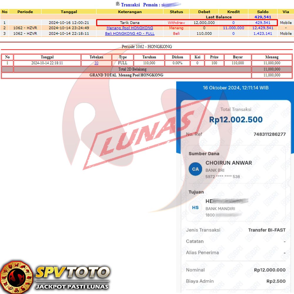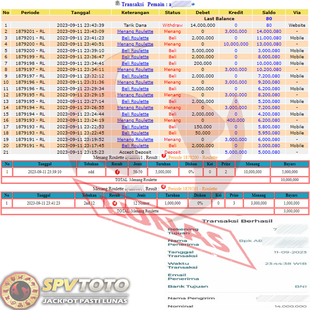 SELAMAT KEPADA MEMBER YANG MENDAPATKAN JACKPOT DI SPVTOTO