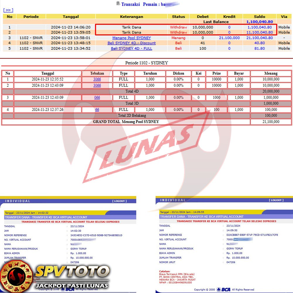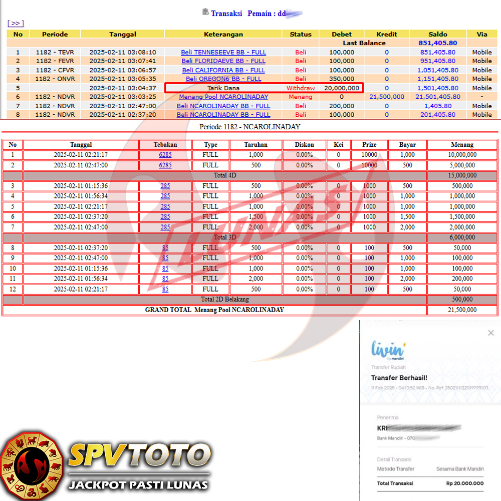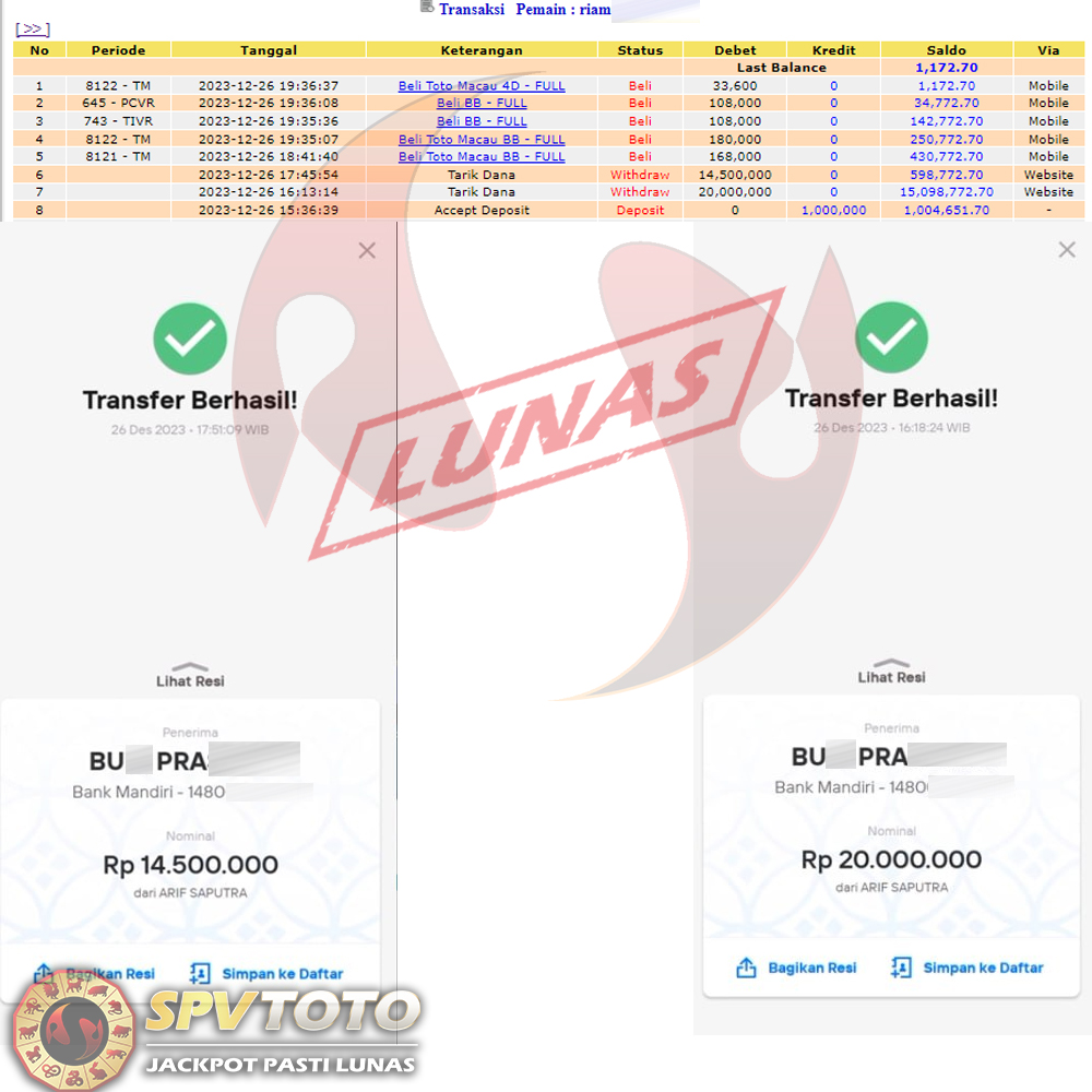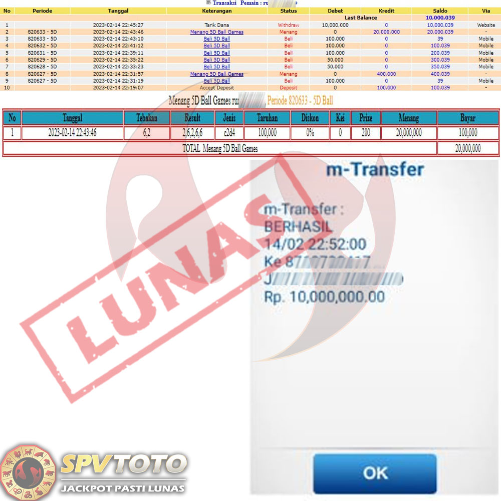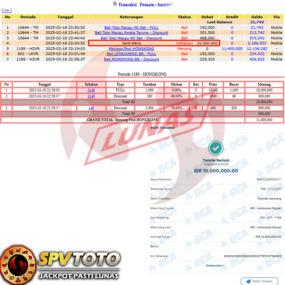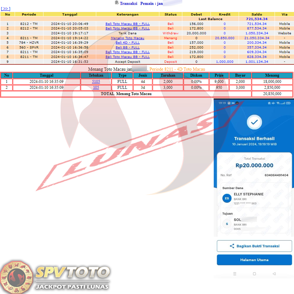 SELAMAT KEPADA MEMBER YANG MENDAPATKAN JACKPOT DI SPVTOTO