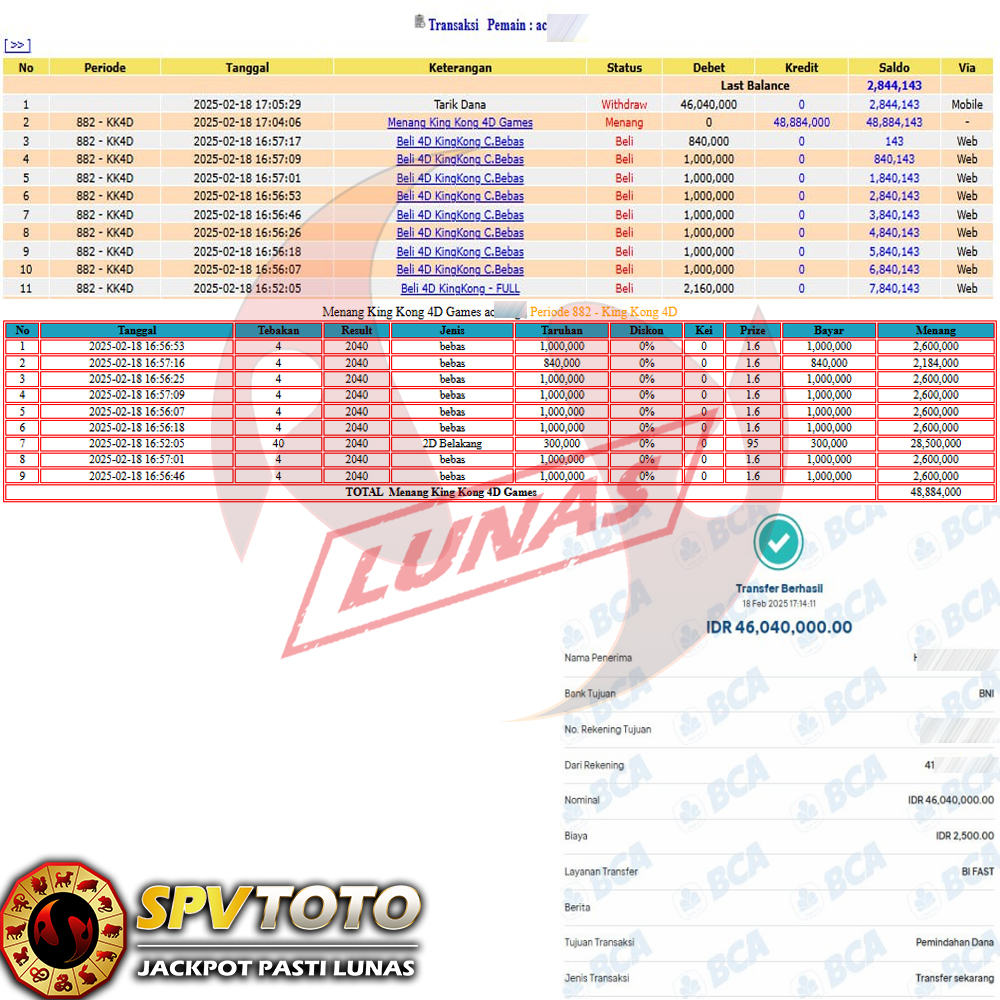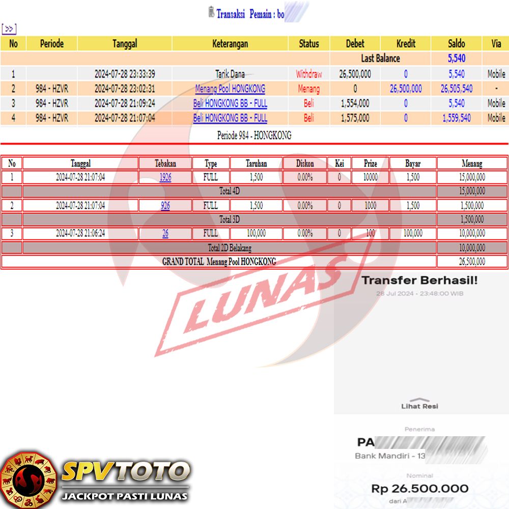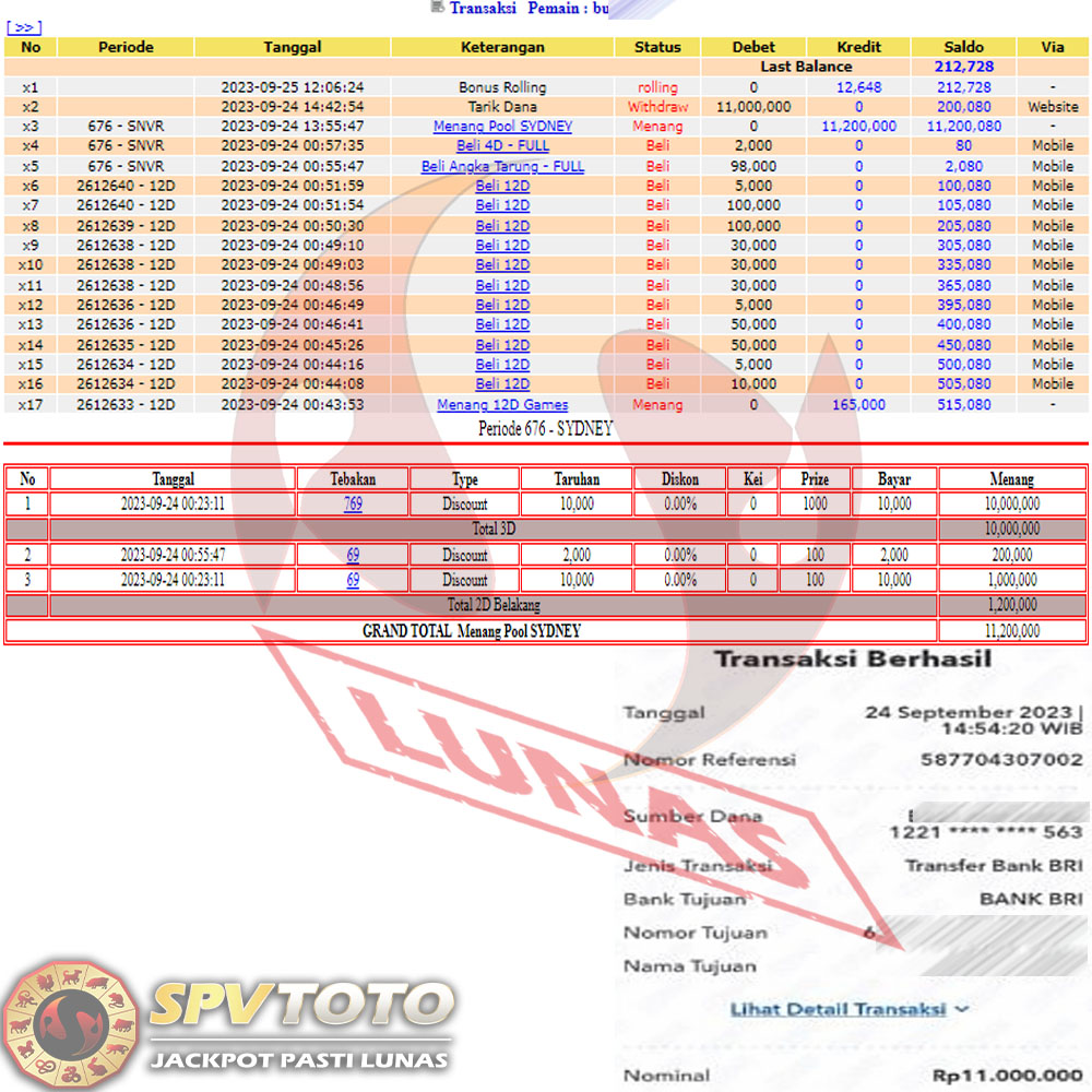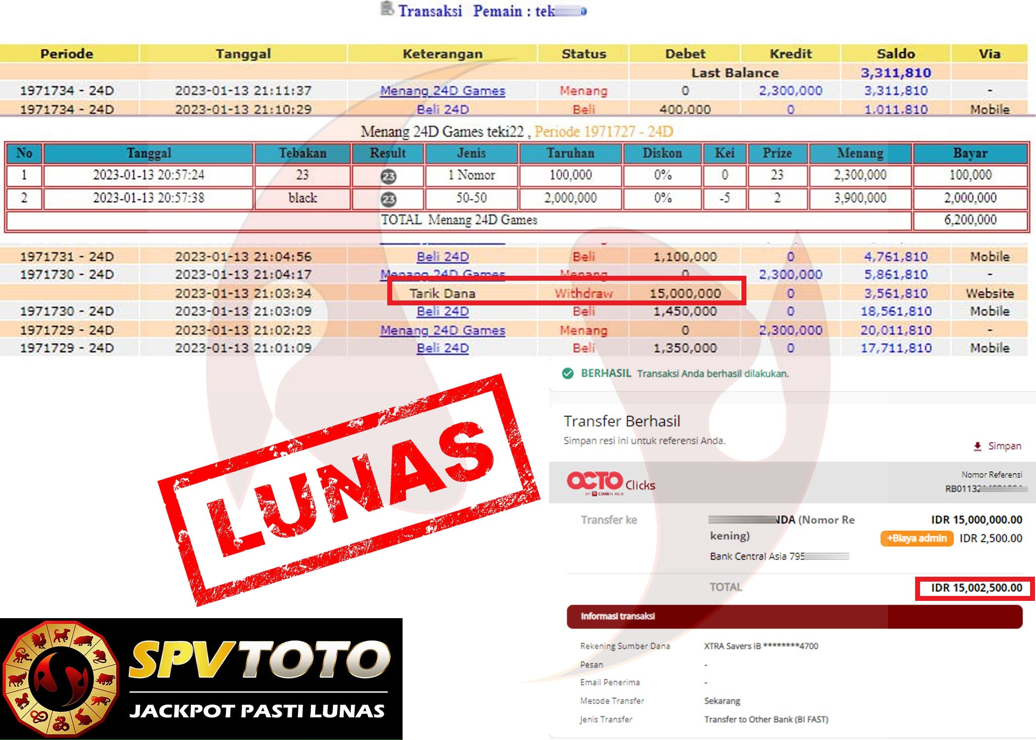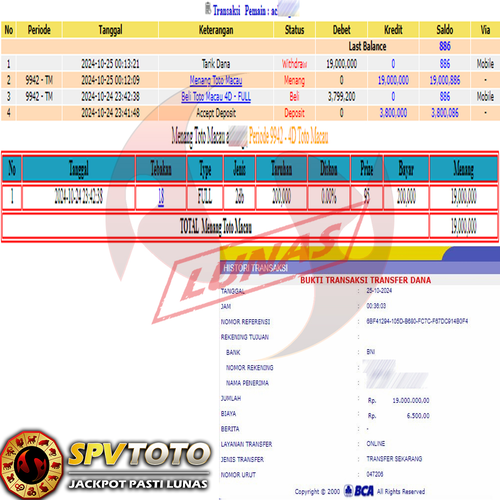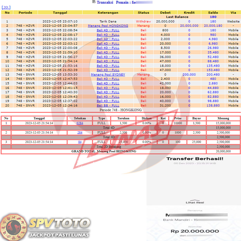 SELAMAT KEPADA MEMBER YANG MENDAPATKAN JACKPOT DI SPVTOTO