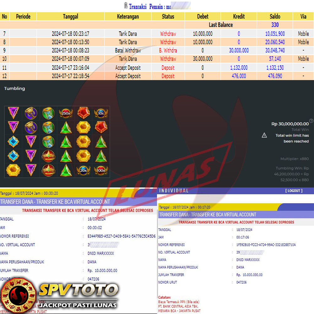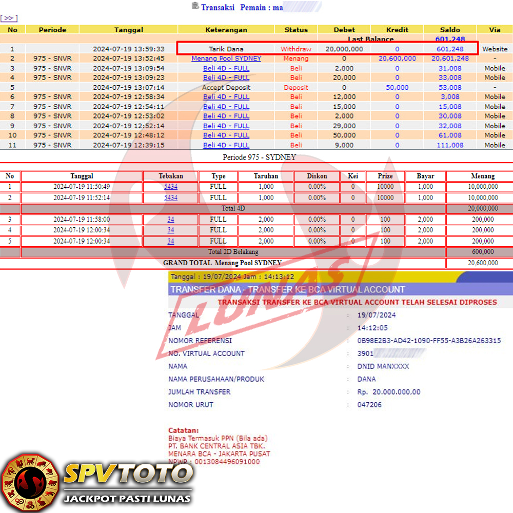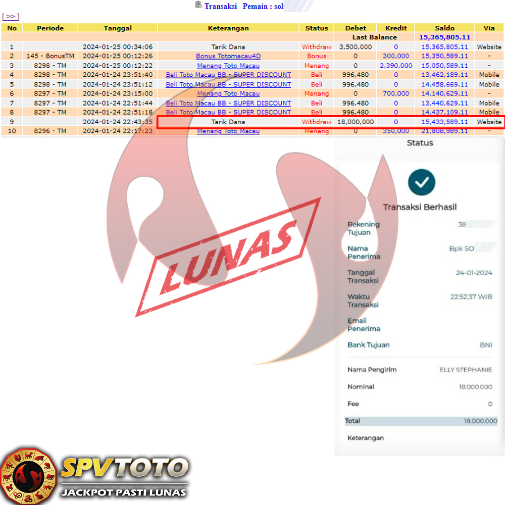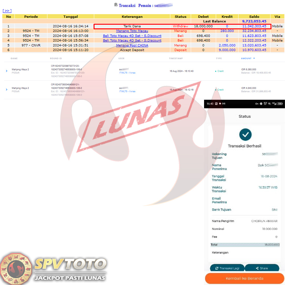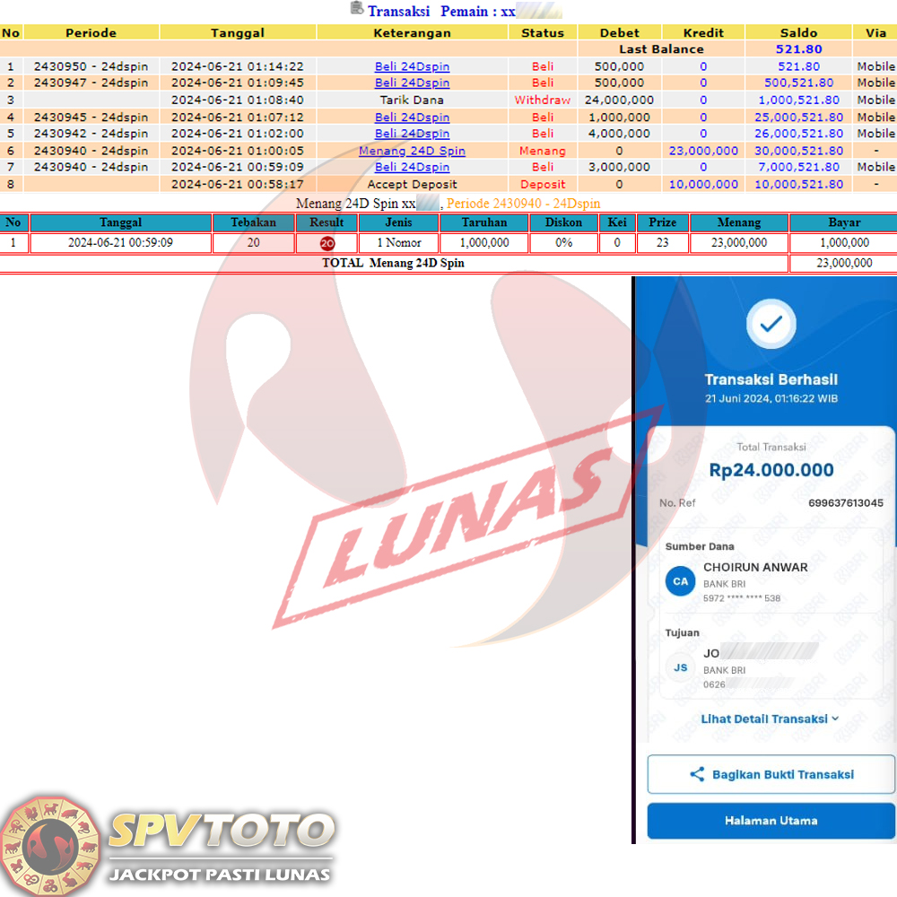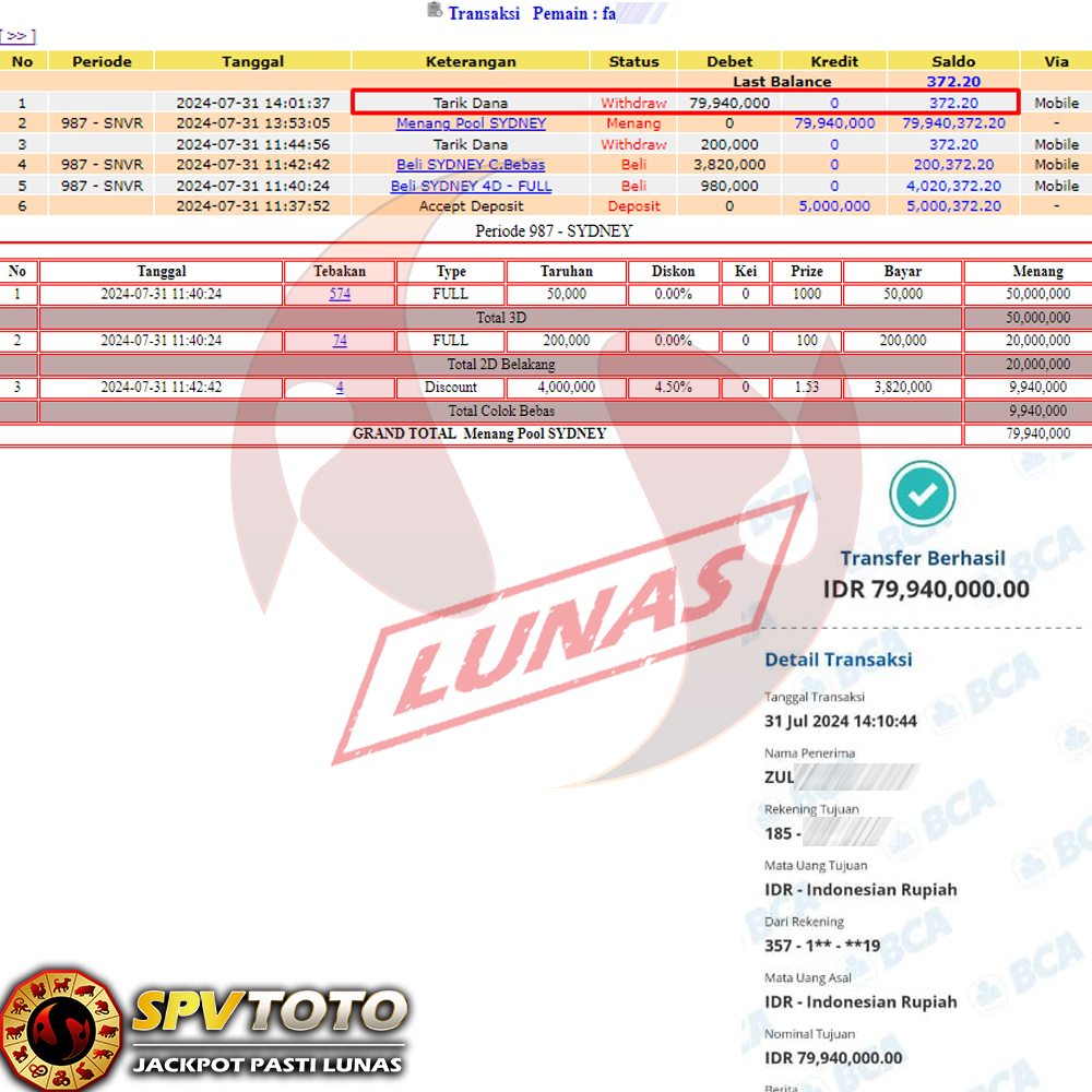 SELAMAT KEPADA MEMBER YANG MENDAPATKAN JACKPOT DI SPVTOTO