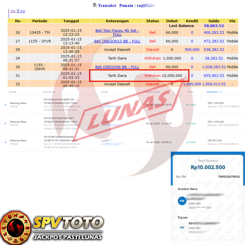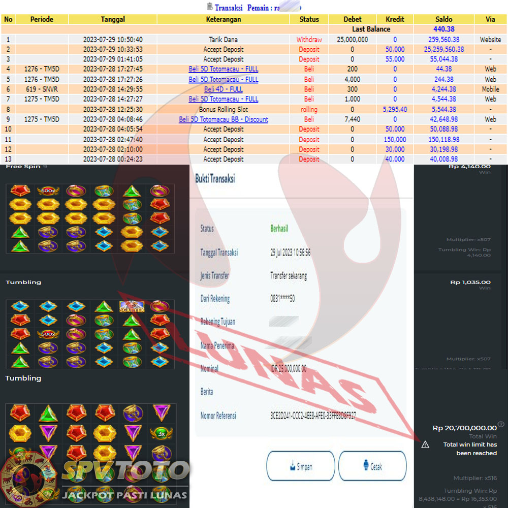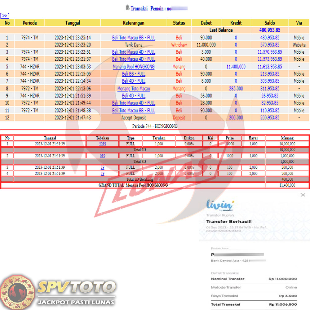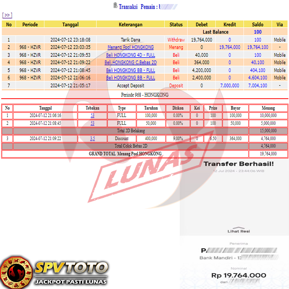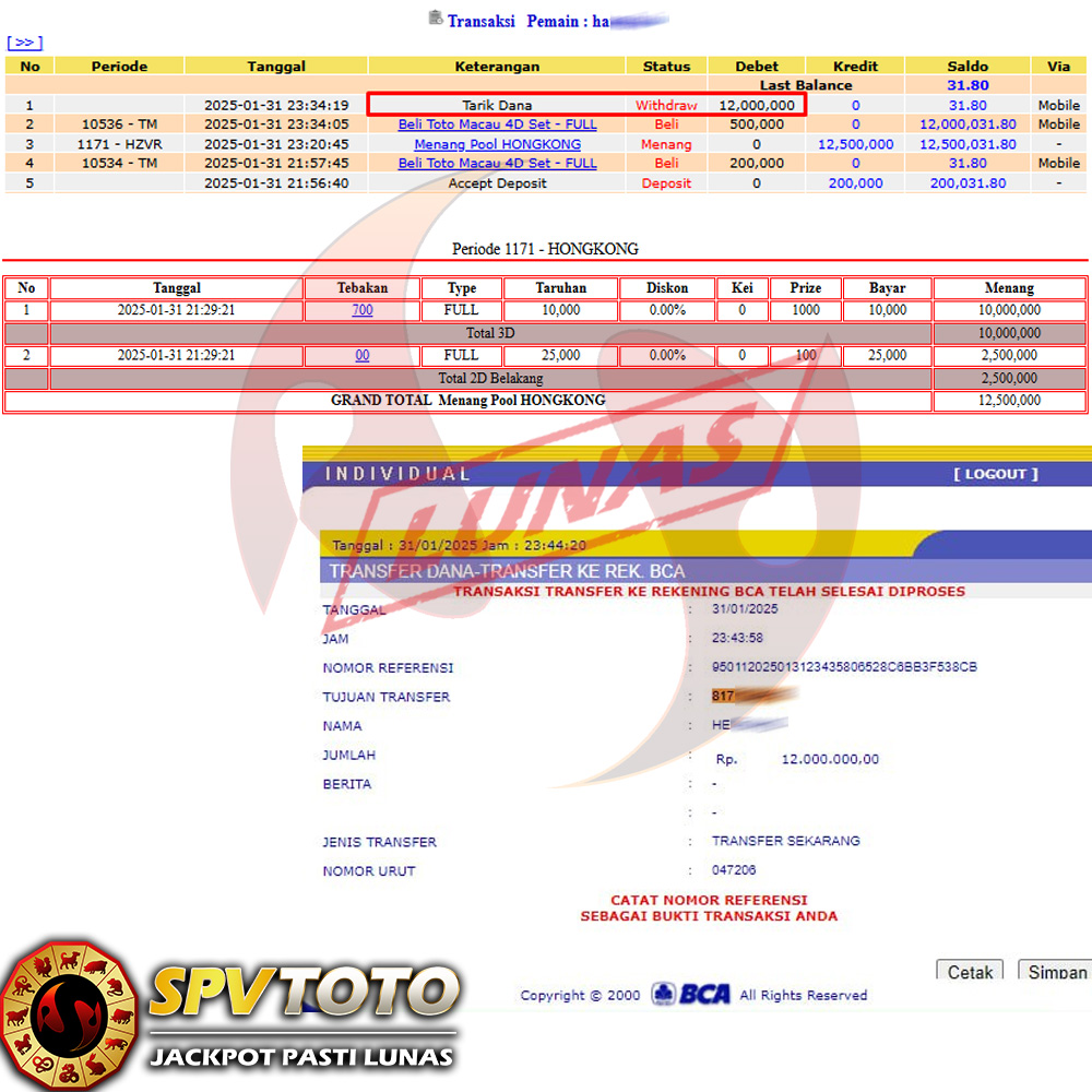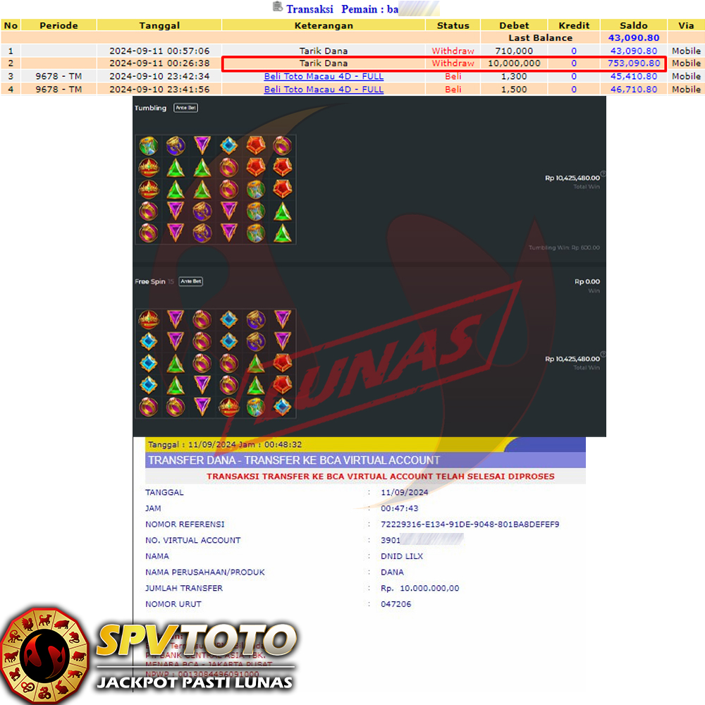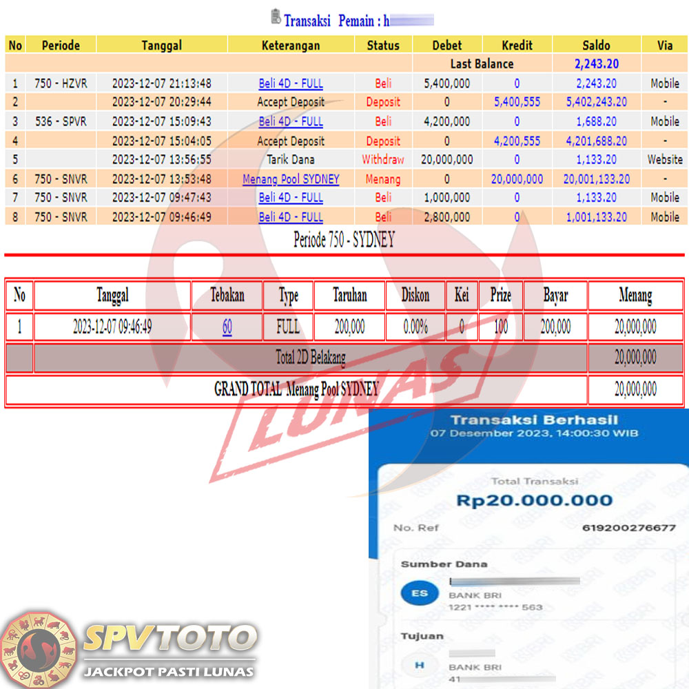 SELAMAT KEPADA MEMBER YANG MENDAPATKAN JACKPOT DI SPVTOTO