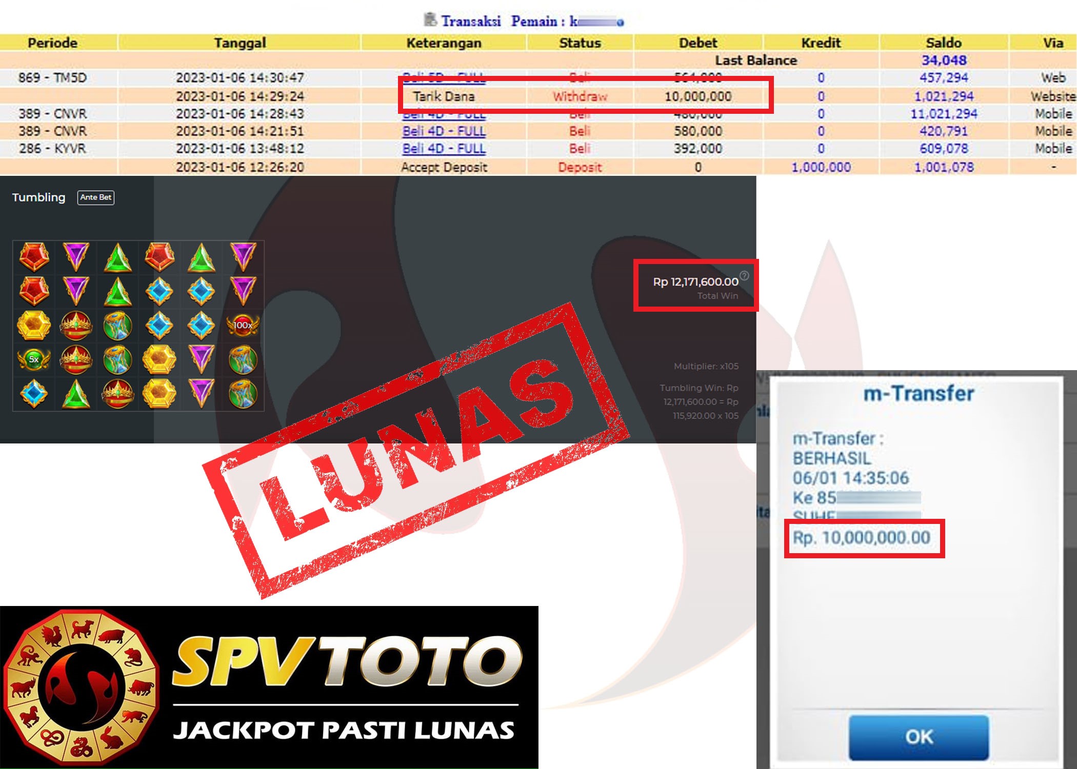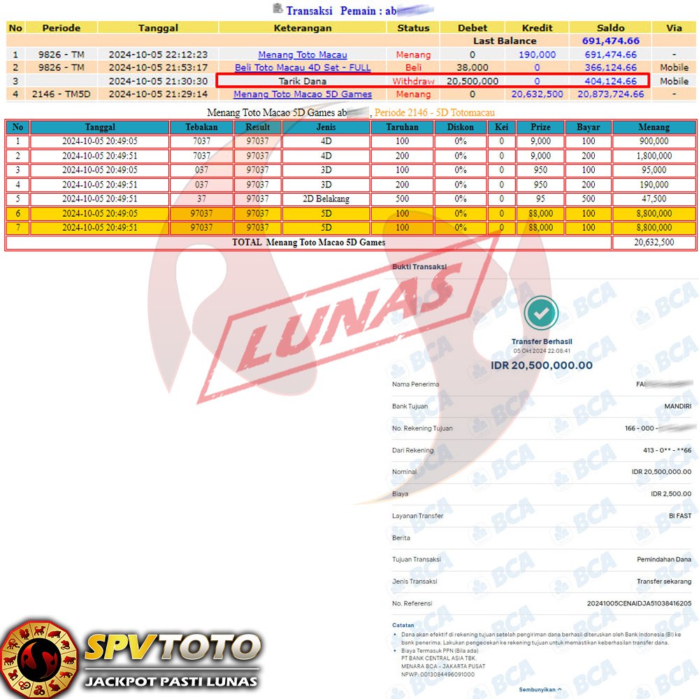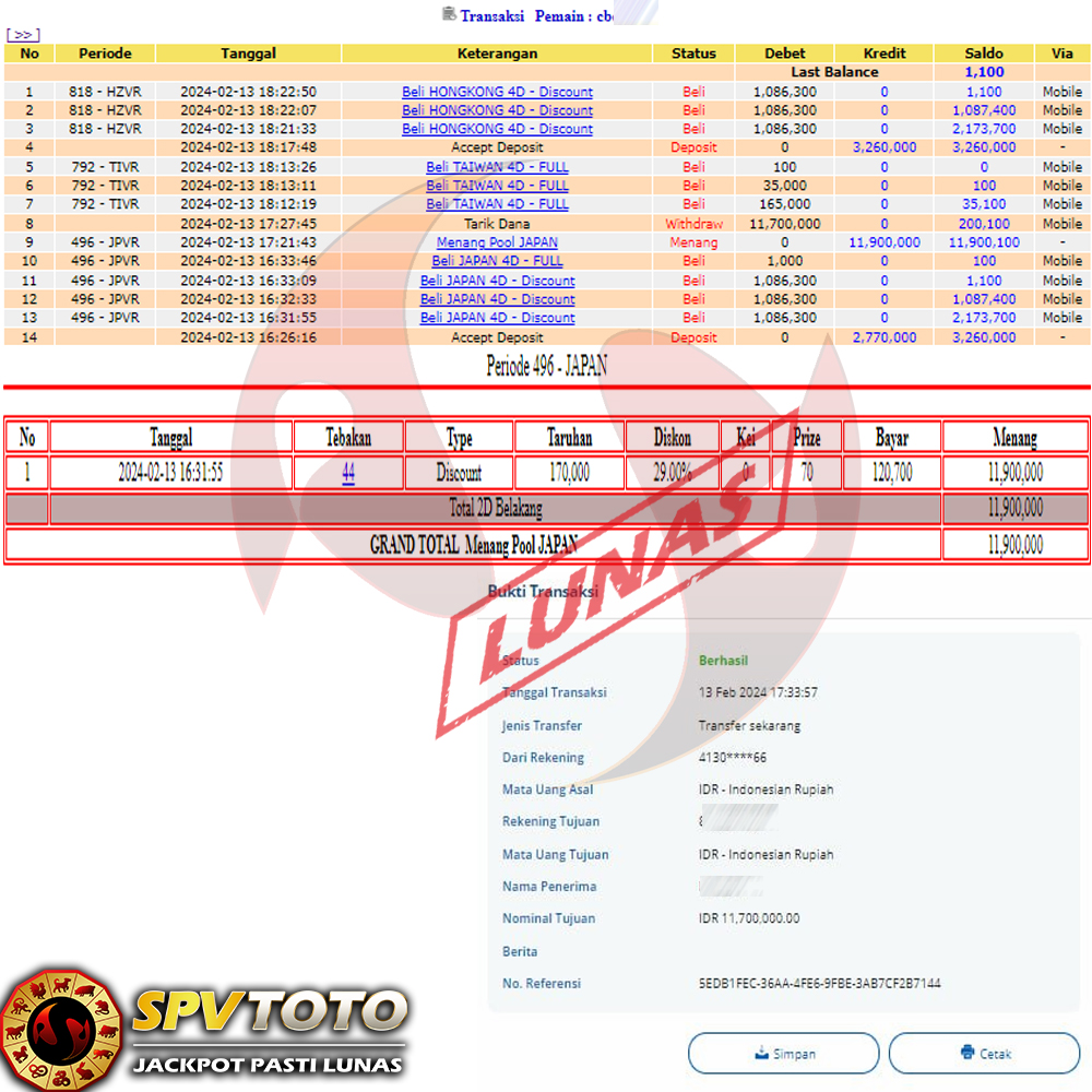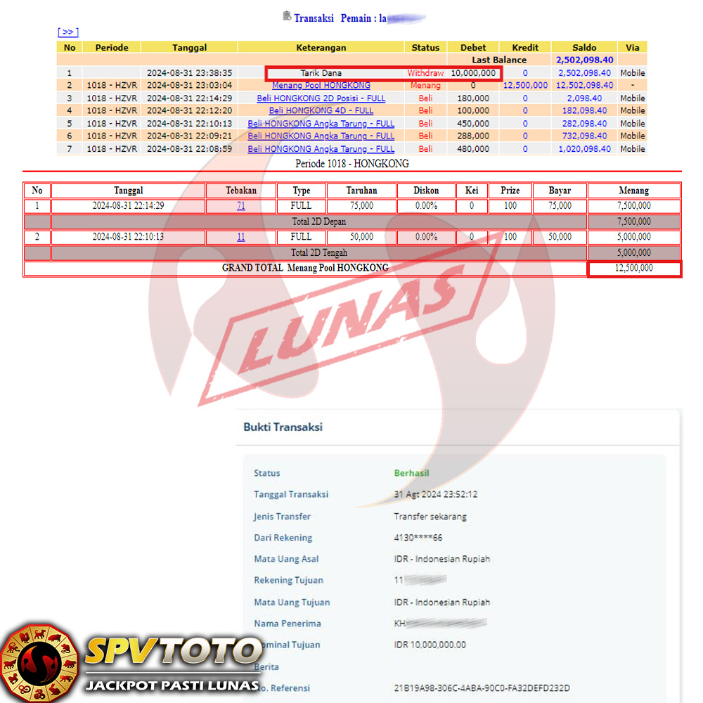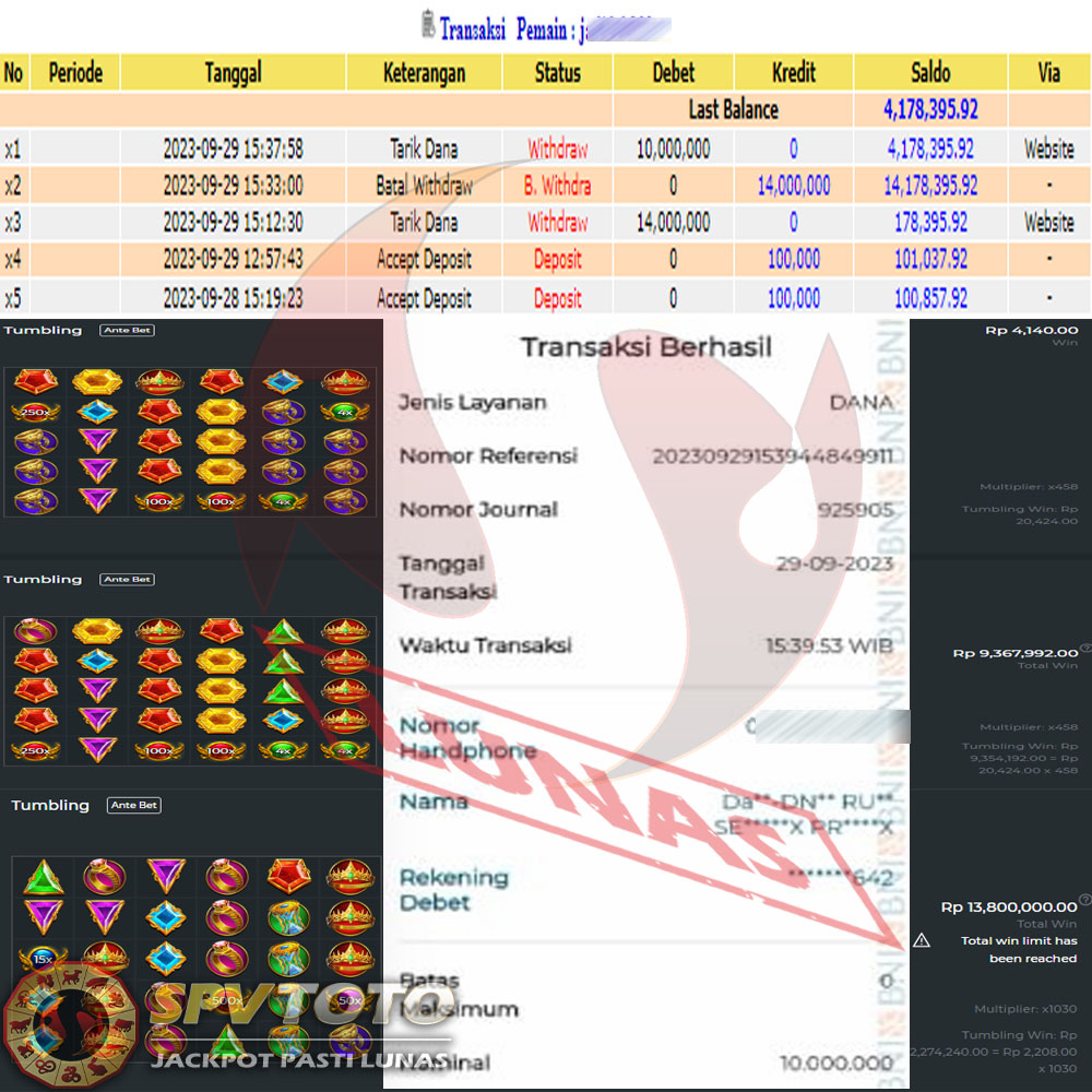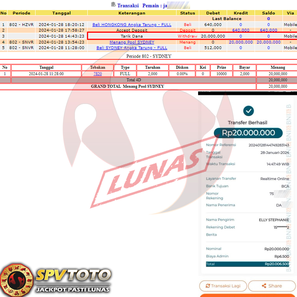 SELAMAT KEPADA MEMBER YANG MENDAPATKAN JACKPOT DI SPVTOTO