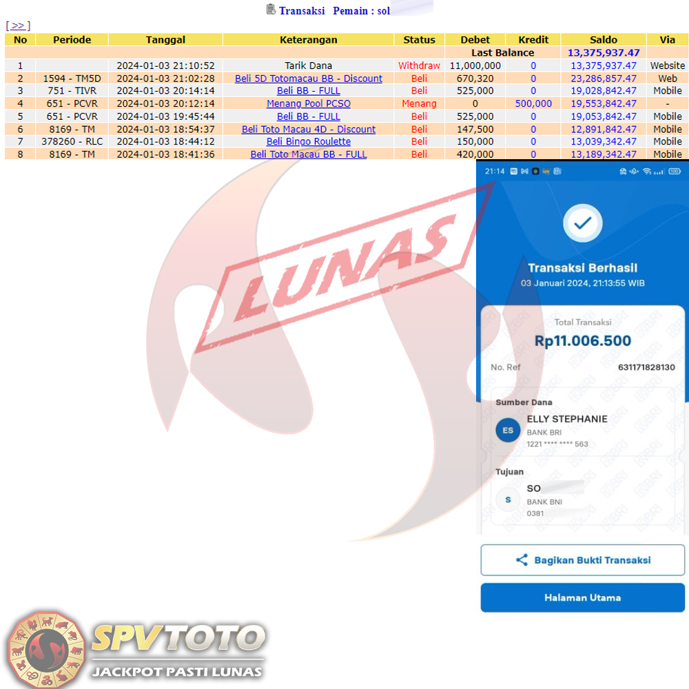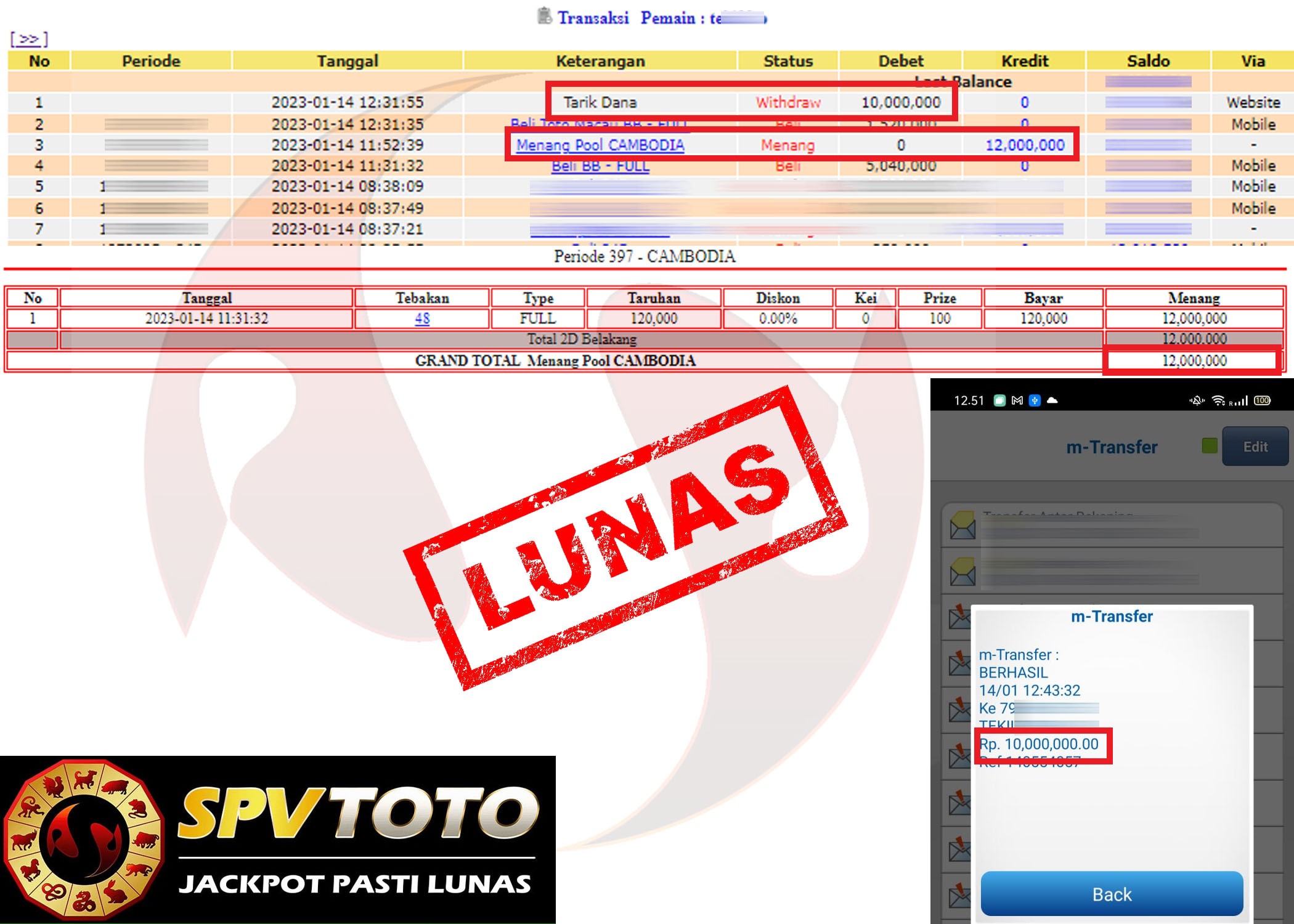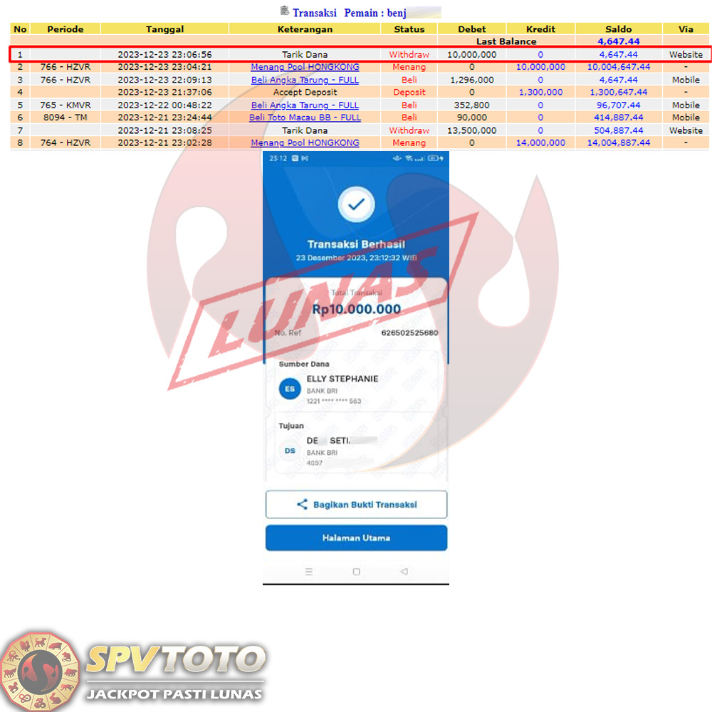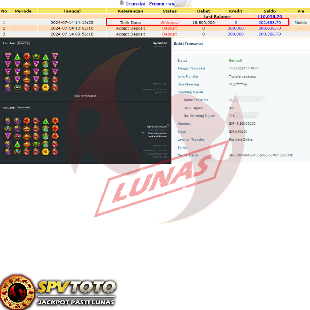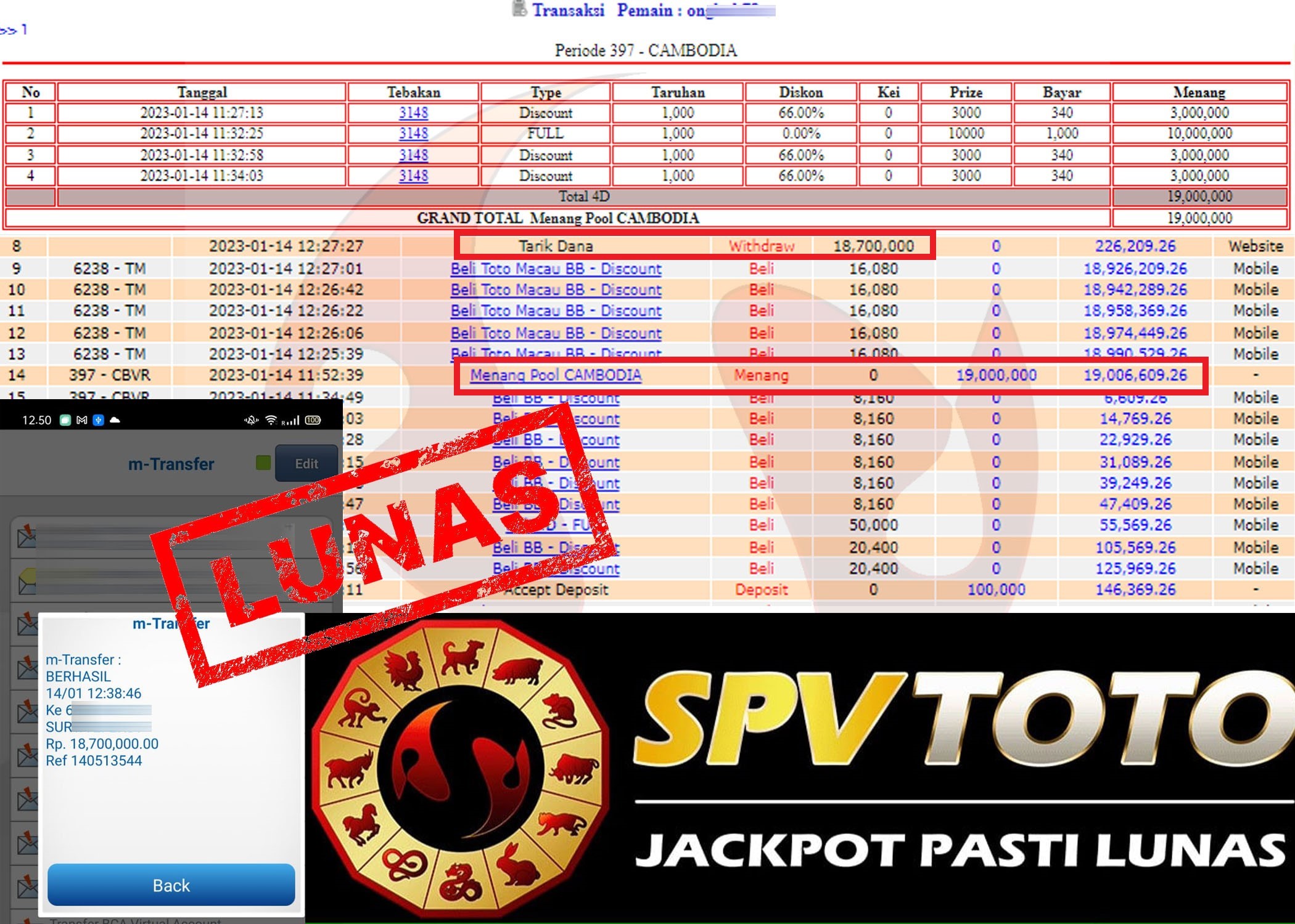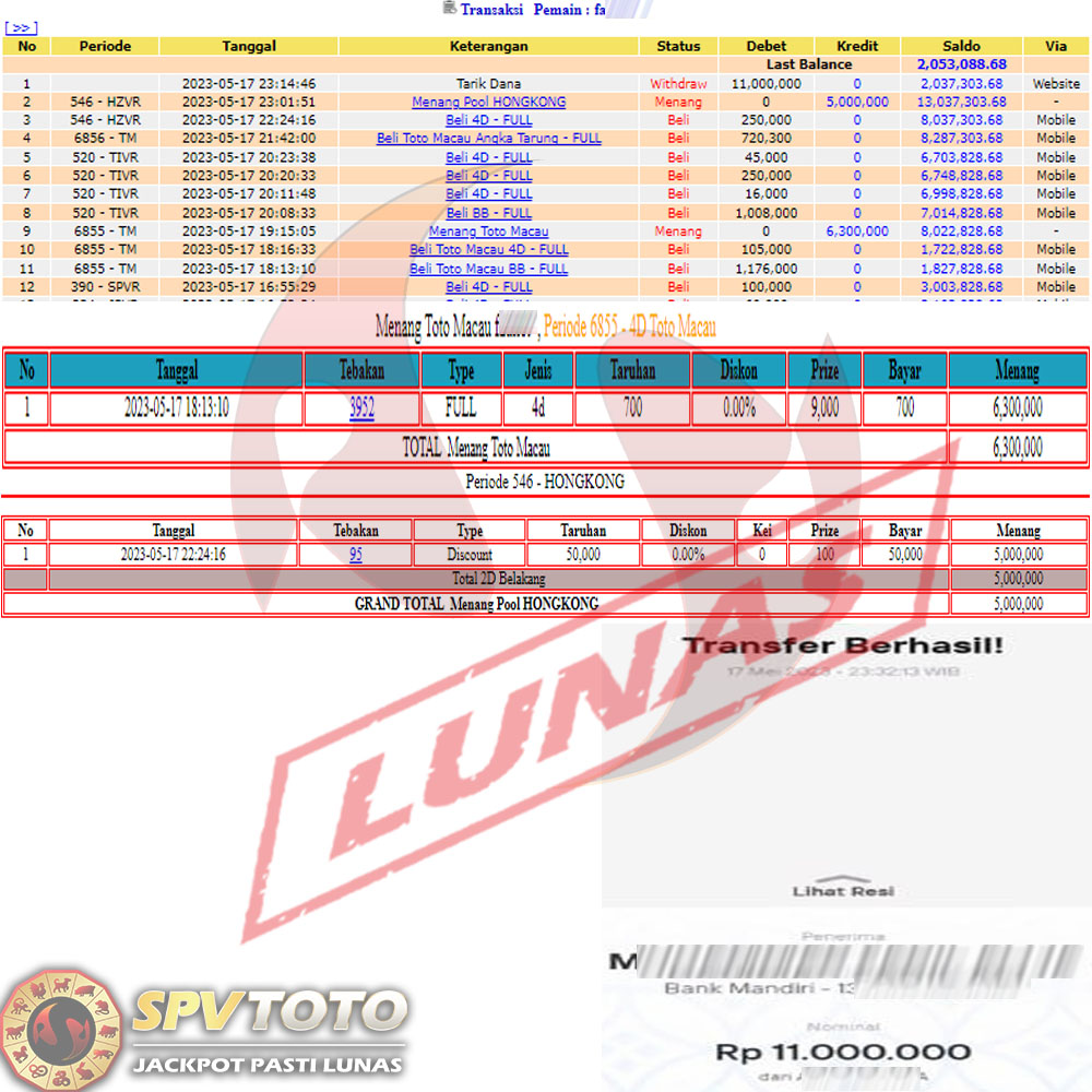 SELAMAT KEPADA MEMBER YANG MENDAPATKAN JACKPOT DI SPVTOTO