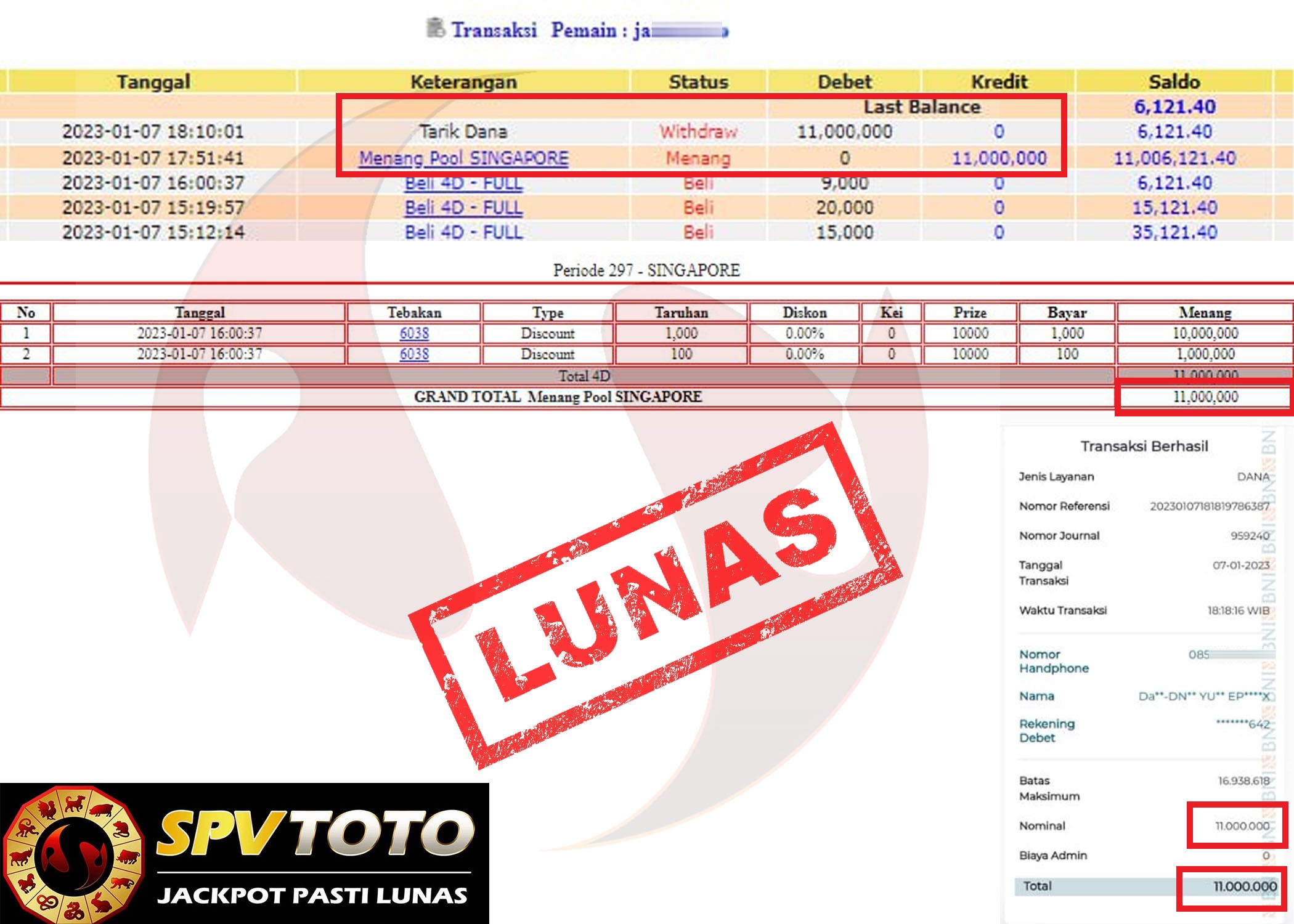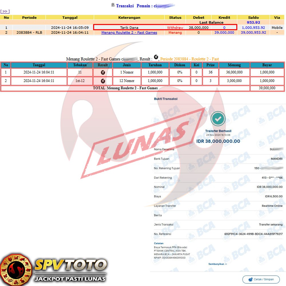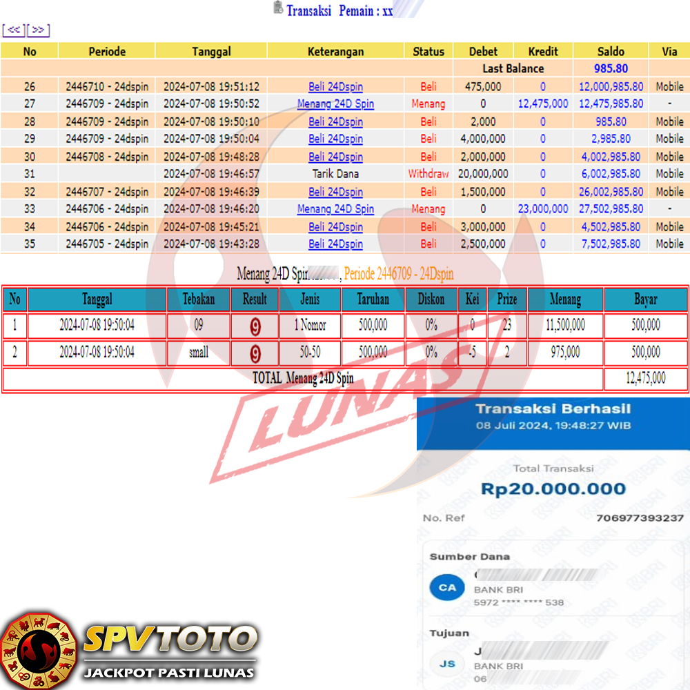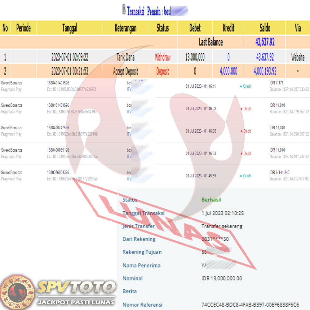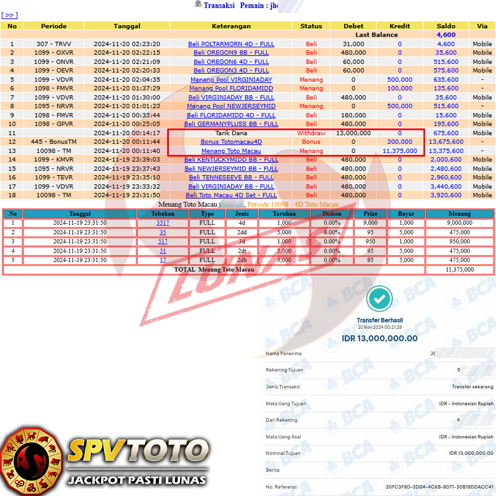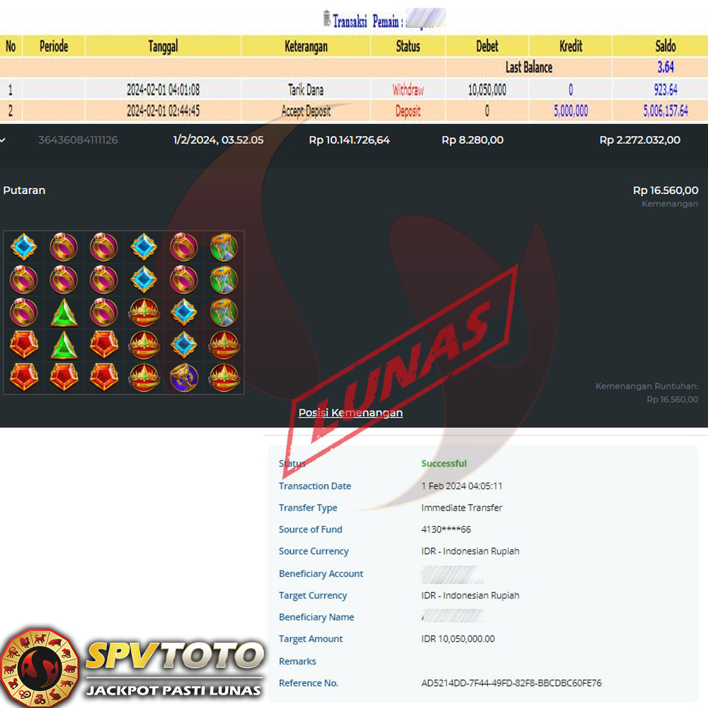 SELAMAT KEPADA MEMBER YANG MENDAPATKAN JACKPOT DI SPVTOTO
