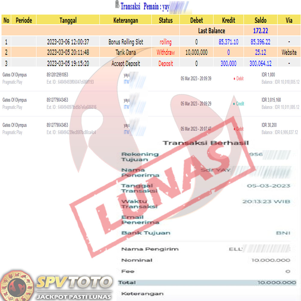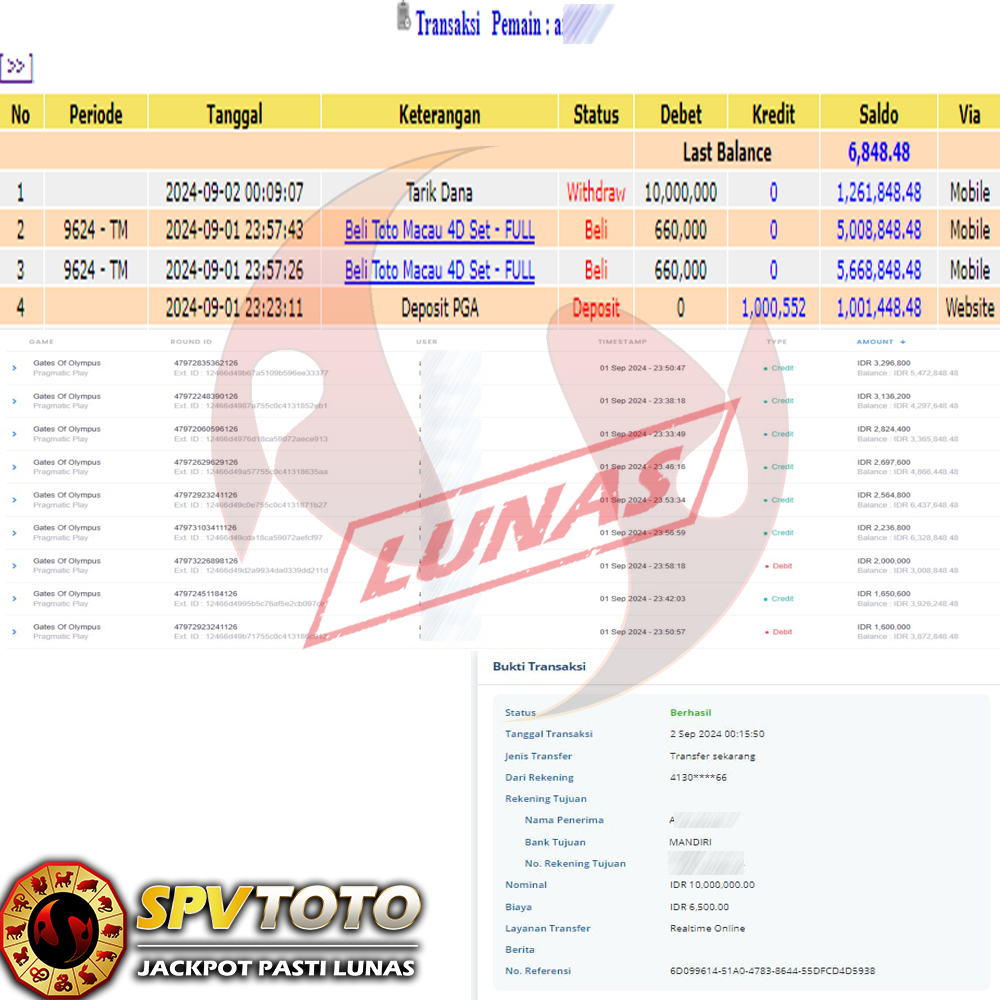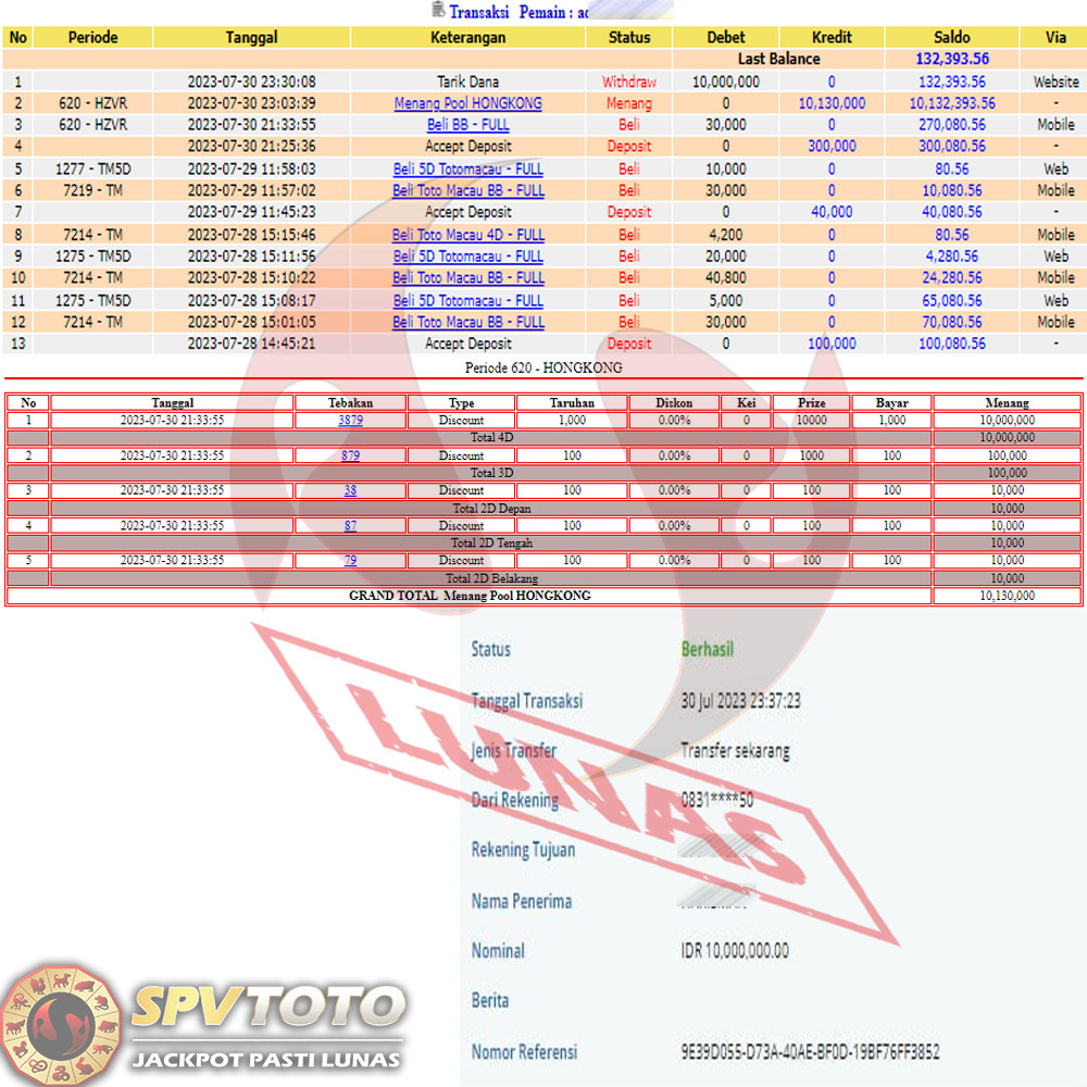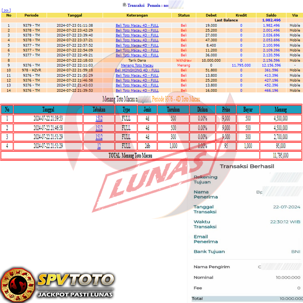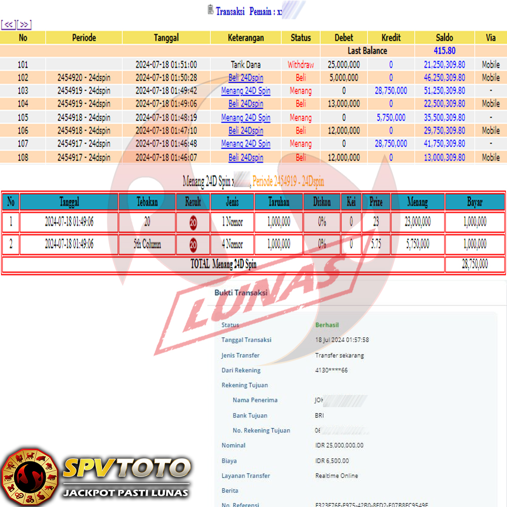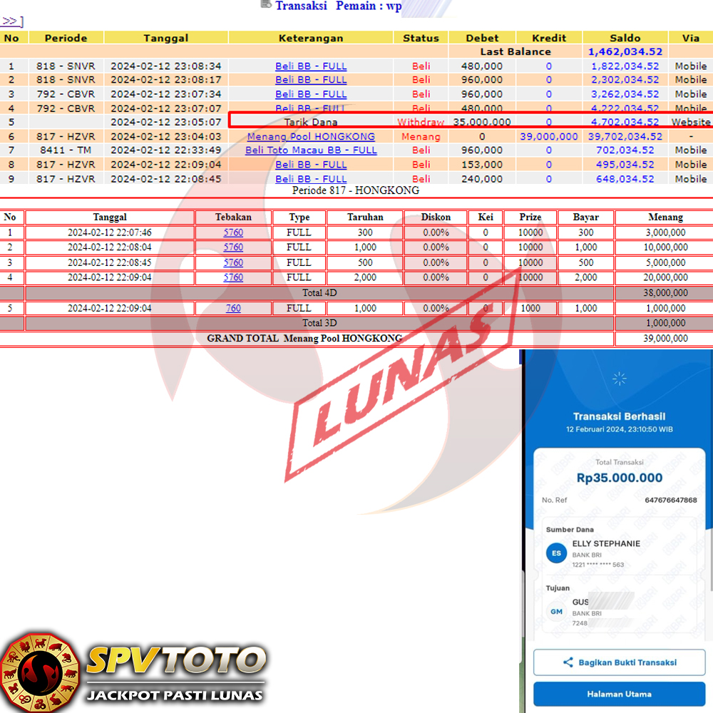 SELAMAT KEPADA MEMBER YANG MENDAPATKAN JACKPOT DI SPVTOTO