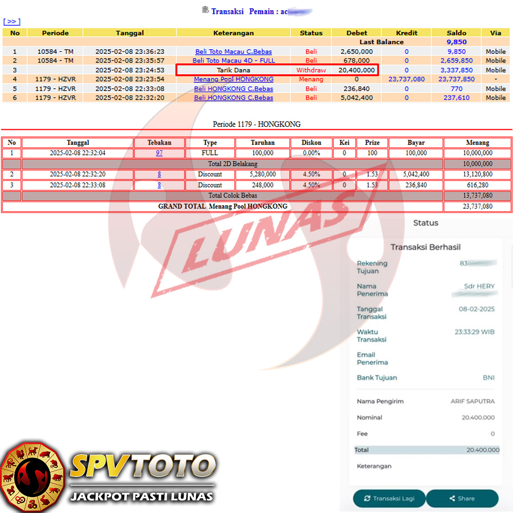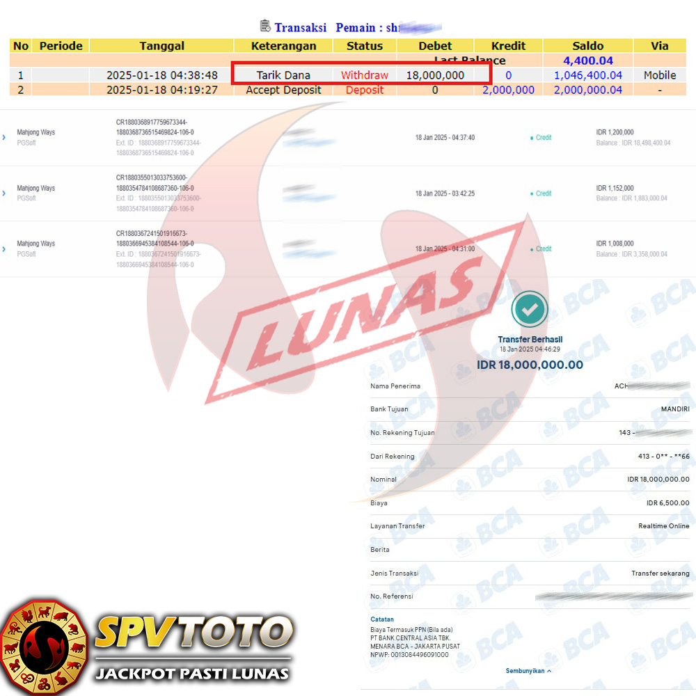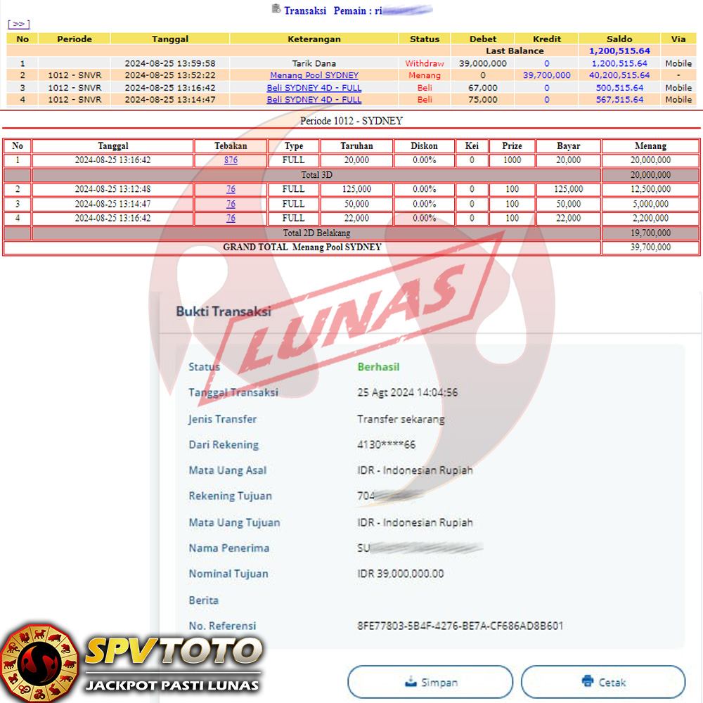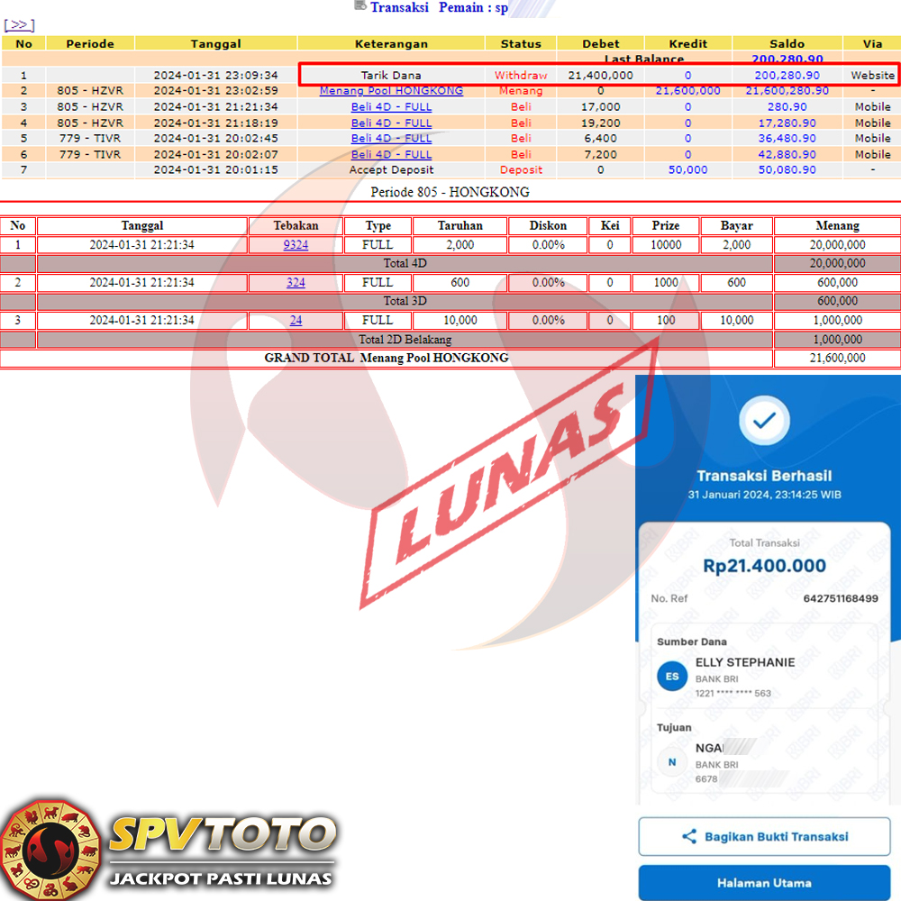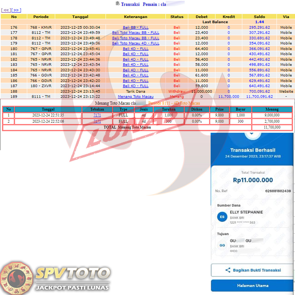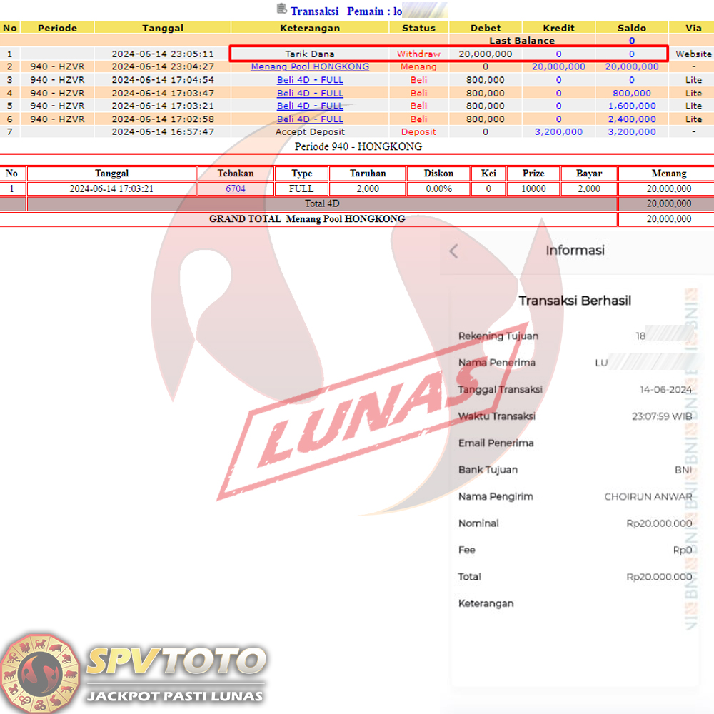 SELAMAT KEPADA MEMBER YANG MENDAPATKAN JACKPOT DI SPVTOTO