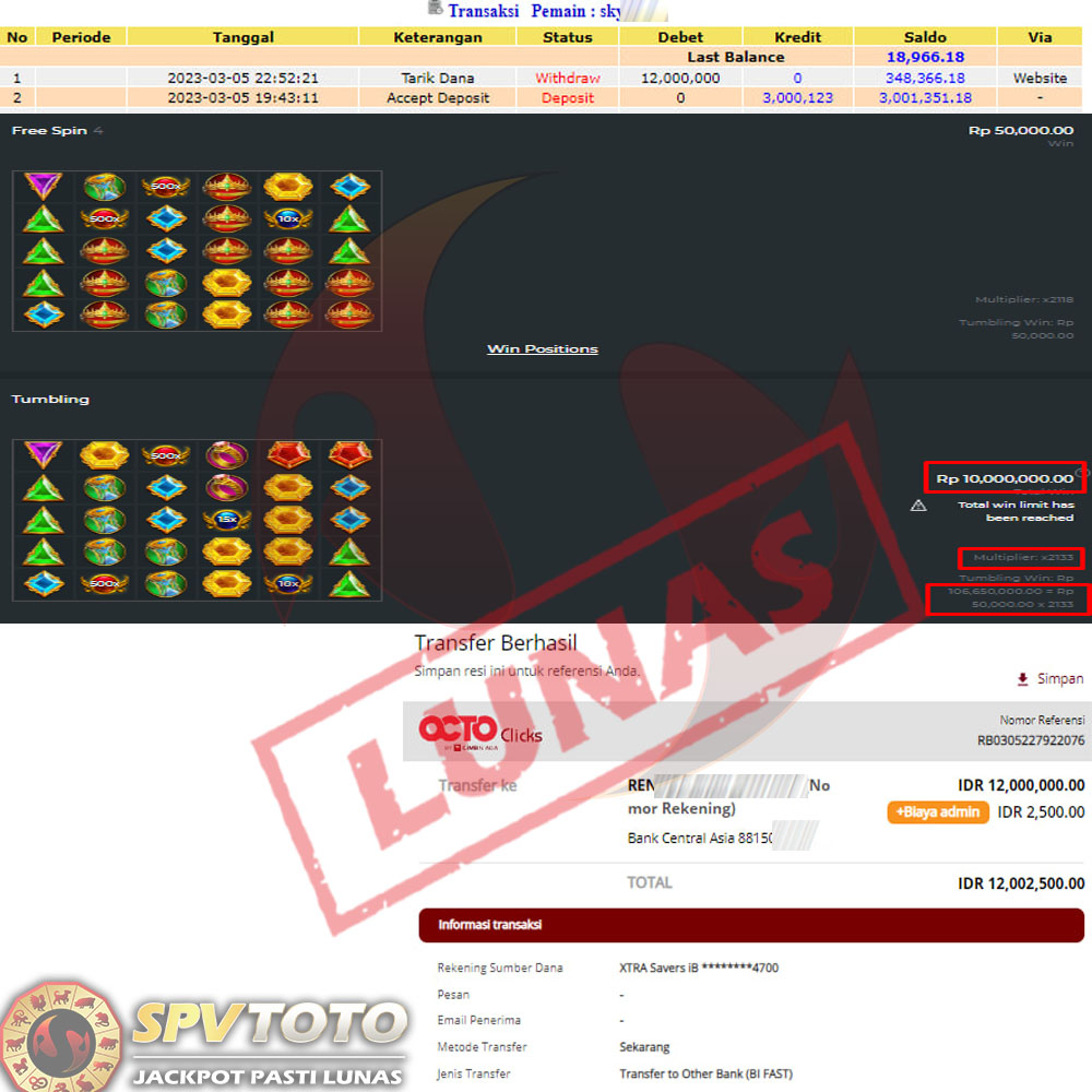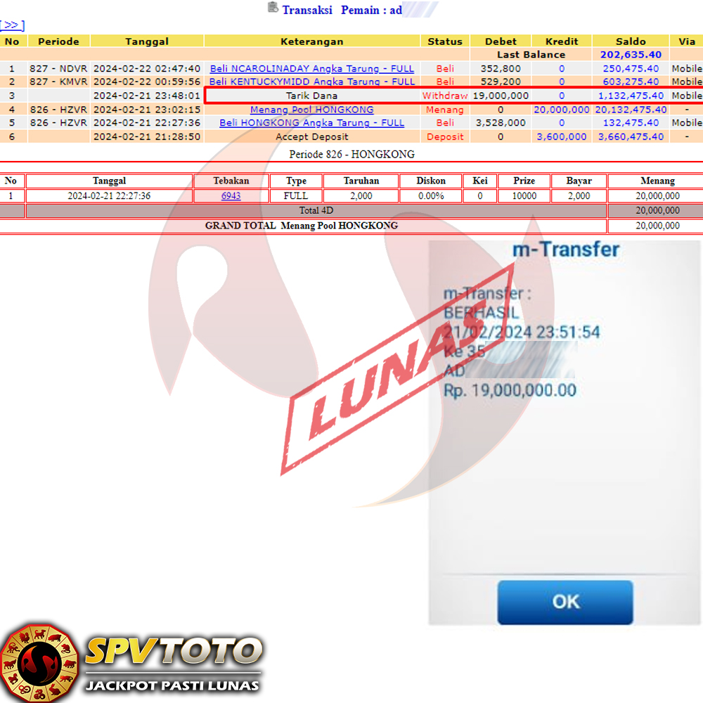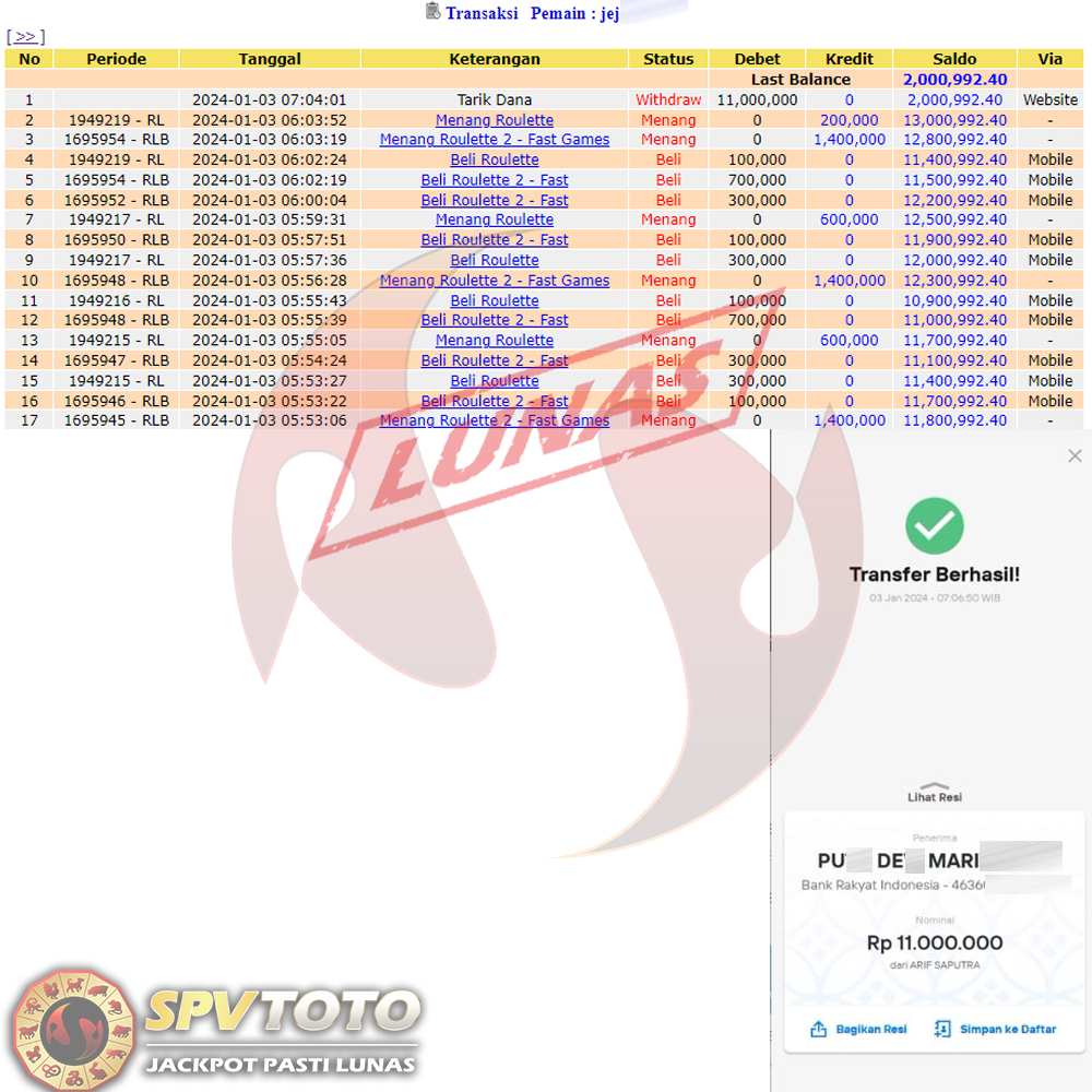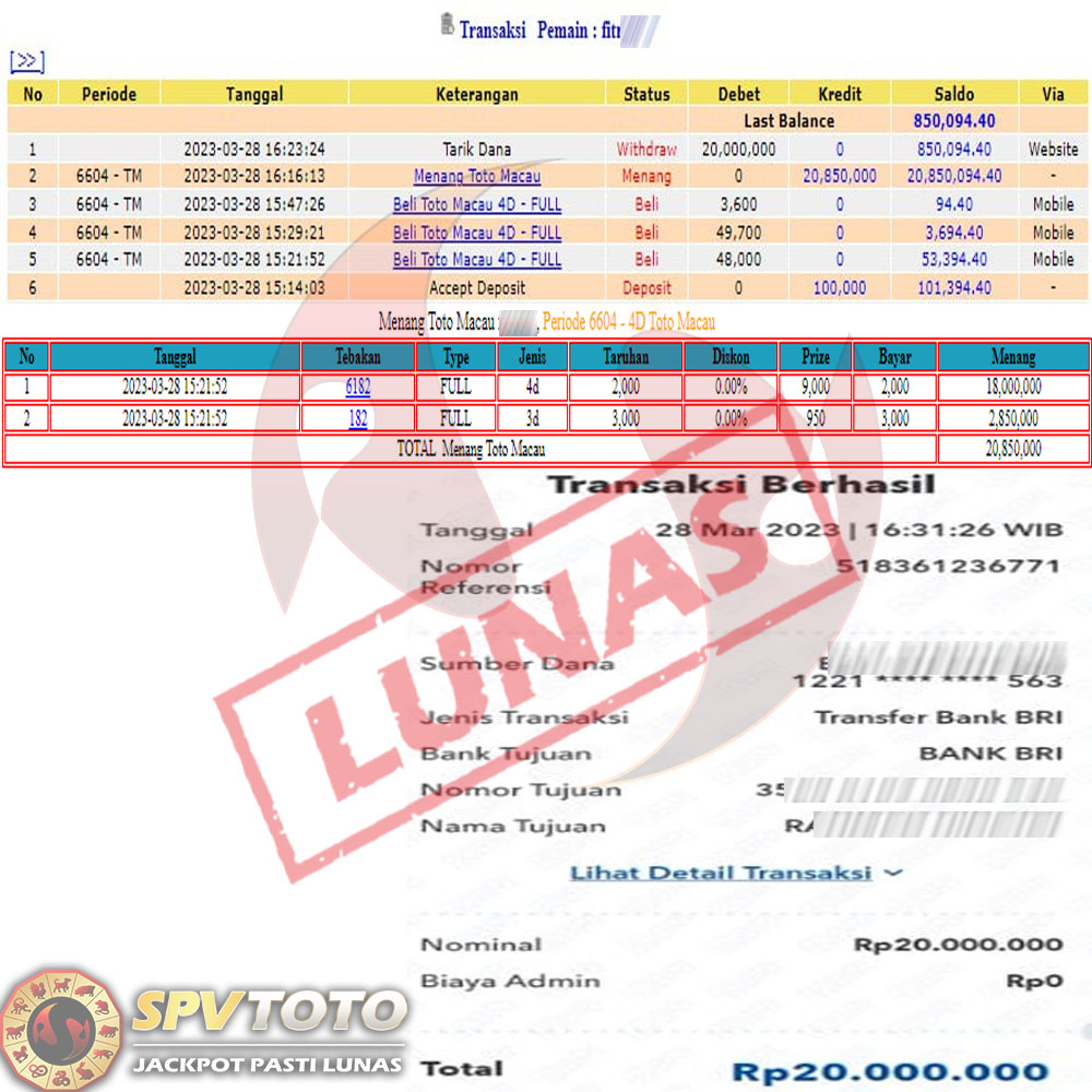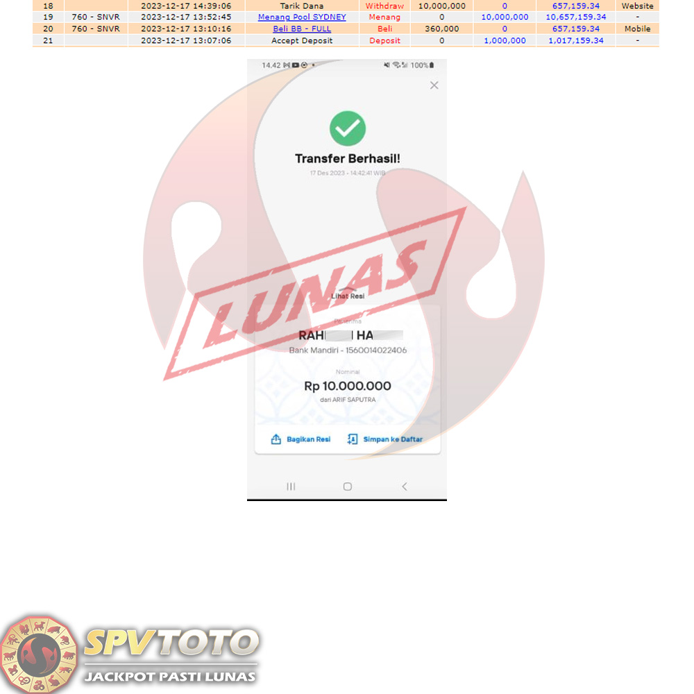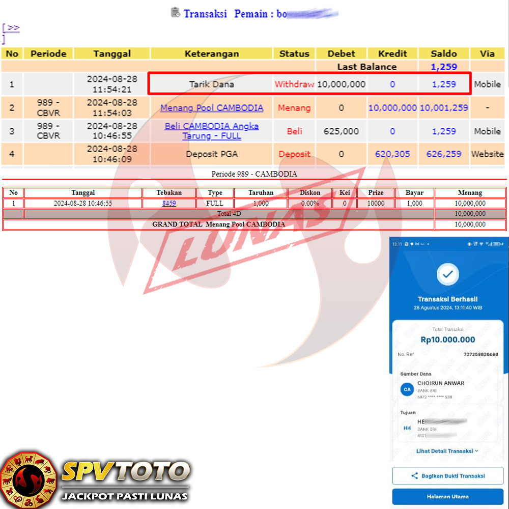 SELAMAT KEPADA MEMBER YANG MENDAPATKAN JACKPOT DI SPVTOTO