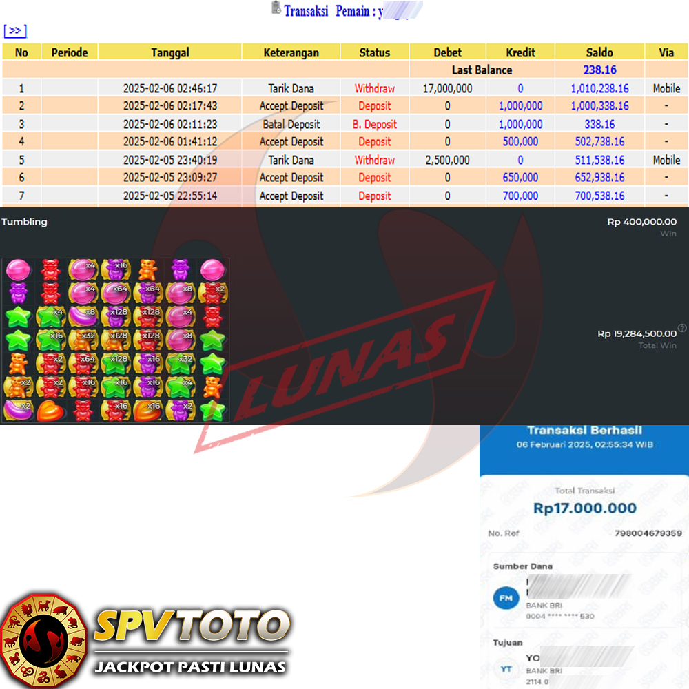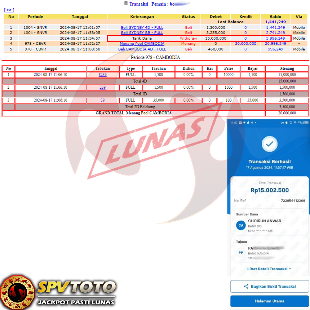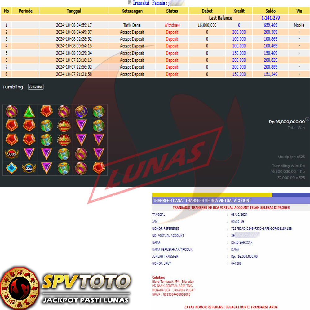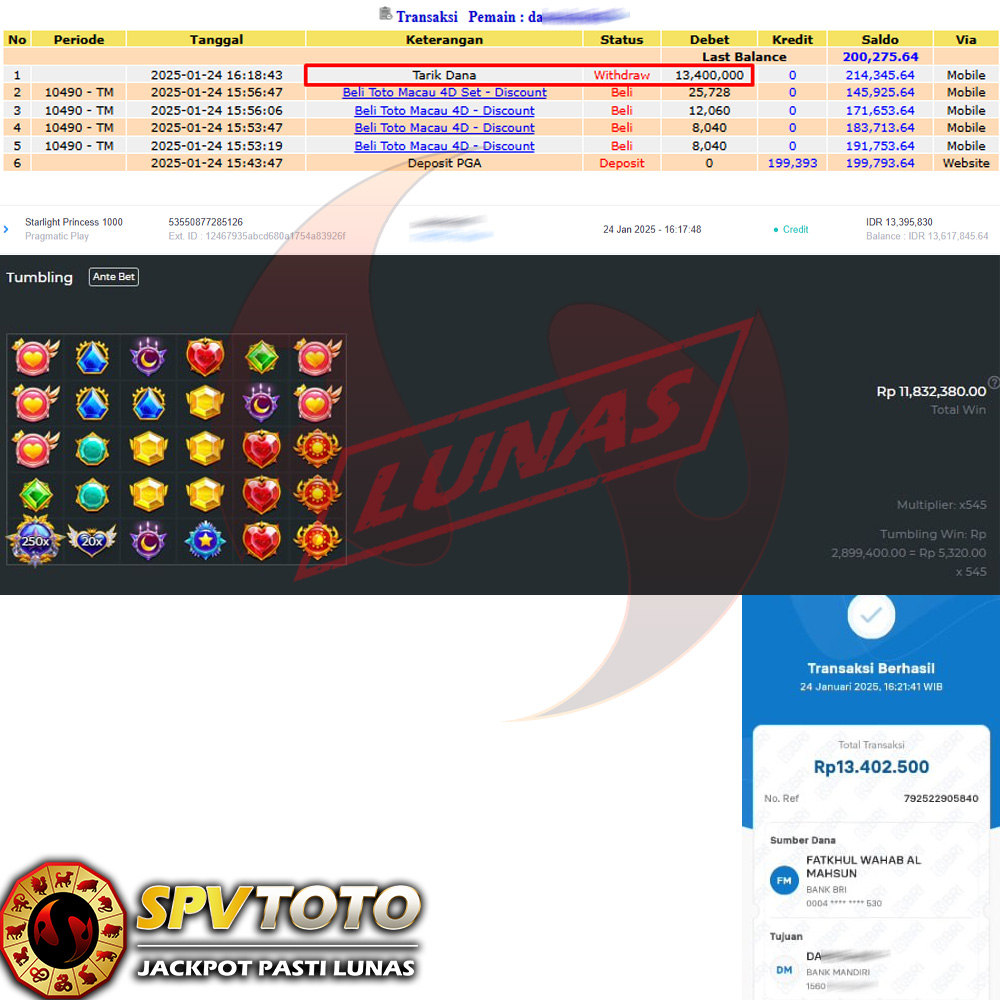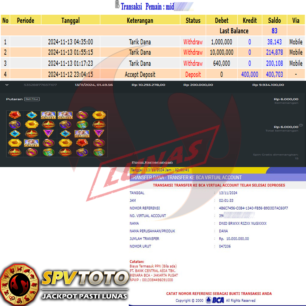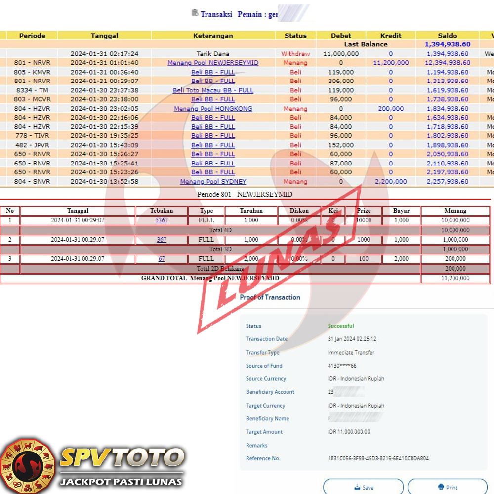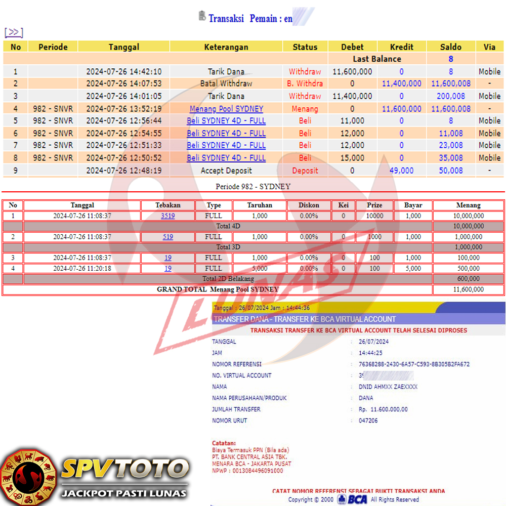 SELAMAT KEPADA MEMBER YANG MENDAPATKAN JACKPOT DI SPVTOTO