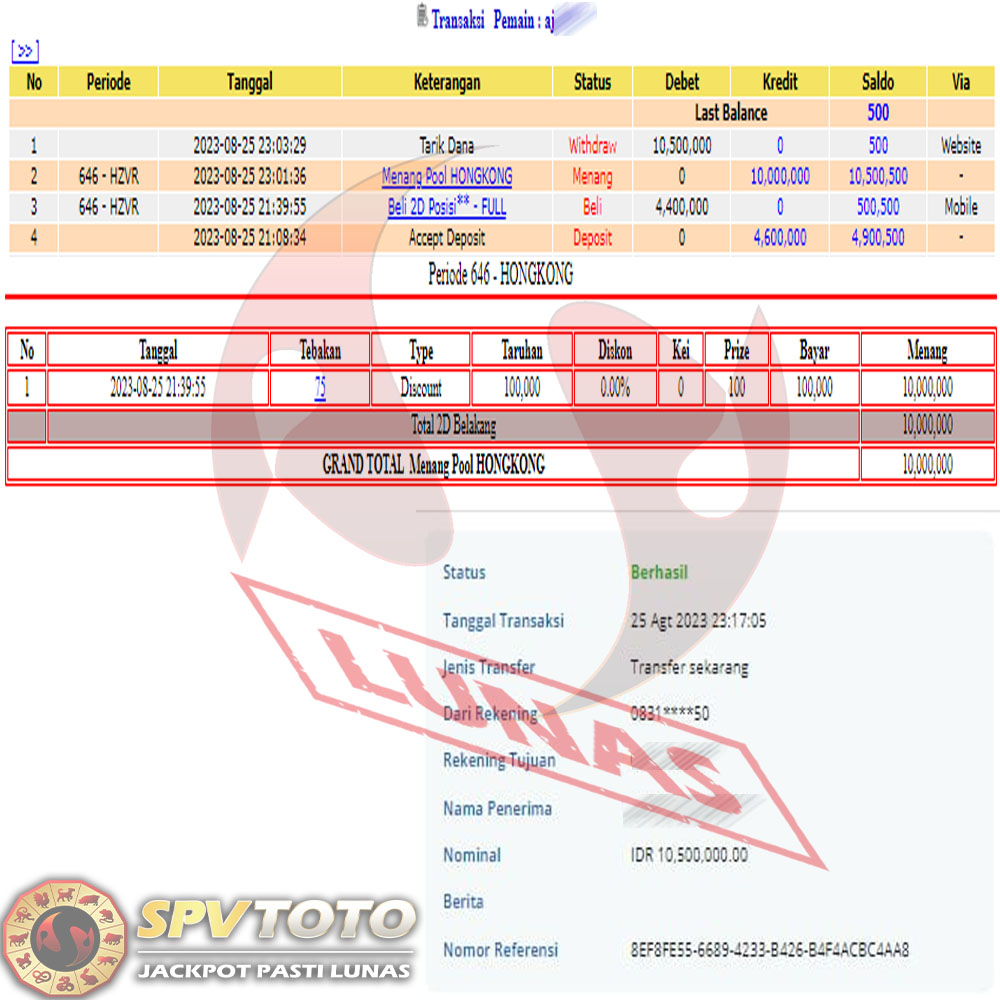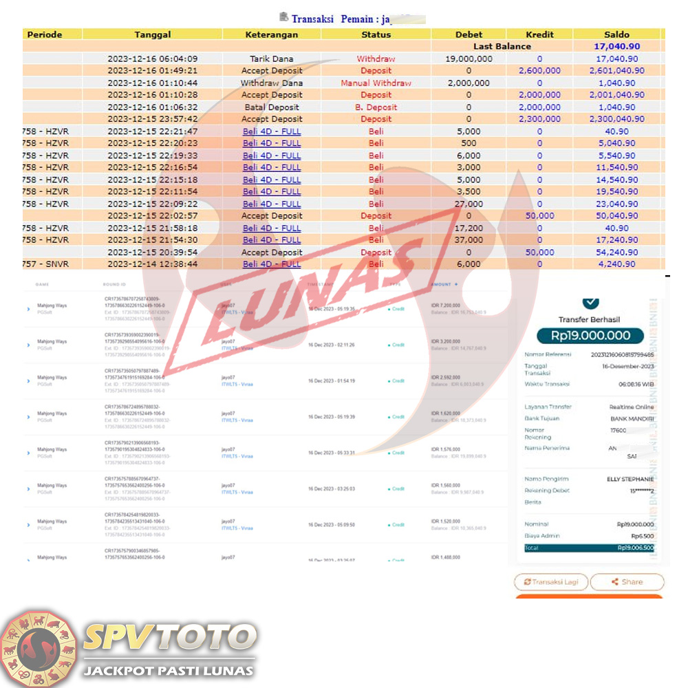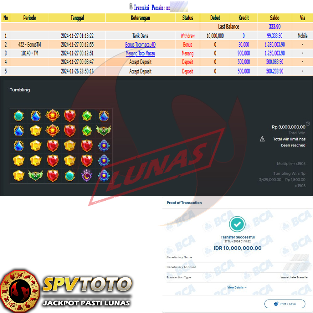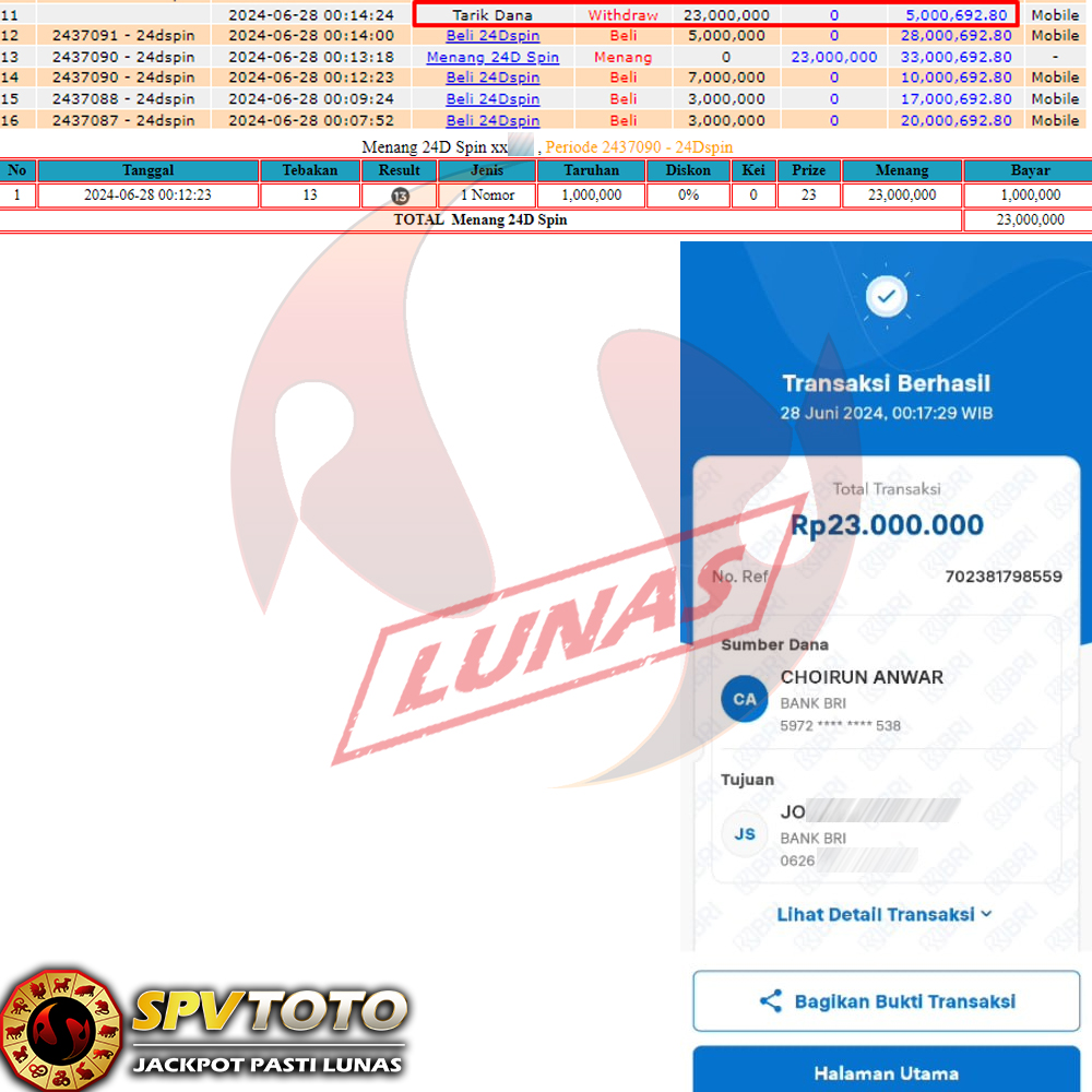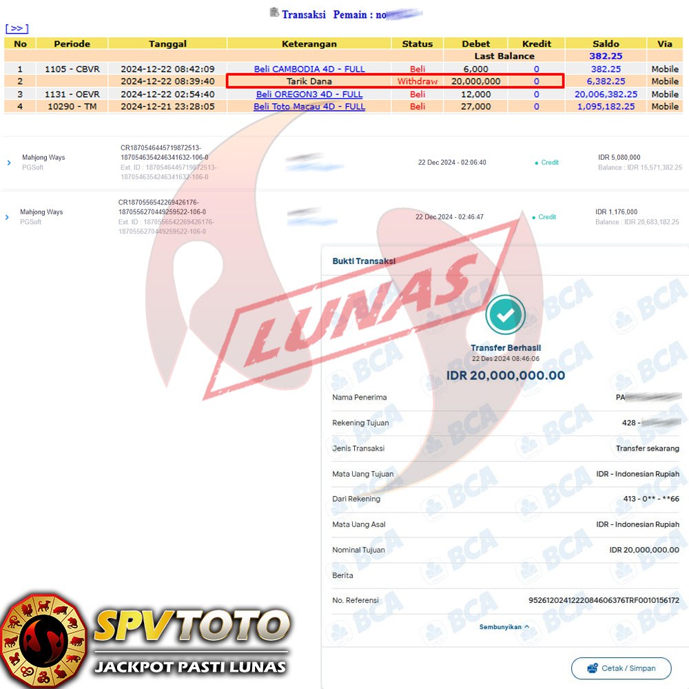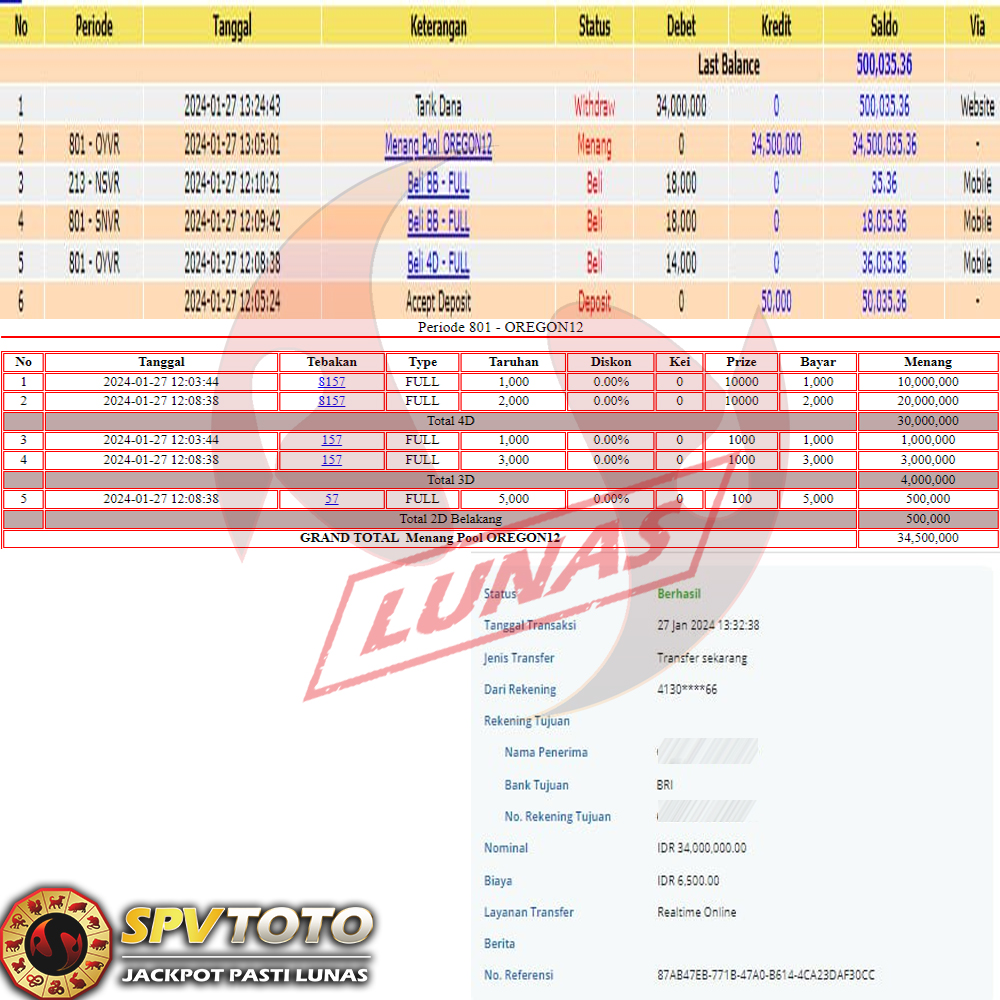 SELAMAT KEPADA MEMBER YANG MENDAPATKAN JACKPOT DI SPVTOTO
