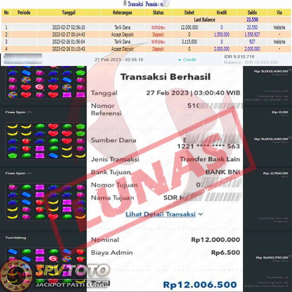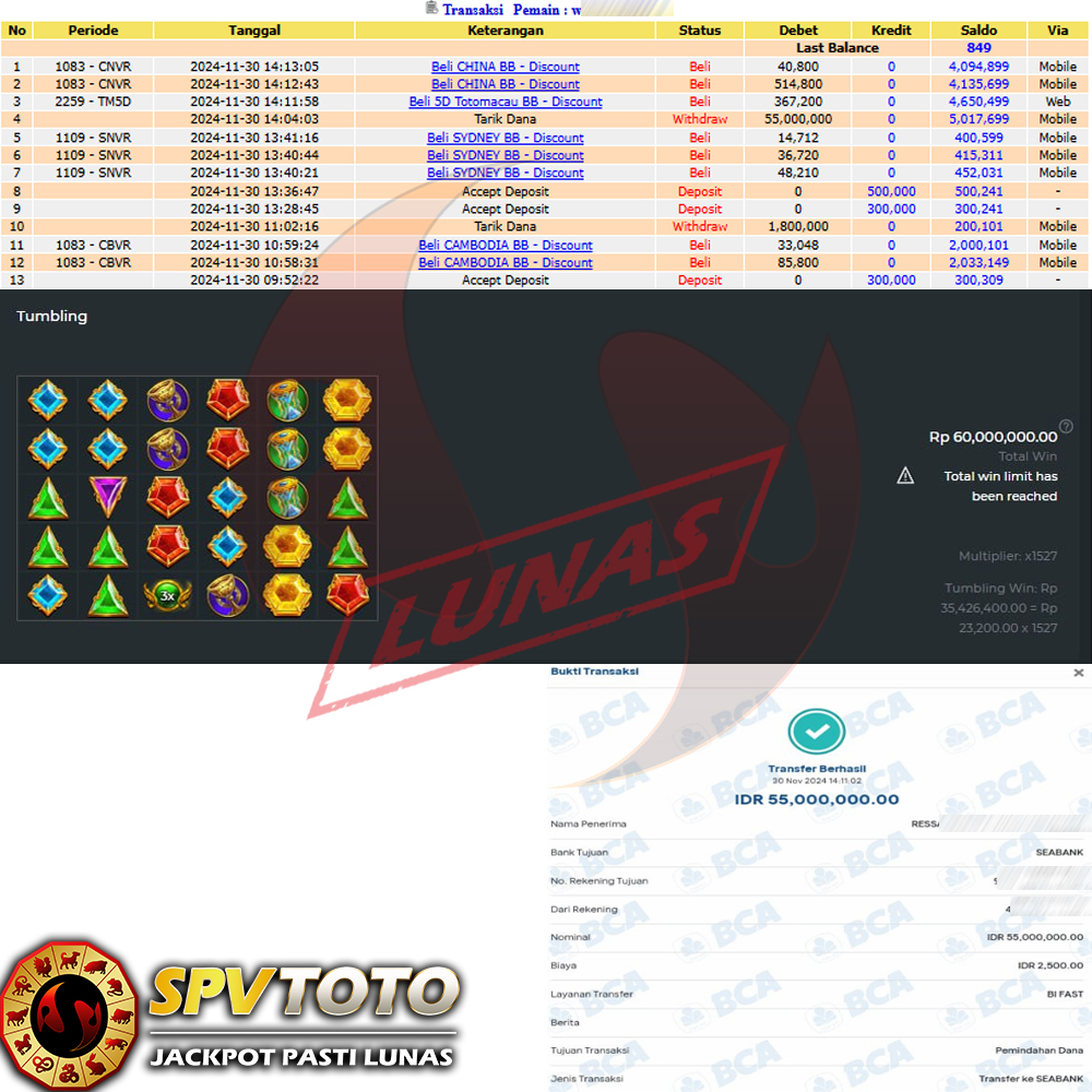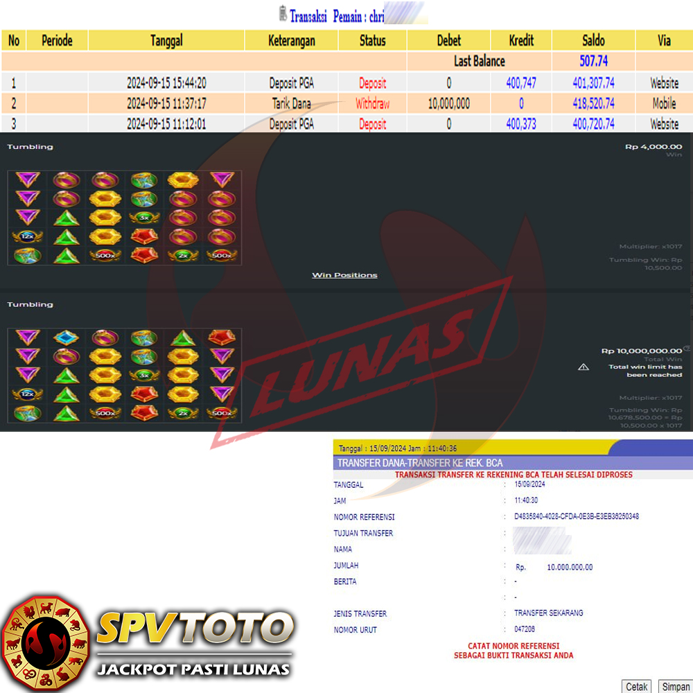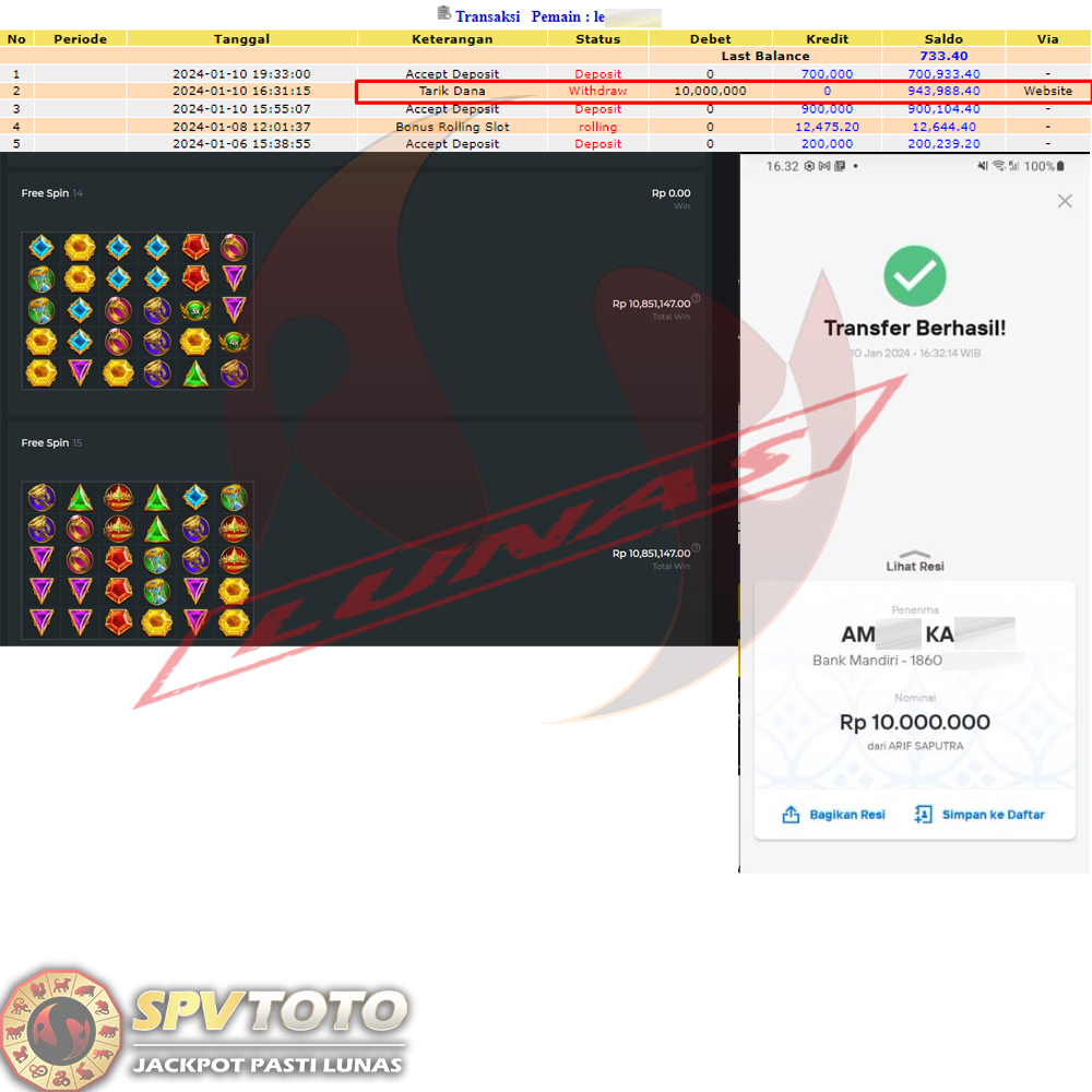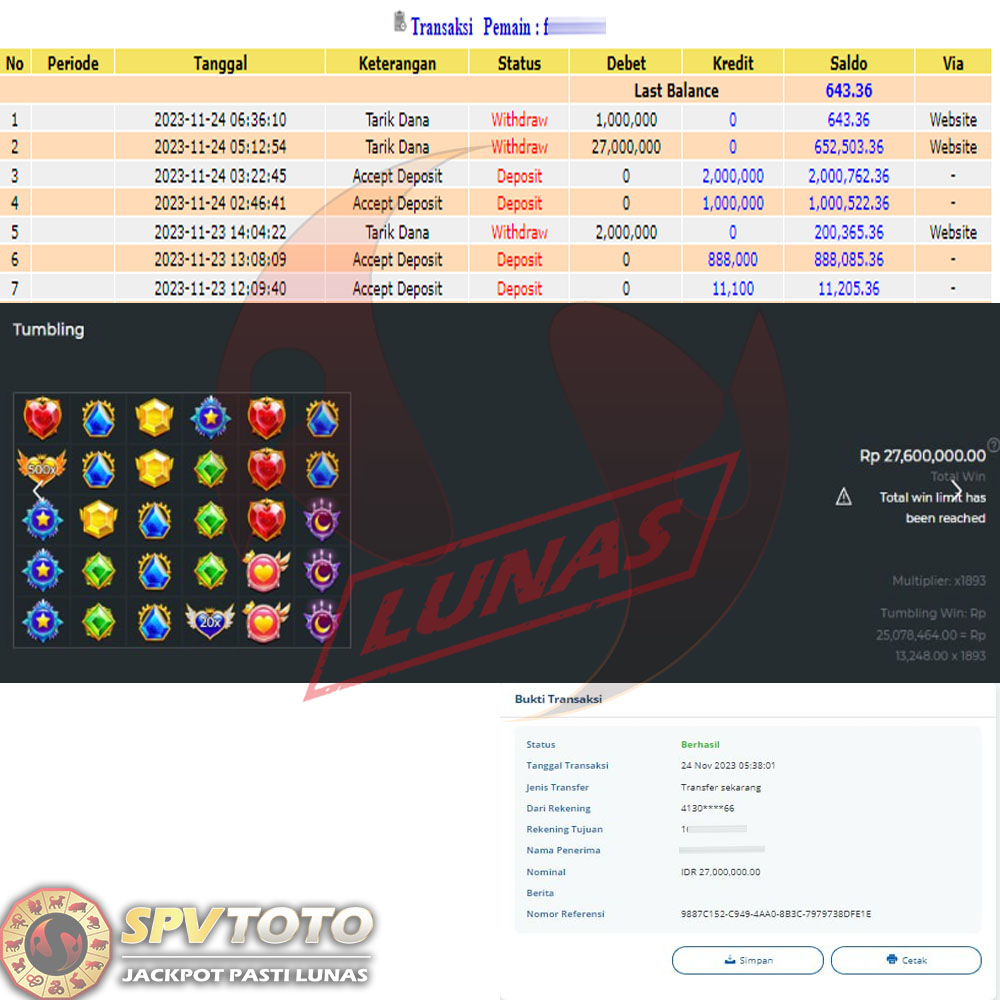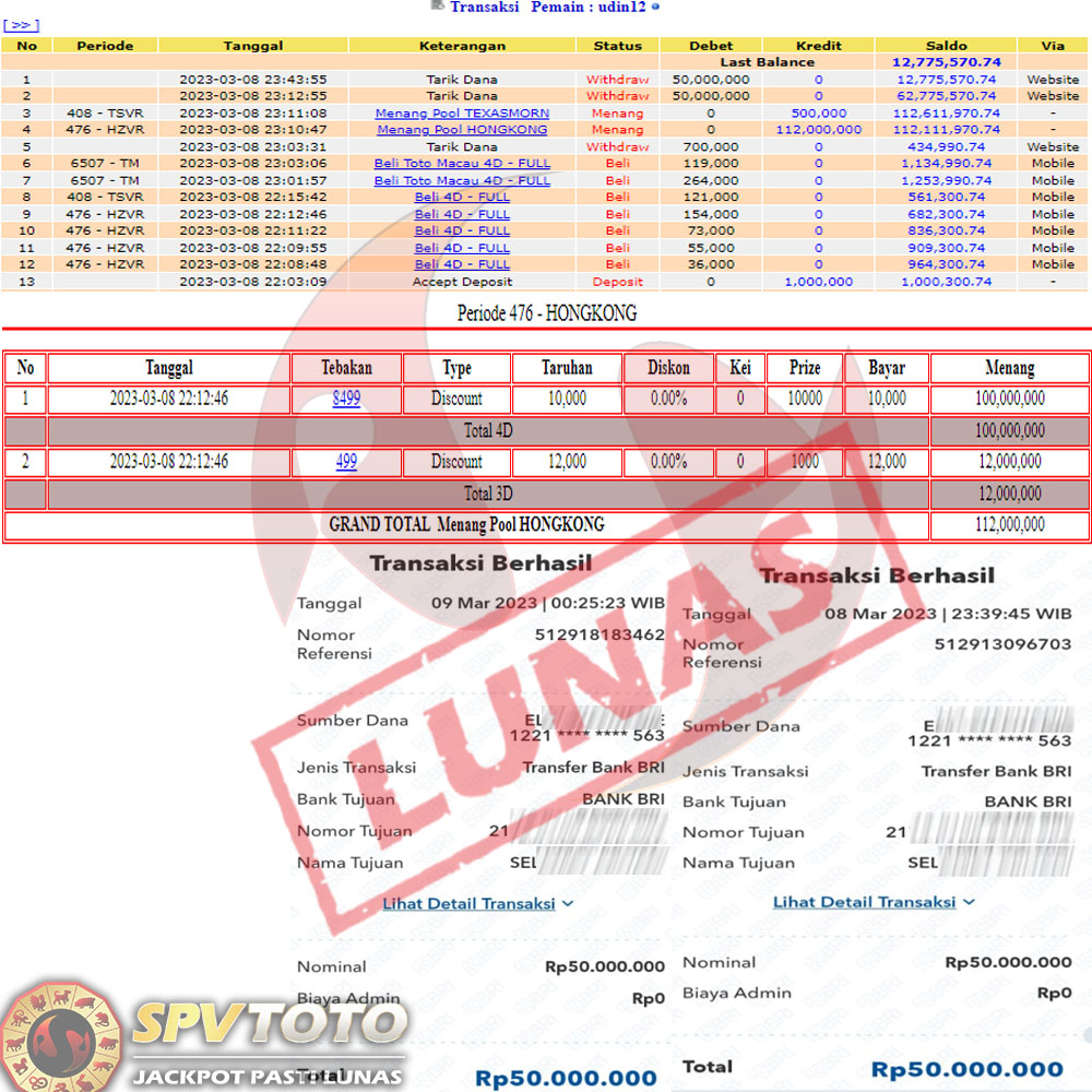 SELAMAT KEPADA MEMBER YANG MENDAPATKAN JACKPOT DI SPVTOTO