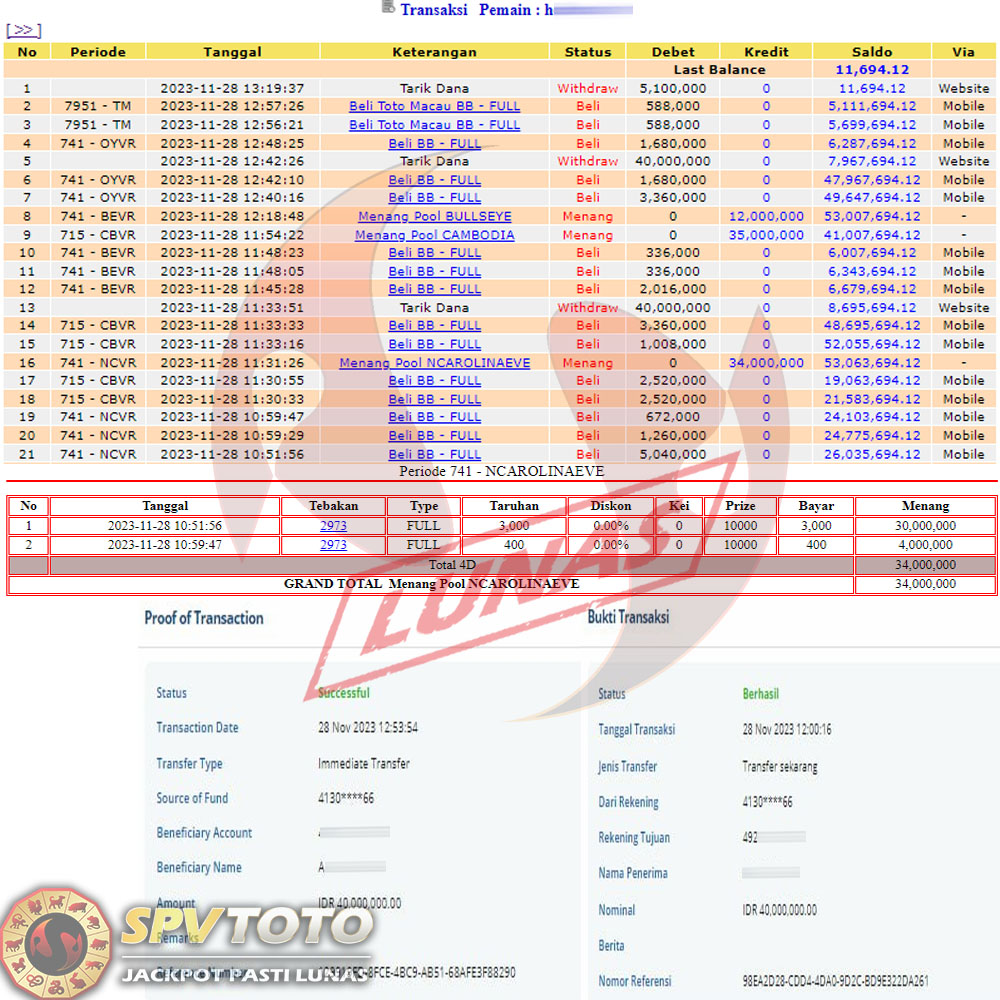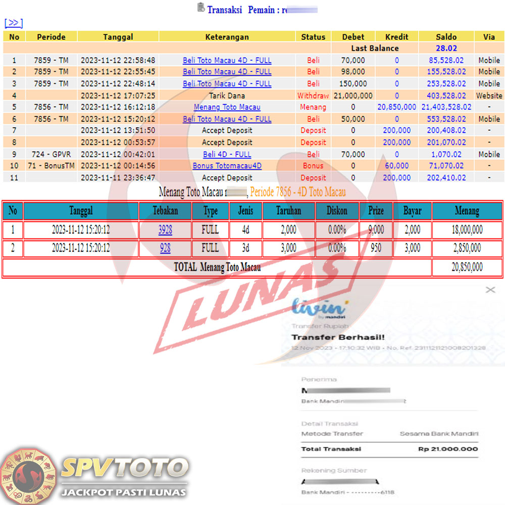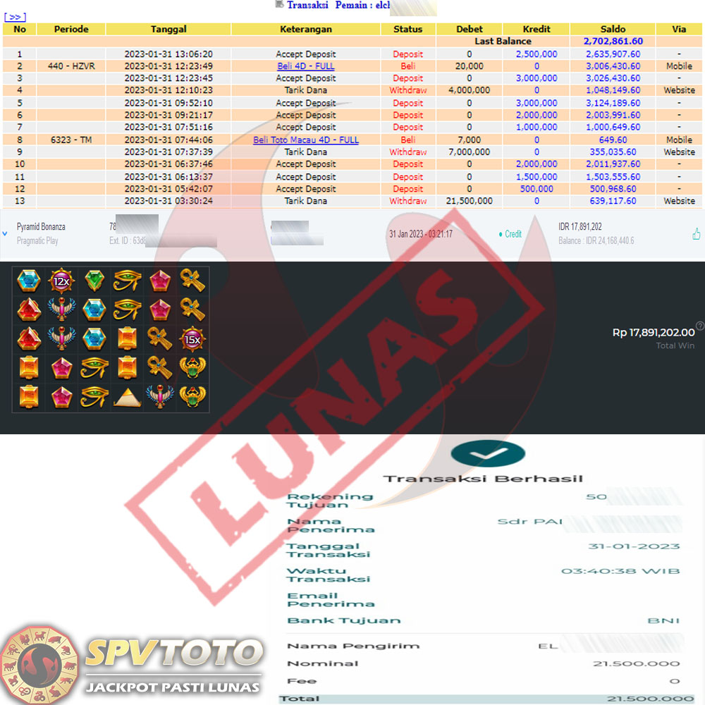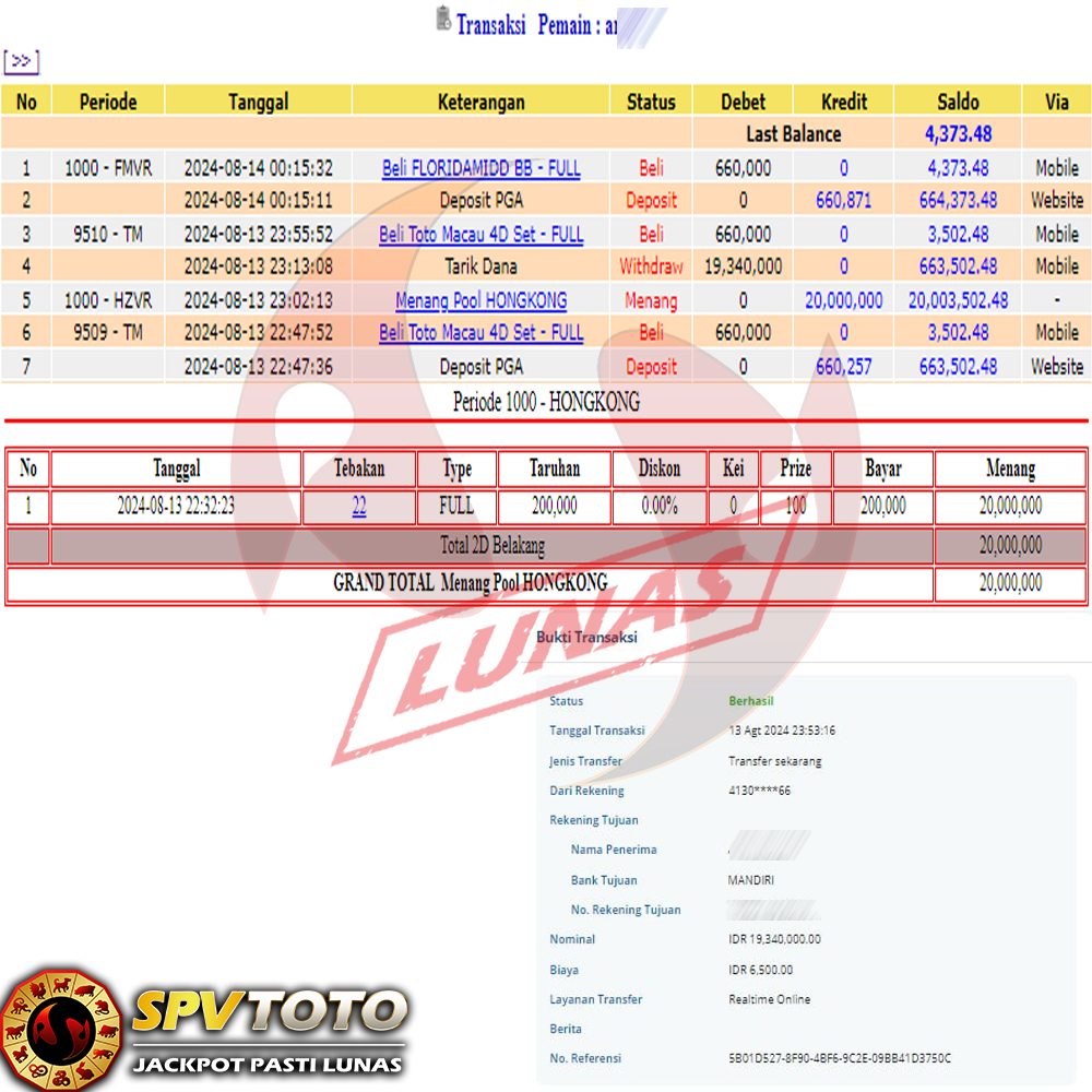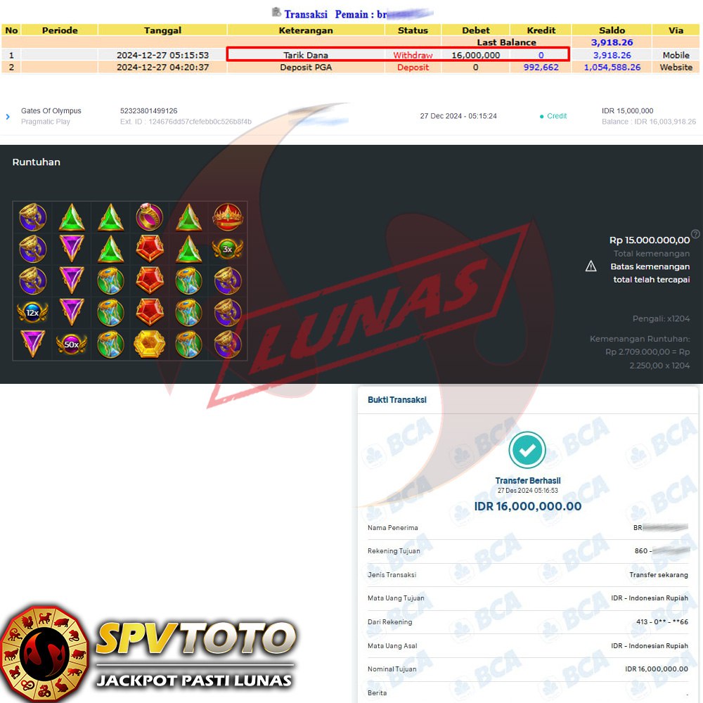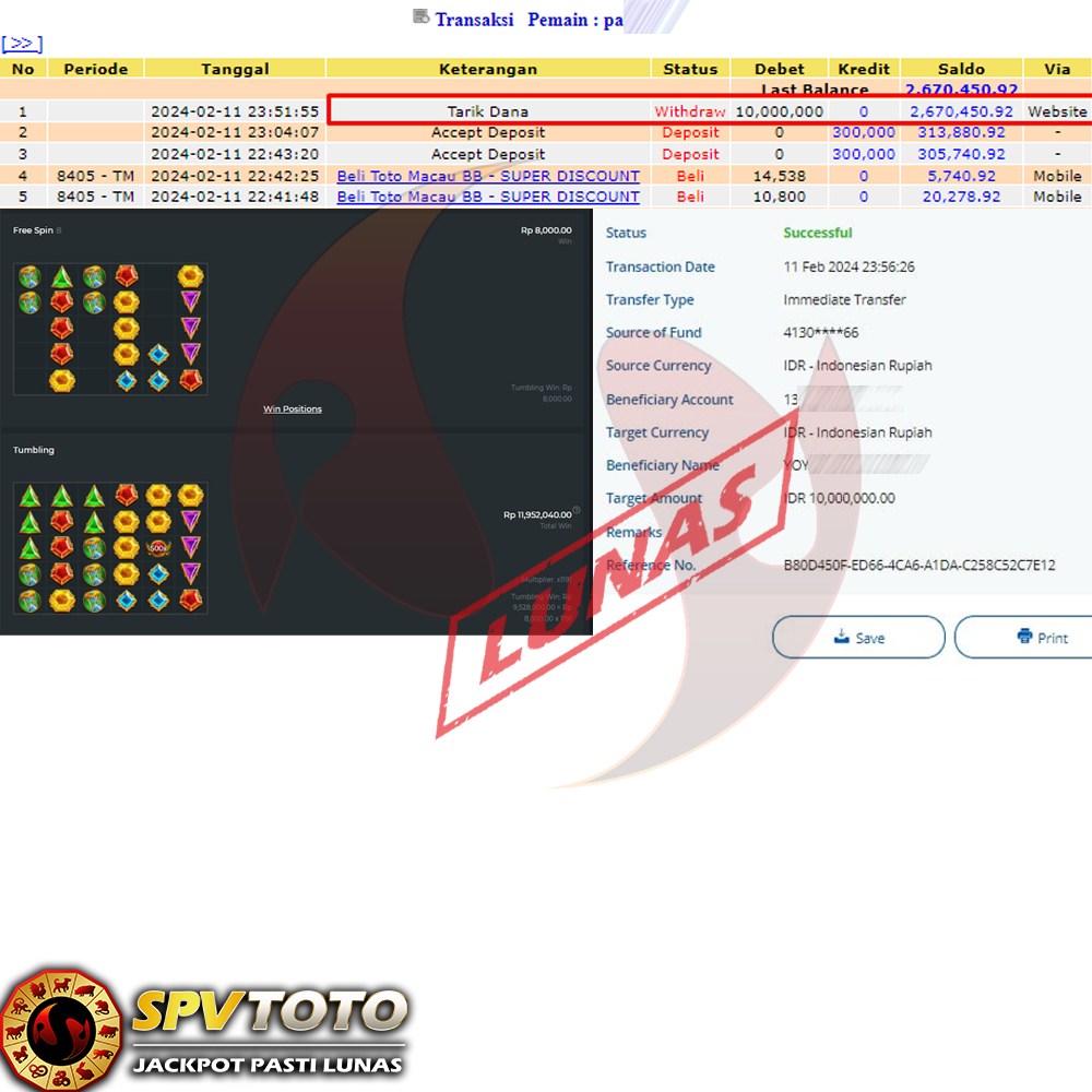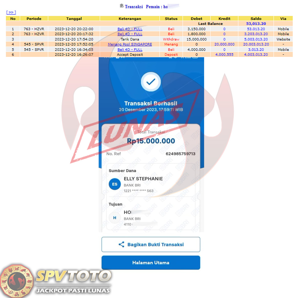 SELAMAT KEPADA MEMBER YANG MENDAPATKAN JACKPOT DI SPVTOTO