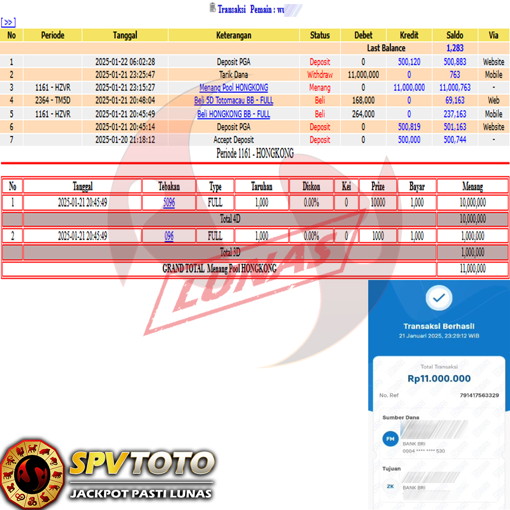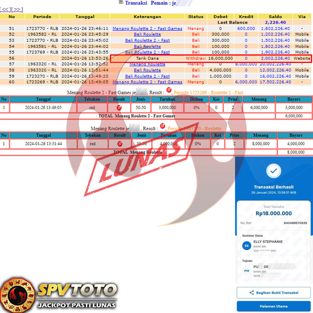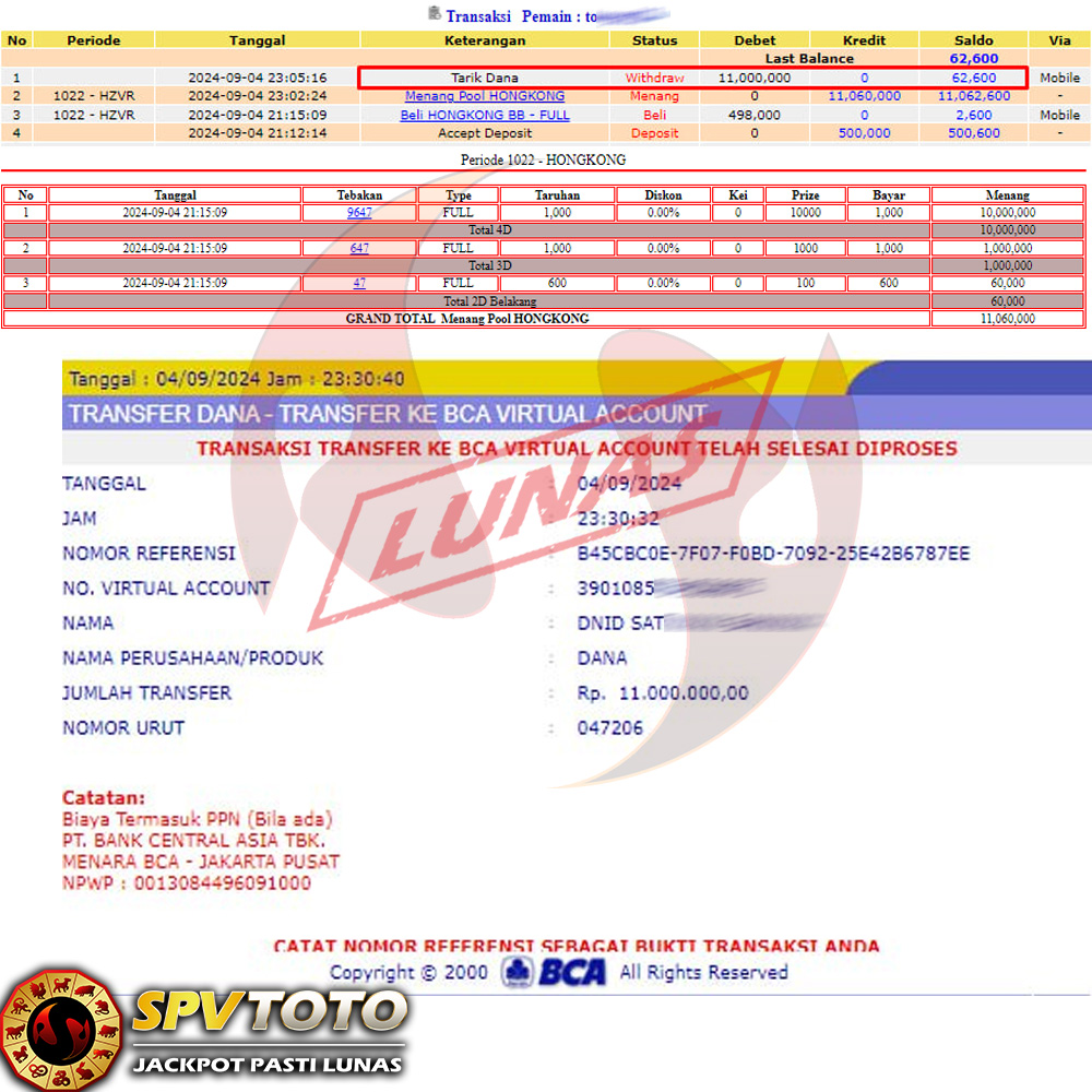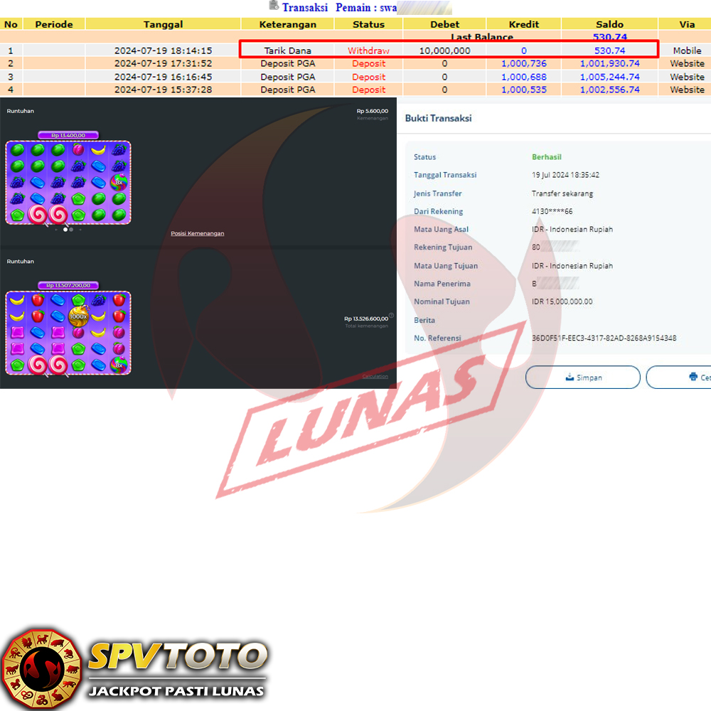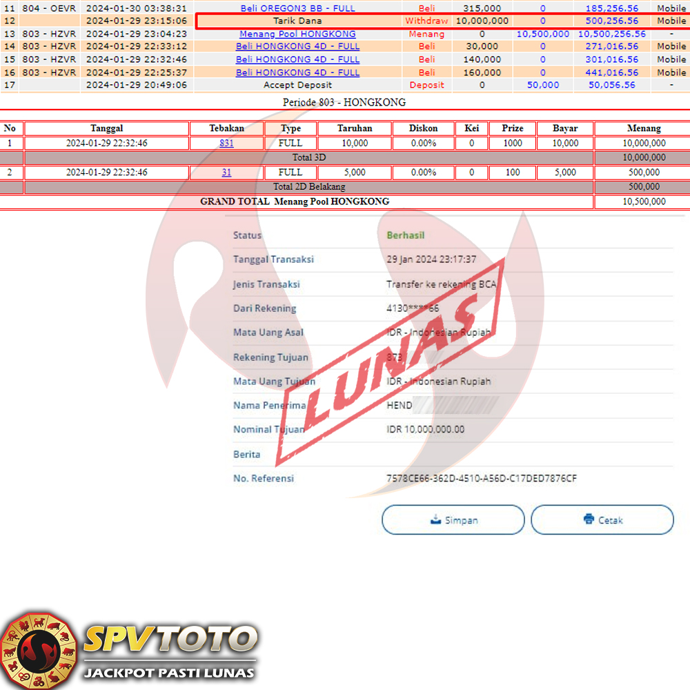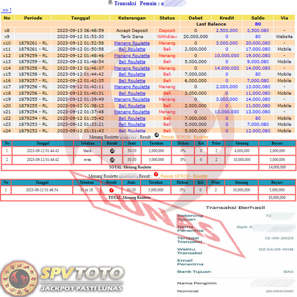 SELAMAT KEPADA MEMBER YANG MENDAPATKAN JACKPOT DI SPVTOTO