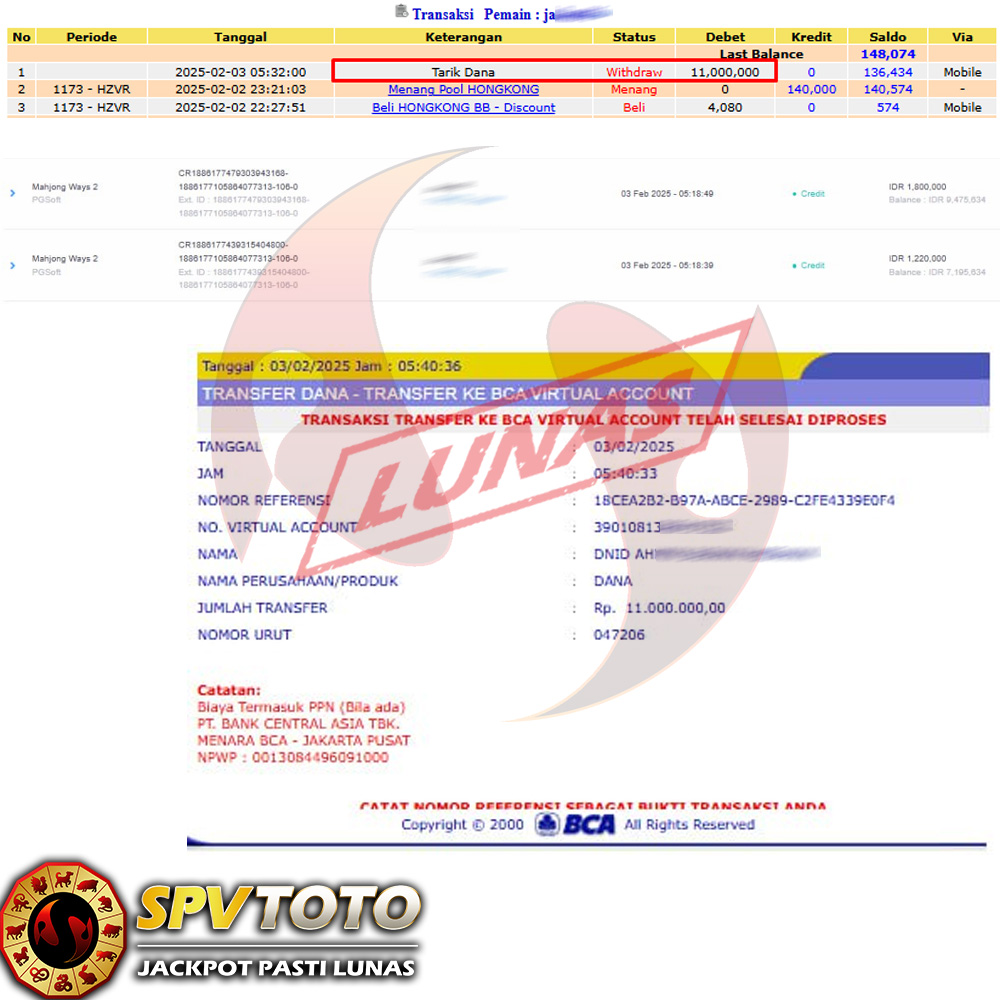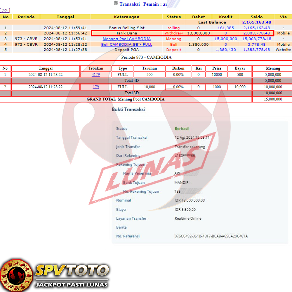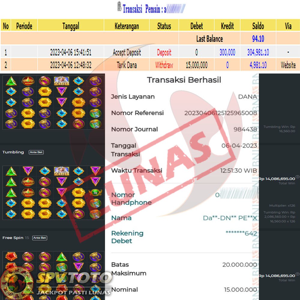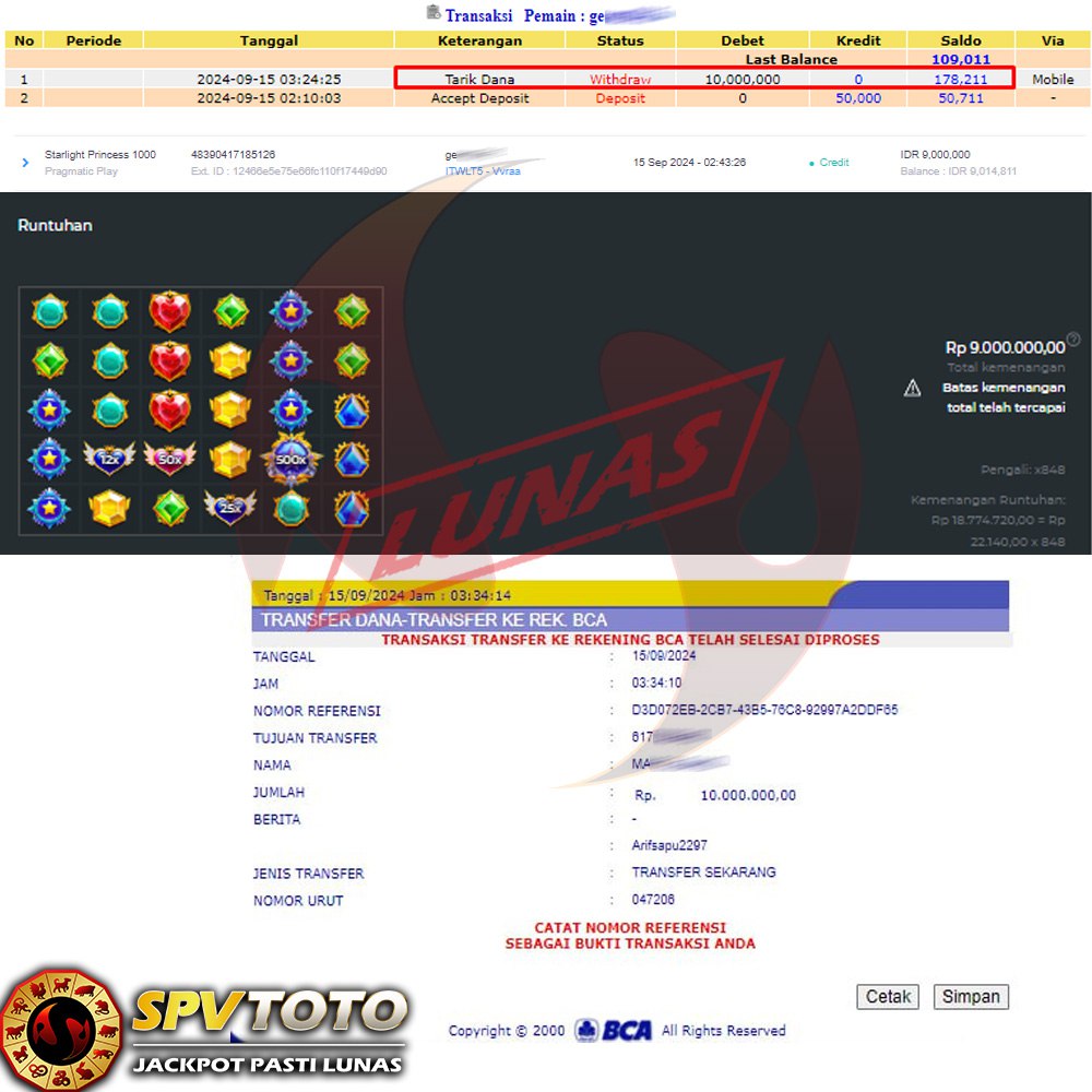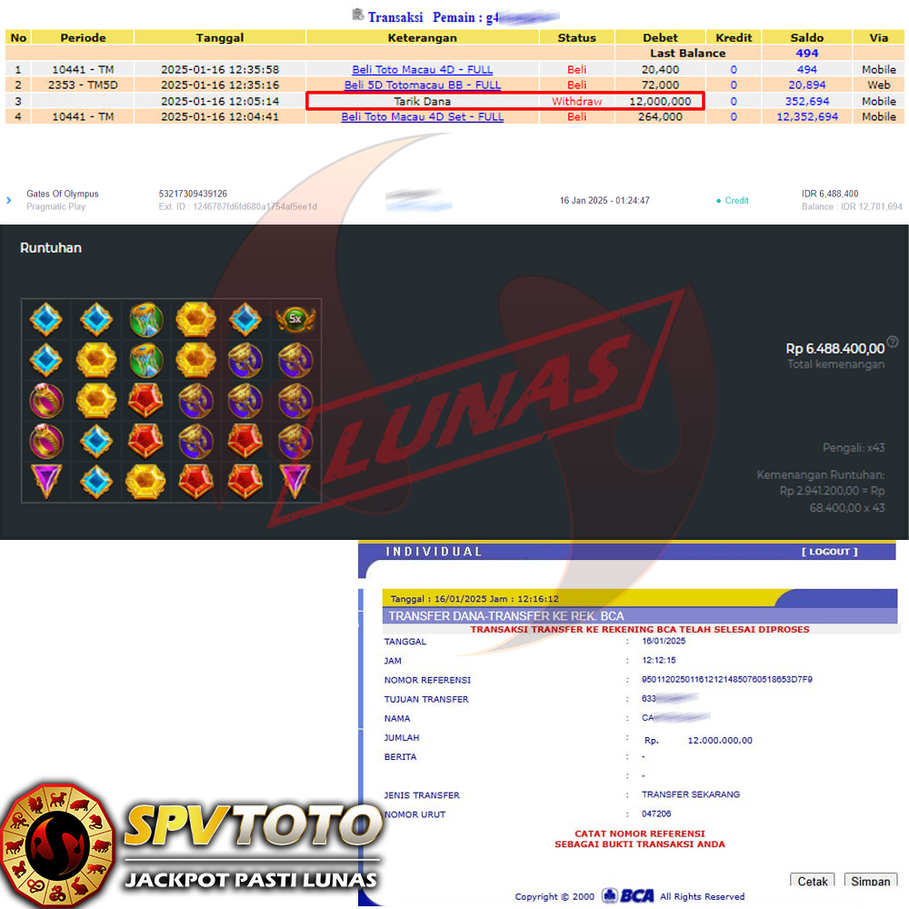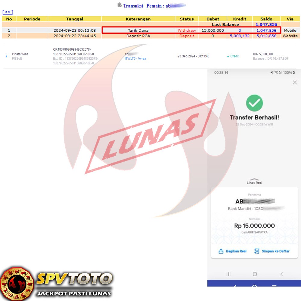 SELAMAT KEPADA MEMBER YANG MENDAPATKAN JACKPOT DI SPVTOTO