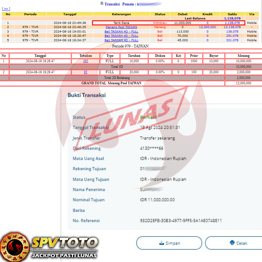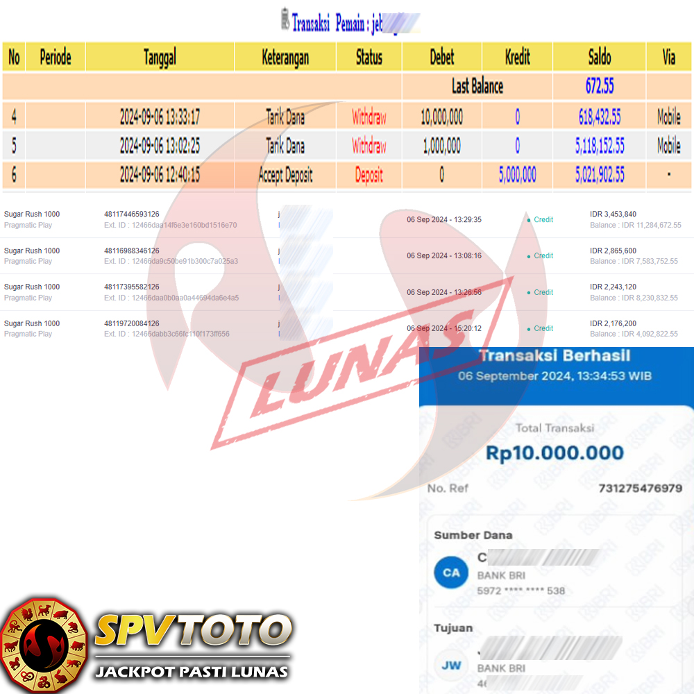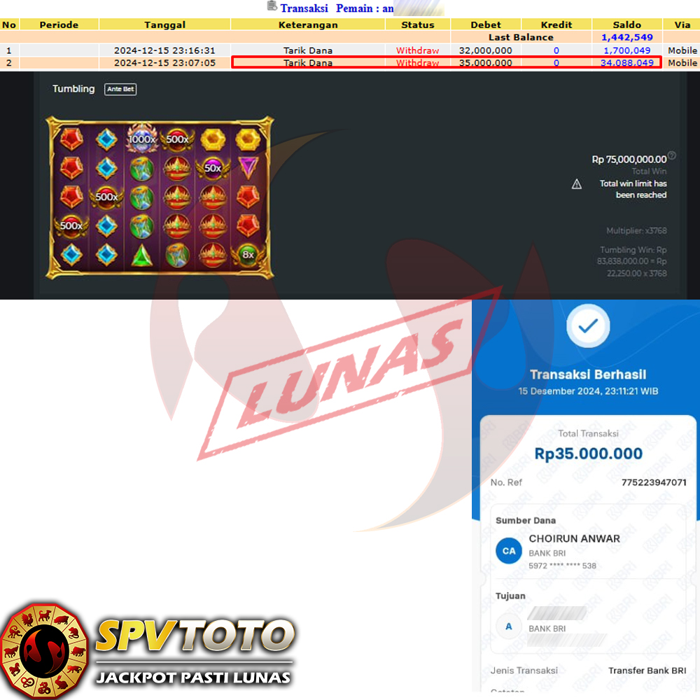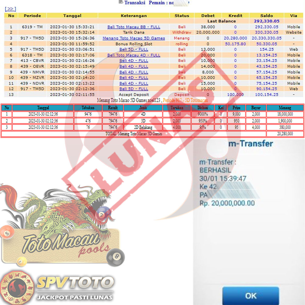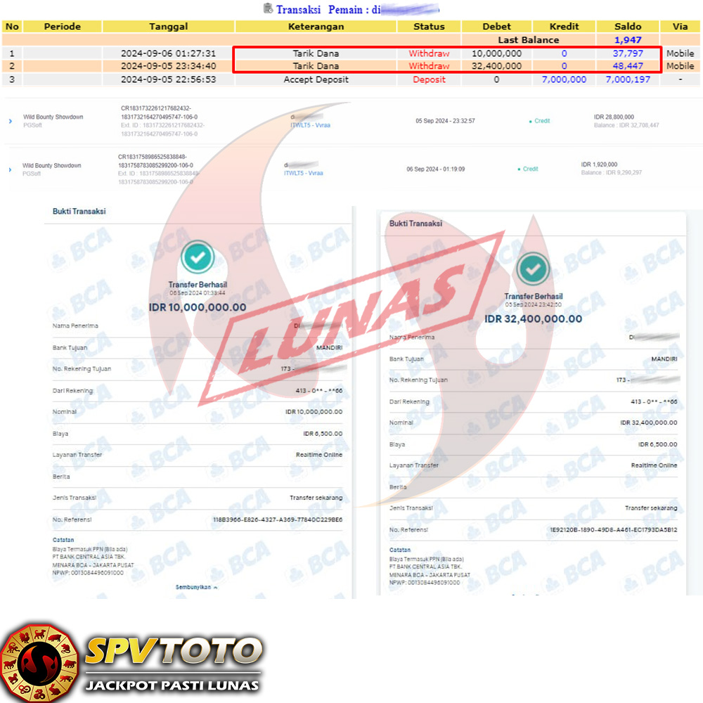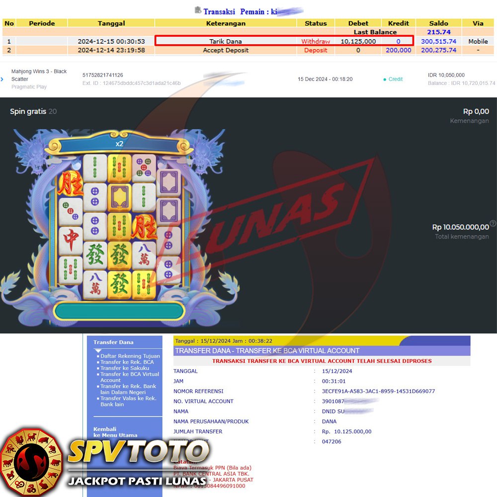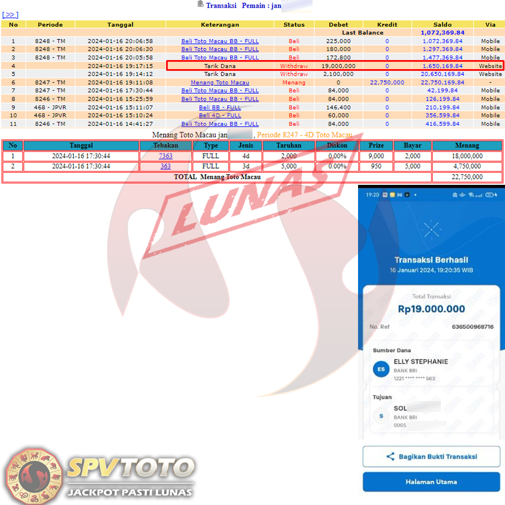 SELAMAT KEPADA MEMBER YANG MENDAPATKAN JACKPOT DI SPVTOTO