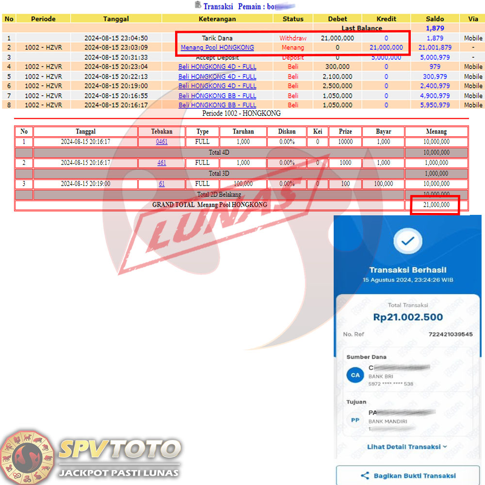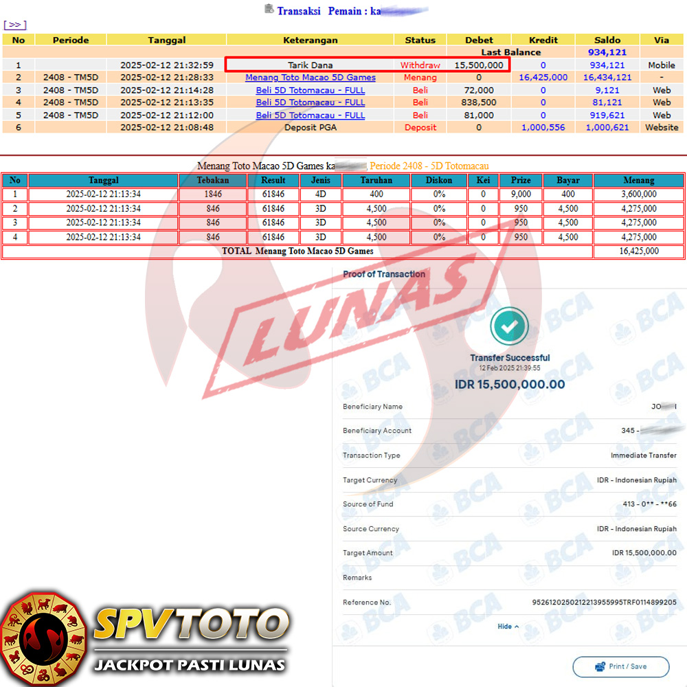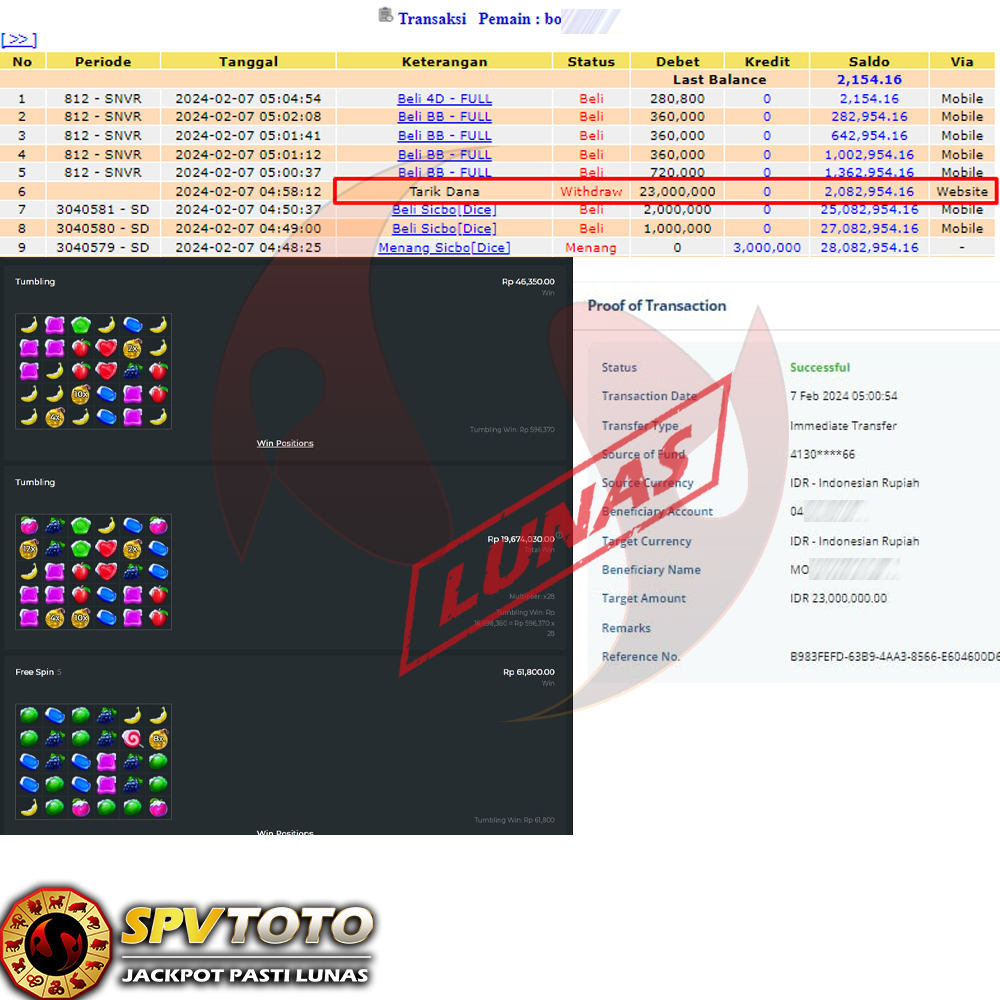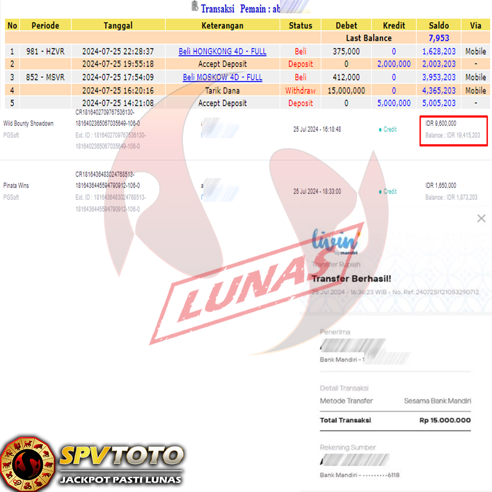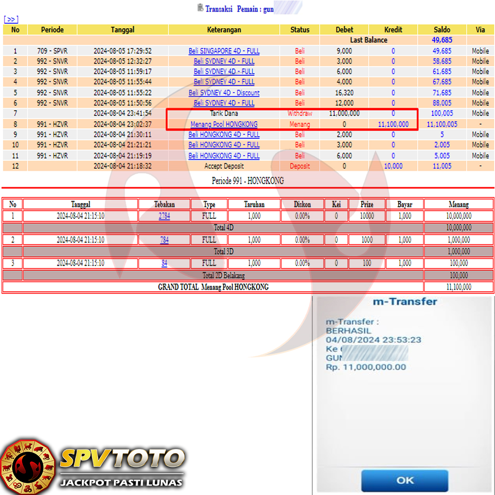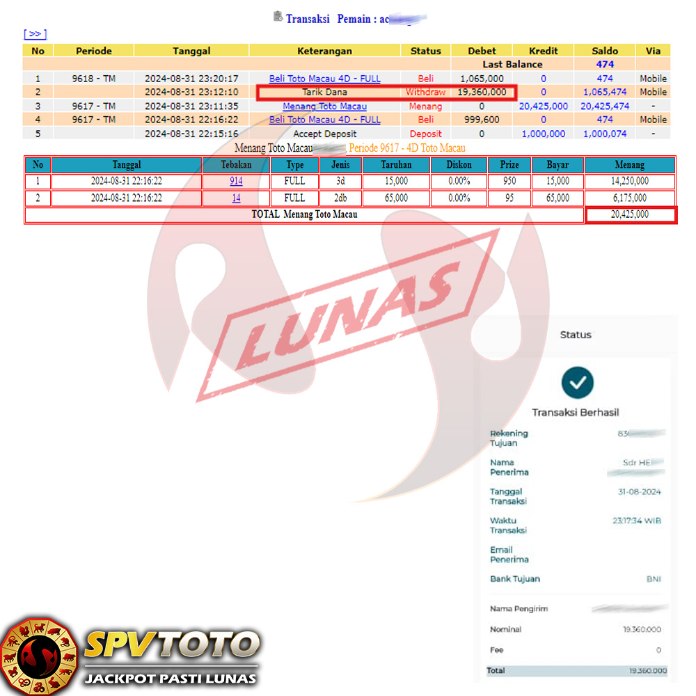 SELAMAT KEPADA MEMBER YANG MENDAPATKAN JACKPOT DI SPVTOTO