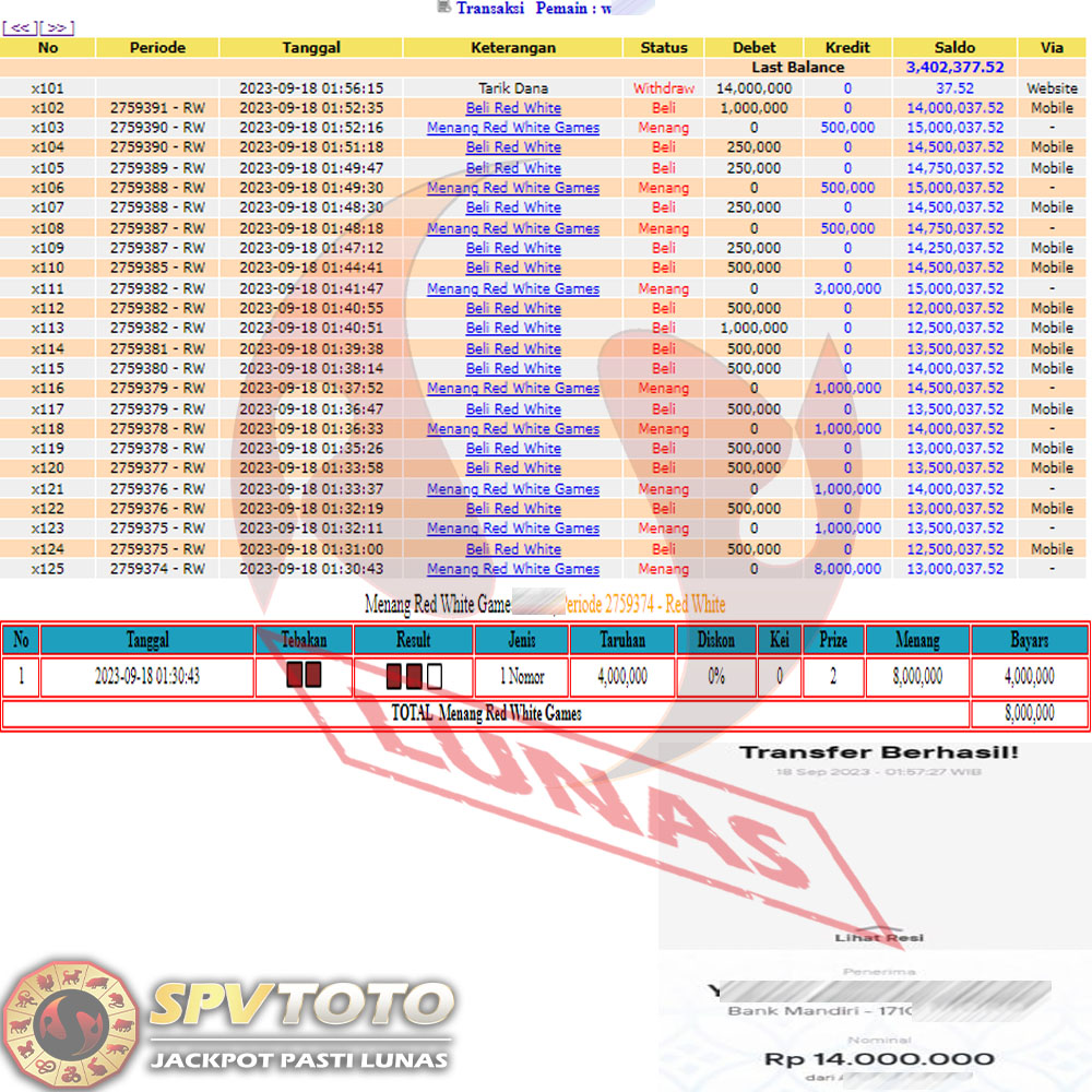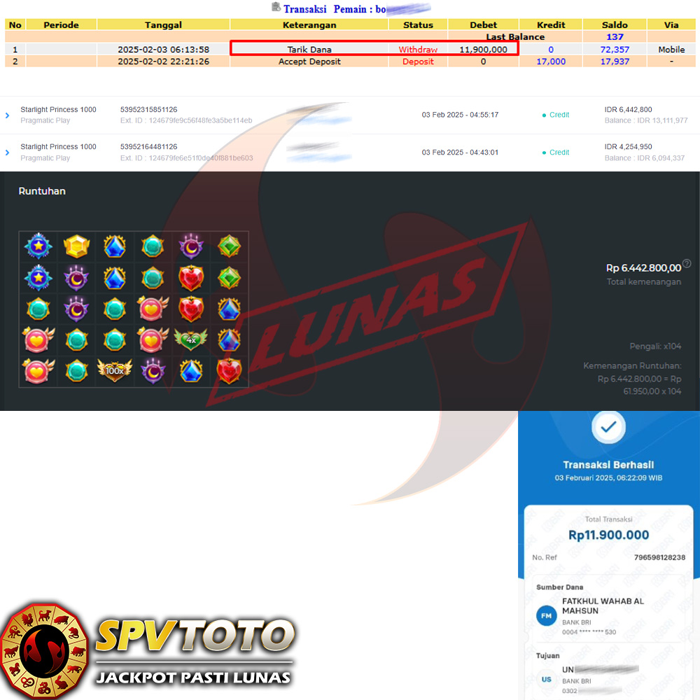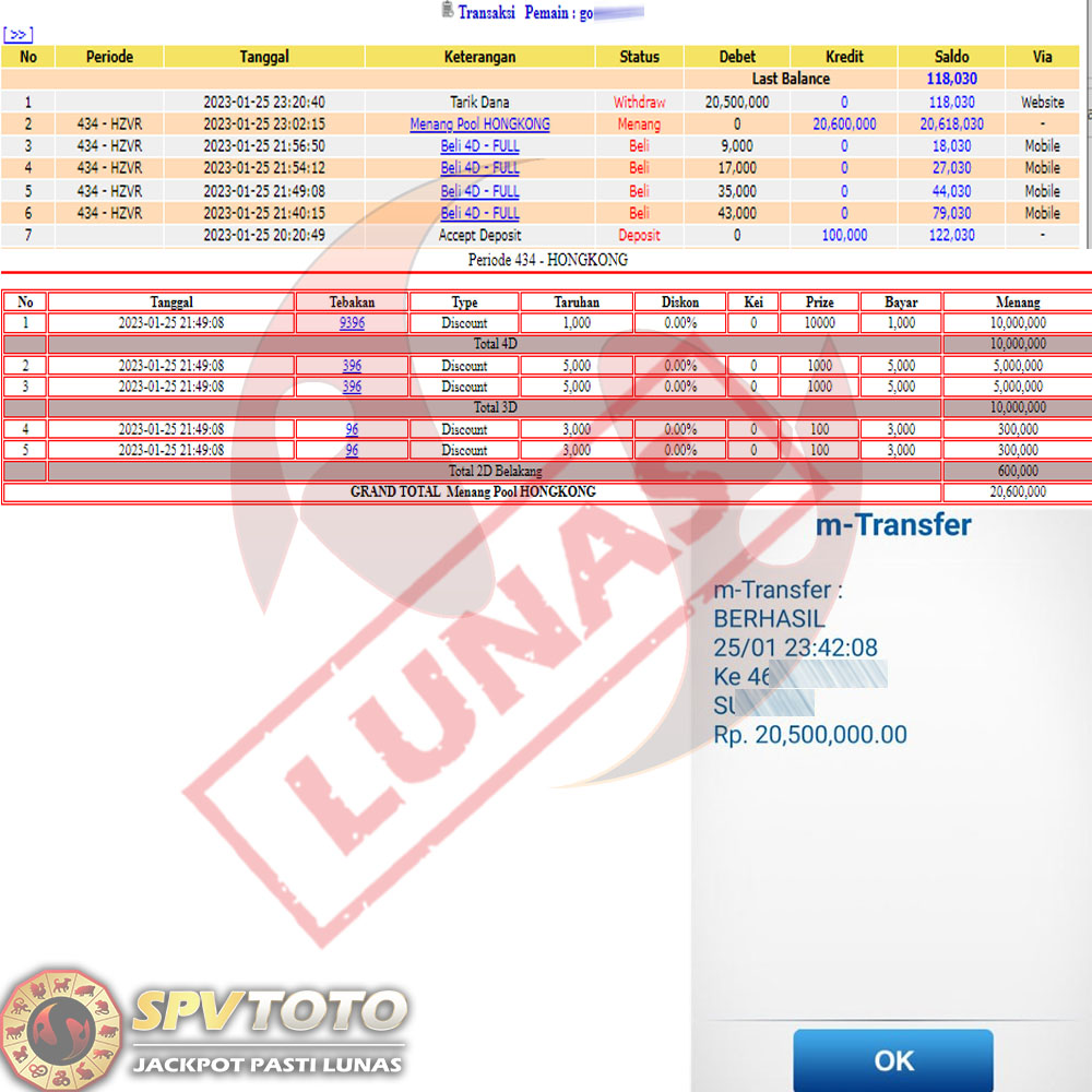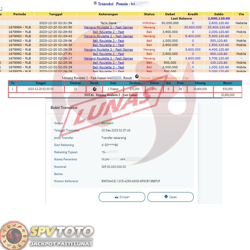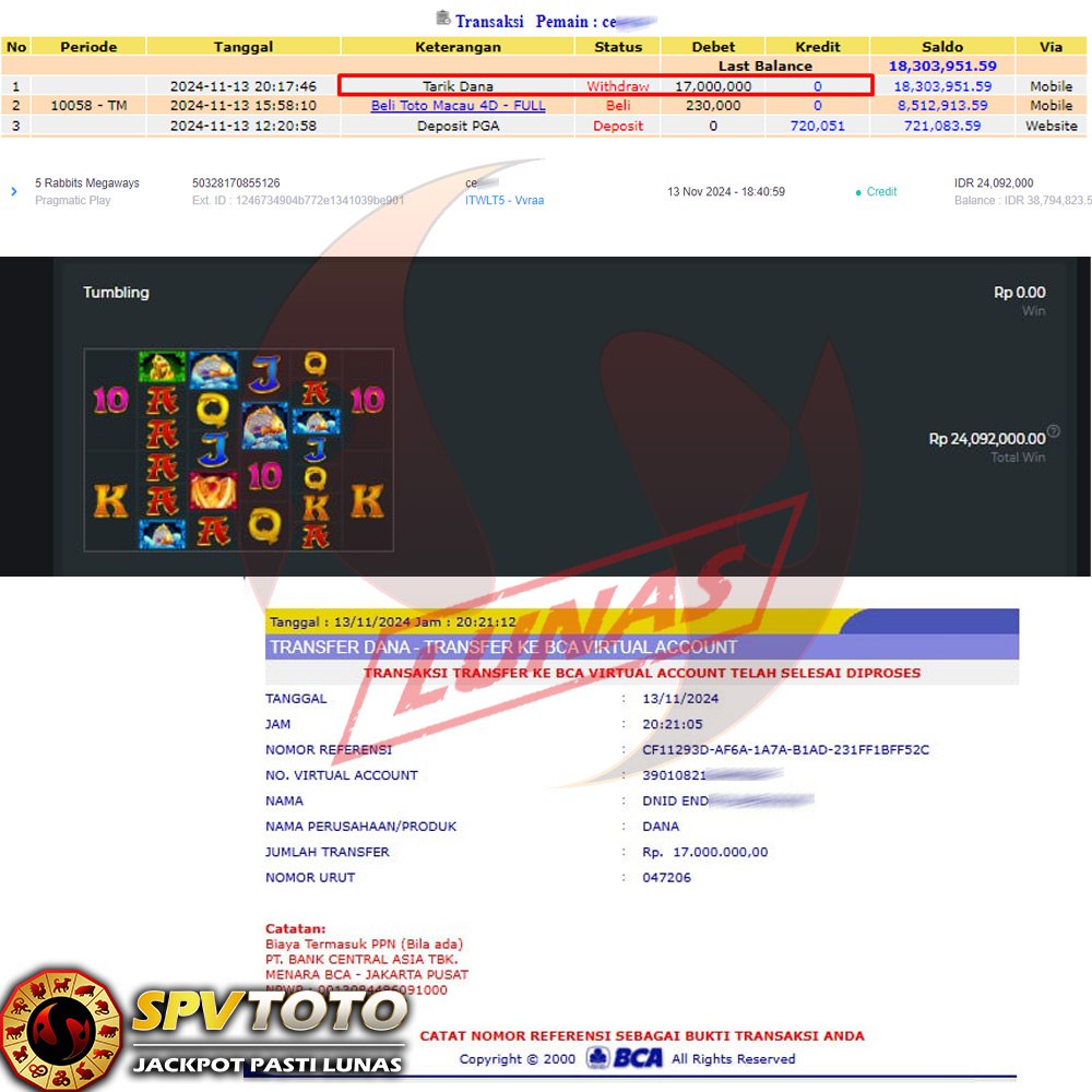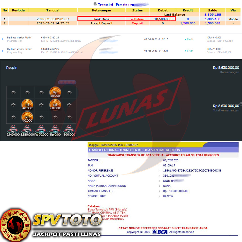 SELAMAT KEPADA MEMBER YANG MENDAPATKAN JACKPOT DI SPVTOTO