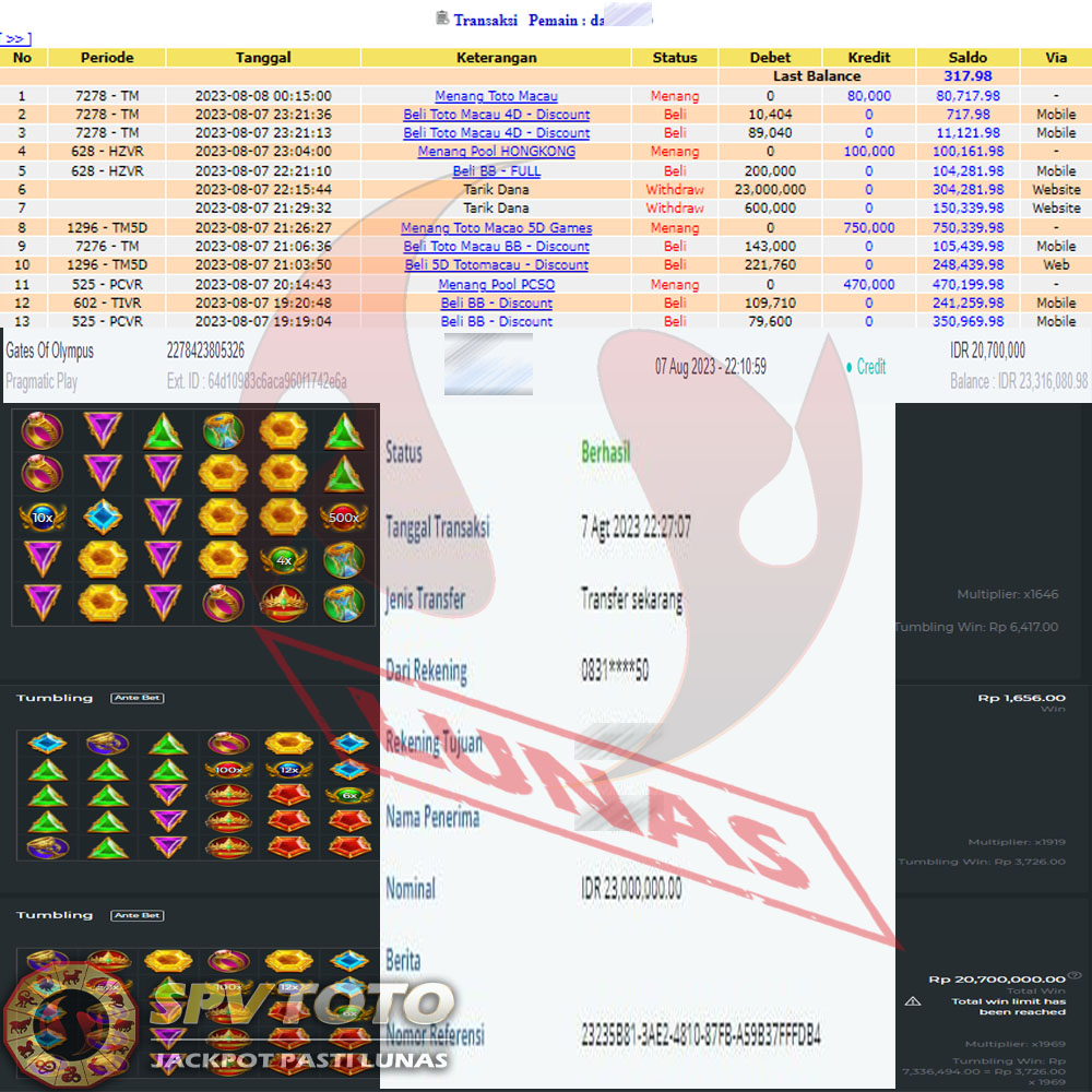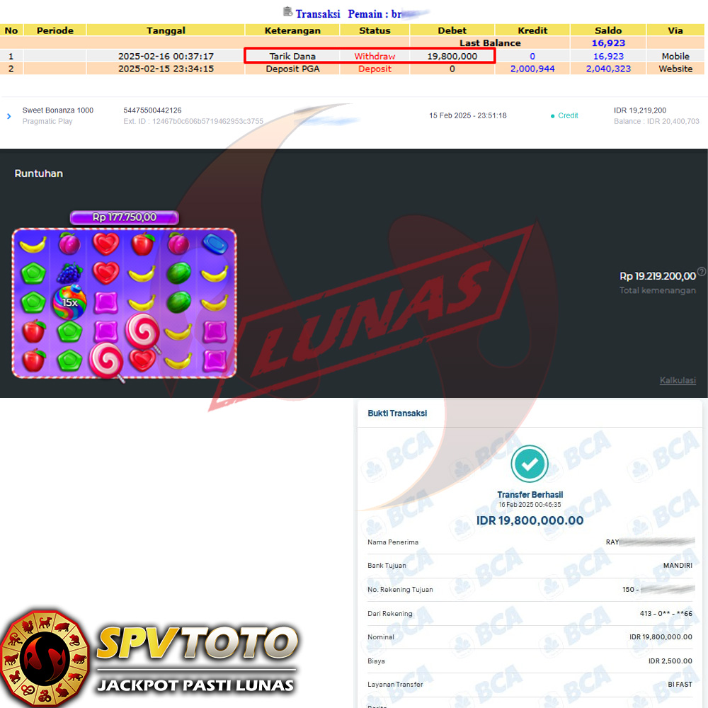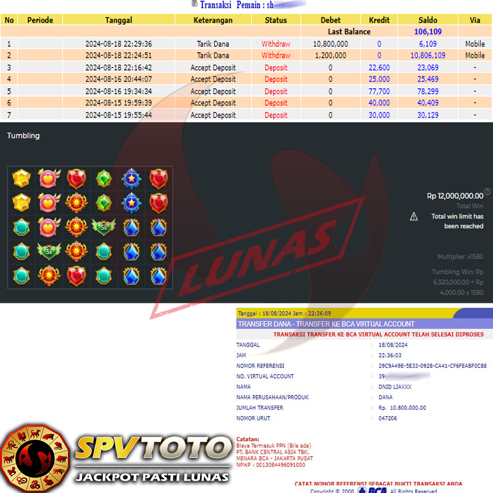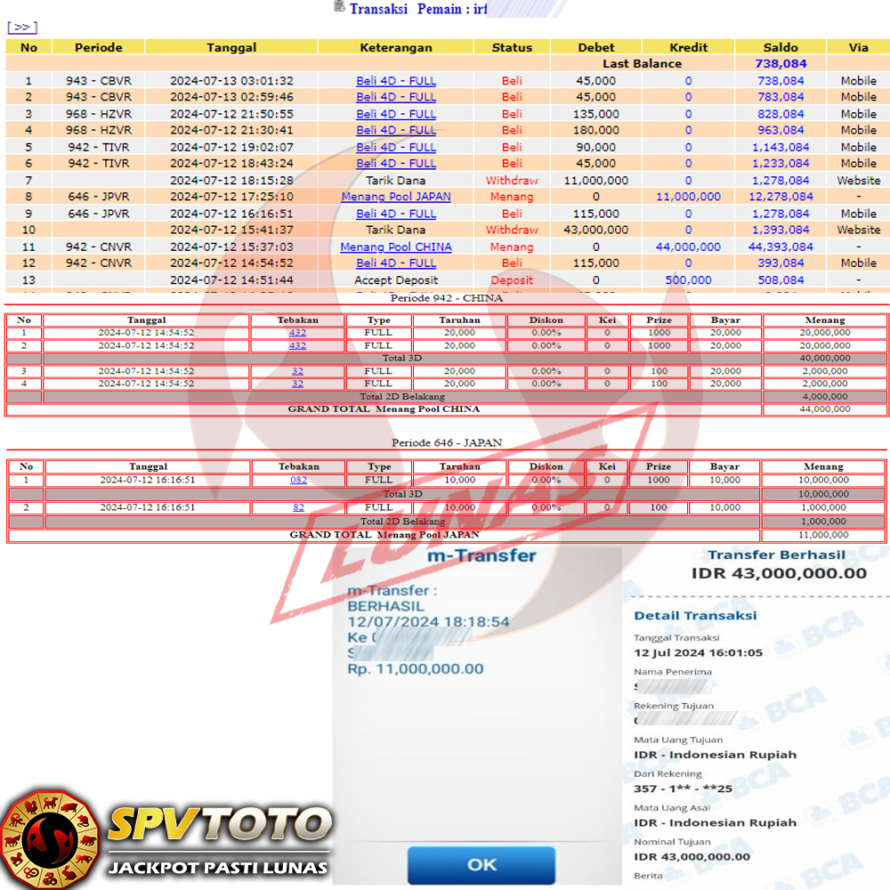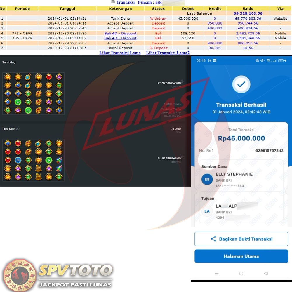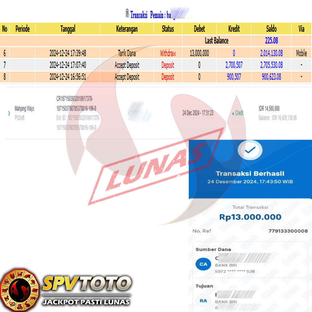 SELAMAT KEPADA MEMBER YANG MENDAPATKAN JACKPOT DI SPVTOTO