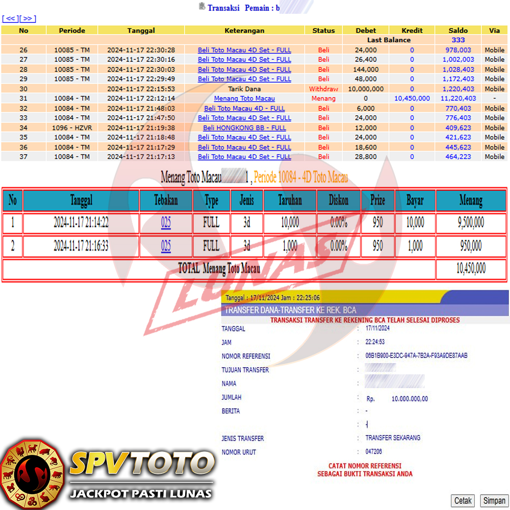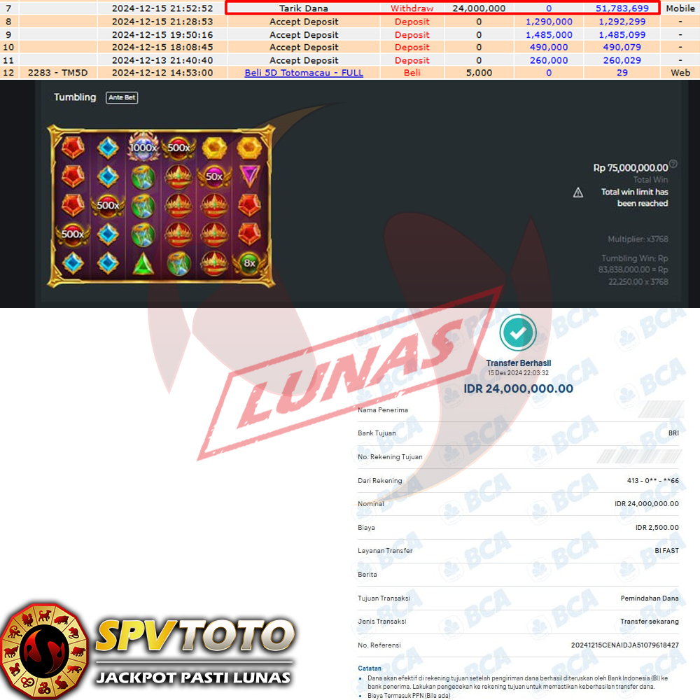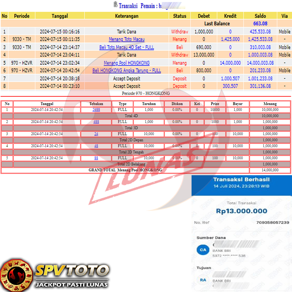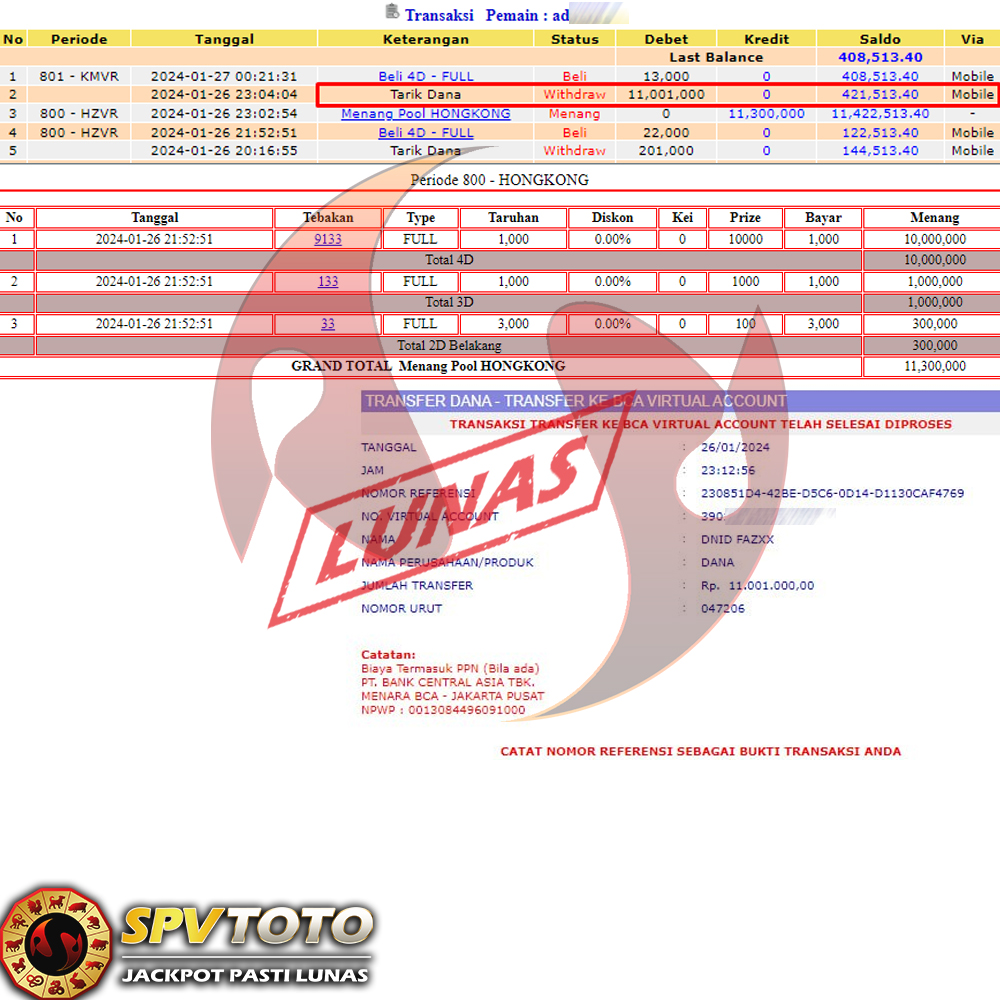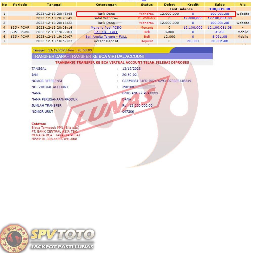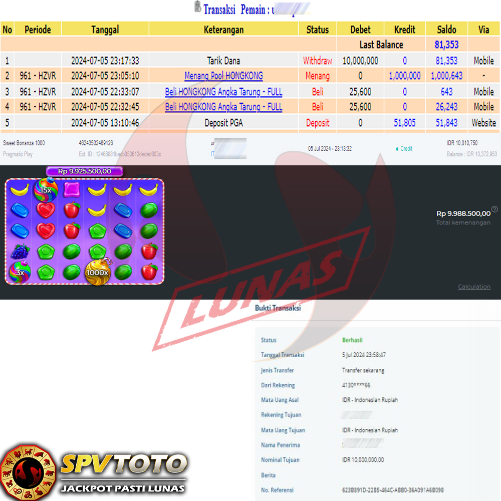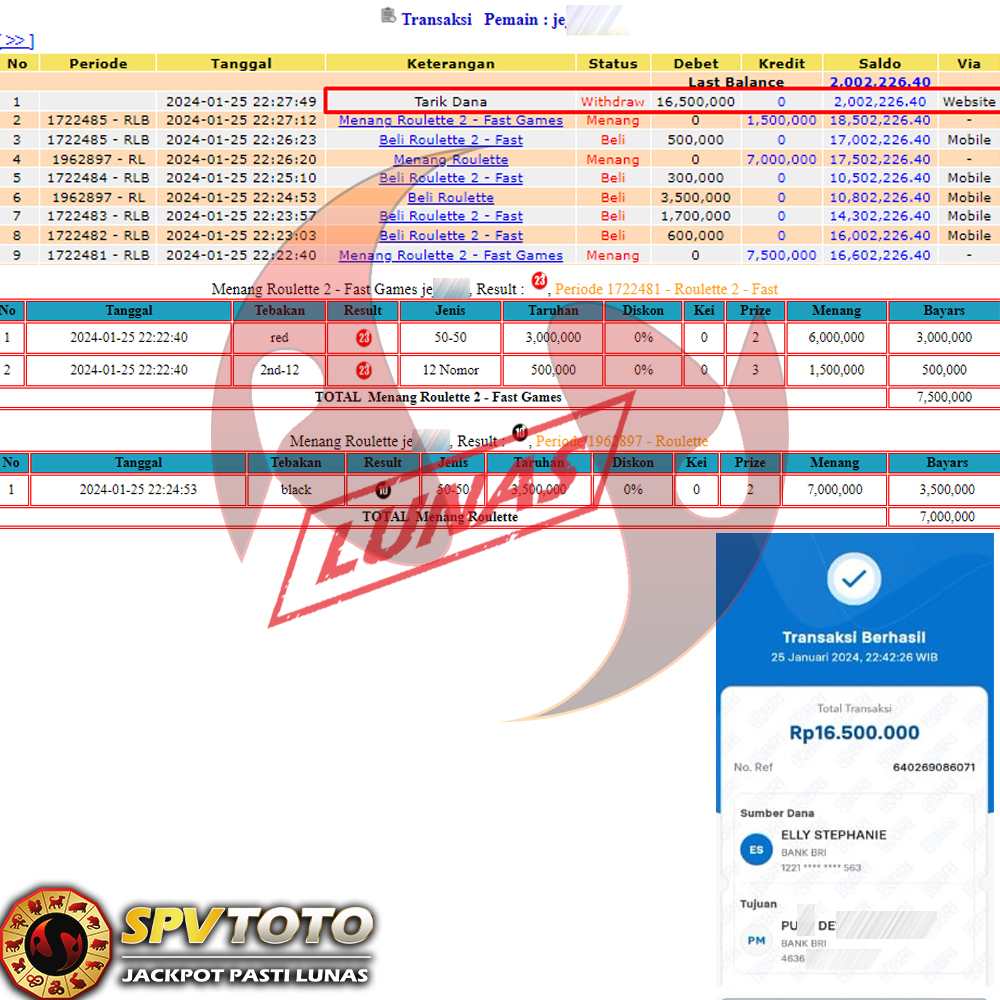 SELAMAT KEPADA MEMBER YANG MENDAPATKAN JACKPOT DI SPVTOTO