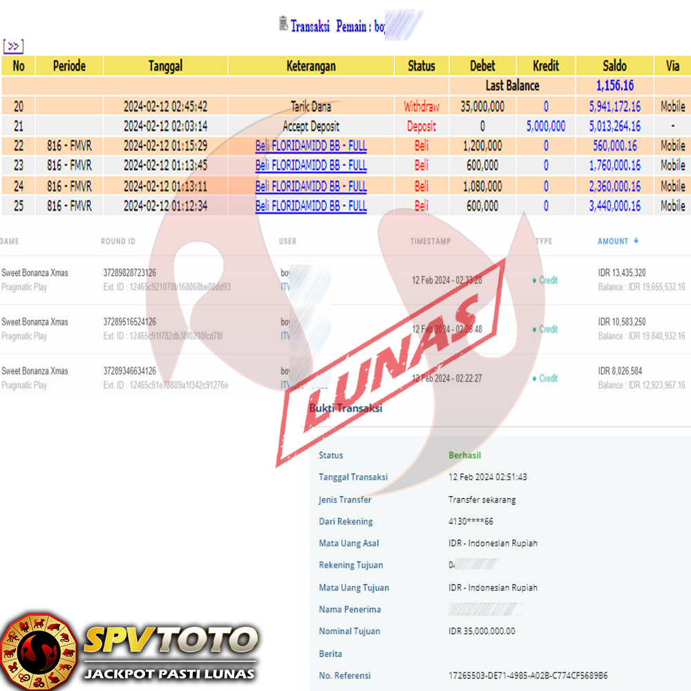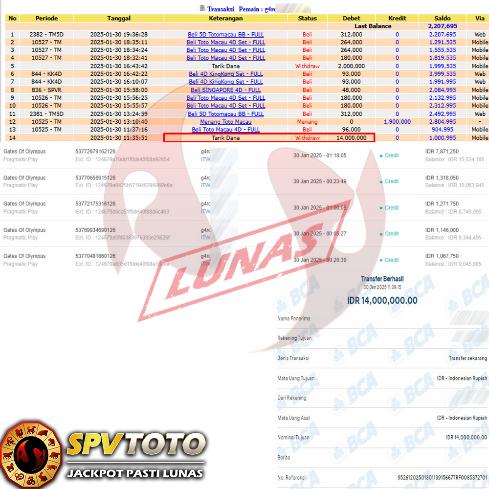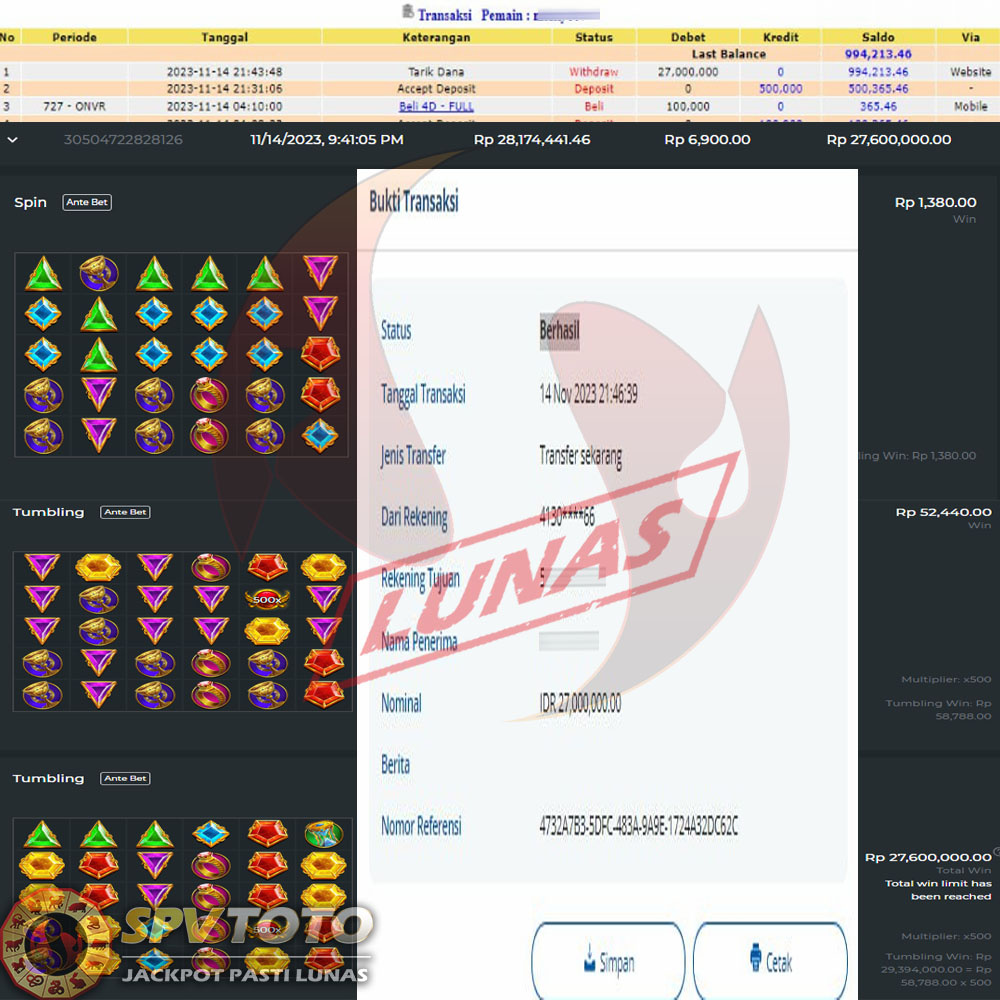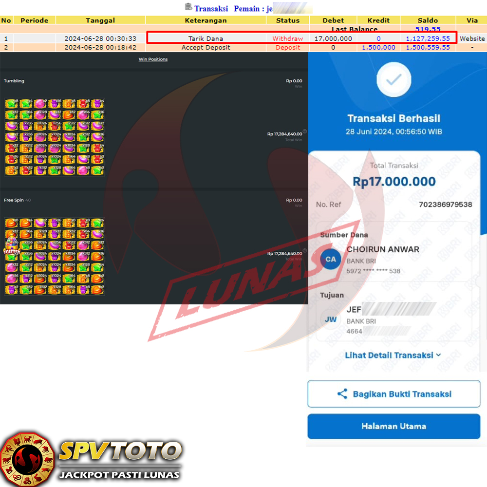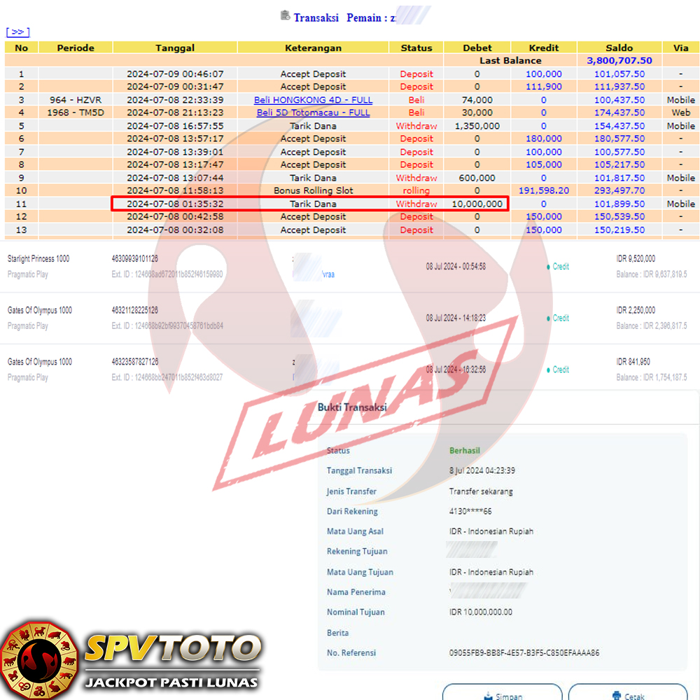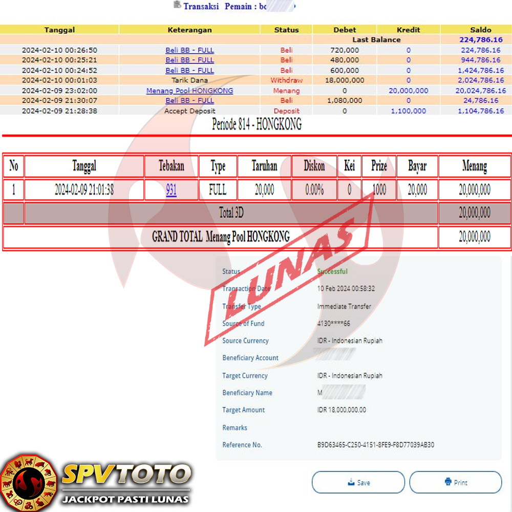 SELAMAT KEPADA MEMBER YANG MENDAPATKAN JACKPOT DI SPVTOTO