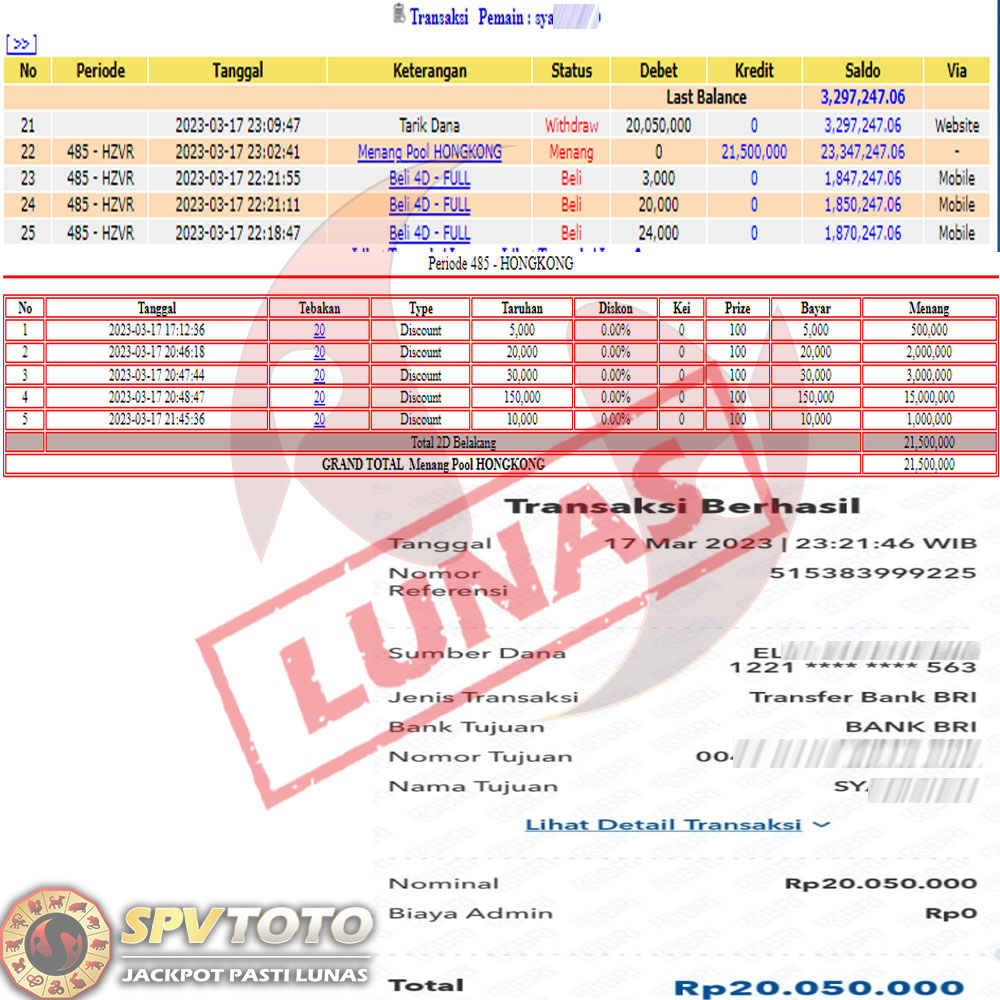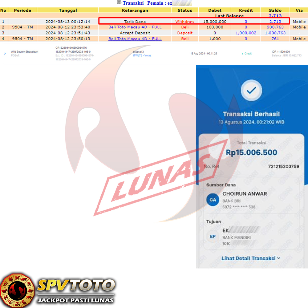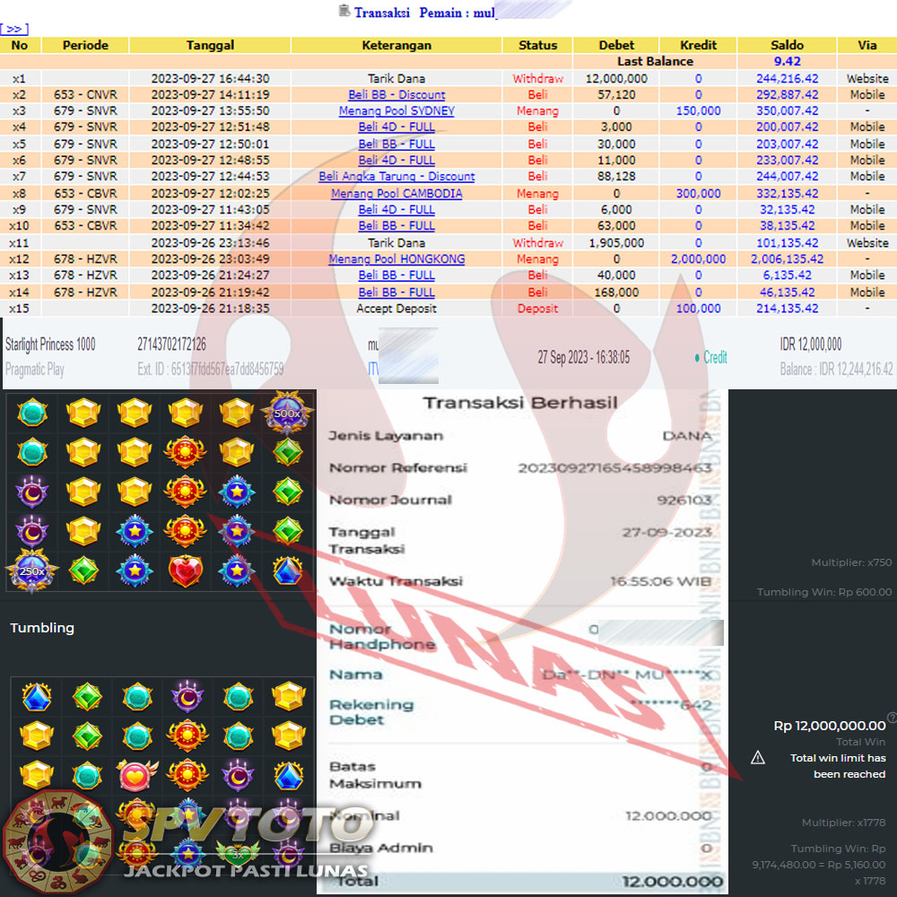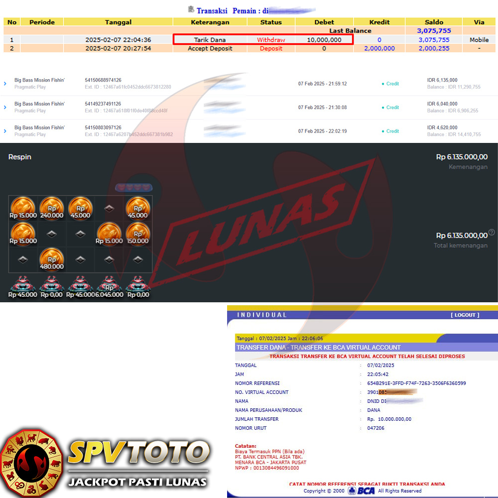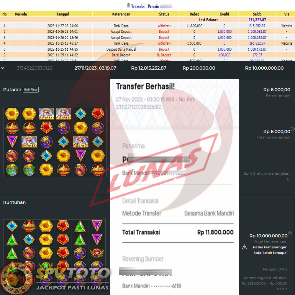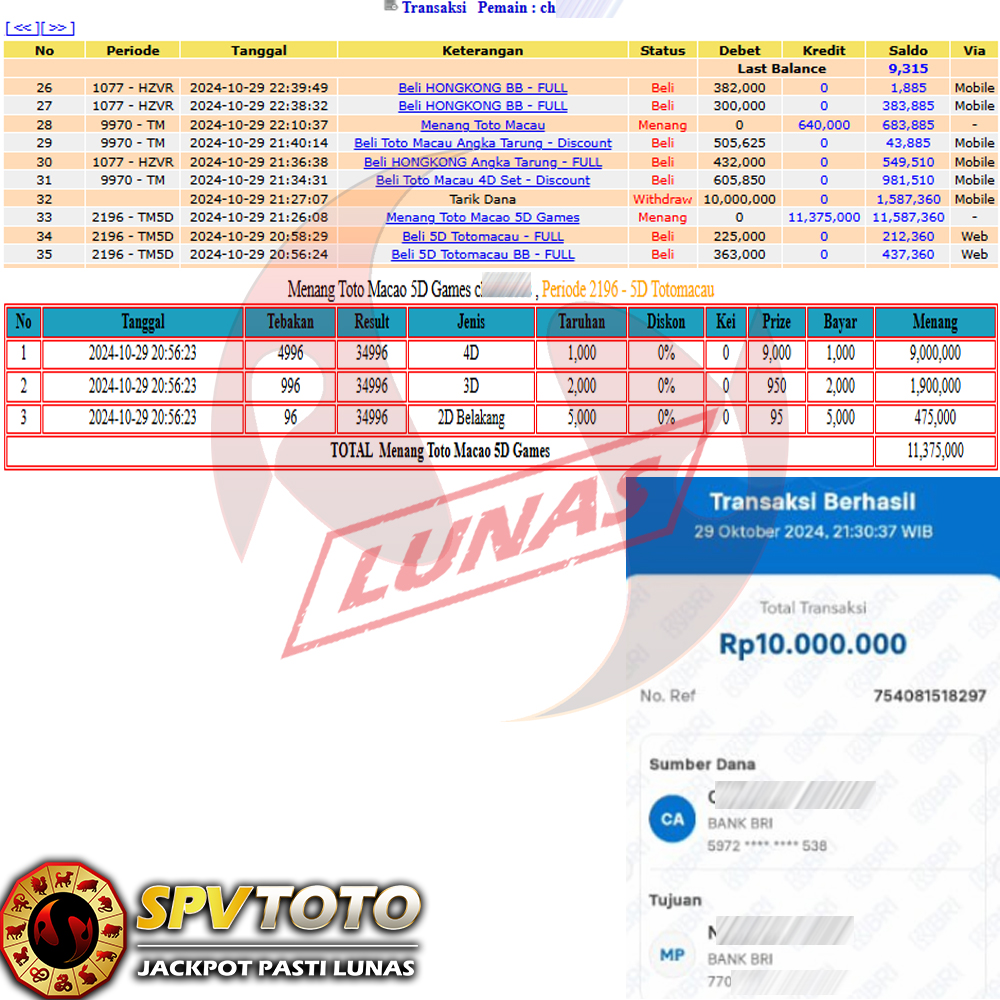SELAMAT KEPADA MEMBER YANG MENDAPATKAN JACKPOT DI SPVTOTO
