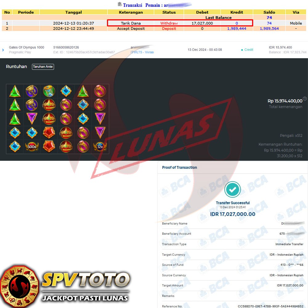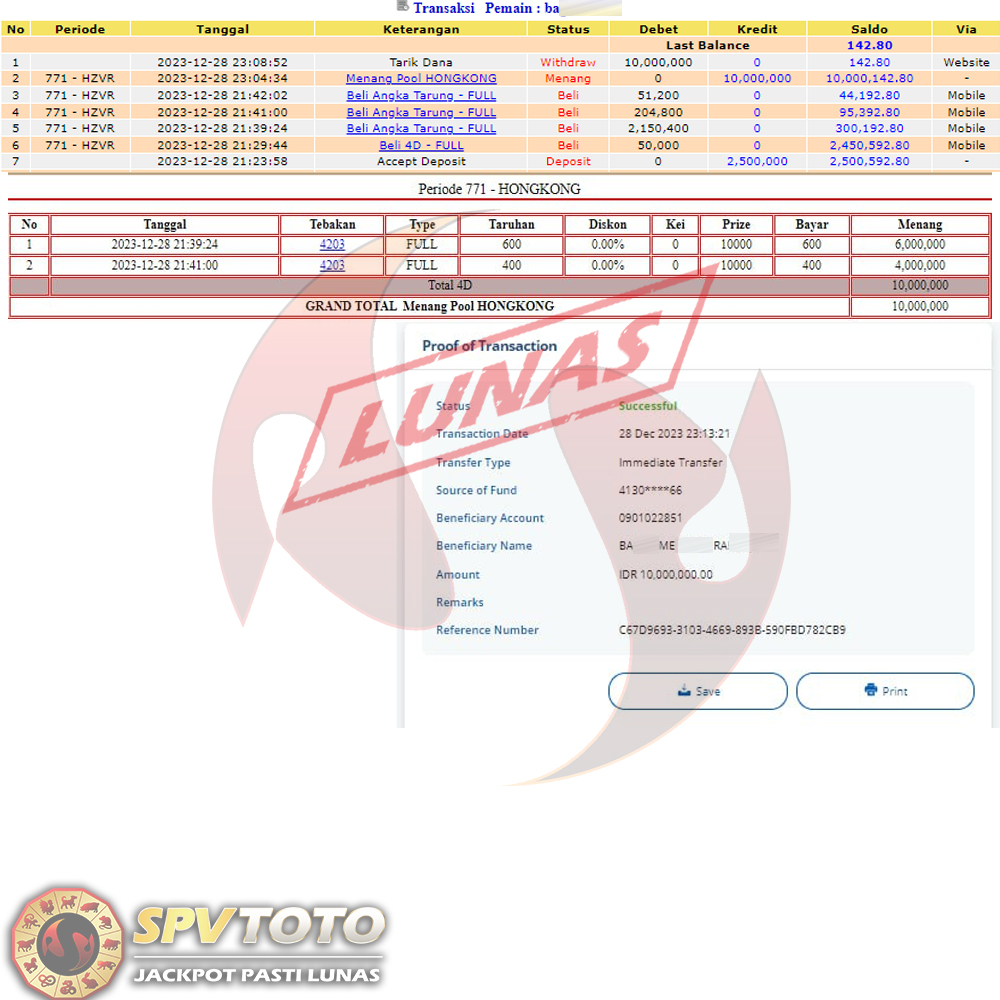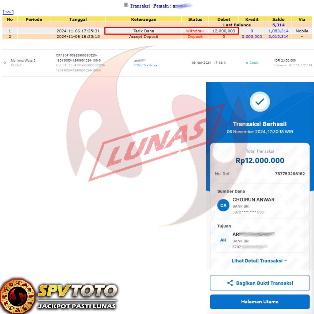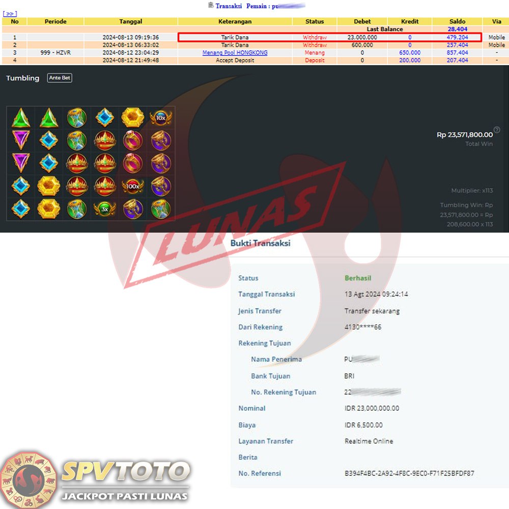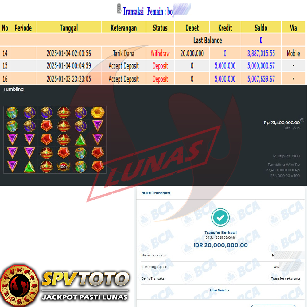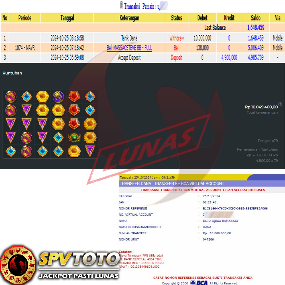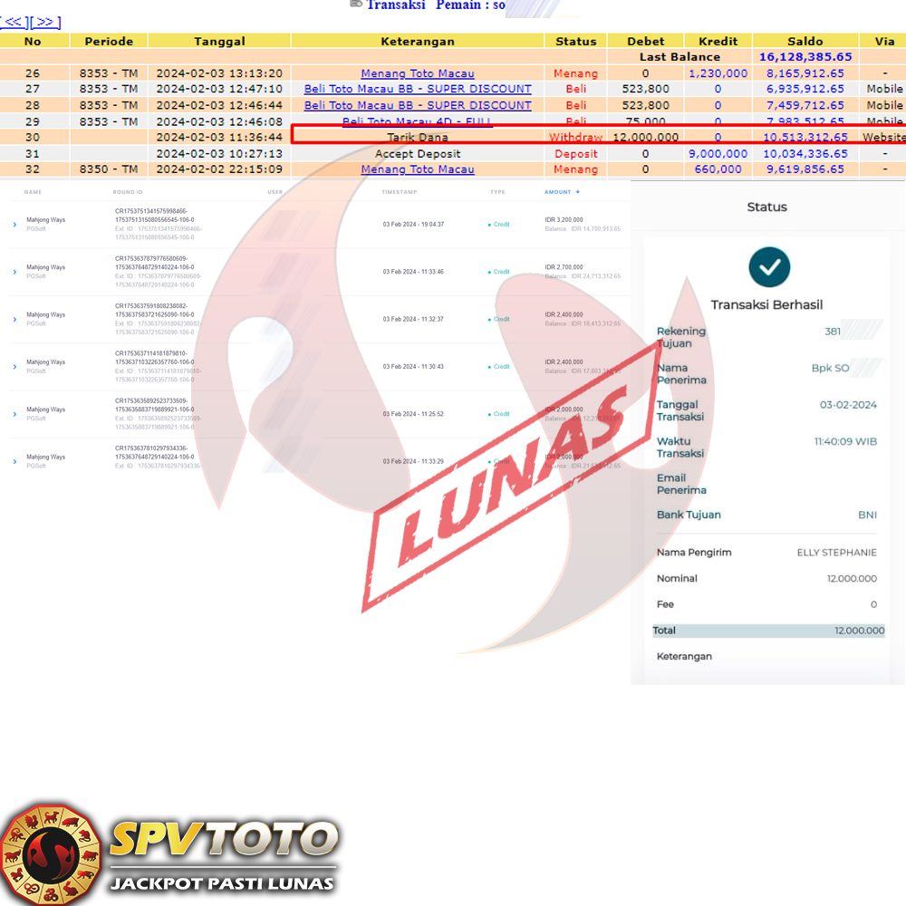 SELAMAT KEPADA MEMBER YANG MENDAPATKAN JACKPOT DI SPVTOTO