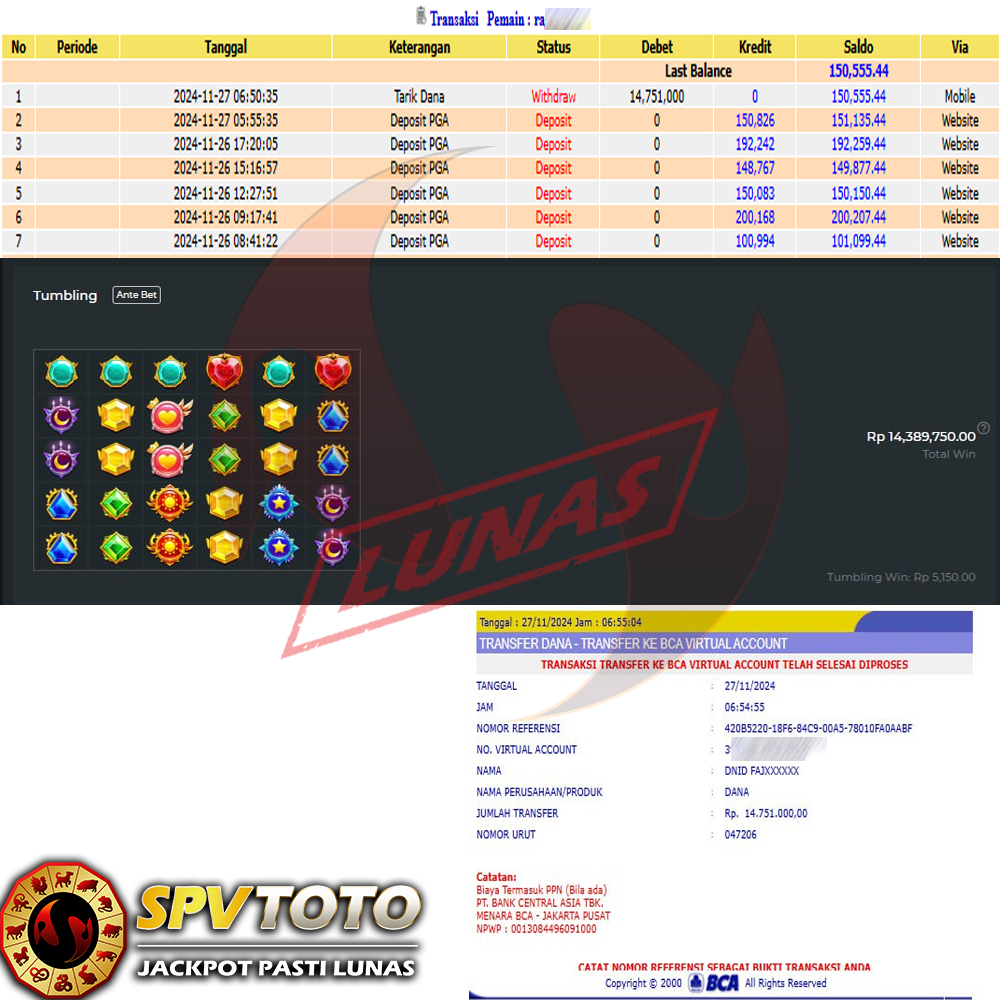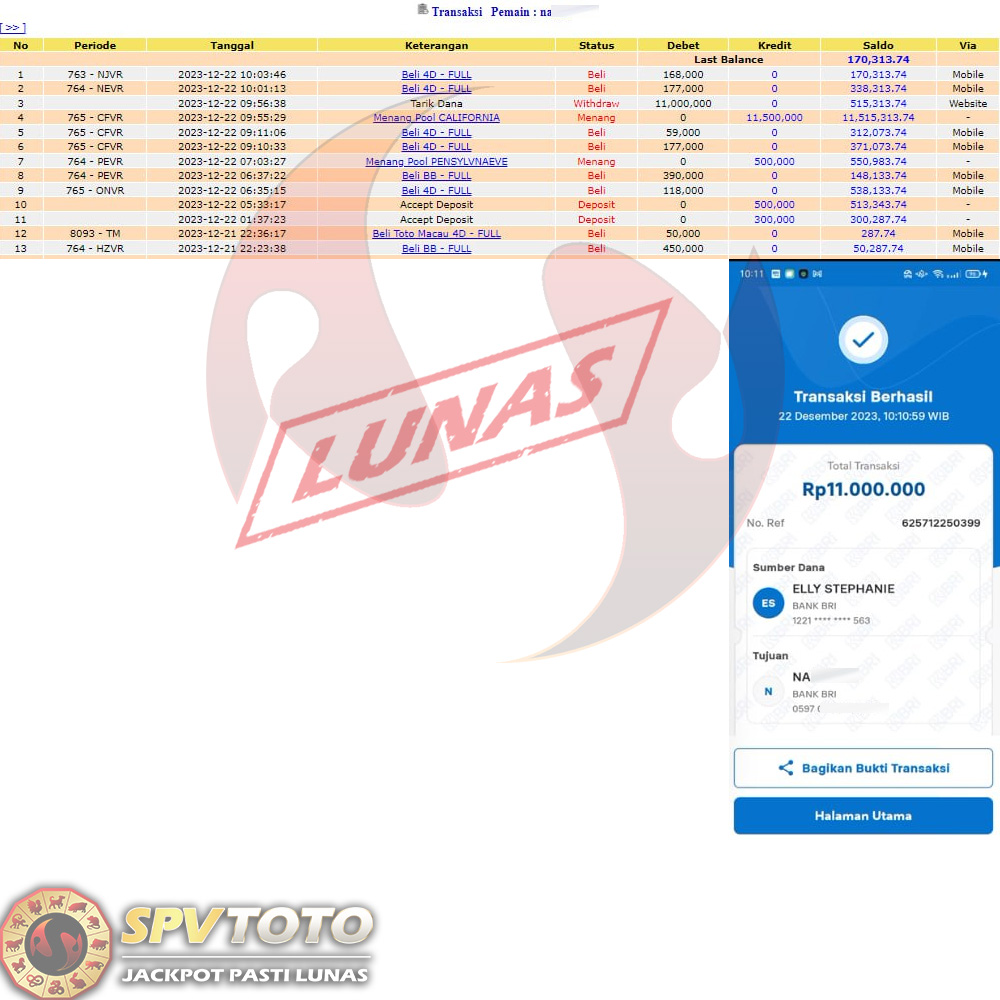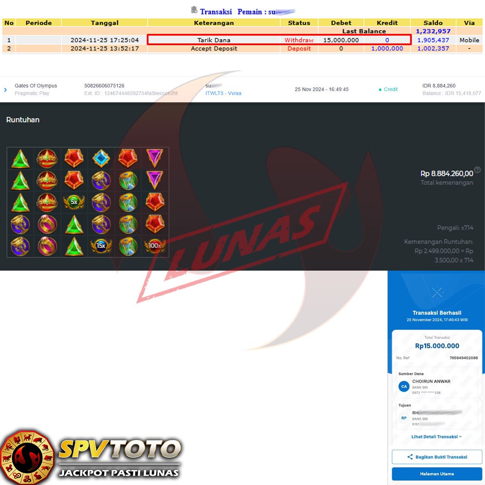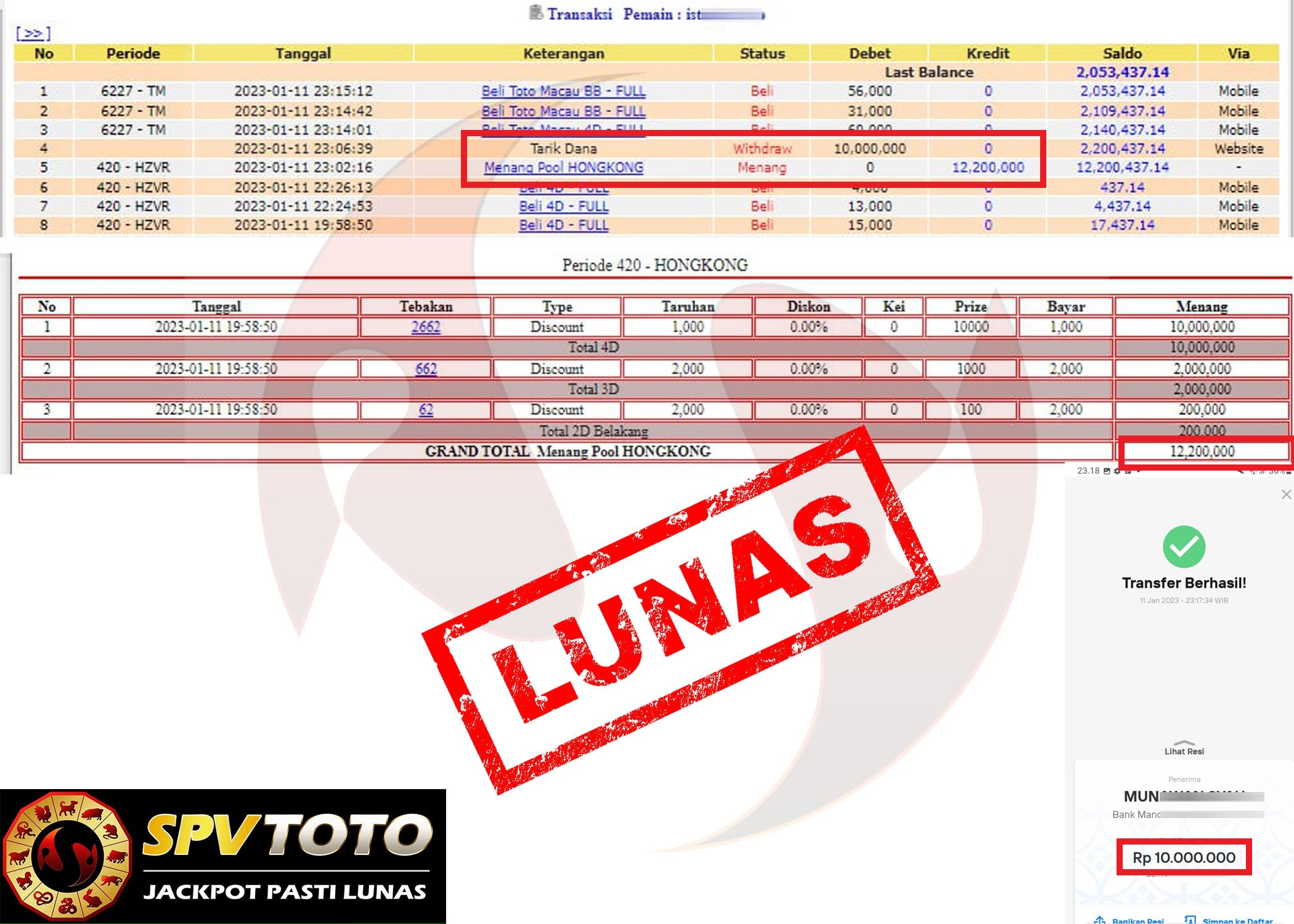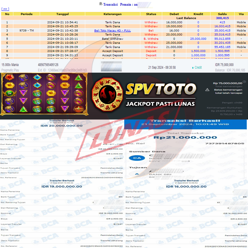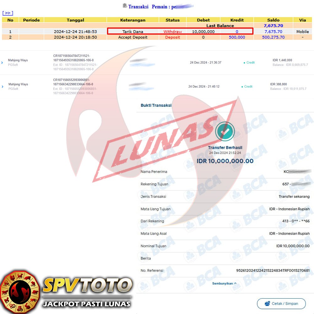 SELAMAT KEPADA MEMBER YANG MENDAPATKAN JACKPOT DI SPVTOTO