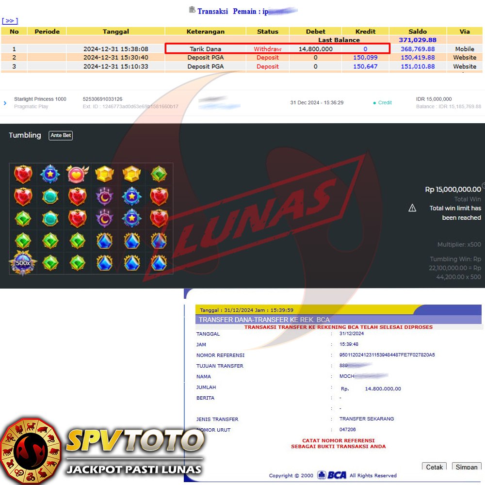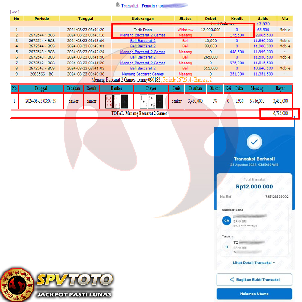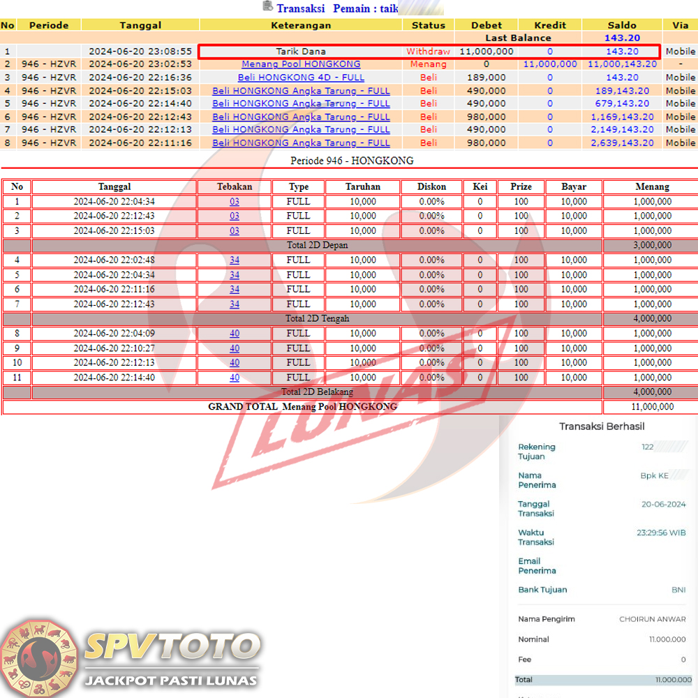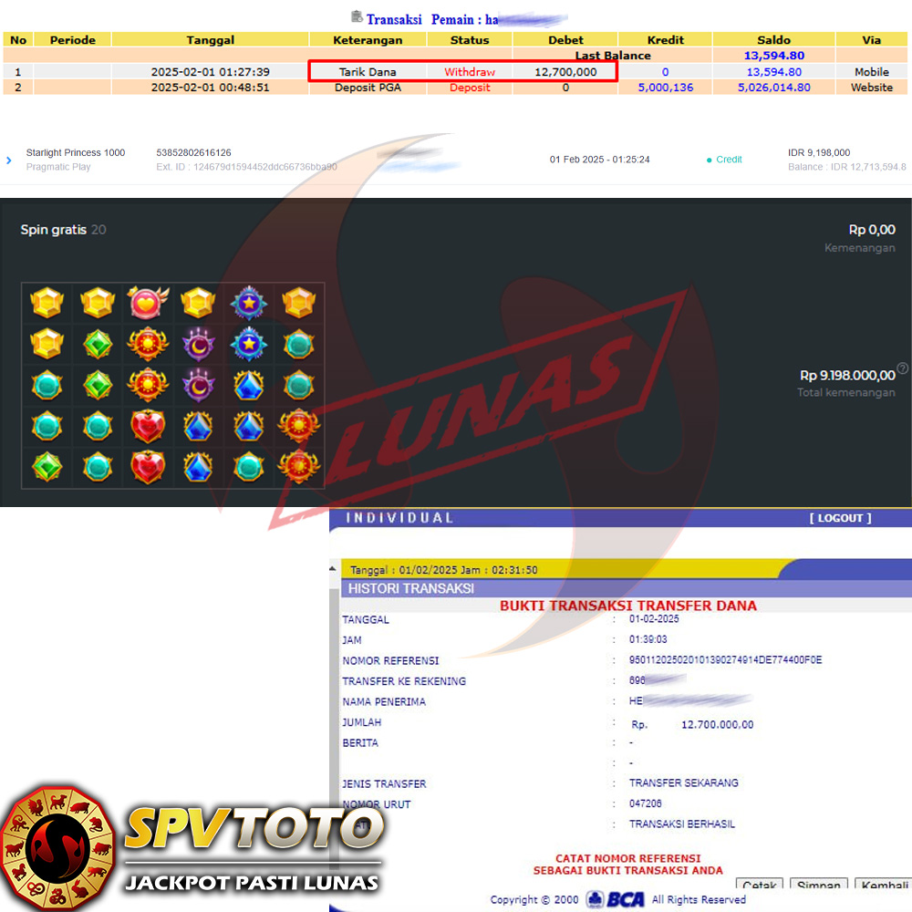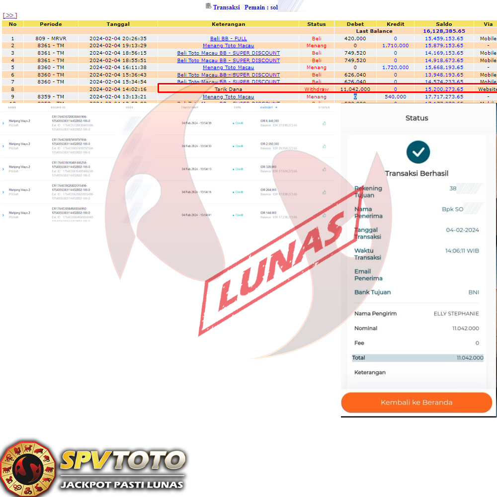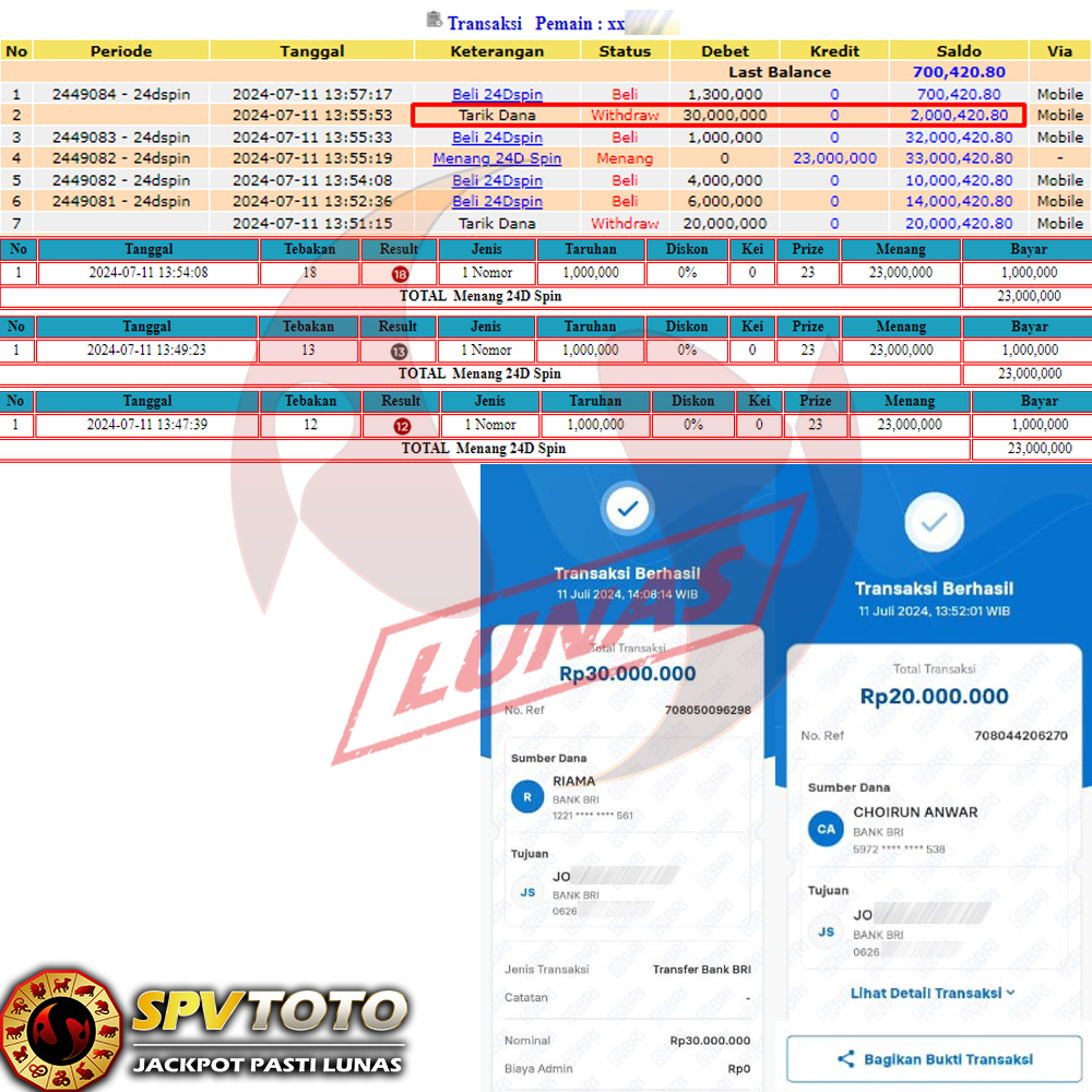 SELAMAT KEPADA MEMBER YANG MENDAPATKAN JACKPOT DI SPVTOTO