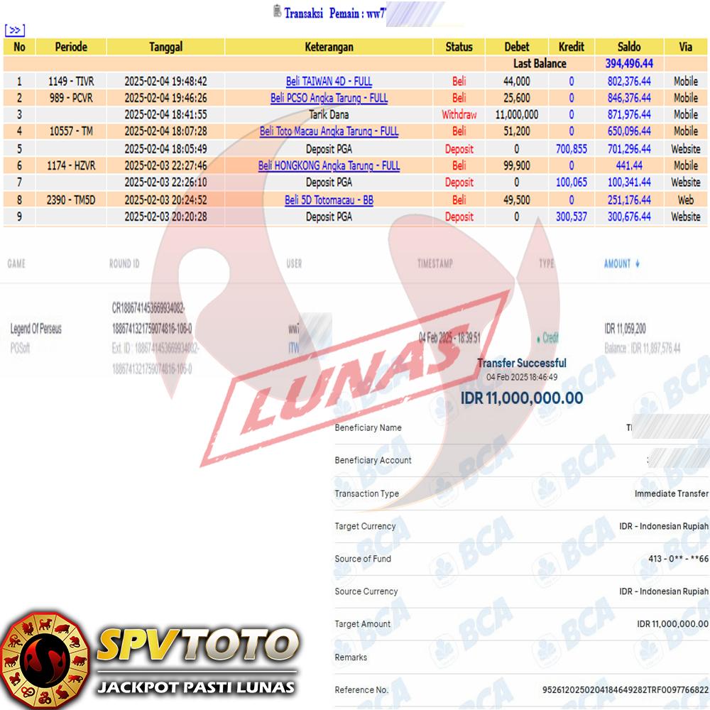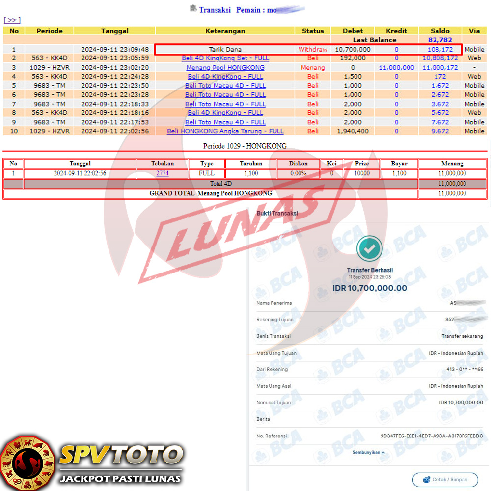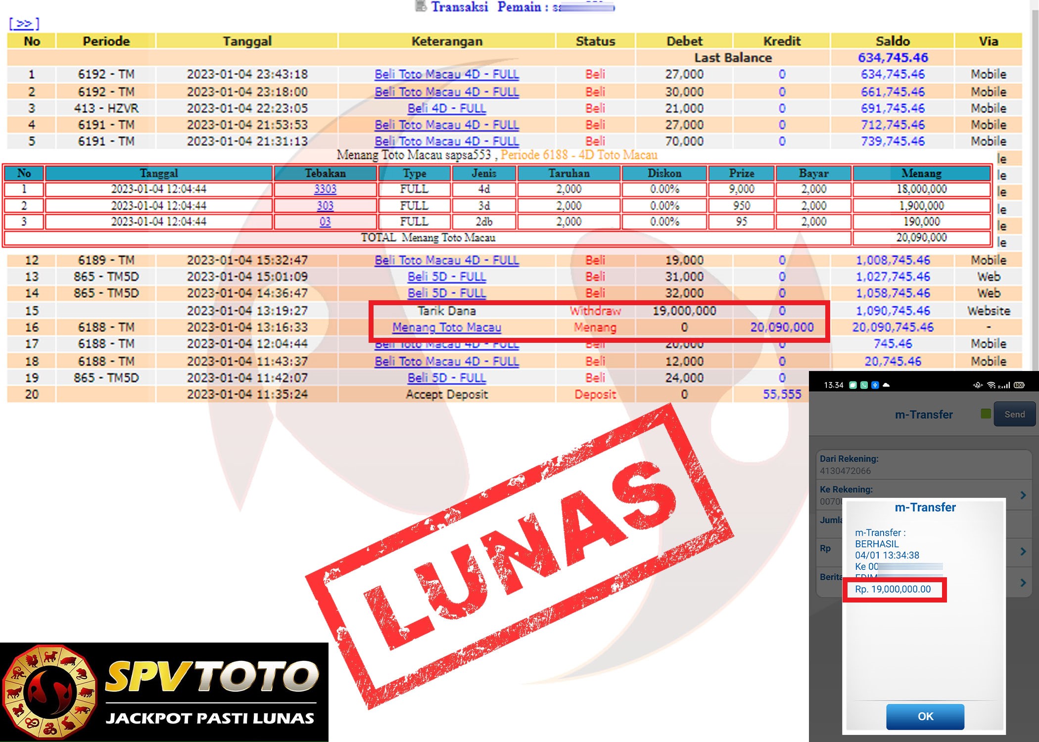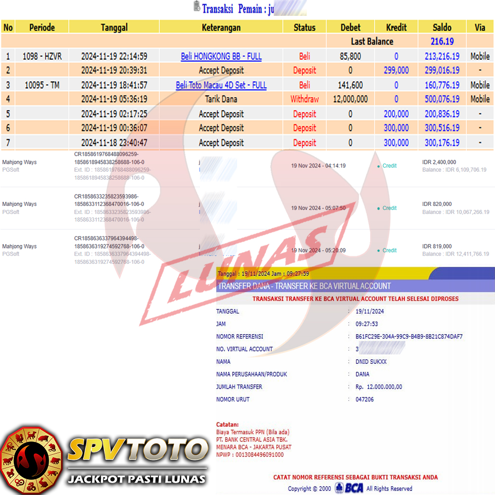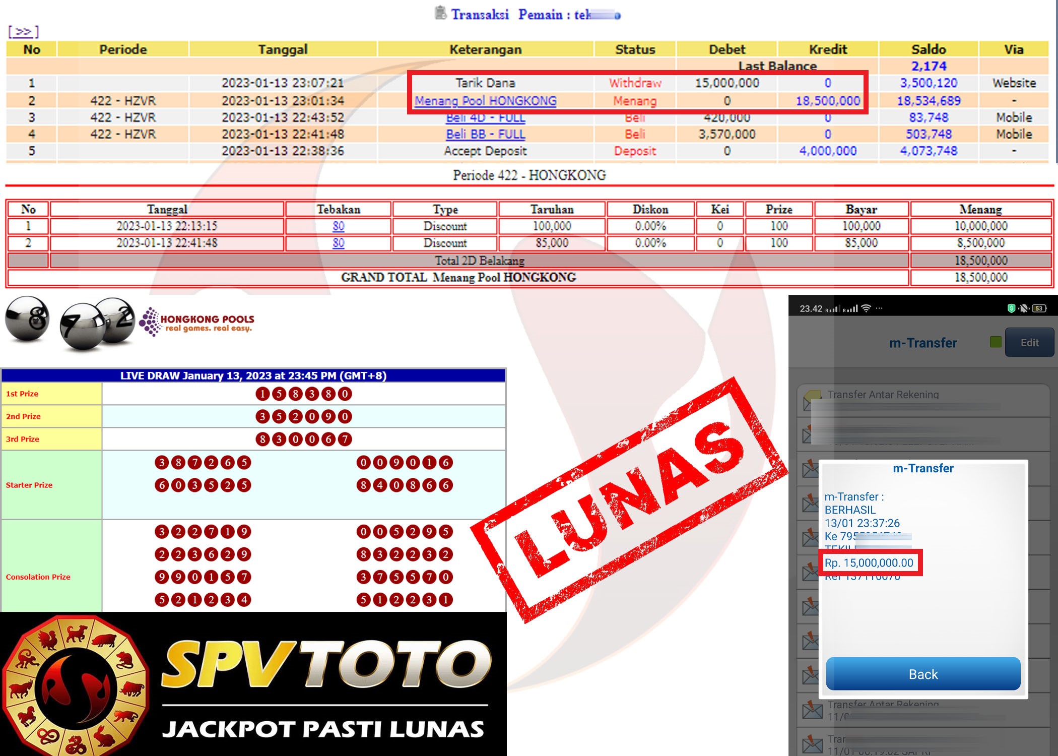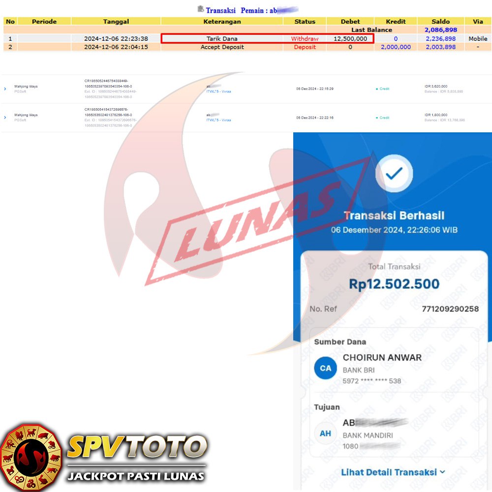 SELAMAT KEPADA MEMBER YANG MENDAPATKAN JACKPOT DI SPVTOTO