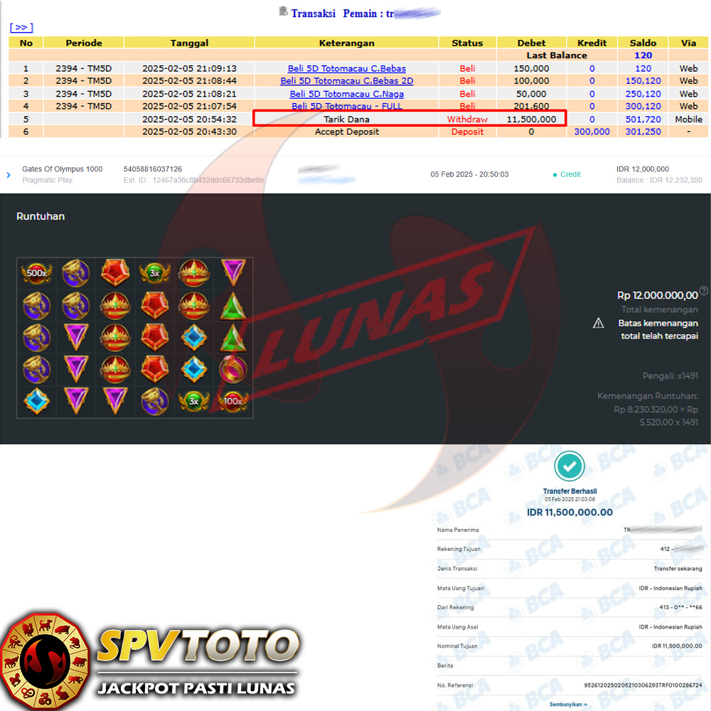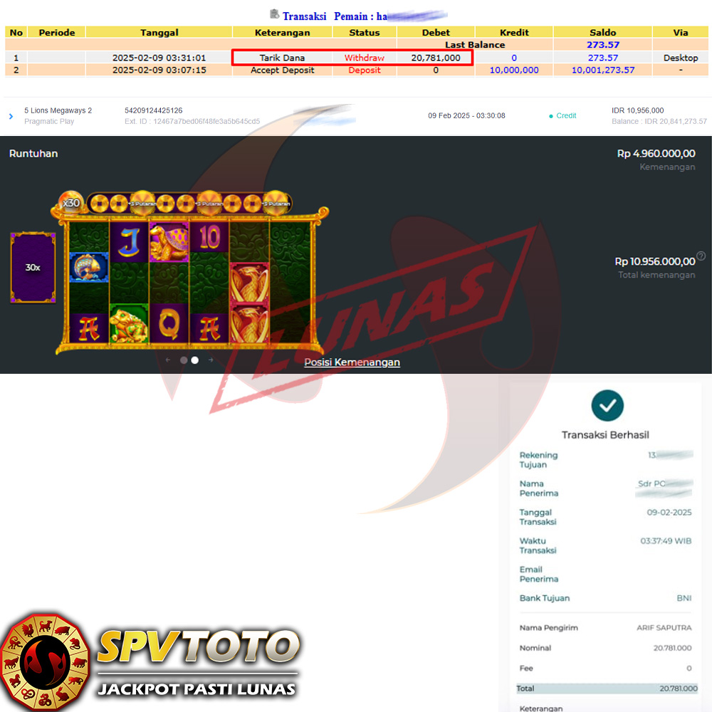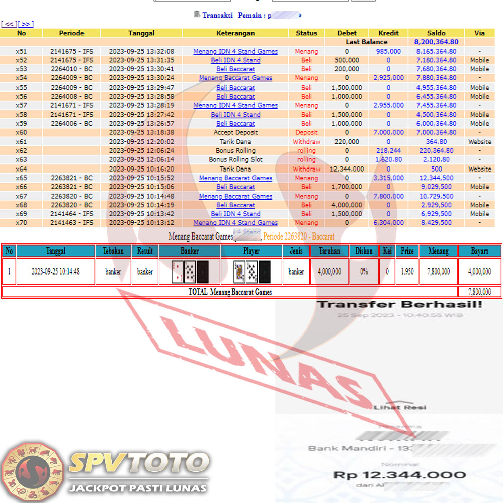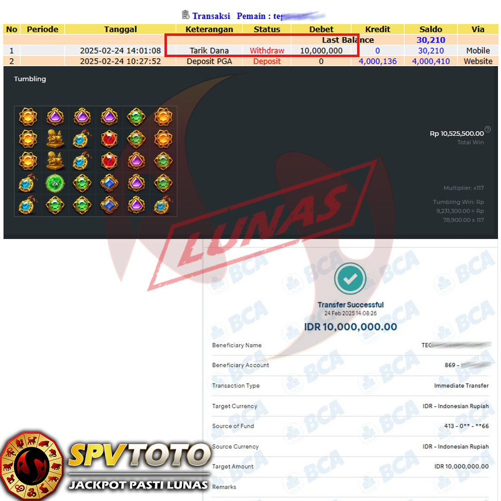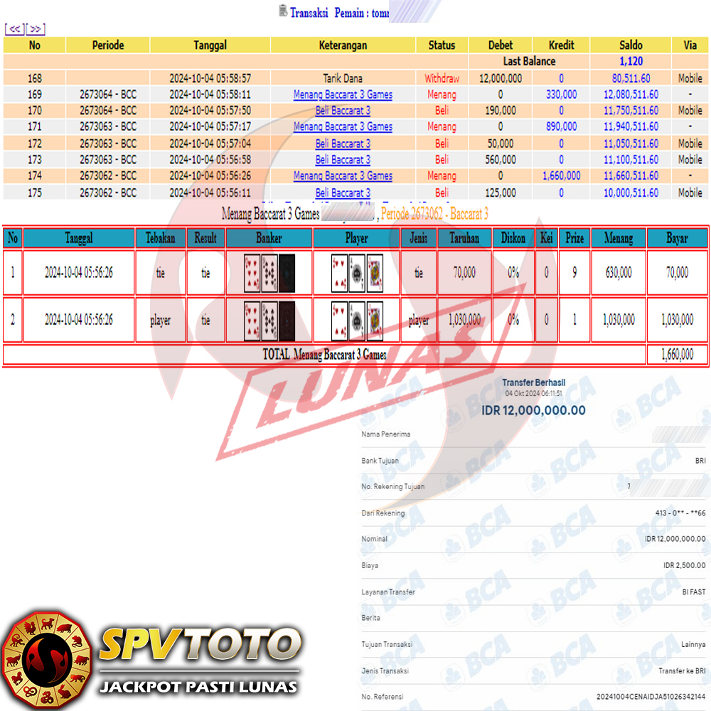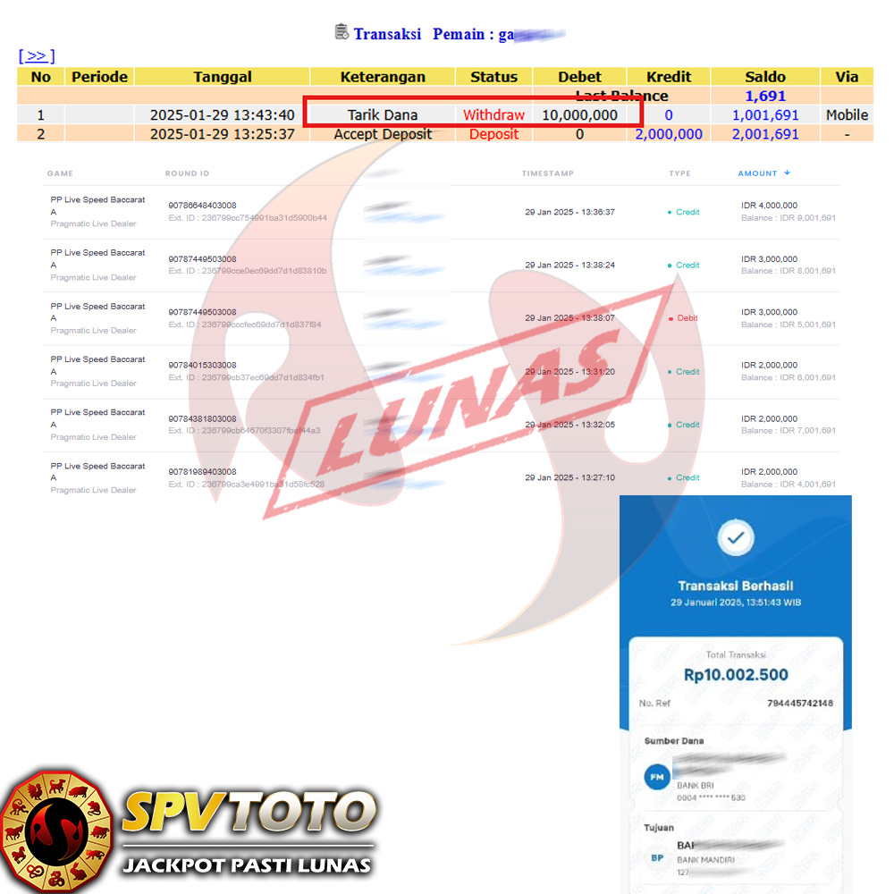 SELAMAT KEPADA MEMBER YANG MENDAPATKAN JACKPOT DI SPVTOTO