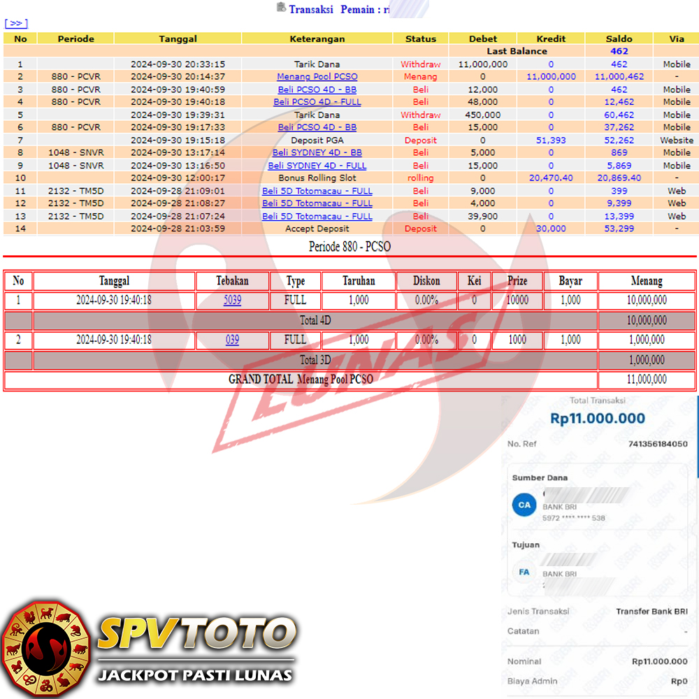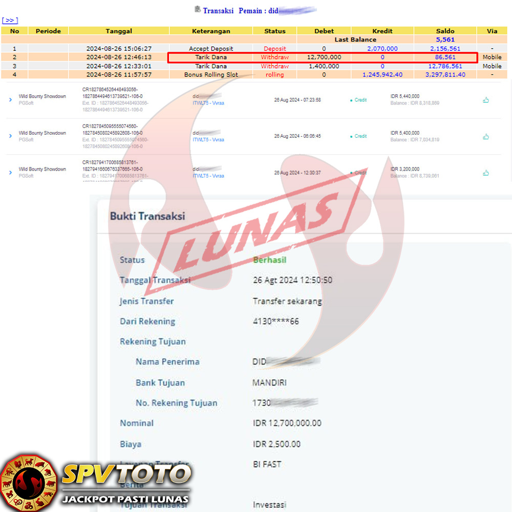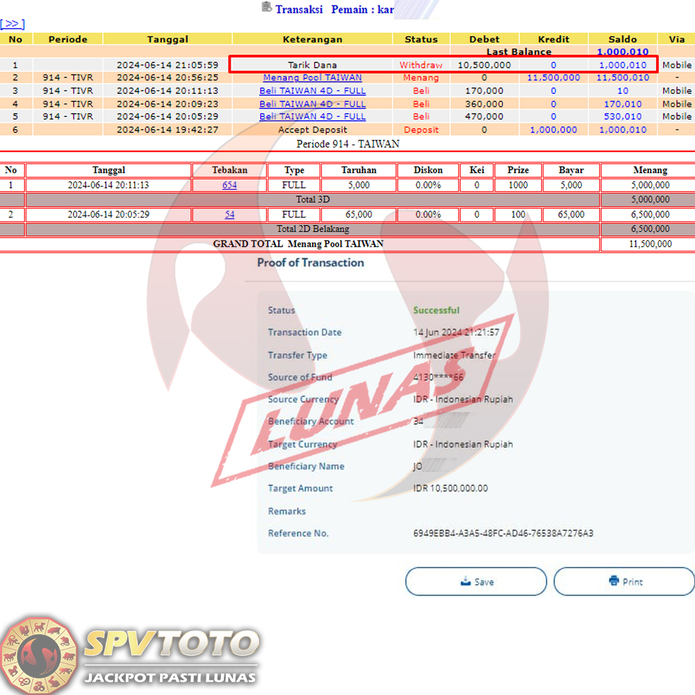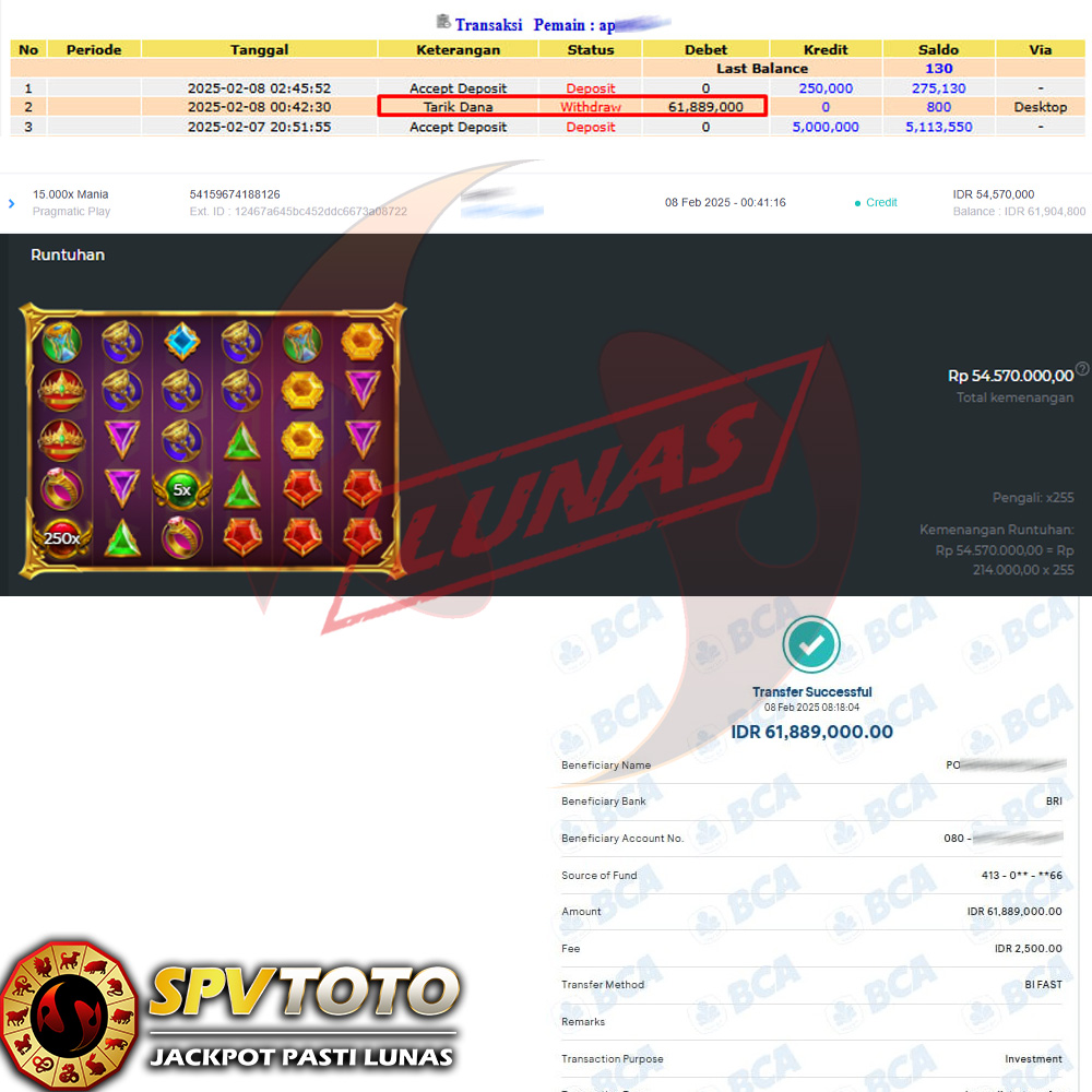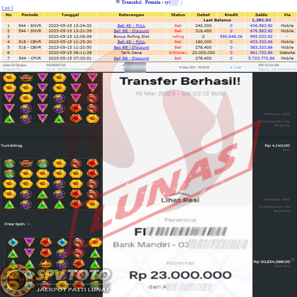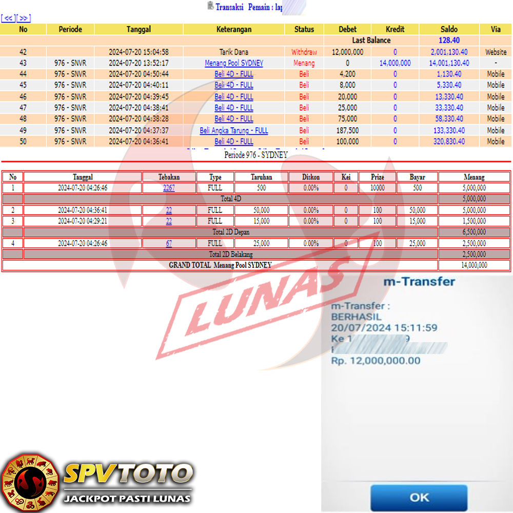 SELAMAT KEPADA MEMBER YANG MENDAPATKAN JACKPOT DI SPVTOTO