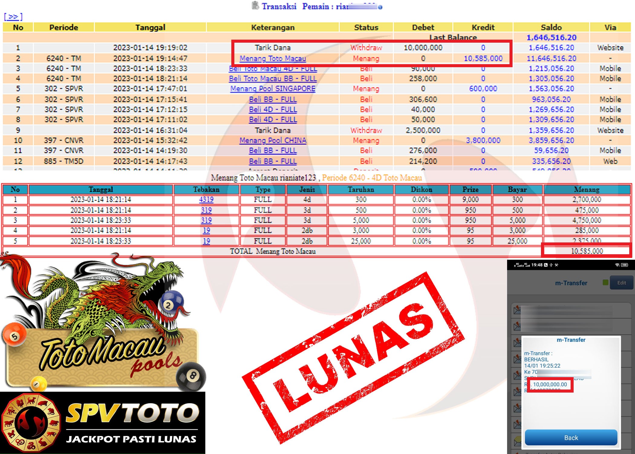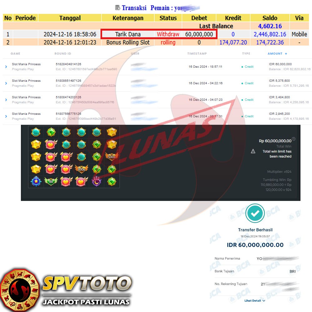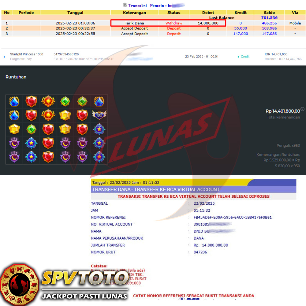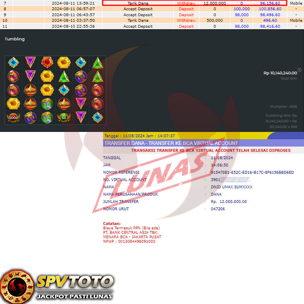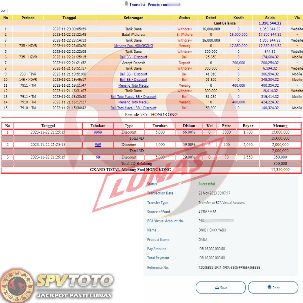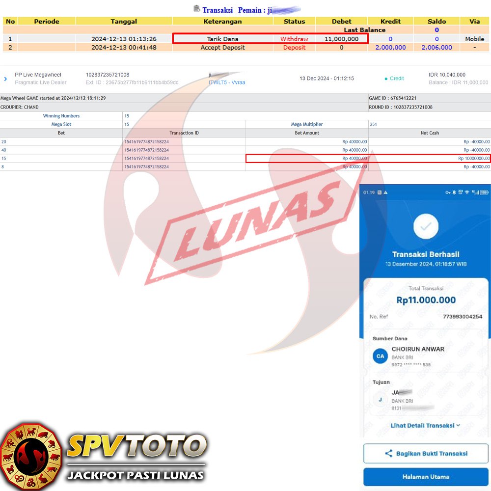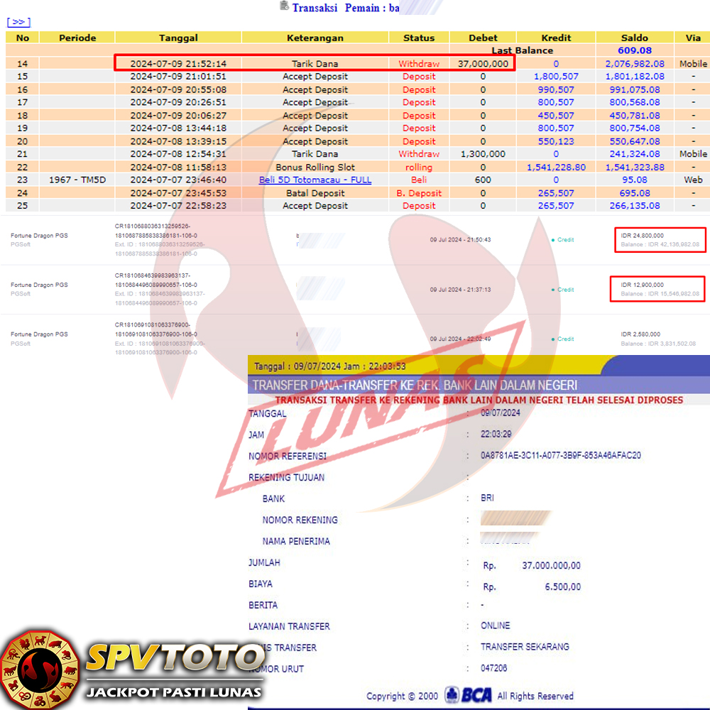 SELAMAT KEPADA MEMBER YANG MENDAPATKAN JACKPOT DI SPVTOTO