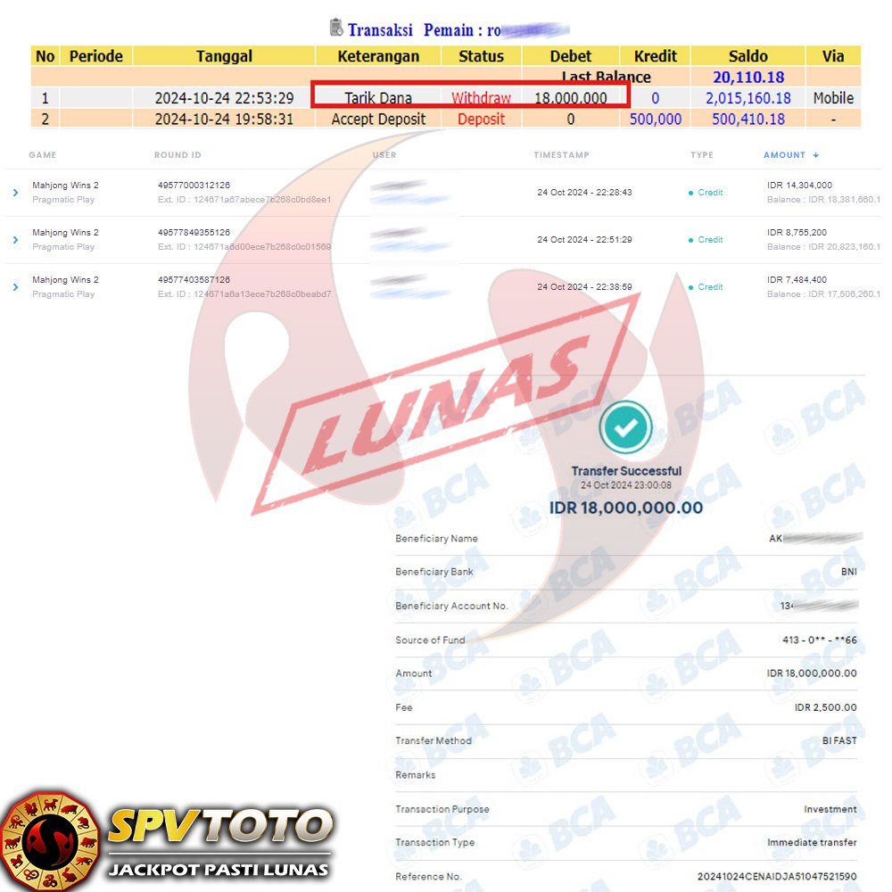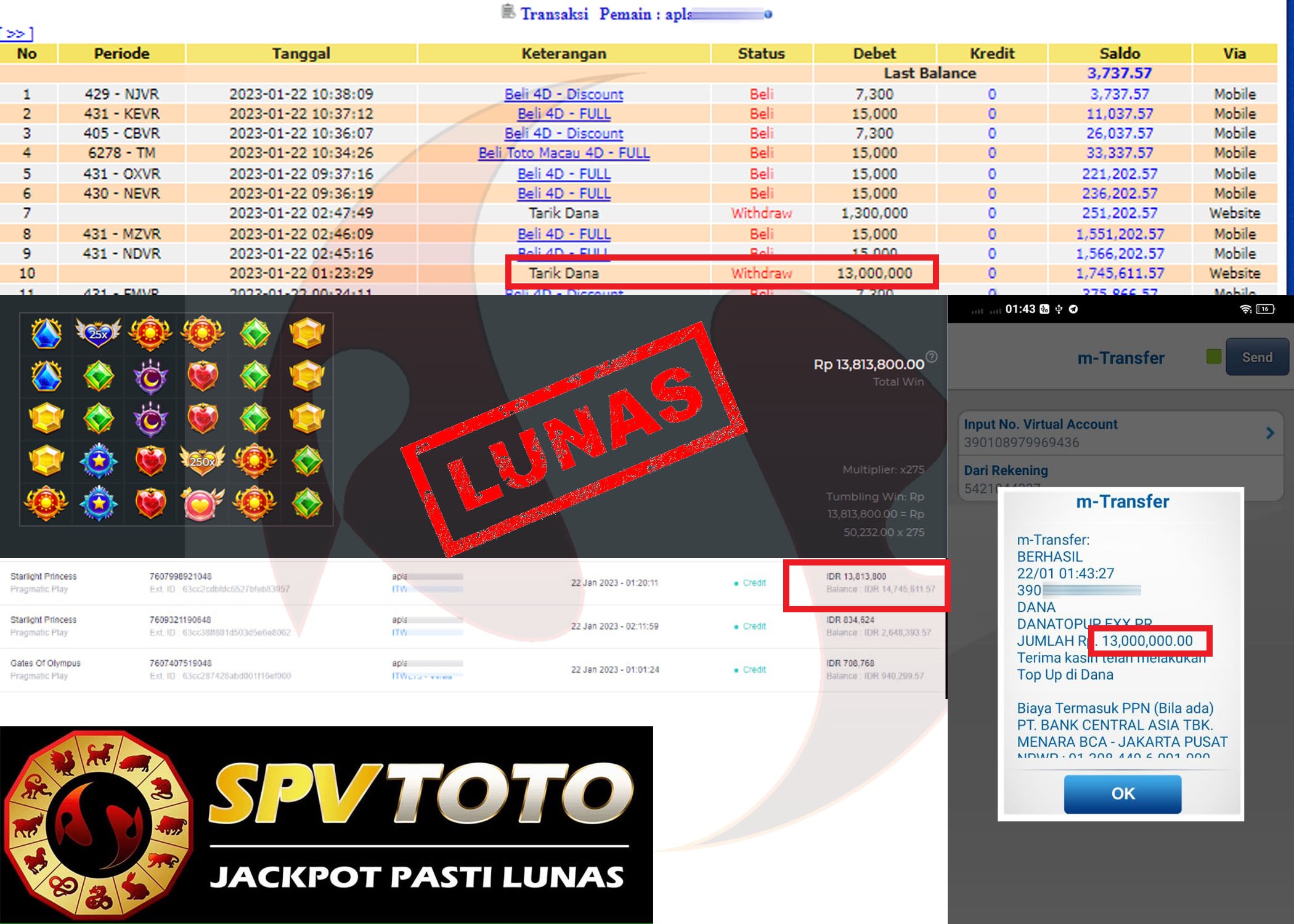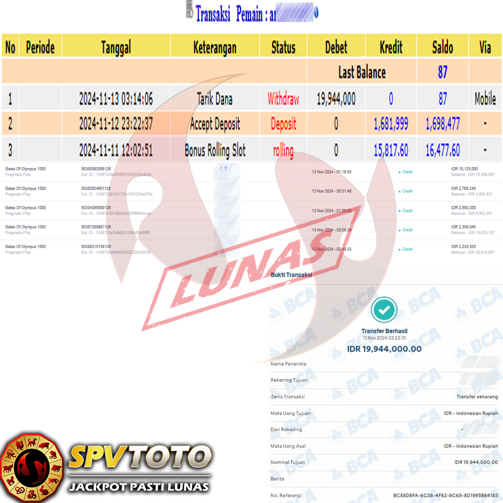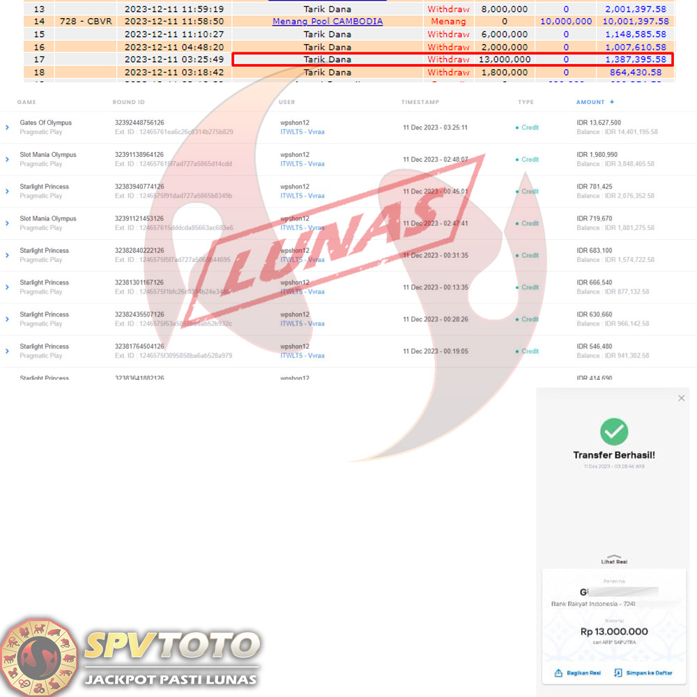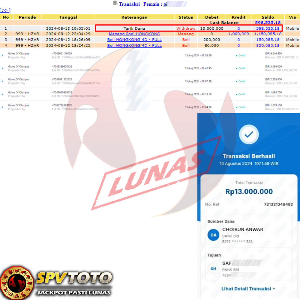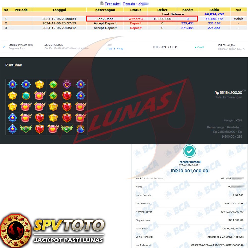 SELAMAT KEPADA MEMBER YANG MENDAPATKAN JACKPOT DI SPVTOTO