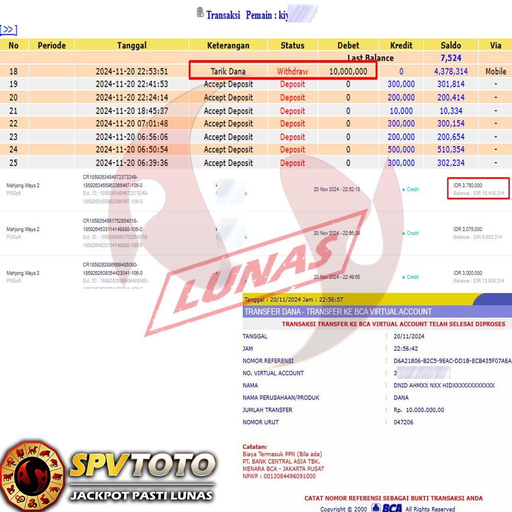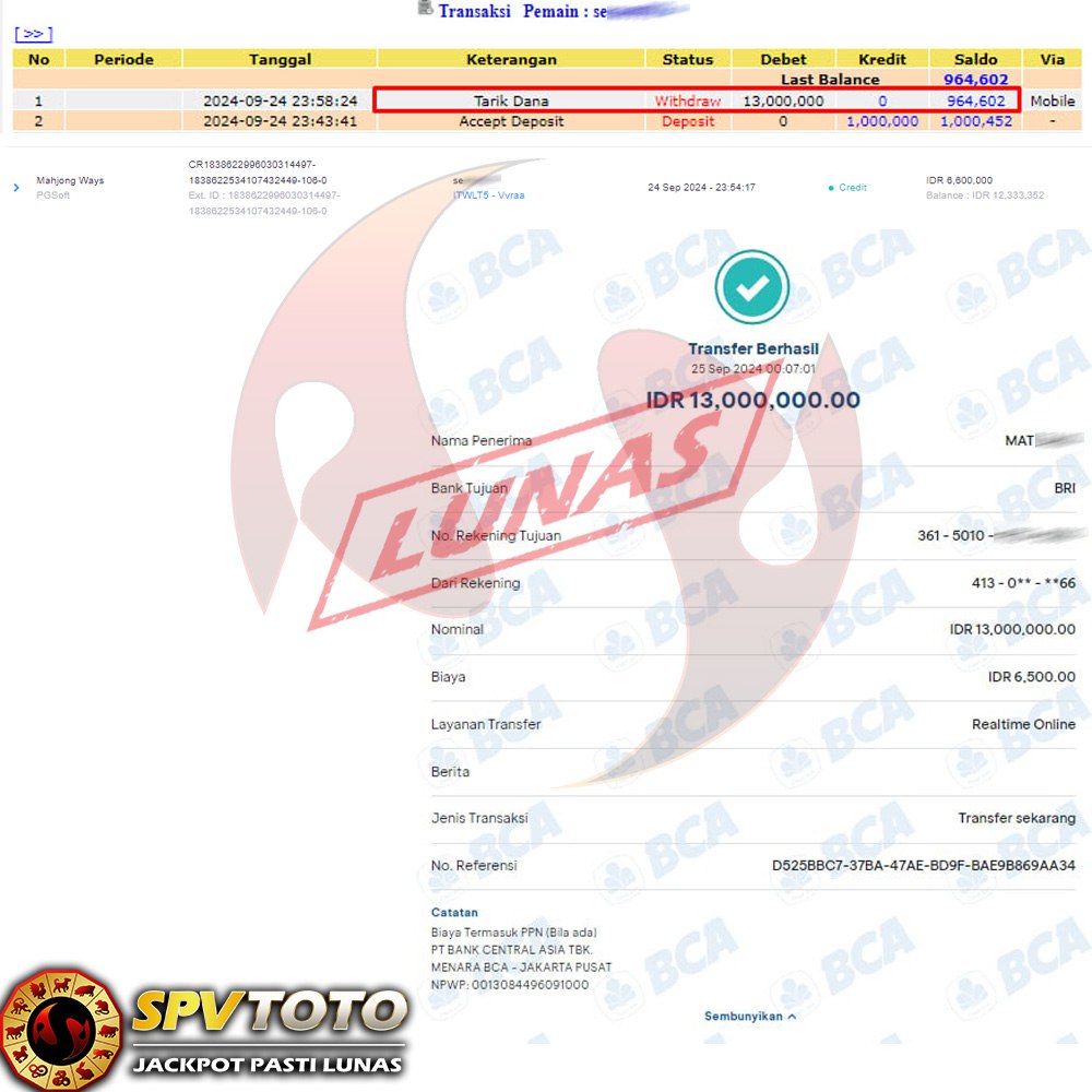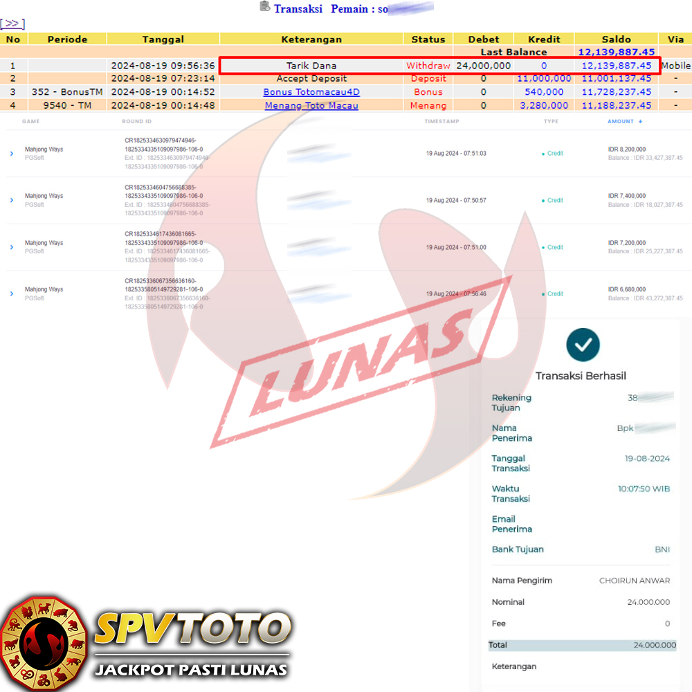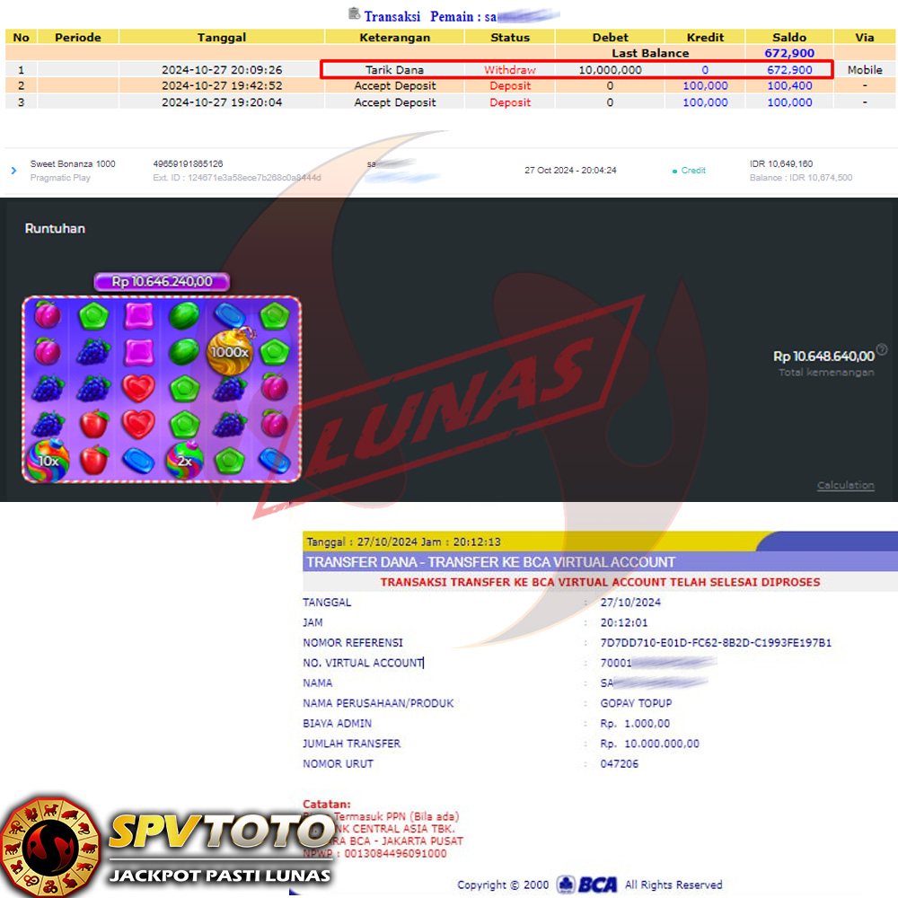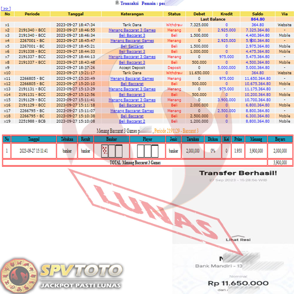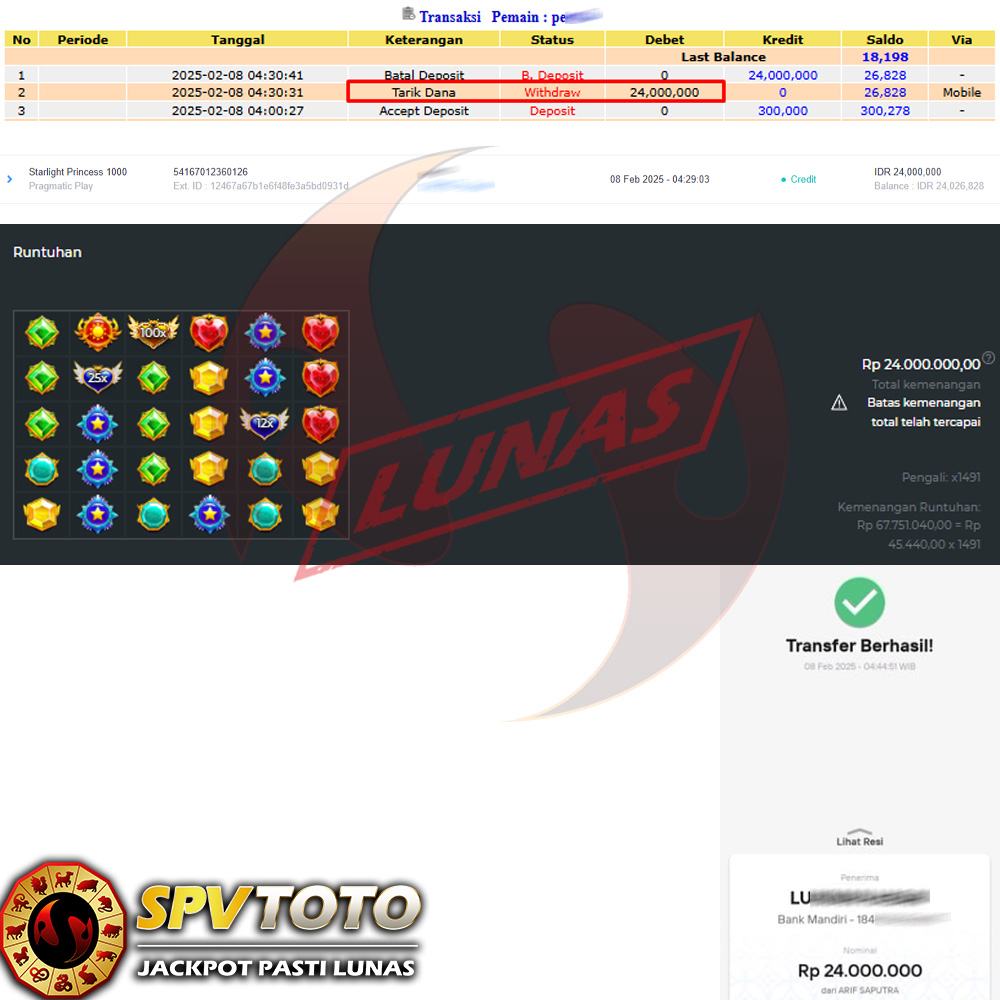 SELAMAT KEPADA MEMBER YANG MENDAPATKAN JACKPOT DI SPVTOTO