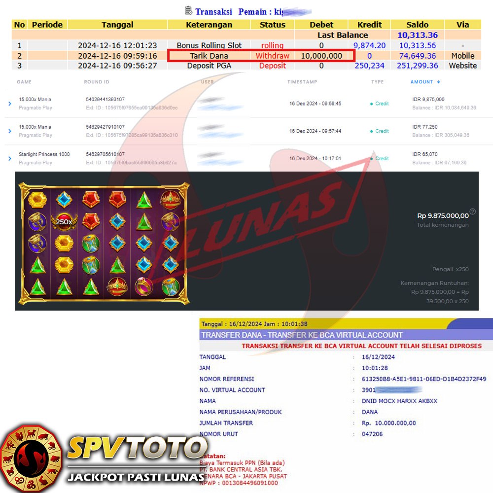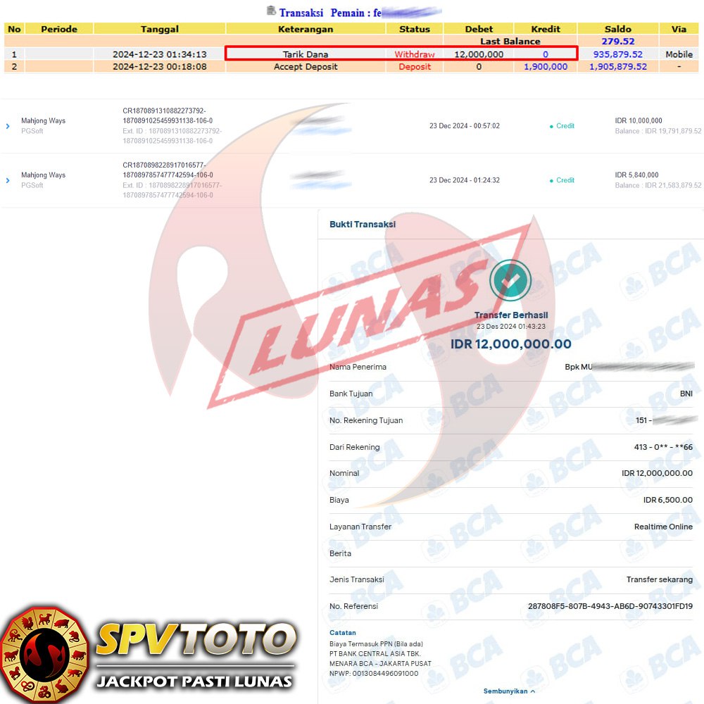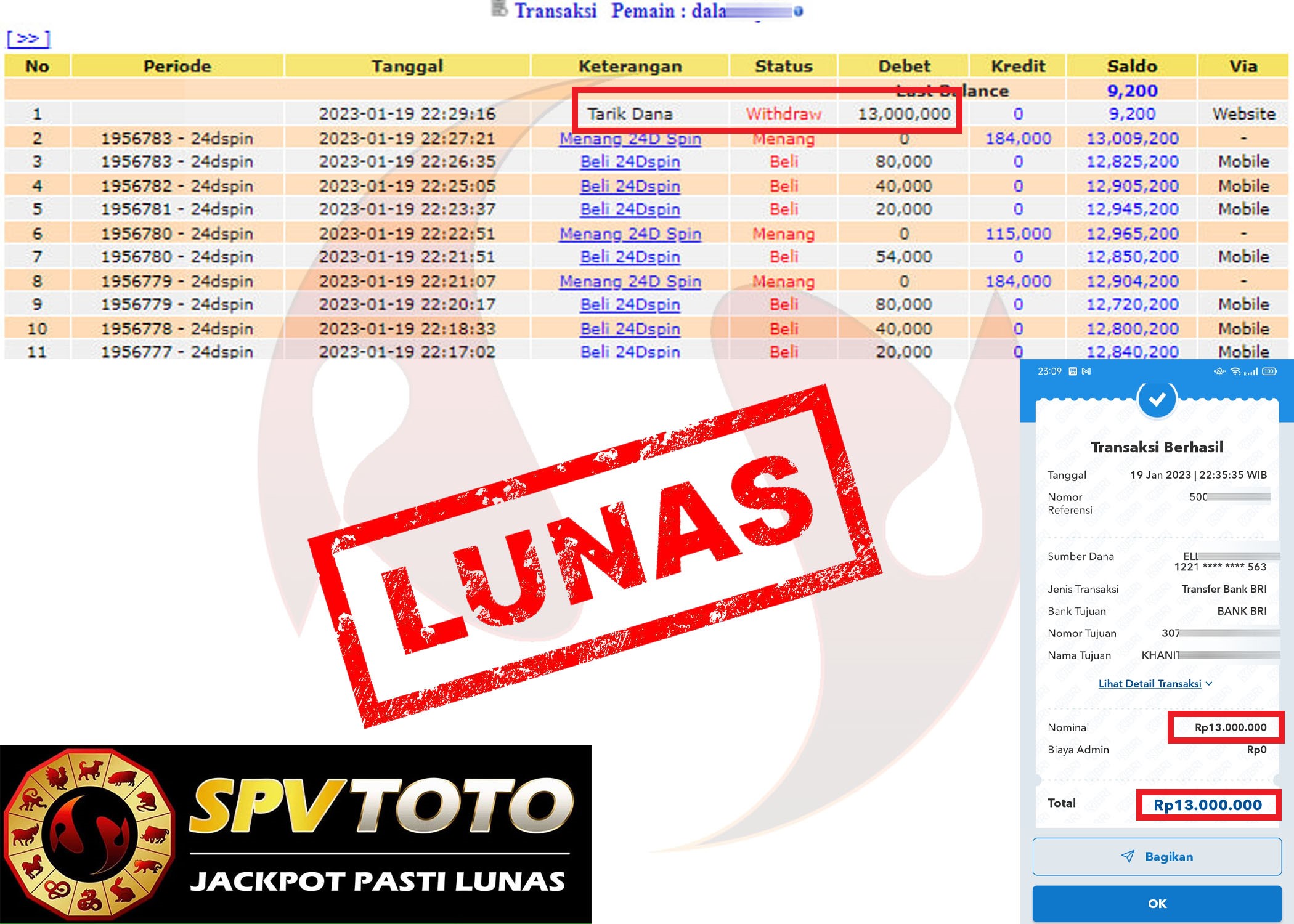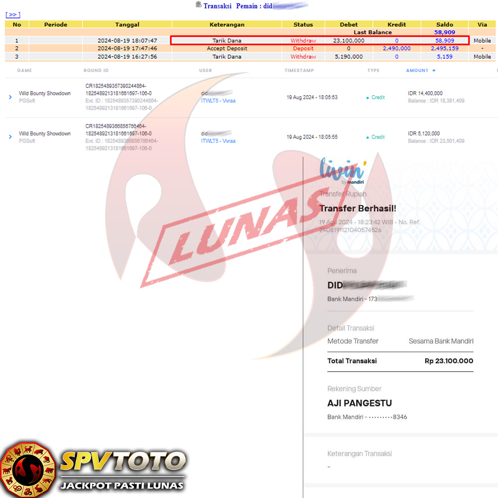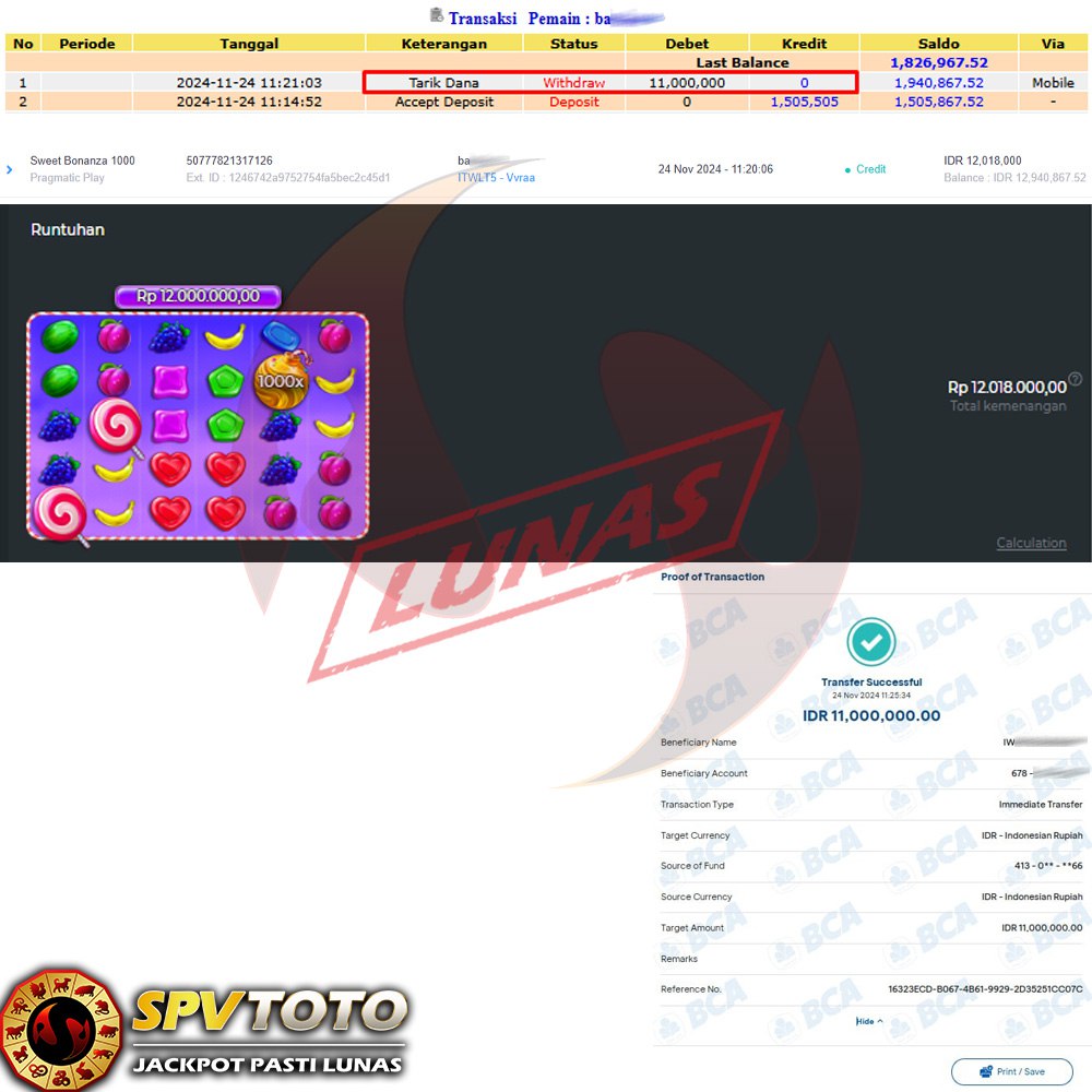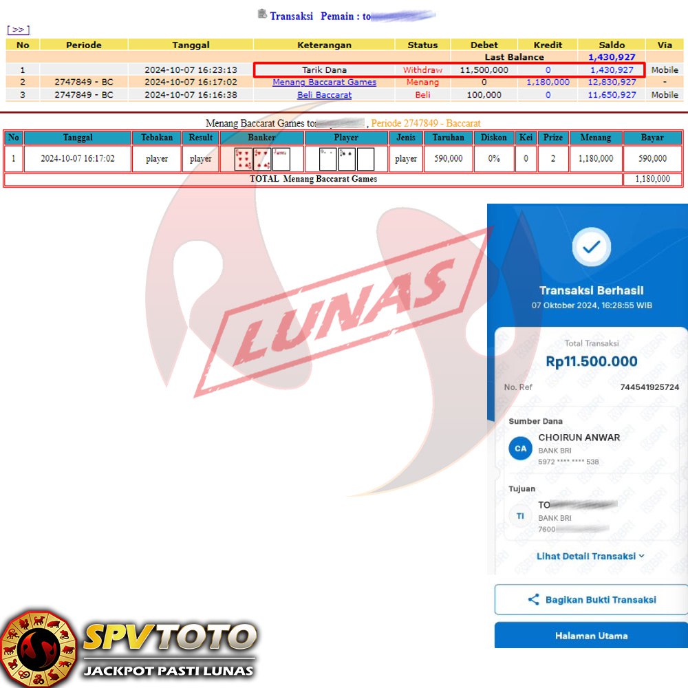 SELAMAT KEPADA MEMBER YANG MENDAPATKAN JACKPOT DI SPVTOTO