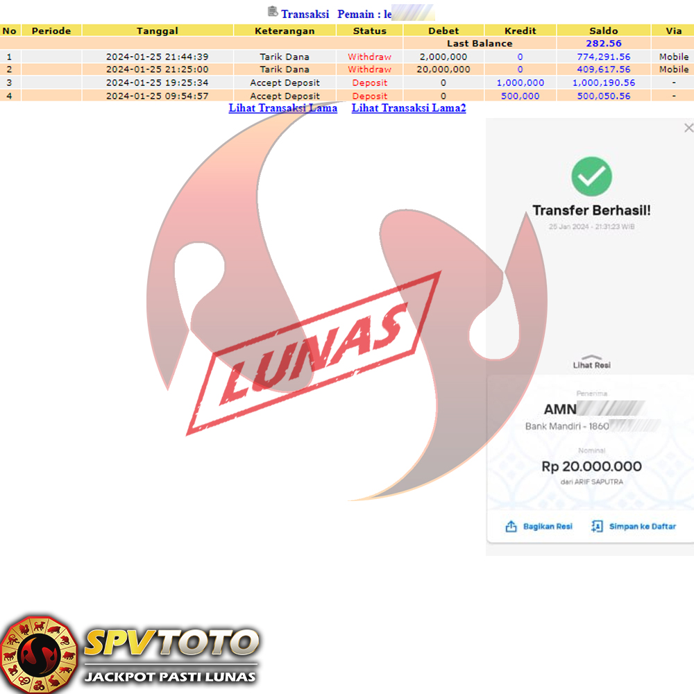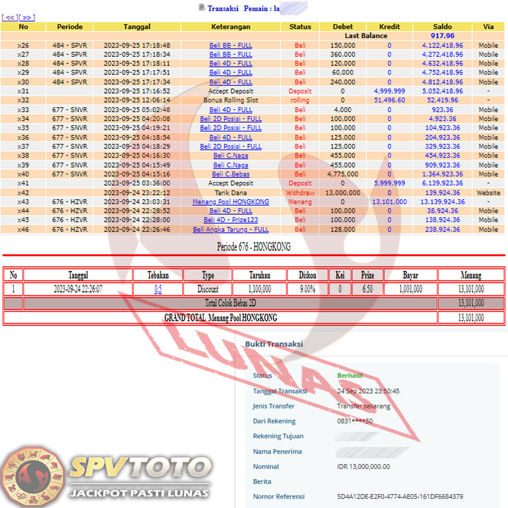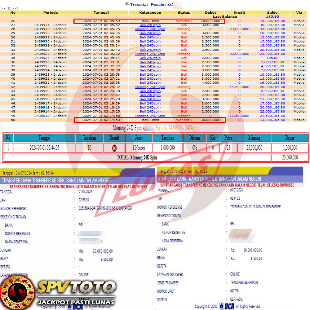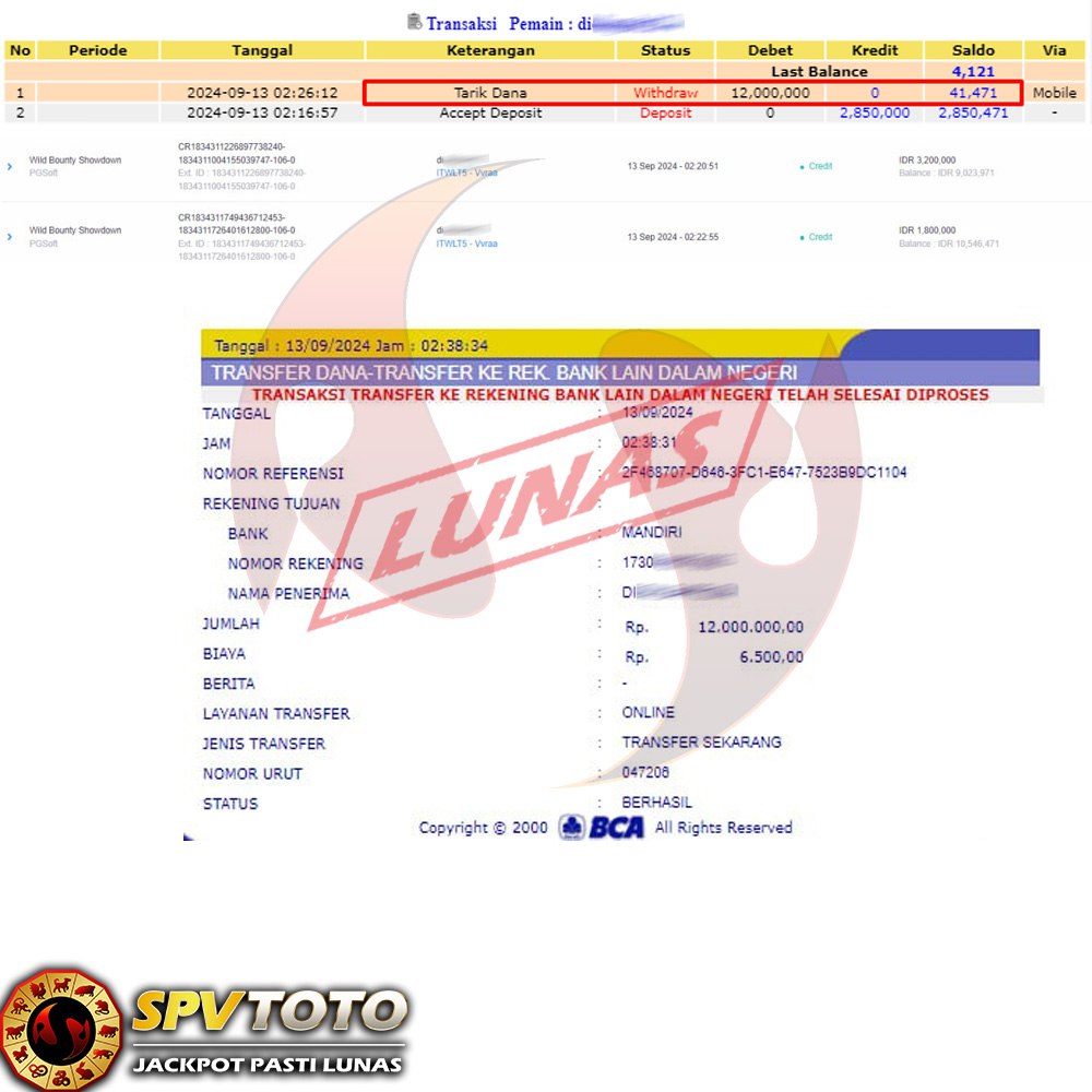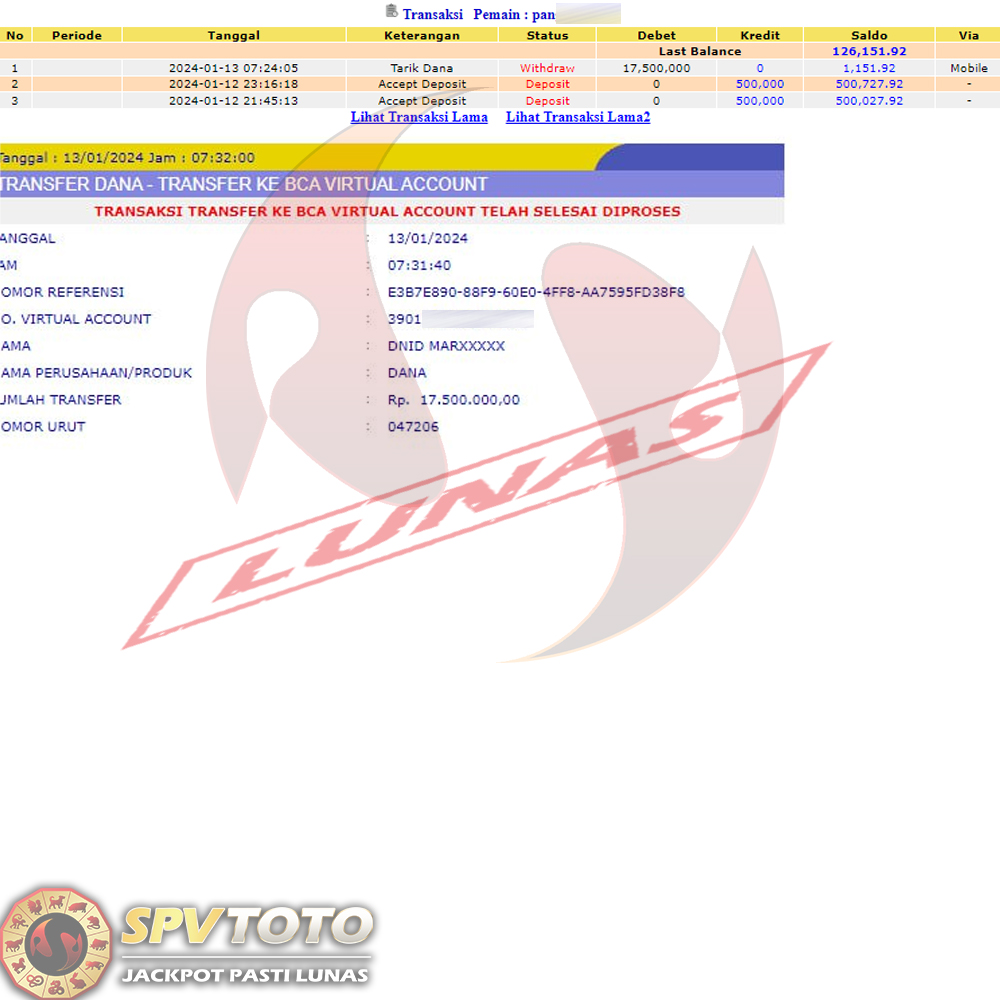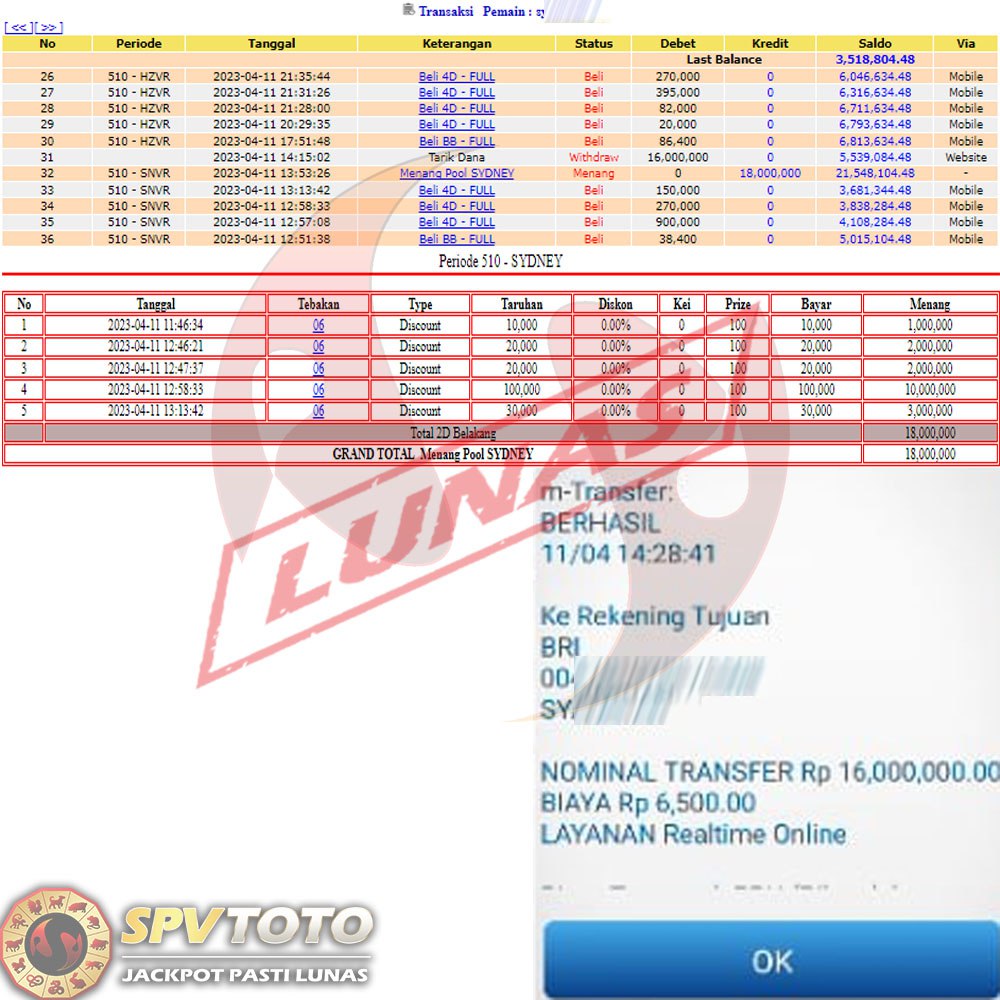 TRANSFER TELAH DI PROSES !! DAN MENDARAT MULUS KE REKENING ANDA YAH BOSSKU , WD BERAPAPUN DI SPVTOTO DI BAYAR LUNAS !! TANPA BASA BASI!!!